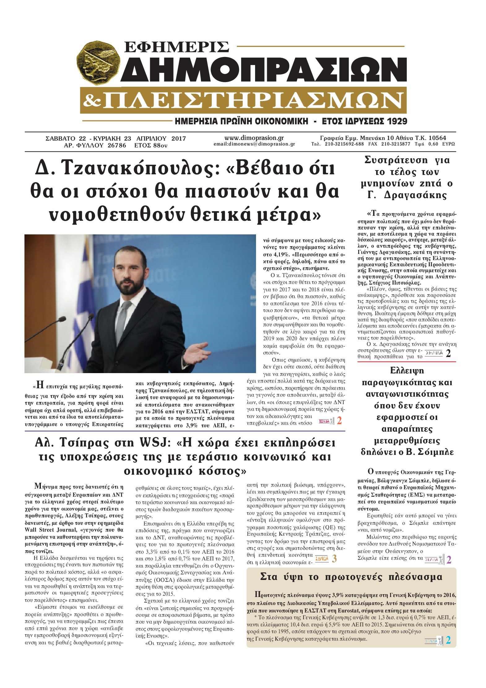 Διαβάστε τα σημερινά πρωτοσέλιδα των οικονομικών εφημερίδων: