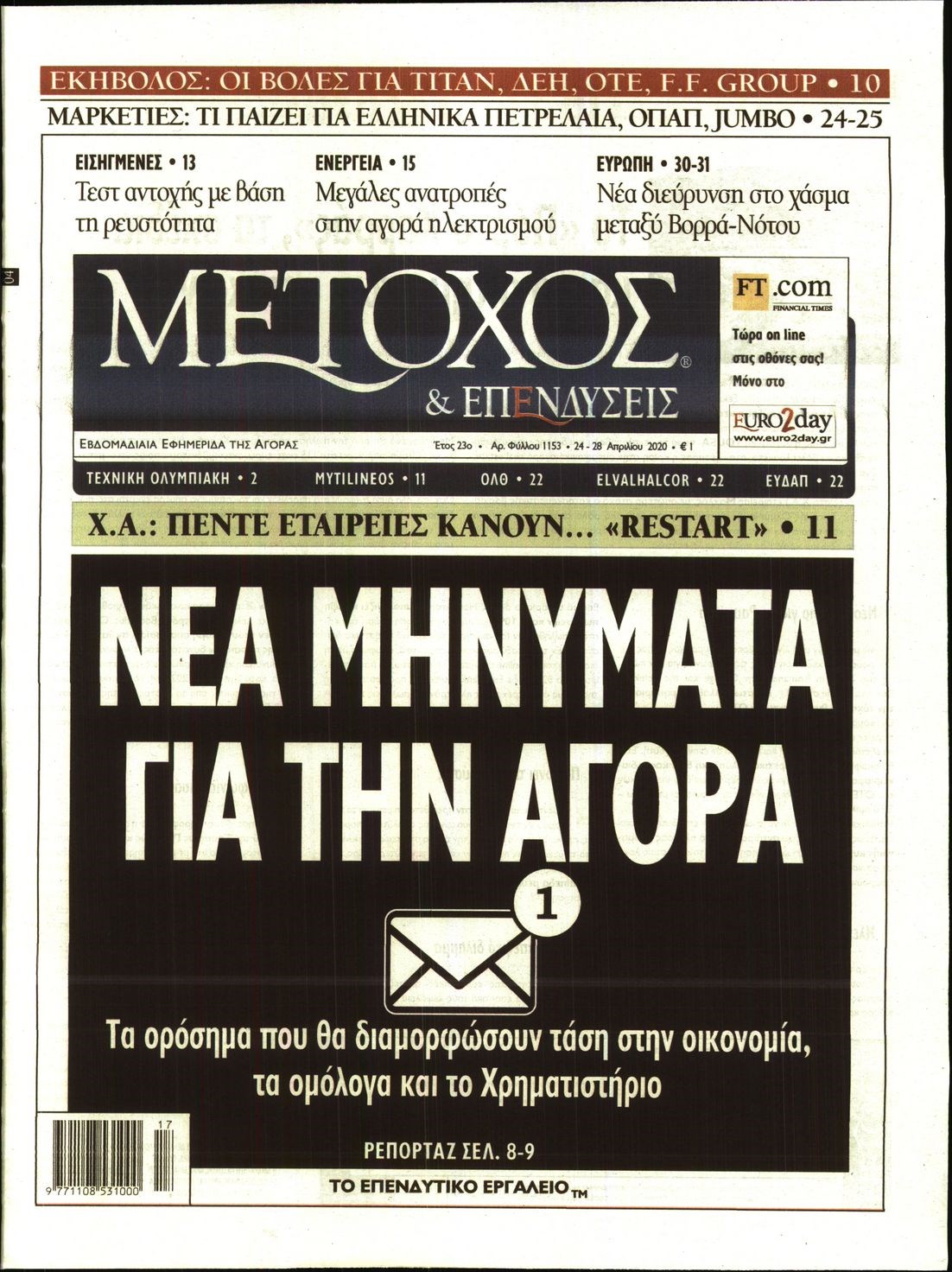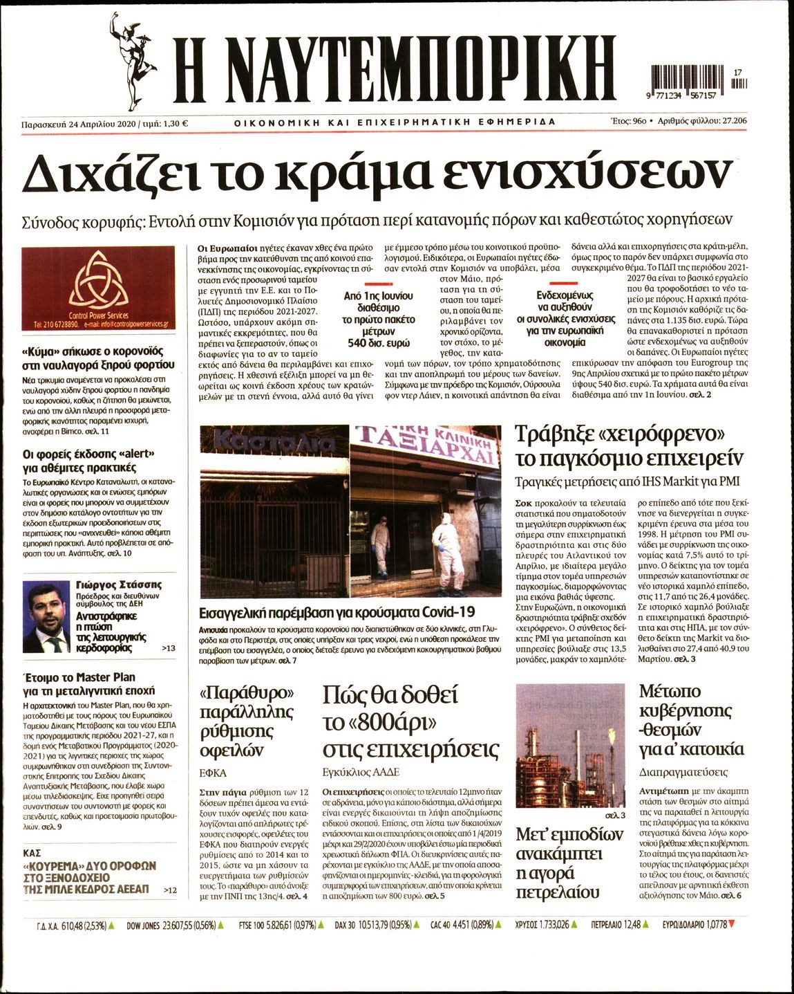 Οι οικονομικές εφημερίδες 24/4/2020 Διονύσης Νίκκας 06:33, Παρασκευή 24 Απριλίου 2020 Media Διαβάστε τα πρωτοσέλιδα των οικονομικών εφημερίδων… ΟΙΚΟΝΟΜΙΚΕΣ ΕΦΗΜΕΡΙΔΕΣ ΠΡΩΤΟΣΕΛΙΔΑ Μοιράσου το: σχολίασε κι εσύ (0 σχόλια) Ακολουθήστε το enikos.gr στο Google News και μάθετε πρώτοι όλες τις ειδήσεις Δείτε όλες τις τελευταίες ειδήσεις από την Ελλάδα και τον Κόσμο στο enikos.gr Ειδήσεις Ροή Ειδήσεων 3 ώρες πριν Υπόθεση Έπσταϊν: Το Υπουργείο Δικαιοσύνης δημοσιοποίησε μια σειρά από εξαιρετικά επεξεργασμένα αρχεία – «Λείπουν τα πιο σημαντικά έγγραφα», λένε οι Δημοκρατικοί 6 λεπτά πριν Γιορτές με μπλόκα για τους αγρότες: Ανοίγουν διόδια και μοιράζουν προϊόντα στους ταξιδιώτες 39 λεπτά πριν Εξαφάνιση 33χρονου γιατρού στην Κρήτη: «Άναψα τα φώτα, τρόμαξε και άρχισε να τρέχει στα χωράφια» – Η τελευταία διαδρομή και η μαρτυρία «κλειδί» 2 ώρες πριν Ο «χάρτης» με τις αυξήσεις και τις φοροελαφρύνσεις του 2026 – Ποιοι και πόσα κερδίζουν 22 λεπτά πριν Τα αρχεία του Έπσταϊν αποκαλύπτουν φωτογραφία του έκπτωτου πρίγκιπα Άντριου – Είναι ξαπλωμένος στην αγκαλιά 5 γυναικών 29 λεπτά πριν Μία νέα «χρυσή» περίοδος αρχίζει για 3 ζώδια από σήμερα – «Μία αναπάντεχη ευκαιρία οδηγεί στην επιτυχία» 5 ώρες πριν Αυγά: Πόσα μπορείτε να τρώτε την ημέρα με ασφάλεια για μέγιστη πρόσληψη πρωτεΐνης 3 ώρες πριν Αρχαιολόγοι ανακάλυψαν σε χωράφι απεικόνιση 600 ετών ενός Αγίου – Τα στοιχεία που δείχνουν ότι μαρτύρησε 2 ώρες πριν Αγχώνεται για το χριστουγεννιάτικο δώρο που πήρε στην πλούσια σύντροφό του – «Φοβάμαι πως θα το βρει φθηνιάρικο, φοράει βραχιόλια Cartier» 6 λεπτά πριν Συνελήφθη οδηγός μηχανής που έτρεχε με 161 χλμ στη Συγγρού – Τον έπιασε το ραντάρ της Τροχαίας 6 λεπτά πριν Γιορτές με μπλόκα για τους αγρότες: Ανοίγουν διόδια και μοιράζουν προϊόντα στους ταξιδιώτες 14 λεπτά πριν Τηλεθέαση (19/12): Κυριάρχησε η σειρά «Το σόι σου» – Τι νούμερα έκανε ο τελικός του GNTM 22 λεπτά πριν Τα αρχεία του Έπσταϊν αποκαλύπτουν φωτογραφία του έκπτωτου πρίγκιπα Άντριου – Είναι ξαπλωμένος στην αγκαλιά 5 γυναικών 29 λεπτά πριν Μία νέα «χρυσή» περίοδος αρχίζει για 3 ζώδια από σήμερα – «Μία αναπάντεχη ευκαιρία οδηγεί στην επιτυχία» ENIKOS NETWORK Είστε μόνιμα απρόσεκτοι; 3 σημάδια που δείχνουν ότι μπορεί να είναι σύμπτωμα πάθησης Πόσα κιλά παίρνουμε πραγματικά τα Χριστούγεννα, σύμφωνα με την επιστήμη – Πώς να το αποτρέψουμε; Επίδομα παιδιού: Τι αλλάζει από το 2026 – Το όφελος από τις φορολογικές ελαφρύνσεις Mega χριστουγεννιάτικη φορολοταρία: «Κλείδωσε» η ημερομηνία για την κλήρωση – Ερωτήσεις και απαντήσεις Χαρτογραφώντας το «σημείο χωρίς επιστροφή»: Για πρώτη φορά αποκαλύπτεται με λεπτομέρεια το ακανθώδες όριο της ατμόσφαιρας τ... Η Google καταργεί τη λειτουργία «dark web report» – Πώς θα μπορούν οι χρήστες να διαγράφουν τα δεδομένα τους περισσότερα 09:30 , Σάββατο 20 Δεκεμβρίου 2025 «Porto Leone: Στη γειτονιά με τα κόκκινα φανάρια» – Ο Χρόνης αποκαλύπτει στην Αλεξάνδρα το μυστικό για το παιδί της Λένας Η μεγάλη δραματική σειρά του Apha «Porto Leone: Στη γειτονιά με τα κόκκινα φανάρια» μας μεταφέ... 08:14 , Σάββατο 20 Δεκεμβρίου 2025 Τρομεροί γονείς: Η Μαρία Καβογιάννη εισβάλλει στο σπίτι της οικογένειας Στεφανίδη Όσα θα δούμε στο νέο διπλό επεισόδιο της σειράς «Τρομεροί γονείς», σήμερα Σάββατο 20 Δεκεμβρίο... 05:48 , Σάββατο 20 Δεκεμβρίου 2025 Οι οικονομικές εφημερίδες 20/12/2025 Διαβάστε τα πρωτοσέλιδα από τις οικονομικές εφημερίδες, σήμερα 20/12/2025. 05:43 , Σάββατο 20 Δεκεμβρίου