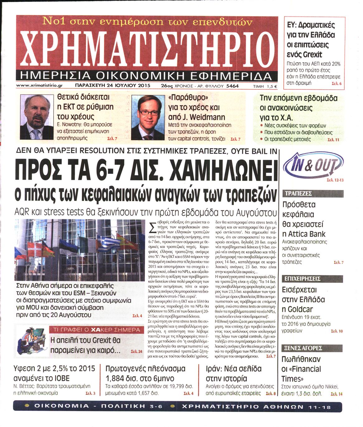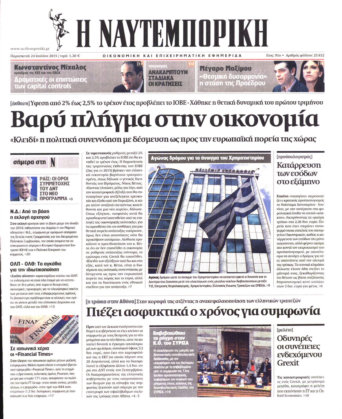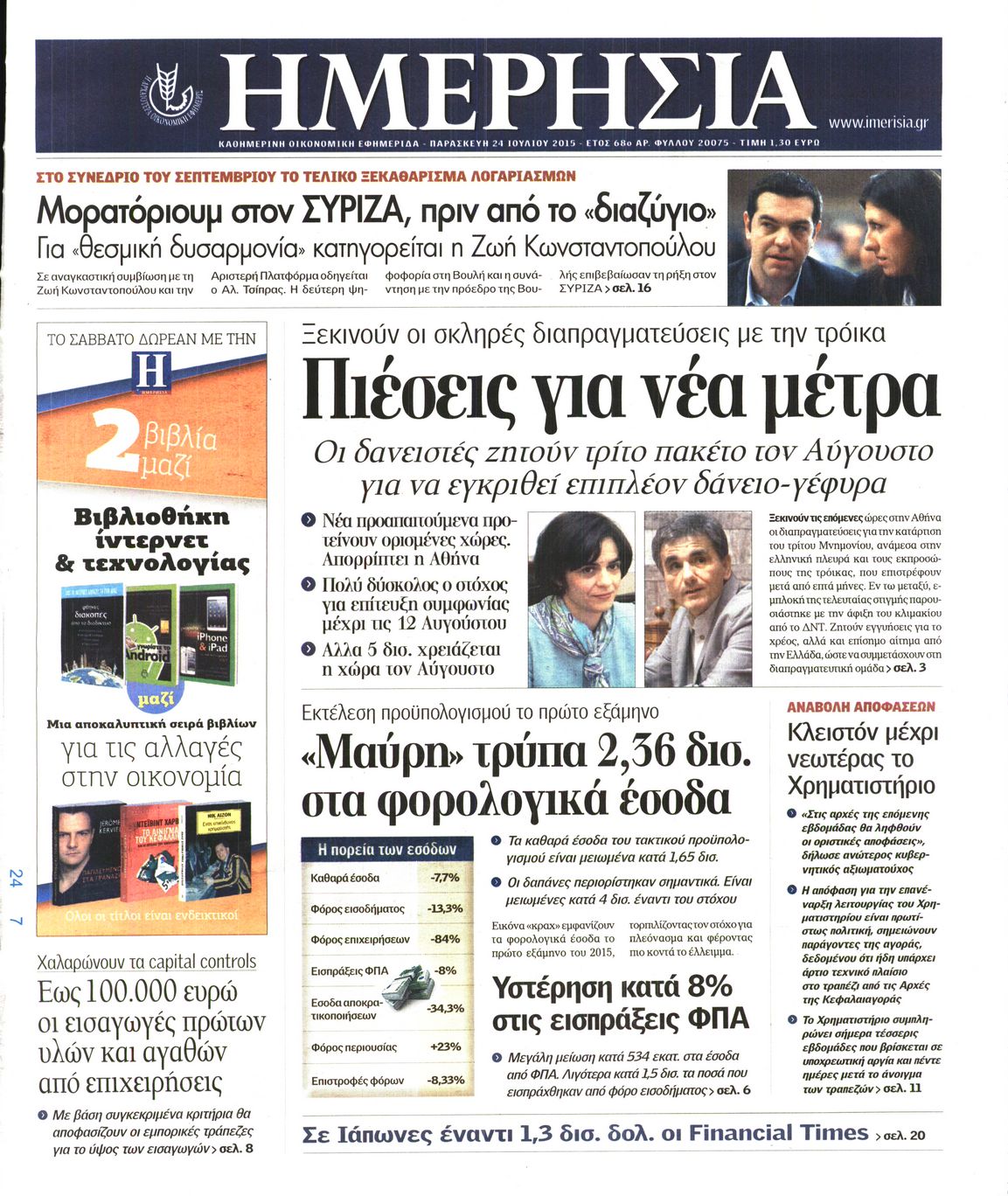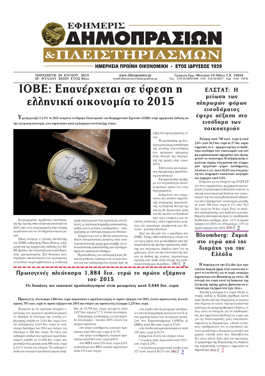 Οι οικονομικές εφημερίδες 24/7/2015 Enikos Newsroom 09:18, Παρασκευή 24 Ιουλίου 2015 Media Διαβάστε τα σημερινά πρωτοσέλιδα των οικονομικών εφημερίδων. ΕΦΗΜΕΡΙΔΕΣ ΟΙΚΟΝΟΜΙΚΕΣ ΕΦΗΜΕΡΙΔΕΣ ΠΡΩΤΟΣΕΛΙΔΑ Μοιράσου το: σχολίασε κι εσύ (0 σχόλια) Ακολουθήστε το enikos.gr στο Google News και μάθετε πρώτοι όλες τις ειδήσεις Δείτε όλες τις τελευταίες ειδήσεις από την Ελλάδα και τον Κόσμο στο enikos.gr Ειδήσεις Ροή Ειδήσεων 2 ώρες πριν Πούτιν: «Ανοησίες» και «υστερίες» οι ισχυρισμοί της Ευρώπης για πιθανή σύγκρουση με τη Ρωσία – «Κάνουν πλύση εγκεφάλου» 6 ώρες πριν Έρευνα MRB: Η πρόθεση ψήφου και τα σημαντικότερα προβλήματα – Οι «λέξεις» που εκφράζουν τους πολίτες 3 ώρες πριν Αμοργός: «Θα προσπαθήσω να το κάνω κάθε μέρα» – Ποιος είναι ο αγρότης που έστησε μόνος του το πρώτο μπλόκο στο νησί 50 λεπτά πριν Τραγωδία στην Αλεξανδρούπολη: Παιδάκι 3 ετών μεταφέρθηκε νεκρό από τη μητέρα του στο νοσοκομείο 2 ώρες πριν Συνάντηση Μητσοτάκη με την Κ.Ο. της ΝΔ: Οι αφίξεις των βουλευτών, τα γλυκά και τα «πηγαδάκια» 6 ώρες πριν Τα 4 ζώδια που ξαναβρίσκουν τον εαυτό τους – «Μπαίνετε επιτέλους στην ουσία των πραγμάτων» 7 ώρες πριν 20 χρόνια τα Χριστούγεννα ξεκινούν στα Public με μεγάλη ποικιλία σε δώρα! 5 ώρες πριν «Δεν είχα κλάψει από τότε που διαγνώστηκα με καρκίνο, ώσπου ένα τηλεφώνημα με έκανε να λυγίσω» – Η συγκλονιστική εξομολόγηση ενός άνδρα 4 ώρες πριν Τα 7 σπάνια χαρακτηριστικά που κάνουν κάποιους ανθρώπους ακαταμάχητους 5 λεπτά πριν Νέο επεισόδιο στην Εξεταστική ανάμεσα σε Κωνσταντοπούλου και Συρεγγέλα – Διακόπηκε προσωρινά η συνεδρίαση 11 λεπτά πριν Εξαφάνιση 33χρονου γιατρού στην Κρήτη: Για απάτη κατηγορείται ο ιδιωτικός ερευνητής που συνελήφθη 17 λεπτά πριν Εξεταστική για ΟΠΕΚΕΠΕ-Μυλωνάκης: Διαχρονικές, διακομματικές οι παθογένειες – Τι είπε για Μπουκώρο και Βάρρα 23 λεπτά πριν Παναθηναϊκός: Θέλει τον Κέπα της Άρσεναλ δανεικό για 6 μήνες 28 λεπτά πριν Το Λαϊκό Λαχείο στον ρυθμό των Χριστουγέννων: Μοιράζει μέχρι και 1.000.000 ευρώ στην ειδική κλήρωση της Παρασκευής 19 Δεκεμβρίου ENIKOS NETWORK 5 πράγματα που αποφεύγει γαστρεντερολόγος για να μειώσει τον κίνδυνο καρκίνου του εντέρου Ανησυχητική αύξηση της υπέρτασης στα παιδιά – Πώς θα τα προστατέψουμε; Συντάξεις Ιανουαρίου 2026: Σε ποιους θα πιστωθούν την Πέμπτη τα χρήματα και τι αυξήσεις θα δοθούν – Δείτε αναλυτικά παραδεί... ΕΛΕΤΑΕΝ: Πόσα χρήματα θα δοθούν σε δήμους και νοικοκυριά από τις ΑΠΕ Σύγχρονος Νοστράδαμος: Προειδοποιεί για «μεγάλο γεγονός» τους επόμενους μήνες που θα συγκλονίσει τη Βρετανία και τον κόσμο Τεστ παρατηρητικότητας: Μπορείτε να βρείτε τις 3 διαφορές στις εικόνες με έναν πιγκουίνο σε 14 δευτερόλεπτα περισσότερα 12:35 , Τετάρτη 17 Δεκεμβρίου 2025 Μίρκα Παπακωνσταντίνου: «Δεν ήμουν αισιόδοξη για τα νούμερα – Είμαι ρεαλίστρια» Στα γυρίσματα του εορταστικού επεισοδίου της αγαπημένης σειράς “Το Σόι Σου”, βρέθηκε η κάμερα ... 12:12 , Τετάρτη 17 Δεκεμβρίου 2025 Ακούστε την εκπομπή του Νίκου Χατζηνικολάου 17/12/2025 Ακούστε την εκπομπή του Νίκου Χατζηνικολάου στον ραδιοφωνικό σταθμό RealFm 97,8, την Τετάρτη 1... 11:35 , Τετάρτη 17 Δεκεμβρίου 2025 Home Alone: Το σπίτι της ταινίας θα ανακαινιστεί – Επιστροφή στην αισθητική της δεκαετίας του ’90 Οι νέοι ιδιοκτήτες του πραγματικού σπιτιού που παρουσιάζεται στην κλασική ταινία του 1990 «Hom... 11:25 , Τετάρτη 17 Δεκεμβρίου 2025 Grand Hotel: Απόψε το τελευταίο επεισόδιο της χρονιάς – Όλα τα μυστικά μένουν εδώ Το τελευταίο επεισόδιο της χρονιά
