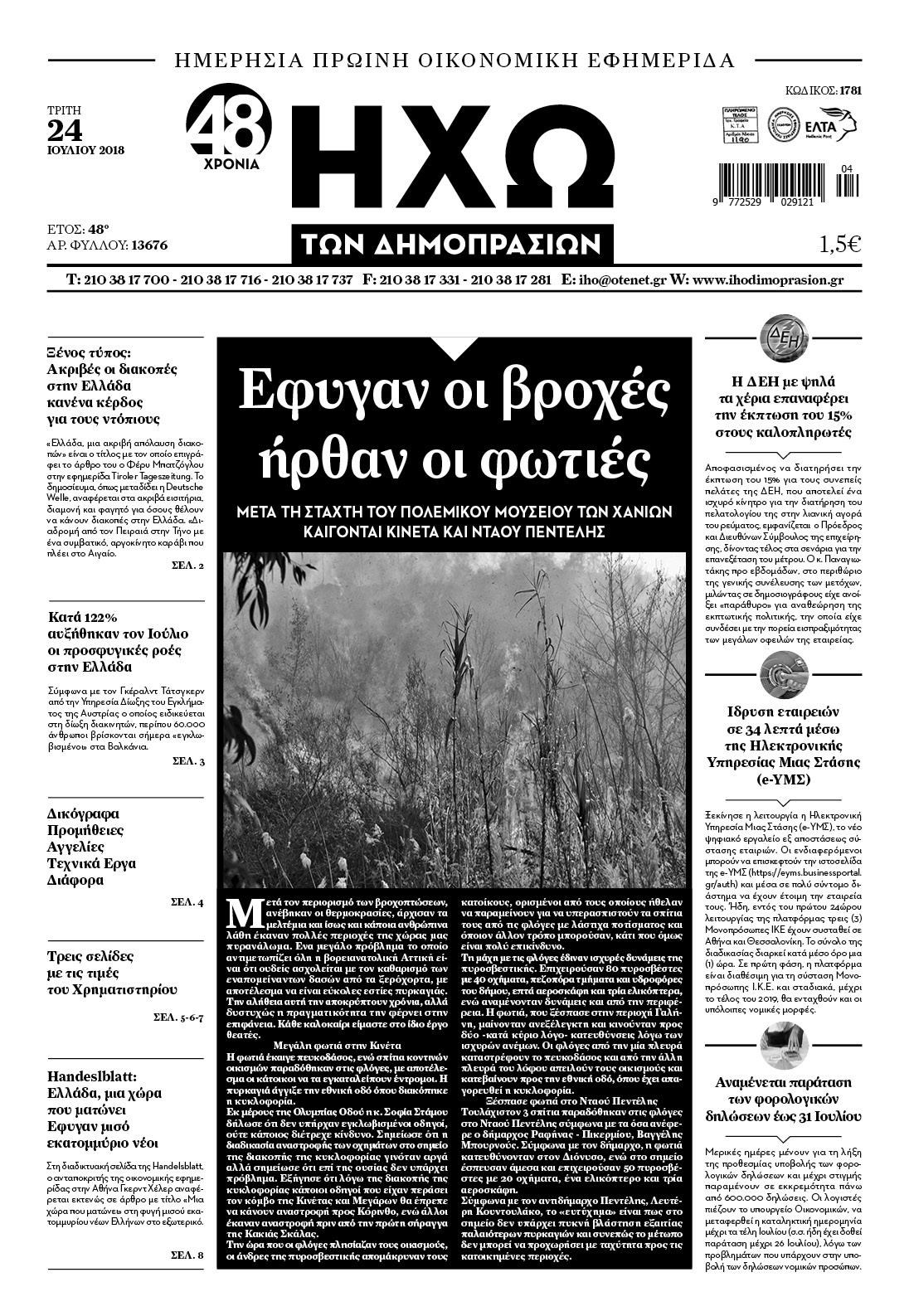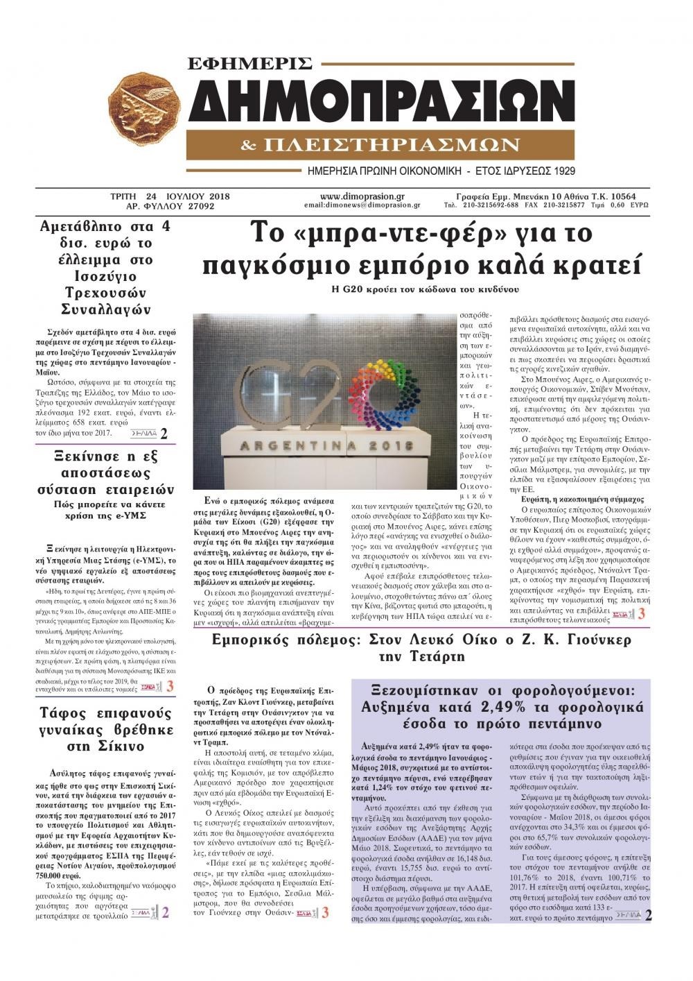 Οι οικονομικές εφημερίδες 24/7/2018 Κώστας Τεό 07:01, Τρίτη 24 Ιουλίου 2018 Media Διαβάστε τα σημερινά πρωτοσέλιδα των οικονομικών εφημερίδων: ΟΙΚΟΝΟΜΙΚΕΣ ΕΦΗΜΕΡΙΔΕΣ ΠΡΩΤΟΣΕΛΙΔΑ Μοιράσου το: σχολίασε κι εσύ (0 σχόλια) Ακολουθήστε το enikos.gr στο Google News και μάθετε πρώτοι όλες τις ειδήσεις Δείτε όλες τις τελευταίες ειδήσεις από την Ελλάδα και τον Κόσμο στο enikos.gr Ειδήσεις Ροή Ειδήσεων 5 ώρες πριν Αυξάνουν την πίεση προς την κυβέρνηση οι αγρότες: Κλείνουν παρακαμπτήριους και ανοίγουν διόδια – Τι θα γίνει τις γιορτές 4 ώρες πριν ΟΠΕΚΕΠΕ: Προφυλακιστέος ο φερόμενος αρχηγός και ο λογιστής της εγκληματικής οργάνωσης 23 λεπτά πριν Ευρωπαϊκή Ένωση: Χωρίς συμφωνία, για την μακροπρόθεσμη χρηματοδότηση της Ουκρανίας, ολοκληρώθηκε η Σύνοδος Κορυφής στις Βρυξέλλες 3 ώρες πριν ΑΕΚ – Κραϊόβα 3-2: Επική ανατροπή και πρόκριση στους «16» του Conference League η Ένωση 5 ώρες πριν Φοινικούντα: Το Σάββατο απολογείται ο 30χρονος γιος γνωστού επιχειρηματία της Πλάκας που παραδόθηκε – Όσα είπε στους αστυνομικούς και ο ρόλος του στο έγκλημα 4 ώρες πριν Αρχαιολόγοι ανακάλυψαν ρωμαϊκά τεχνουργήματα από μια πόλη που δεν υπήρξε ποτέ – Τα τρία εντυπωσιακά κτίρια και ο αμφορέας με τις… σαρδέλες 5 ώρες πριν Ύπνος: Η απλή βραδινή ρουτίνα για να προστατεύσετε τα μαλλιά σας από το κρύο κατά τη διάρκεια του χειμώνα 6 ώρες πριν Manifesting: Πώς να συναντήσετε τον σύντροφο της ζωής σας, ανάλογα με τον μήνα γέννησής σας 2 ημέρες πριν 20 χρόνια τα Χριστούγεννα ξεκινούν στα Public με μεγάλη ποικιλία σε δώρα! 23 λεπτά πριν Ευρωπαϊκή Ένωση: Χωρίς συμφωνία, για την μακροπρόθεσμη χρηματοδότηση της Ουκρανίας, ολοκληρώθηκε η Σύνοδος Κορυφής στις Βρυξέλλες 38 λεπτά πριν GNTM: «Κλείδωσαν» οι τέσσερις φιναλίστ – Μεγάλη ανατροπή στις τελευταίες αποχωρήσεις 52 λεπτά πριν Γιώργος Μαζωνάκης: Αποθεώθηκε στην πρεμιέρα του στην «Ακτή Πειραιώς» λίγες ώρες μετά τις καταγγελίες – «Είμαι αληθινός», είπε με νόημα 1 ώρα πριν Πόλεμος στην Ουκρανία: Ρωσικά drones έπληξαν την Οδησσό – Μία νεκρή και ζημιές σε ενεργειακές υποδομές 1 ώρα πριν ΑΕΚ-Κραϊόβα: Τα highlights της μυθικής ανατροπής της «Ένωσης» ENIKOS NETWORK Σε περίοδο αυξημένης δραστηριότητας η γρίπη στην Ελλάδα-Μέτρα προστασίας από τον ΕΟΔΥ Σκέφτεστε συνέχεια συζητήσεις που έχετε κάνει; Τι σημαίνει αυτό, σύμφωνα με ειδικό Στεγαστικό: Τι λέει η ΠΟΜΙΔΑ για τα νέα μέτρα που ανακοίνωσε ο Κυριάκος Μητσοτάκης Λαγκάρντ: Αισιόδοξη για την ανάπτυξη της Ευρωζώνης, αβέβαιη για τον πληθωρισμό Χαρτογραφώντας το «σημείο χωρίς επιστροφή»: Για πρώτη φορά αποκαλύπτεται με λεπτομέρεια το ακανθώδες όριο της ατμόσφαιρας τ... Η Google καταργεί τη λειτουργία «dark web report» – Πώς θα μπορούν οι χρήστες να διαγράφουν τα δεδομένα τους περισσότερα 02:50 , Παρασκευή 19 Δεκεμβρίου 2025 GNTM: «Κλείδωσαν» οι τέσσερις φιναλίστ – Μεγάλη ανατροπή στις τελευταίες αποχωρήσεις Για προτελευταία φορά εμφανίστηκαν στο πλατό του GNTM οι φιναλίστ του φετινού κύκλου, το βράδυ... 17:45 , Πέμπτη 18 Δεκεμβρίου 2025 ROUK ZOUK: Εορταστικό επεισόδιο με καλεσμένους τους πρωταγωνιστές του «Γιατί ρε πατέρα» Το Σάββατο 20 Δεκεμβρίου στις 21:00, η Ζέτα Μακρυπούλια υποδέχεται εκλεκτούς ηθοποιούς που όλο... 17:20 , Πέμπτη 18 Δεκεμβρίου 2025 Άγιος έρωτας: Η Χριστίνα εξομολογείται στον πατέρα Νικόλαο, απόψε στις 21:00 στον Alpha Η Νότα αποφασίζει να εκδικηθεί τον Πέτρο και τον Στέφανο, για χάρη του Λούη, όμως τα πράγματα ... 16:50 , Πέμπτη 18 Δεκεμβρίου 2025 Να μ’ αγαπάς: Ζωή και Φωτεινή συμφιλιώ