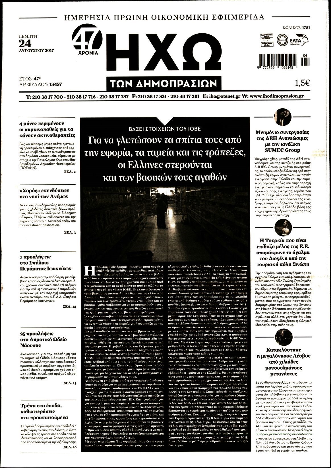 Οι οικονομικές εφημερίδες 24/8/2017 Enikos Newsroom 07:30, Πέμπτη 24 Αυγούστου 2017 Media Διαβάστε τα σημερινά πρωτοσέλιδα των οικονομικών εφημερίδων: ΟΙΚΟΝΟΜΙΚΕΣ ΕΦΗΜΕΡΙΔΕΣ ΠΡΩΤΟΣΕΛΙΔΑ Μοιράσου το: σχολίασε κι εσύ (0 σχόλια) Ακολουθήστε το enikos.gr στο Google News και μάθετε πρώτοι όλες τις ειδήσεις Δείτε όλες τις τελευταίες ειδήσεις από την Ελλάδα και τον Κόσμο στο enikos.gr Ειδήσεις Ροή Ειδήσεων 1 ώρα πριν Αυξάνουν την πίεση προς την κυβέρνηση οι αγρότες: Κλείνουν παρακαμπτήριους και ανοίγουν διόδια – Τι θα γίνει τις γιορτές 7 λεπτά πριν ΟΠΕΚΕΠΕ: Προφυλακιστέος ο φερόμενος αρχηγός και ο λογιστής της εγκληματικής οργάνωσης 1 ώρα πριν Φοινικούντα: Το Σάββατο απολογείται ο 30χρονος γιος γνωστού επιχειρηματία της Πλάκας που παραδόθηκε – Όσα είπε στους αστυνομικούς και ο ρόλος του στο έγκλημα 48 λεπτά πριν Μπορεί ο Μαδούρο να αντέξει τον αποκλεισμό του Τραμπ; Τι θα χρειαστεί η Ουάσινγκτον για να τον ανατρέψει 2 ώρες πριν Πρίγκιπας Ουίλιαμ – Κέιτ: Η νέα οικογενειακή φωτογραφία για τις Χριστουγεννιάτικες κάρτες του 2025 2 ώρες πριν Ύπνος: Η απλή βραδινή ρουτίνα για να προστατεύσετε τα μαλλιά σας από το κρύο κατά τη διάρκεια του χειμώνα 3 ώρες πριν Manifesting: Πώς να συναντήσετε τον σύντροφο της ζωής σας, ανάλογα με τον μήνα γέννησής σας 2 ημέρες πριν 20 χρόνια τα Χριστούγεννα ξεκινούν στα Public με μεγάλη ποικιλία σε δώρα! 52 λεπτά πριν Αρχαιολόγοι ανακάλυψαν ρωμαϊκά τεχνουργήματα από μια πόλη που δεν υπήρξε ποτέ – Τα τρία εντυπωσιακά κτίρια και ο αμφορέας με τις… σαρδέλες 7 λεπτά πριν ΟΠΕΚΕΠΕ: Προφυλακιστέος ο φερόμενος αρχηγός και ο λογιστής της εγκληματικής οργάνωσης 17 λεπτά πριν Αθηνά Μαξίμου: Η τρυφερή ανάρτηση για τα γενέθλια του Αιμίλιου Χειλάκη – «Είναι η εκλεκτική συγγένειά μου, η επιλογή και η ευθύνη μου» 33 λεπτά πριν Παναθηναϊκός – Χάποελ Τελ Αβίβ 93-82: Με… φόρα από την Κωνσταντινούπολη 48 λεπτά πριν Μπορεί ο Μαδούρο να αντέξει τον αποκλεισμό του Τραμπ; Τι θα χρειαστεί η Ουάσινγκτον για να τον ανατρέψει 52 λεπτά πριν Αρχαιολόγοι ανακάλυψαν ρωμαϊκά τεχνουργήματα από μια πόλη που δεν υπήρξε ποτέ – Τα τρία εντυπωσιακά κτίρια και ο αμφορέας με τις… σαρδέλες ENIKOS NETWORK Σε περίοδο αυξημένης δραστηριότητας η γρίπη στην Ελλάδα-Μέτρα προστασίας από τον ΕΟΔΥ Σκέφτεστε συνέχεια συζητήσεις που έχετε κάνει; Τι σημαίνει αυτό, σύμφωνα με ειδικό Στεγαστικό: Τι λέει η ΠΟΜΙΔΑ για τα νέα μέτρα που ανακοίνωσε ο Κυριάκος Μητσοτάκης Λαγκάρντ: Αισιόδοξη για την ανάπτυξη της Ευρωζώνης, αβέβαιη για τον πληθωρισμό Χαρτογραφώντας το «σημείο χωρίς επιστροφή»: Για πρώτη φορά αποκαλύπτεται με λεπτομέρεια το ακανθώδες όριο της ατμόσφαιρας τ... Η Google καταργεί τη λειτουργία «dark web report» – Πώς θα μπορούν οι χρήστες να διαγράφουν τα δεδομένα τους περισσότερα 17:45 , Πέμπτη 18 Δεκεμβρίου 2025 ROUK ZOUK: Εορταστικό επεισόδιο με καλεσμένους τους πρωταγωνιστές του «Γιατί ρε πατέρα» Το Σάββατο 20 Δεκεμβρίου στις 21:00, η Ζέτα Μακρυπούλια υποδέχεται εκλεκτούς ηθοποιούς που όλο... 17:20 , Πέμπτη 18 Δεκεμβρίου 2025 Άγιος έρωτας: Η Χριστίνα εξομολογείται στον πατέρα Νικόλαο, απόψε στις 21:00 στον Alpha Η Νότα αποφασίζει να εκδικηθεί τον Πέτρο και τον Στέφανο, για χάρη του Λούη, όμως τα πράγματα ... 16:50 , Πέμπτη 18 Δεκεμβρίου 2025 Να μ’ αγαπάς: Ζωή και Φωτεινή συμφιλιώνονται ως μάνα με κόρη, απόψε στις 20:00 Η ταυτότητα του Άγγελου αποκαλύπτεται στο νέο επεισόδιο της σειράς “Να μ’ αγαπάς... 15:52 , Πέμπτη 18 Δεκεμβρίου 2025 Το Σπίτι Δίπλα Στο Ποτάμι: Το καθ