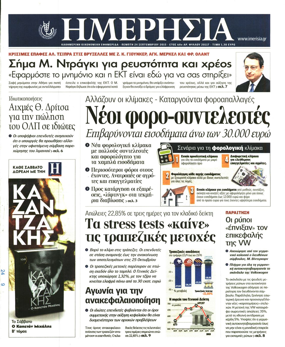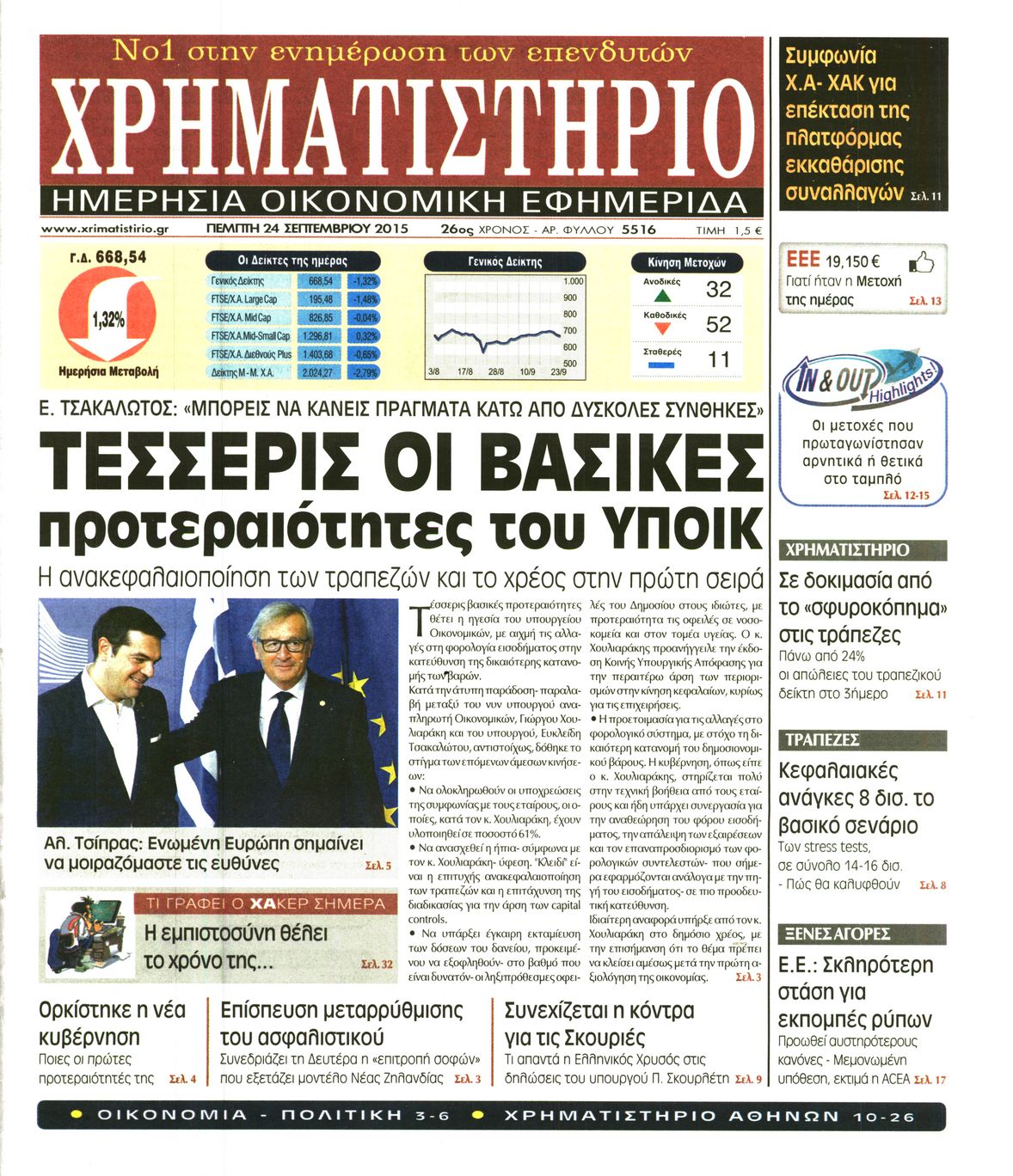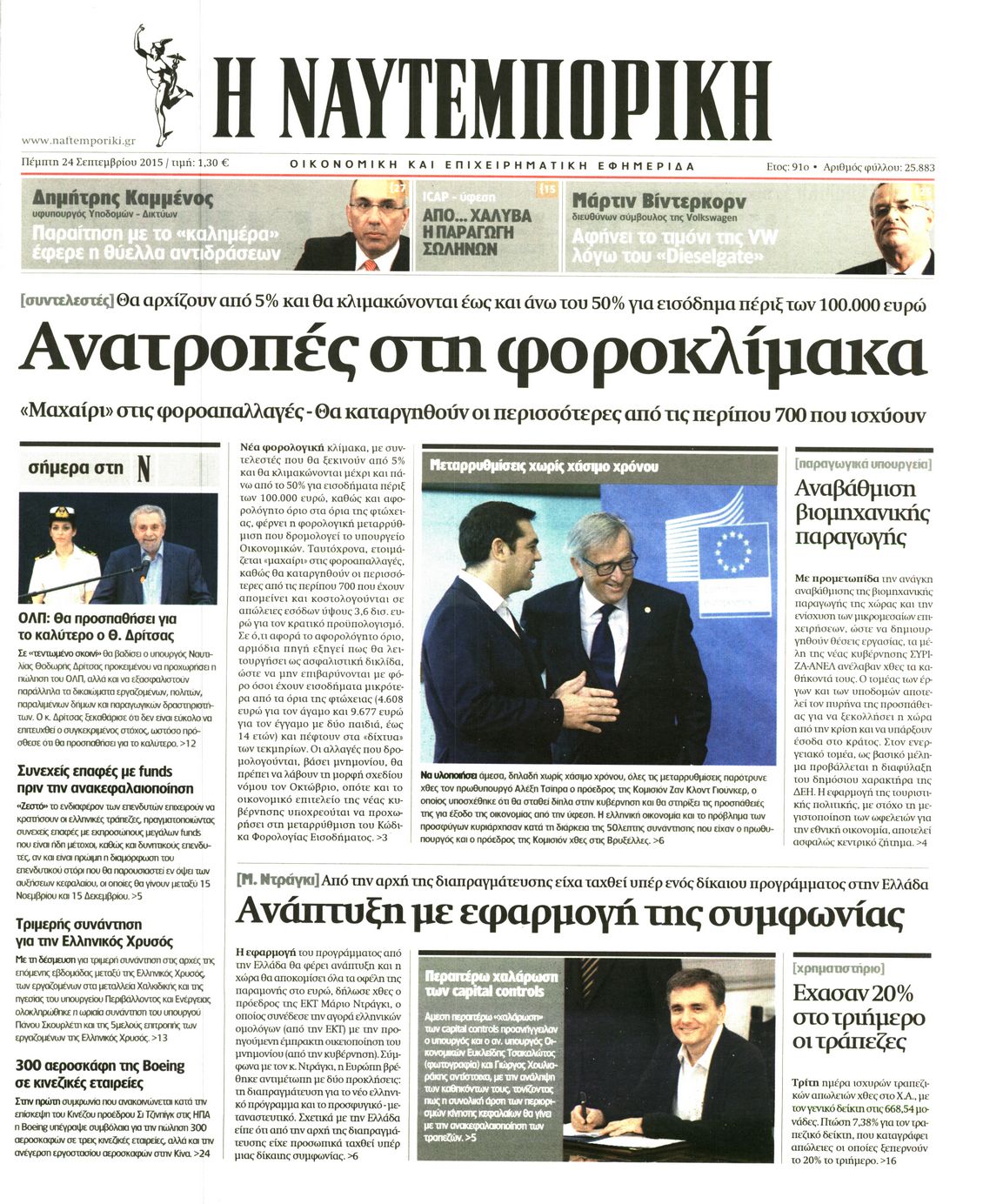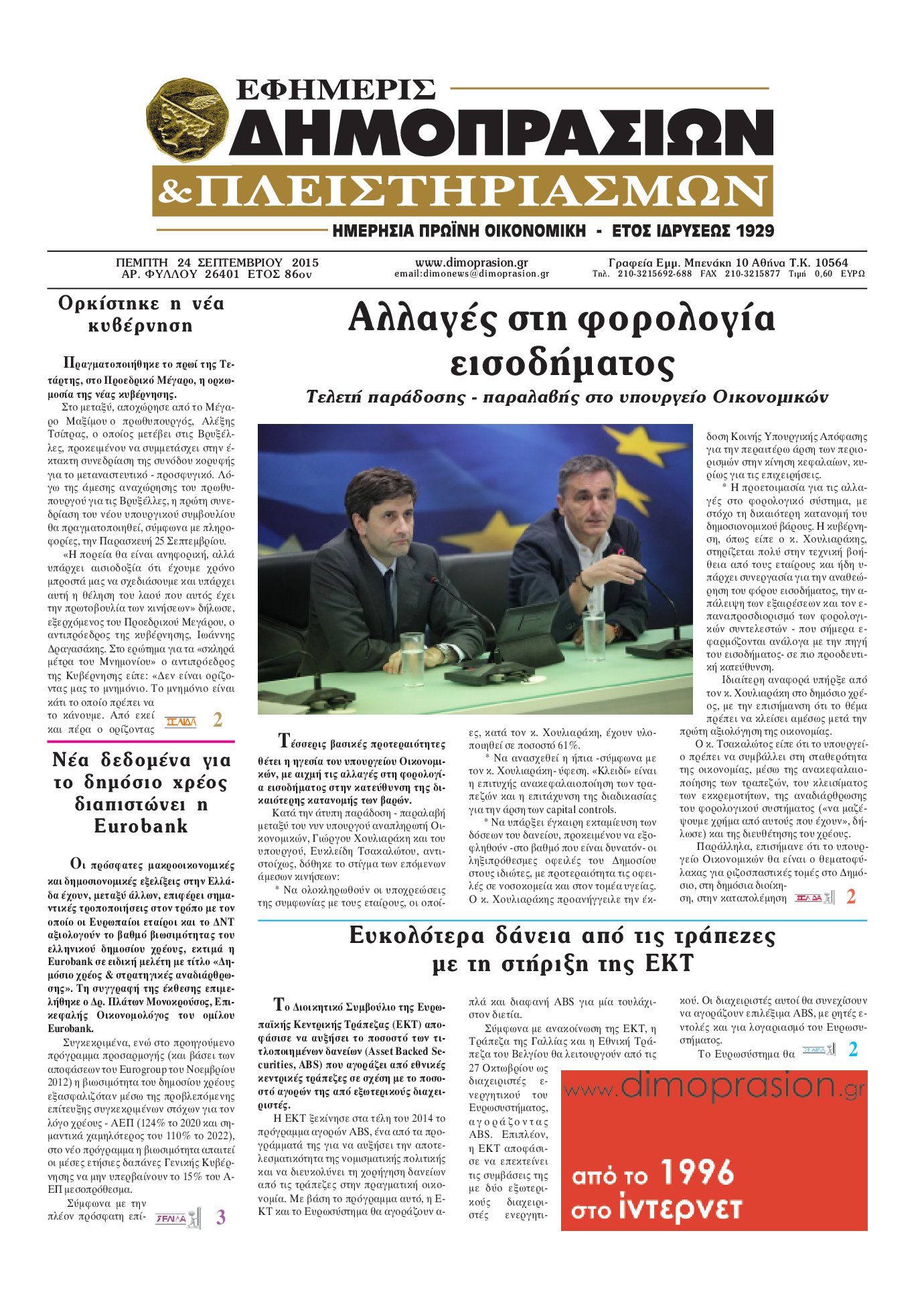Οι οικονομικές εφημερίδες 24/9/2015 Enikos Newsroom 06:28, Πέμπτη 24 Σεπτεμβρίου 2015 Media Διαβάστε τα σημερινά πρωτοσέλιδα των οικονομικών εφημερίδων: ΟΙΚΟΝΟΜΙΚΕΣ ΕΦΗΜΕΡΙΔΕΣ ΠΡΩΤΟΣΕΛΙΔΑ Μοιράσου το: σχολίασε κι εσύ (0 σχόλια) Ακολουθήστε το enikos.gr στο Google News και μάθετε πρώτοι όλες τις ειδήσεις Δείτε όλες τις τελευταίες ειδήσεις από την Ελλάδα και τον Κόσμο στο enikos.gr Ειδήσεις Ροή Ειδήσεων 2 ώρες πριν Χριστούγεννα στα μπλόκα: Επιμένουν στις κινητοποιήσεις τους οι αγρότες – Ανοίγουν τα διόδια το Σαββατοκύριακο 3 ώρες πριν Ουκρανία: Η άνευ προηγουμένου επίθεση σε ρωσικό τάνκερ στη Μεσόγειο και το μήνυμα προς στον Πούτιν – Το «μακρύ χέρι» του Κιέβου 2 ώρες πριν Πούτιν: Τα μηνύματα σε Ευρώπη και ΝΑΤΟ από το μαραθώνιο «σόου» του – Η απαίτηση για «σεβασμό» και η ειρήνη «με τους όρους» της Μόσχας 3 ώρες πριν Τραμπ: Δεν αποκλείει την πιθανότητα ενός πολέμου στη Βενεζουέλα – «Ο Μαδούρο ξέρει καλύτερα από τον καθένα τι ακριβώς θέλω» 3 ώρες πριν Συνεχίζει να προκαλεί ο Μίτσκοσκι: «Για μένα το όνομα Μακεδονία είναι ιερό» 2 ώρες πριν Ανακαλύφθηκαν αρχαία χρυσά νομίσματα 2.200 ετών που απεικονίζουν τον θεό Απόλλωνα – Η άγνωστη σύνδεση με τον Φίλιππο Β΄ της Μακεδονίας 3 ώρες πριν Ύπνος: Μια κρυφή κατάσταση του εγκεφάλου πριν από τον ύπνο μπορεί να είναι το “κλειδί” για υψηλή ευφυΐα και δημιουργικότητα 4 ώρες πριν Αριθμολογία: Οι άνθρωποι που έχουν γεννηθεί αυτές τις 4 ημερομηνίες, συχνά παρεξηγούνται – «Η καλοσύνη τους κρύβει τεράστια δύναμη» 5 ώρες πριν Ξεχάστε το καθάρισμα το Σαββατοκύριακο: Ο «κανόνας των 20 λεπτών» που θα σας λύσει τα χέρια 1 δευτερόλεπτο πριν Ουκρανία: Ολοκληρώθηκαν οι συνομιλίες με τους Αμερικανούς κι Ευρωπαίους διαπραγματευτές 15 λεπτά πριν Μπαρτσελόνα – Μπασκόνια 134-124: Οι «μπλαουγκράνα» πήραν το ματς της χρονιάς ύστερα από τρεις παρατάσεις 30 λεπτά πριν Φαίη Σκορδά: «Παλιότερα τα κομπλιμέντα τα προσπερνούσα, τώρα τα έχω ανάγκη» 46 λεπτά πριν Βασίλης Σπανούλης: Δεν εμφανίστηκε ούτε ένας δημοσιογράφος στην συνέντευξη Τύπου – «Καλησπέρα στον… κανέναν», δείτε βίντεο 57 λεπτά πριν Πόλεμος στην Ουκρανία: Εφτά νεκροί από ρωσική πυραυλική επίθεση στο λιμάνι της Οδησσού ENIKOS NETWORK Το ΕΚΑΒ τιμήθηκε από την Ακαδημία Αθηνών για τα 40 χρόνια προσφοράς του Έχετε πραγματικά μεγάλη καρδιά; 10 χαρακτηριστικά όσων έχουν καλοσύνη Αναστολή μέτρων αναγκαστικής εκτέλεσης για κτηνοτρόφους που πλήττονται από την ευλογιά των αιγοπροβάτων Πλήρης επάρκεια προϊόντων στις λαϊκές της Αττικής, παρά τις αγροτικές κινητοποιήσεις – Τι απαντούν οι πωλητές Χαρτογραφώντας το «σημείο χωρίς επιστροφή»: Για πρώτη φορά αποκαλύπτεται με λεπτομέρεια το ακανθώδες όριο της ατμόσφαιρας τ... Η Google καταργεί τη λειτουργία «dark web report» – Πώς θα μπορούν οι χρήστες να διαγράφουν τα δεδομένα τους περισσότερα 22:42 , Παρασκευή 19 Δεκεμβρίου 2025 Γιώργος Γιαννόπουλος για “Το σόι σου”: “Είναι ευτυχία και ευλογία αυτή η σειρά” «Είναι ευτυχία και ευλογία η συγκυρία αυτής της σειράς», θα πει ο Γιώργος Γιαννόπουλος -ο αγαπ... 20:37 , Παρασκευή 19 Δεκεμβρίου 2025 Don’t Forget The Lyrics: Η Έλλη Κοκκίνου υποδέχεται 4 παίκτες που θα κάνουν τα πάντα για να μη χάσουν ούτε… μισή λέξη από τους στίχους Το «Don’t Forget The Lyrics» επιστρέφει απόψε, Παρασκευή 19 Δεκεμβρίου, στις 21:00 με νέο επει... 19:31 , Παρασκευή 19 Δεκεμβρίου 2025 GNTM: Απόψε ο μεγάλος τελικός για τους 4 φιναλίστ Έπειτα από μήνες γεμάτους μόδα, δημιουργία και έντονες αναμετρήσεις, το GNTM