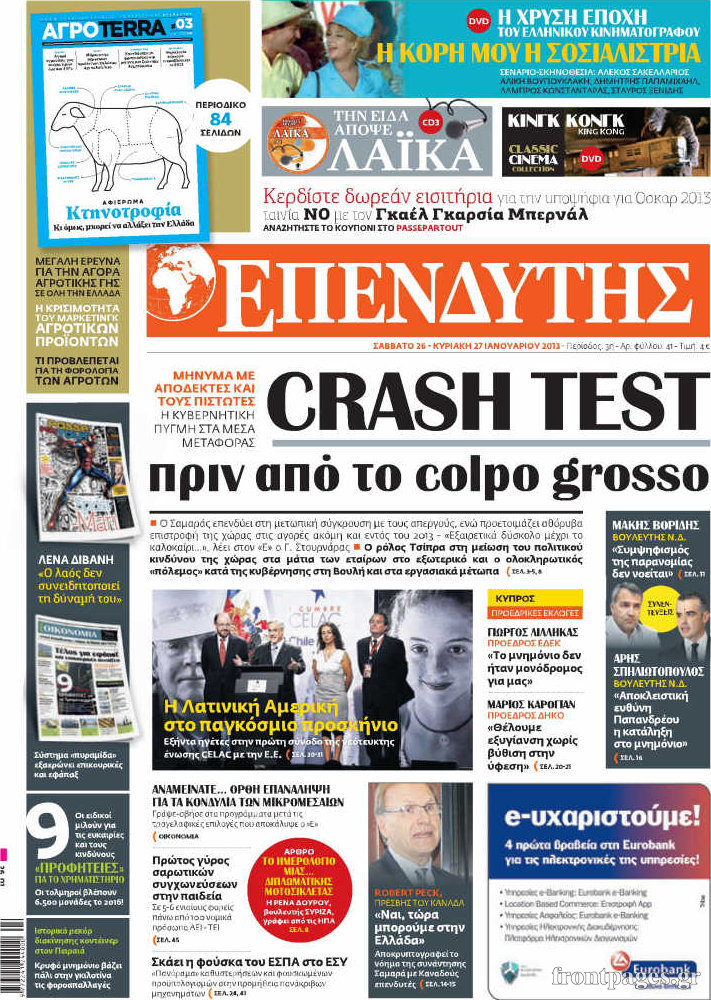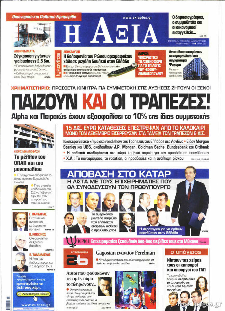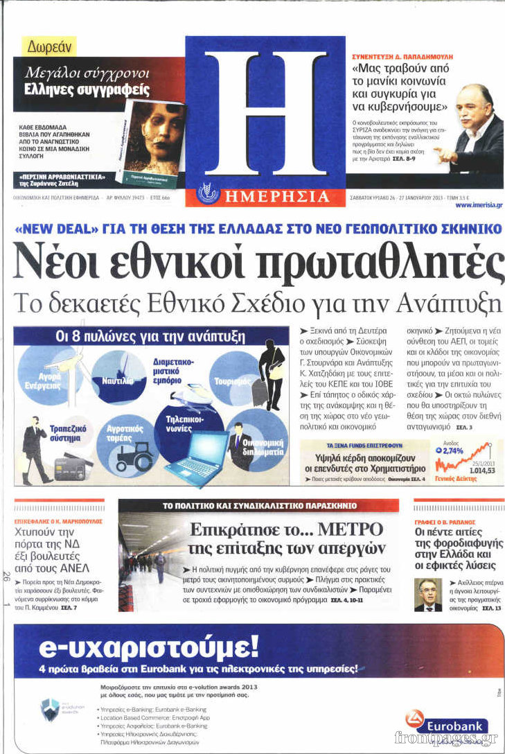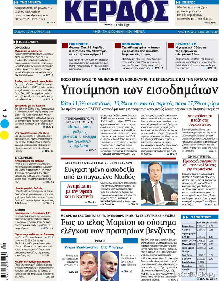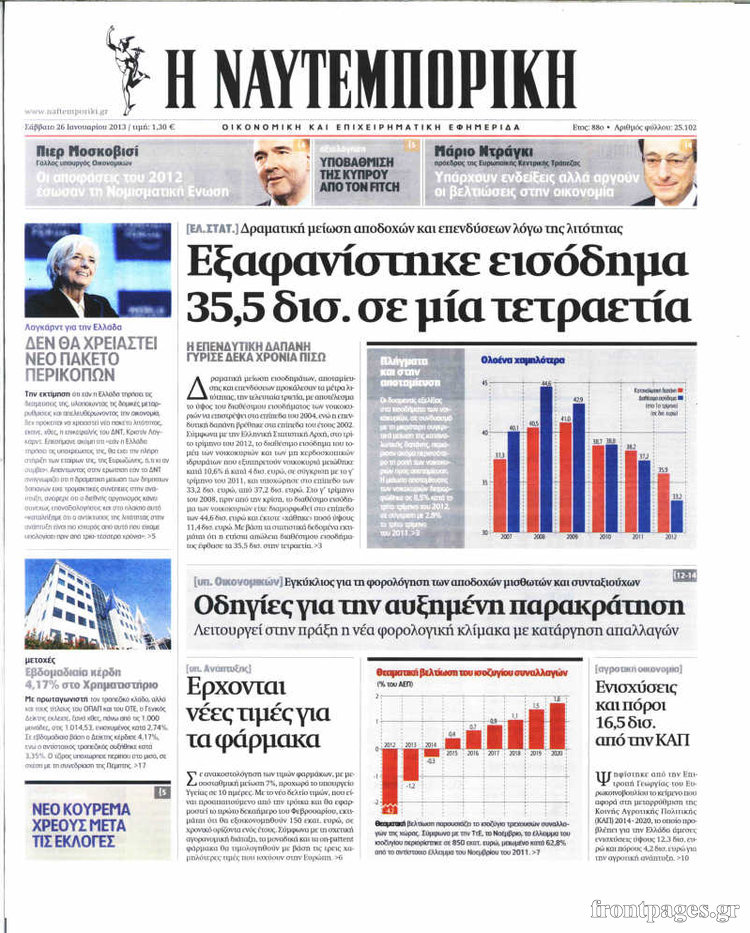 Οι οικονομικές εφημερίδες Enikos Newsroom 09:46, Σάββατο 26 Ιανουαρίου 2013 Media Οι οικονομικές εφημερίδες Τα πρωτοσέλιδα των οικονομικών εφημερίδων. ΕΦΗΜΕΡΙΔΕΣ ΟΙΚΟΝΟΜΙΚΕΣ ΕΦΗΜΕΡΙΔΕΣ ΠΡΩΤΟΣΕΛΙΔΑ Μοιράσου το: σχολίασε κι εσύ (0 σχόλια) Ακολουθήστε το enikos.gr στο Google News και μάθετε πρώτοι όλες τις ειδήσεις Δείτε όλες τις τελευταίες ειδήσεις από την Ελλάδα και τον Κόσμο στο enikos.gr Ειδήσεις Ροή Ειδήσεων 2 ώρες πριν Αυστραλία: Σχέσεις με το ISIS εκτιμάται πως είχαν οι δράστες της τρομοκρατικής επίθεσης στο Σίδνεϊ 25 λεπτά πριν Τσιάρας για αγροτικές κινητοποιήσεις: Μονόδρομος ο διάλογος – Διαφάνεια με τη μεταφορά του ΟΠΕΚΕΠΕ στην ΑΑΔΕ 2 ώρες πριν Σοκ στο Χόλιγουντ: Νεκροί από μαχαιριές ο σκηνοθέτης Ρομπ Ράινερ και η σύζυγός του – Αναφορές ότι τους σκότωσε ο γιος τους 2 ώρες πριν Αγρότες: Αμετακίνητοι από τα μπλόκα σε τελωνεία και εθνικές οδούς – Ο χάρτης των κινητοποιήσεων και τα αιτήματά τους 2 ώρες πριν Δολοφονία στη Φοινικούντα: Απολογούνται σήμερα οι δύο συλληφθέντες – Στο «κάδρο» και δύο γυναίκες 8 λεπτά πριν Τα 3 ζώδια που μπαίνουν σε μια νέα δυναμική εποχή – «Είστε έτοιμοι για όλα» 1 ώρα πριν Κληρονόμησε 2,8 εκατ. ευρώ και φοβάται ότι οι άνδρες θα την πλησιάζουν για τα λεφτά – «Μήπως καλύτερα να το κρατήσω μυστικό;» 2 ώρες πριν Κάτω από παλάτι κρυβόταν ένα άλλο μνημειώδες ανάκτορο: Οι ανασκαφές σε αρχαία πόλη αποκάλυψαν τα ερείπια και τα μυστικά του 4 ώρες πριν Διατροφή: Γιατρός προειδοποιεί για 2 απλά λάθη που αυξάνουν τον κίνδυνο χρόνιων παθήσεων 39 δευτερόλεπτα πριν Αγροτικές κινητοποιήσεις: Αποκλεισμός του τελωνείου Νίκης στη Φλώρινα και του δρόμου προς Πτολεμαΐδα 5 λεπτά πριν Το χρυσό συμβόλαιο της THEON INTERNATIONAL 8 λεπτά πριν Τα 3 ζώδια που μπαίνουν σε μια νέα δυναμική εποχή – «Είστε έτοιμοι για όλα» 15 λεπτά πριν Αλλάζει το σκηνικό του καιρού την Παρασκευή: «Το ατμοσφαιρικό βουνό υποχωρεί και ανοίγει ο δρόμος για τις κακοκαιρίες» 20 λεπτά πριν Λίλα Μπακλέση – Νατάσα Εξηνταβελώνη: «Όταν πας μια Πατρινιά και μια Περιστεριώτισσα σε εστιατόριο με Michelin – Βίντεο από την έξοδό τους ENIKOS NETWORK Έλλειψη μαγνησίου: Ποια τα συμπτώματα που επηρεάζουν ύπνο, ενέργεια και διάθεση Έχετε καλή φυσική κατάσταση; Δείτε αν μπορείτε να κάνετε αυτές τις 5 κινήσεις Δάνεια σε ελβετικό φράγκο: Ανακοινώνεται η ρύθμιση- Ποιοι και πόσο θα έχουν όφελος – Όλες οι λεπτομέρειες Τέλος οι διώξεις για χρέη σε Εφορία και ΕΦΚΑ – Τι προβλέπει νέα διάταξη μετά την πτώχευση Σύγχρονος Νοστράδαμος: Προειδοποιεί για «μεγάλο γεγονός» τους επόμενους μήνες που θα συγκλονίσει τη Βρετανία και τον κόσμο Τεστ παρατηρητικότητας: Μπορείτε να βρείτε τις 3 διαφορές στις εικόνες με έναν πιγκουίνο σε 14 δευτερόλεπτα περισσότερα 09:15 , Δευτέρα 15 Δεκεμβρίου 2025 Την Κυριακή με τη Realnews: Ό,τι και αν αγοράσεις, σκανάρεις και κερδίζεις! Την Κυριακή με τη Realnews: Ό,τι και αν αγοράσεις, σκανάρεις και κερδίζεις! Με το PADU app, το... 07:42 , Δευτέρα 15 Δεκεμβρίου 2025 Την Κυριακή με τη Realnews: Δωροεπιταγή10€ Δωροεπιταγή αξίας 10€ για αγορές άνω των 60€ από τα πολυκαταστήματα FactoryOutlet H προσφορά ι... 07:17 , Δευτέρα 15 Δεκεμβρίου 2025 Αυτή την Κυριακή με τη Realnews: Instyle, μαζί Drive και Realnews Geopolitics Αυτή την Κυριακή με τη Realnews: Instyle, μαζί Drive και Realnews Geopolitics Instyle Η Άννα Ρ... 05:49 , Δευτέρα 15 Δεκεμβρίου 2025 Οι οικονομικές εφημερίδες 15/12/2025 Διαβάστε τα πρωτοσέλιδα από τις οικονομικές εφημερίδες, σήμερα 15/12/2025. ΤΕΛΕΥΤΑΙΕΣ ΕΙΔΗΣΕΙΣ 39 δευτερόλεπτα πριν Αγροτικές κινητοποιήσεις: 