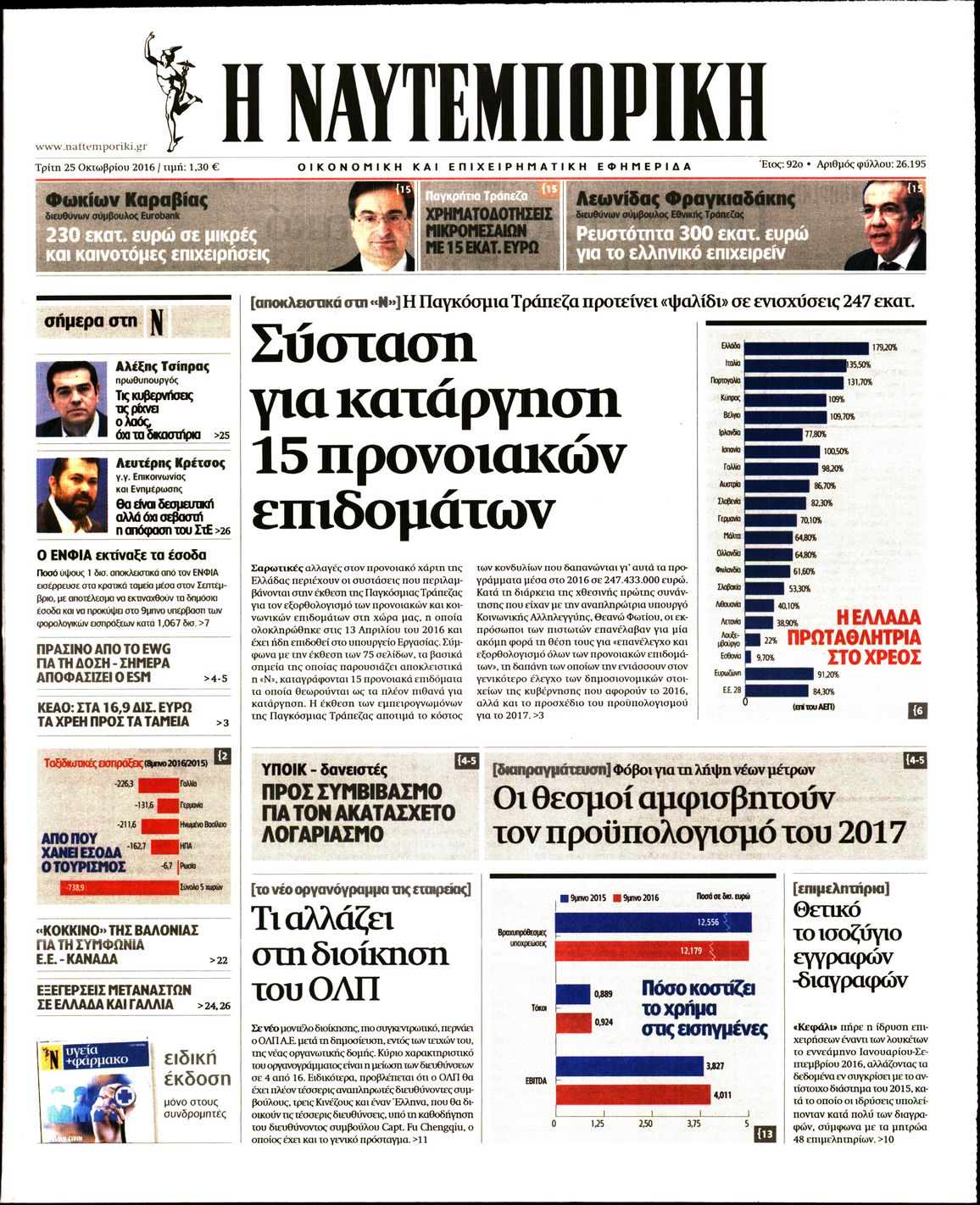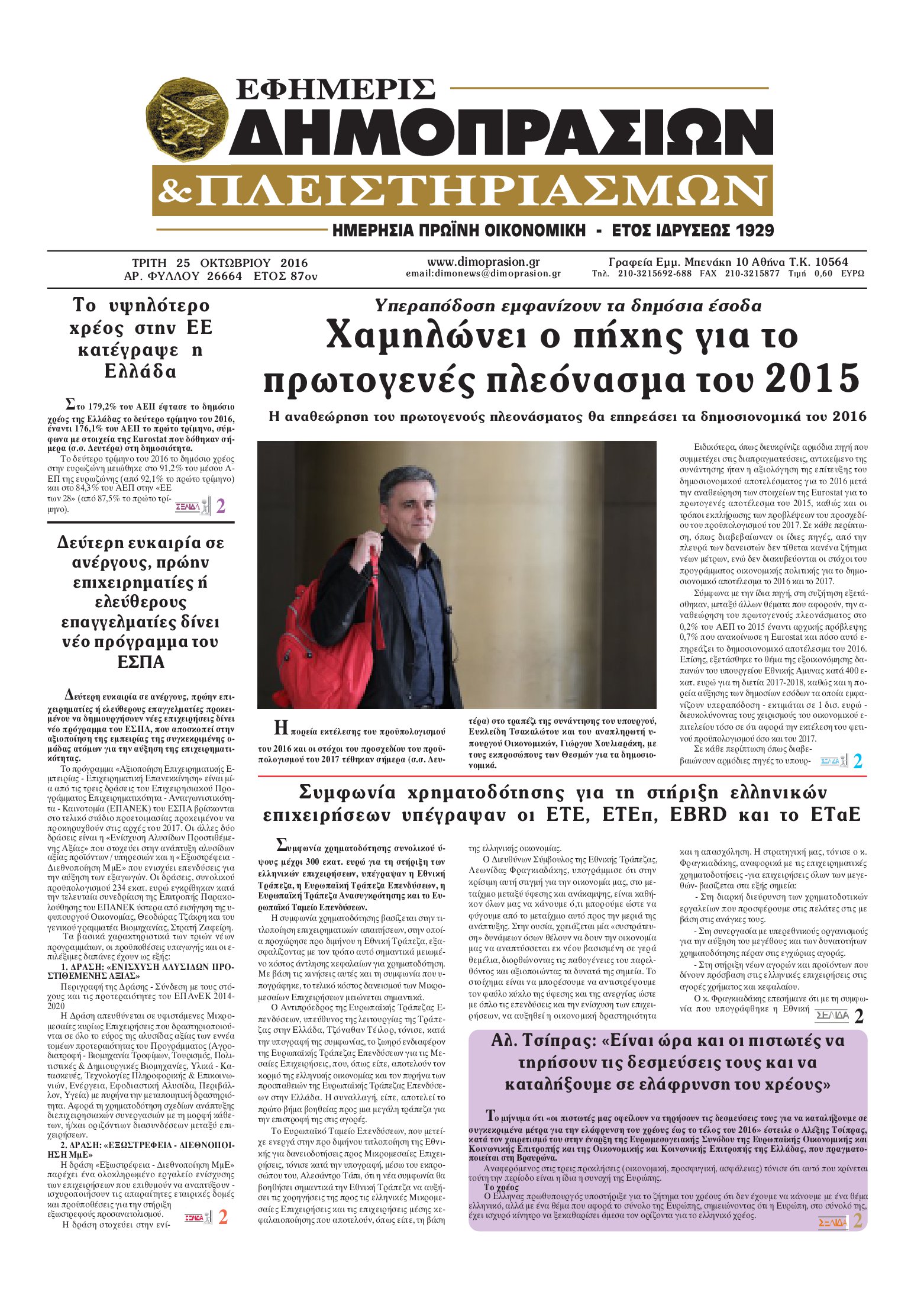Oι οικονομικές εφημερίδες 25/10/2016 Κώστας Τεό 05:50, Τρίτη 25 Οκτωβρίου 2016 Media Διαβάστε τα σημερινά πρωτοσέλιδα των οικονομικών εφημερίδων: ΟΙΚΟΝΟΜΙΚΕΣ ΕΦΗΜΕΡΙΔΕΣ ΠΡΩΤΟΣΕΛΙΔΑ Μοιράσου το: σχολίασε κι εσύ (0 σχόλια) Ακολουθήστε το enikos.gr στο Google News και μάθετε πρώτοι όλες τις ειδήσεις Δείτε όλες τις τελευταίες ειδήσεις από την Ελλάδα και τον Κόσμο στο enikos.gr Ειδήσεις Ροή Ειδήσεων 8 ώρες πριν Μητσοτάκης: Αναγκαία η μεταρρύθμιση του πρωτογενούς τομέα – Τα 6 νέα μέτρα για το στεγαστικό και οι αναφορές σε «Ιθάκη» και «πολιτικούς του καναπέ» 7 ώρες πριν Δάνεια σε ελβετικό φράγκο: Τα βασικά σημεία της ρύθμισης – ανάσας για 40.000 δανειολήπτες – Αναλυτικός οδηγός με ερωτήσεις και απαντήσεις 6 ώρες πριν Κυψέλη: Εξιτήριο πήρε η 14χρονη μαθήτρια που μαχαιρώθηκε από την 16χρονη σε σχολείο – «Θέλω να βοηθήσω το παιδί, έχει μπλέξει με κακές παρέες» 6 ώρες πριν Τραμπ: Γιατί κατέθεσε τώρα την αγωγή κατά του BBC – Πώς η κίνησή του εξυπηρετεί το νέο δόγμα του για «αντίσταση» στην Ευρώπη, υπέρ των συντηρητικών 7 ώρες πριν ΟΠΕΚΕΠΕ – Παράνομες επιδοτήσεις: Ελεύθεροι με περιοριστικούς όρους και οι 7 κατηγορούμενοι που απολογήθηκαν σήμερα 6 ώρες πριν Ανακαλύφθηκε βυθισμένη πέτρινη κατασκευή ανοιχτά της Κριμαίας – Αποτελεί μέρος αρχαίας ελληνικής αποικίας 7 ώρες πριν Ύπνος: Αυτό μπορεί να είναι το χειρότερο λάθος για το βιολογικό ρολόι σας, σύμφωνα με ειδικό 8 ώρες πριν Αριθμολογία: Οι άνθρωποι που έχουν γεννηθεί αυτές τις 3 ημερομηνίες, προσελκύουν μεγάλη τύχη πριν από το τέλος του 2025 10 ώρες πριν Οι 7 συμπεριφορές που μαρτυρούν ότι ένας άνδρας επενδύει μακροπρόθεσμα σε μια σχέση 6 λεπτά πριν Κολομβία: Νεκροί τέσσερις αστυνομικοί σε βομβιστικές επιθέσεις ανταρτών 14 λεπτά πριν Στάση εργασίας 11:00 – 17:00 σήμερα στα λεωφορεία του ΟΑΣΑ – Ποιες γραμμές θα λειτουργήσουν 30 λεπτά πριν Παλαιστινιακό: «Η λύση των δύο κρατών είναι ο μόνος βιώσιμος δρόμος», τόνισε η Ελλάδα στο Συμβούλιο Ασφαλείας του ΟΗΕ 37 λεπτά πριν Ελένη Καρακάση: «Ένιωθα πολύ αδικημένη, δεν μπορούσα να ελέγξω τον εαυτό μου σε δύσκολες στιγμές» 45 λεπτά πριν Κλαούδια Σέινμπαουμ προς Ντόναλντ Τραμπ για φαιντανύλη: Να επιτεθούμε στα αίτια κατανάλωσης αντί να την κατατάσσουμε στα «όπλα μαζικής καταστροφής» ENIKOS NETWORK Αίτημα ΙΣΑ για την εξαίρεση των προσωπικών γιατρών από τις κατ’ οίκον επισκέψεις Η σκανδιναβική μέθοδος στον ύπνο που μπορεί να σώσει έναν γάμο Πιερρακάκης: Ο προϋπολογισμός συμβάλλει ουσιαστικά στην ενίσχυση της αγοραστικής δύναμης της πλειονότητας των εργαζομένων e-ΕΦΚΑ: Παρατείνεται η προθεσμία για την υποβολή ΑΠΔ – Ποιους αφορά Σύγχρονος Νοστράδαμος: Προειδοποιεί για «μεγάλο γεγονός» τους επόμενους μήνες που θα συγκλονίσει τη Βρετανία και τον κόσμο Τεστ παρατηρητικότητας: Μπορείτε να βρείτε τις 3 διαφορές στις εικόνες με έναν πιγκουίνο σε 14 δευτερόλεπτα περισσότερα 20:06 , Τρίτη 16 Δεκεμβρίου 2025 Ο ΣΚΑΙ καταγγέλλει τον ΕΚΚΟΜΕΔ Επιστολή με την οποία καταγράφει την έντονη διαμαρτυρία του προς τον διευθύνοντα σύμβουλο του... 17:40 , Τρίτη 16 Δεκεμβρίου 2025 Eurovision: Στις 4 Ιανουαρίου αποκαλύπτονται τα 28 τραγούδια του ελληνικού τελικού Η αγωνία τελειώνει, η γιορτή της Eurovision αρχίζει στην ΕΡΤ από τις πρώτες ημέρες της νέας χρ... 17:09 , Τρίτη 16 Δεκεμβρίου 2025 Alter Ego Media: Βαθύτατη θλίψη και ειλικρινή συλλυπητήρια για την απώλεια της Ειρήνης Μαρινάκη Τη βαθύτατη θλίψη και τα ειλικρινή συλλυπητήριά της εκφράζει η Alter Ego Media για τ