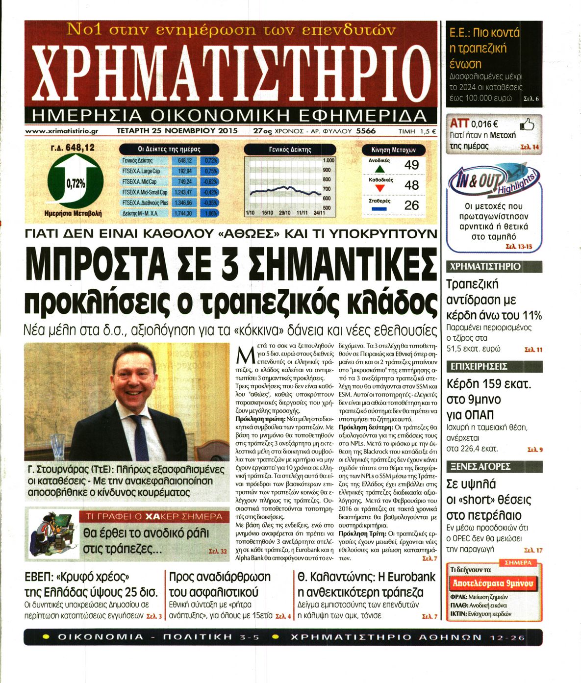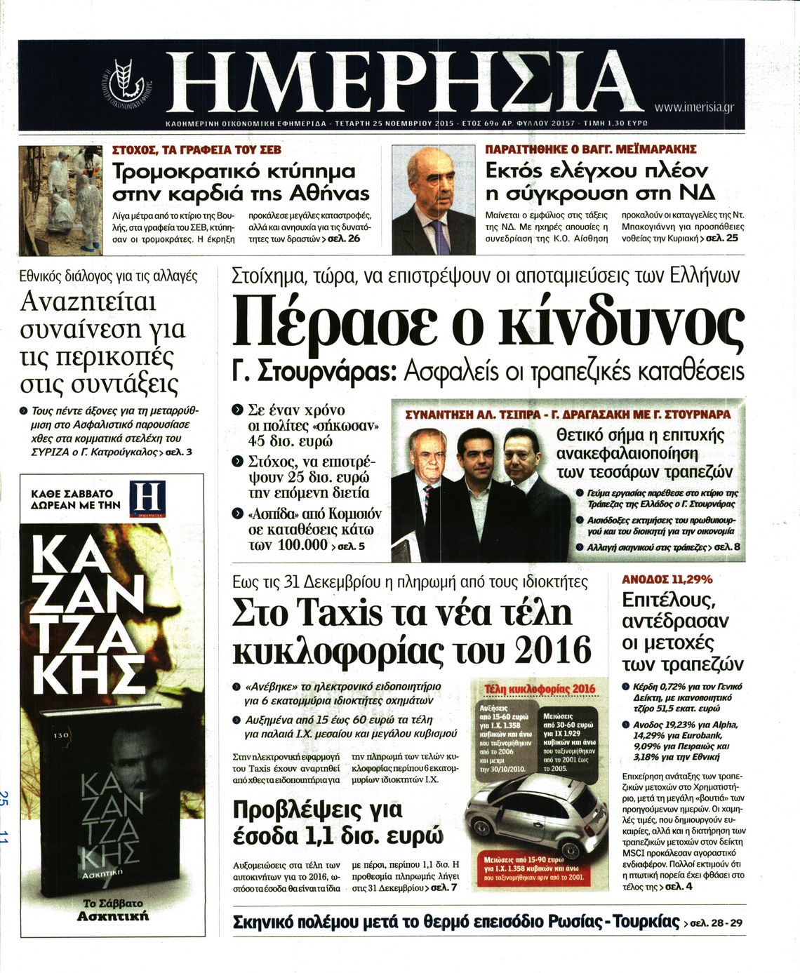 Oι οικονομικές εφημερίδες 25/11/2015 Enikos Newsroom 06:00, Τετάρτη 25 Νοεμβρίου 2015 Media Διαβάστε τα σημερινά πρωτοσέλιδα των οικονομικών εφημερίδων: ΟΙΚΟΝΟΜΙΚΕΣ ΕΦΗΜΕΡΙΔΕΣ ΠΡΩΤΟΣΕΛΙΔΑ Μοιράσου το: σχολίασε κι εσύ (0 σχόλια) Ακολουθήστε το enikos.gr στο Google News και μάθετε πρώτοι όλες τις ειδήσεις Δείτε όλες τις τελευταίες ειδήσεις από την Ελλάδα και τον Κόσμο στο enikos.gr Ειδήσεις Ροή Ειδήσεων 4 ώρες πριν Μεσόγειος: Η διαδρομή του ρωσικού τάνκερ «Qendil» και η στοχευμένη επίθεση της Ουκρανίας με drone – Ο Πούτιν προειδοποίησε για αντίποινα 44 λεπτά πριν Αγρότες: Έκλεισαν για μία ώρα την παρακαμπτήρια της Ιόνιας Οδού στη θέση Χαλίκι 2 ώρες πριν Εμπλοκή και αερομαχίες με οπλισμένα τουρκικά F-16 στο Αιγαίο 2 ώρες πριν Πούτιν: «Ναι, είμαι ερωτευμένος» – Βίντεο από τη σπάνια προσωπική παραδοχή του 47 λεπτά πριν Ανδρέας Λυκουρέντζος: Υπέβαλε την παραίτησή του ο πρόεδρος του ΕΛΓΑ, αλλά δεν έγινε δεκτή – Όλο το παρασκήνιο 57 λεπτά πριν Αριθμολογία: Οι άνθρωποι που έχουν γεννηθεί αυτές τις 4 ημερομηνίες, συχνά παρεξηγούνται – «Η καλοσύνη τους κρύβει τεράστια δύναμη» 3 ώρες πριν Μήπως έχετε χάσει τον εαυτό σας στη σχέση σας; 7 «αθόρυβες» υποχωρήσεις που μάλλον κάνατε, χωρίς να το συνειδητοποιήσετε 2 ώρες πριν Ξεχάστε το καθάρισμα το Σαββατοκύριακο: Ο «κανόνας των 20 λεπτών» που θα σας λύσει τα χέρια 5 ώρες πριν Κουίζ για την παλιά Αθήνα: Αναγνωρίζετε την περιοχή; Έχετε περάσει 100% από εκεί 3 λεπτά πριν ΕΕ: «Κάποια στιγμή θα χρησιμοποιήσουμε τα ρωσικά περιουσιακά στοιχεία» δήλωσε ο πρόεδρος του ΕΛΚ 7 λεπτά πριν Conference League: Καλύτερη επίθεση η ΑΕΚ στη διοργάνωση και 2η σε προσπάθειες στην εστία – Ξεχωρίζουν Πινέδα, Ελίασον και Ρότα 9 λεπτά πριν Έγκυος η Άννα Κορακάκη: «Η οικογένειά μας μεγαλώνει…» – Η αποκάλυψη για το φύλο του μωρού 16 λεπτά πριν Τραγωδία στο Βελεστίνο: Πέθανε ο αντιδήμαρχος Γιάννης Παπαϊωάννου 20 λεπτά πριν Ολυμπιακός – Βιλερμπάν: Μάτωσε στο πρόσωπο ο Παπανικολάου έπειτα από αγκωνιά του Βοτιέ – ΦΩΤΟ ENIKOS NETWORK Το ΕΚΑΒ τιμήθηκε από την Ακαδημία Αθηνών για τα 40 χρόνια προσφοράς του Έχετε πραγματικά μεγάλη καρδιά; 10 χαρακτηριστικά όσων έχουν καλοσύνη Έρχονται νέες προσλήψεις σε Δήμο – Όλες οι λεπτομέρειες Επίδομα παιδιού: Πότε ανοίγει ξανά η πλατφόρμα για τις αιτήσεις Χαρτογραφώντας το «σημείο χωρίς επιστροφή»: Για πρώτη φορά αποκαλύπτεται με λεπτομέρεια το ακανθώδες όριο της ατμόσφαιρας τ... Η Google καταργεί τη λειτουργία «dark web report» – Πώς θα μπορούν οι χρήστες να διαγράφουν τα δεδομένα τους περισσότερα 20:37 , Παρασκευή 19 Δεκεμβρίου 2025 Don’t Forget The Lyrics: Η Έλλη Κοκκίνου υποδέχεται 4 παίκτες που θα κάνουν τα πάντα για να μη χάσουν ούτε… μισή λέξη από τους στίχους Το «Don’t Forget The Lyrics» επιστρέφει απόψε, Παρασκευή 19 Δεκεμβρίου, στις 21:00 με νέο επει... 19:31 , Παρασκευή 19 Δεκεμβρίου 2025 GNTM: Απόψε ο μεγάλος τελικός για τους 4 φιναλίστ Έπειτα από μήνες γεμάτους μόδα, δημιουργία και έντονες αναμετρήσεις, το GNTM 2025 κορυφώνεται,... 18:11 , Παρασκευή 19 Δεκεμβρίου 2025 Το σόι σου: Ο Άρης έρχεται στην Ελλάδα για τις γιορτές των Χριστουγέννων – Τι θα δούμε στο αποψινό εορταστικό επεισόδιο Ένα απολαυστικό, εορταστικό επεισόδιο της σειράς “Το σόι σου”, γεμάτο ευτράπελα αλ... 15:15 , Παρασκευή 19 Δεκεμβρίου 2025 Την Κυριακή με τη Realnews: Ό,τι και αν αγοράσεις, σκανάρεις και κερδίζεις! Την Κυριακή με τη Realnews: Ό,τι και αν αγοράσεις, σκανάρεις και κερδίζεις! Με το PADU app, το... ΤΕΛΕΥΤΑΙΕΣ ΕΙΔΗΣΕΙΣ 3 λεπτά πριν ΕΕ: «Κάποια στιγμή θα χρ