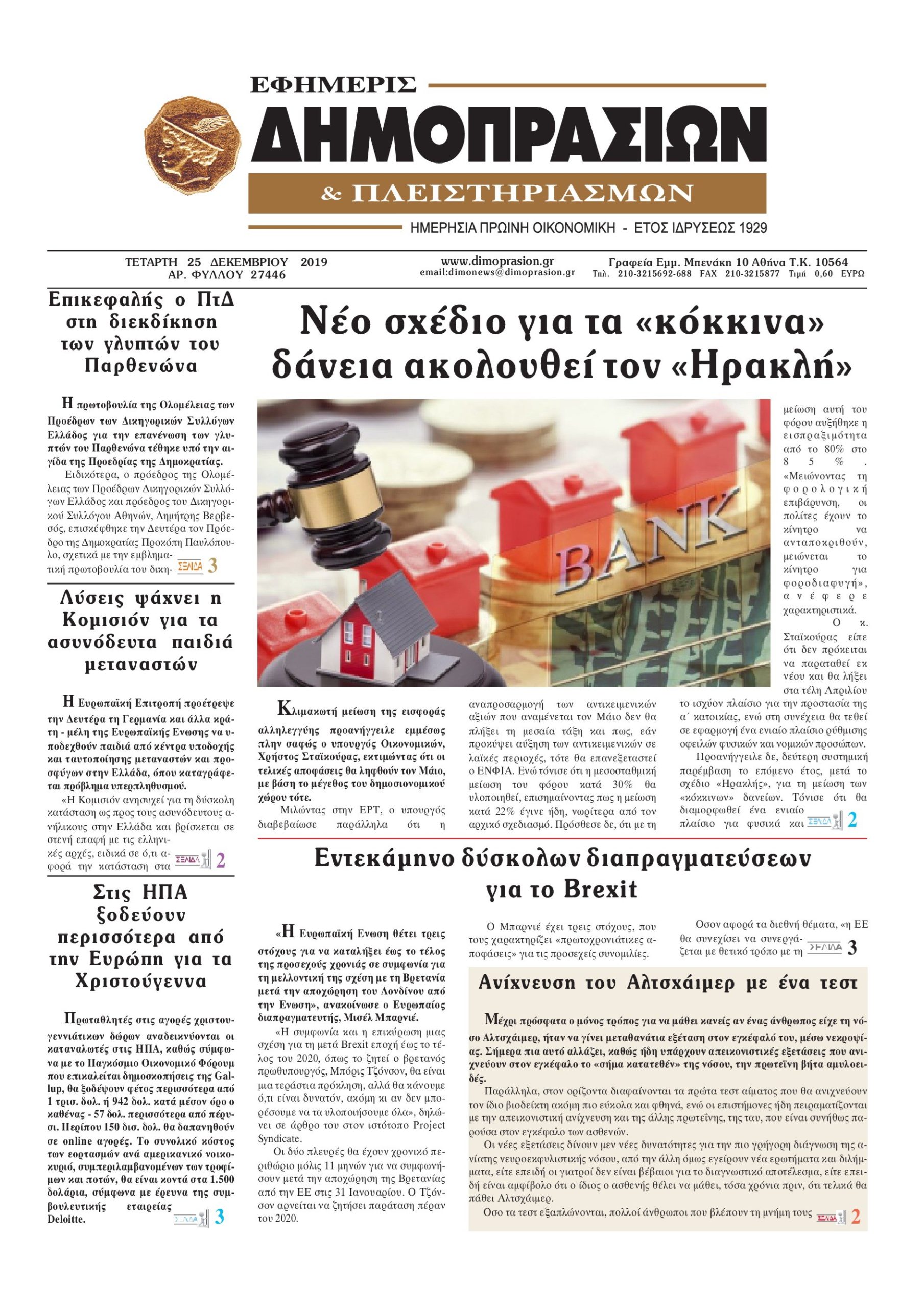 Οι οικονομικές εφημερίδες 25/12/2019 Κώστας Τεό 07:45, Τετάρτη 25 Δεκεμβρίου 2019 Media Διαβάστε τα πρωτοσέλιδα των οικονομικών εφημερίδων: ΟΙΚΟΝΟΜΙΚΕΣ ΕΦΗΜΕΡΙΔΕΣ ΠΡΩΤΟΣΕΛΙΔΑ Μοιράσου το: σχολίασε κι εσύ (0 σχόλια) Ακολουθήστε το enikos.gr στο Google News και μάθετε πρώτοι όλες τις ειδήσεις Δείτε όλες τις τελευταίες ειδήσεις από την Ελλάδα και τον Κόσμο στο enikos.gr Ειδήσεις Ροή Ειδήσεων 5 ώρες πριν Χριστούγεννα στα μπλόκα: Επιμένουν στις κινητοποιήσεις τους οι αγρότες – Ανοίγουν τα διόδια το Σαββατοκύριακο 6 ώρες πριν Ουκρανία: Η άνευ προηγουμένου επίθεση σε ρωσικό τάνκερ στη Μεσόγειο και το μήνυμα προς στον Πούτιν – Το «μακρύ χέρι» του Κιέβου 5 ώρες πριν Πούτιν: Τα μηνύματα σε Ευρώπη και ΝΑΤΟ από το μαραθώνιο «σόου» του – Η απαίτηση για «σεβασμό» και η ειρήνη «με τους όρους» της Μόσχας 6 ώρες πριν Τραμπ: Δεν αποκλείει την πιθανότητα ενός πολέμου στη Βενεζουέλα – «Ο Μαδούρο ξέρει καλύτερα από τον καθένα τι ακριβώς θέλω» 7 ώρες πριν Συνεχίζει να προκαλεί ο Μίτσκοσκι: «Για μένα το όνομα Μακεδονία είναι ιερό» 5 ώρες πριν Ανακαλύφθηκαν αρχαία χρυσά νομίσματα 2.200 ετών που απεικονίζουν τον θεό Απόλλωνα – Η άγνωστη σύνδεση με τον Φίλιππο Β΄ της Μακεδονίας 6 ώρες πριν Ύπνος: Μια κρυφή κατάσταση του εγκεφάλου πριν από τον ύπνο μπορεί να είναι το “κλειδί” για υψηλή ευφυΐα και δημιουργικότητα 7 ώρες πριν Αριθμολογία: Οι άνθρωποι που έχουν γεννηθεί αυτές τις 4 ημερομηνίες, συχνά παρεξηγούνται – «Η καλοσύνη τους κρύβει τεράστια δύναμη» 8 ώρες πριν Ξεχάστε το καθάρισμα το Σαββατοκύριακο: Ο «κανόνας των 20 λεπτών» που θα σας λύσει τα χέρια 2 λεπτά πριν Βολιβία: Μαζική διαδηλώσεις εναντίον της κατάργησης των επιδοτήσεων των τιμών των καυσίμων 17 λεπτά πριν Φως στο Τούνελ: Έφτασε η ώρα της αλήθειας για την δολοφονία της χήρας του πρώην υπουργού στο Κολωνάκι 33 λεπτά πριν Ντόναλντ Τραμπ: Προστέθηκε το όνομά του στην πρόσοψη του Κέντρου Κένεντι – Οργισμένη αντίδραση των συγγενών του JFK 48 λεπτά πριν Ταμίλα Κουλίεβα: «Δεν θέλω να είμαι κάποια που πορεύεται συνεχώς με τις ίδιες αναφορές» 1 ώρα πριν Η Ελλάδα προσχωρεί στη Διεθνή Επιτροπή Αποζημιώσεων για την Ουκρανία ENIKOS NETWORK Το ΕΚΑΒ τιμήθηκε από την Ακαδημία Αθηνών για τα 40 χρόνια προσφοράς του Έχετε πραγματικά μεγάλη καρδιά; 10 χαρακτηριστικά όσων έχουν καλοσύνη Αναστολή μέτρων αναγκαστικής εκτέλεσης για κτηνοτρόφους που πλήττονται από την ευλογιά των αιγοπροβάτων Πλήρης επάρκεια προϊόντων στις λαϊκές της Αττικής, παρά τις αγροτικές κινητοποιήσεις – Τι απαντούν οι πωλητές Χαρτογραφώντας το «σημείο χωρίς επιστροφή»: Για πρώτη φορά αποκαλύπτεται με λεπτομέρεια το ακανθώδες όριο της ατμόσφαιρας τ... Η Google καταργεί τη λειτουργία «dark web report» – Πώς θα μπορούν οι χρήστες να διαγράφουν τα δεδομένα τους περισσότερα 02:50 , Σάββατο 20 Δεκεμβρίου 2025 GNTM: Η Ξένια Τσίρκοβα αναδείχθηκε μεγάλη νικήτρια και πήρε τις 50.000 ευρώ – Ποιος βρέθηκε σε απόσταση αναπνοής; Με φαντασμαγορικό τρόπο ολοκληρώθηκε το βράδυ της Παρασκευής ο μεγάλος τελικός του GNTM, μέσα ... 22:42 , Παρασκευή 19 Δεκεμβρίου 2025 Γιώργος Γιαννόπουλος για “Το σόι σου”: “Είναι ευτυχία και ευλογία αυτή η σειρά” «Είναι ευτυχία και ευλογία η συγκυρία αυτής της σειράς», θα πει ο Γιώργος Γιαννόπουλος -ο αγαπ... 20:37 , Παρασκευή 19 Δεκεμβρίου 2025 Don’t Forget The Lyrics: Η Έλλη Κοκκίνου υποδέχεται 4 παίκτες που θα κάνουν τα πάντα για να μη χάσουν ούτε… μισή λέξη από τους στίχους Το «Don’t Forget The Lyrics» επιστρέφει από