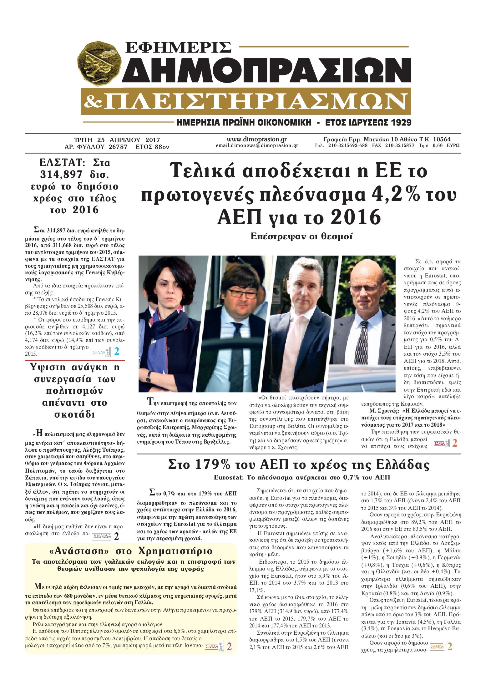 Οι οικονομικές εφημερίδες 25/4/2017 Enikos Newsroom 07:35, Τρίτη 25 Απριλίου 2017 Media Διαβάστε τα σημερινά πρωτοσέλιδα των οικονομικών εφημερίδων: ΟΙΚΟΝΟΜΙΚΕΣ ΕΦΗΜΕΡΙΔΕΣ ΠΡΩΤΟΣΕΛΙΔΑ Μοιράσου το: σχολίασε κι εσύ (0 σχόλια) Ακολουθήστε το enikos.gr στο Google News και μάθετε πρώτοι όλες τις ειδήσεις Δείτε όλες τις τελευταίες ειδήσεις από την Ελλάδα και τον Κόσμο στο enikos.gr Ειδήσεις Ροή Ειδήσεων 8 ώρες πριν Εκτός ευρωομάδας ΣΥΡΙΖΑ ο Νίκος Παππάς μετά την επίθεση στον δημοσιογράφο Νίκο Γιαννόπουλο – Η μήνυση και οι νέες δηλώσεις 8 ώρες πριν «Αγριεύουν» οι αγρότες: «Δεν συντρέχει λόγος συνάντησης με τον πρωθυπουργό» – Ώρα αποφάσεων στη σύσκεψη της Πέμπτης 8 ώρες πριν Κυψέλη: Χωρίς την οικογένειά της δίπλα της απολογήθηκε η 16χρονη – «Της είχε επιτεθεί κάποιος για να την βιάσει, φοβήθηκε και κυκλοφορούσε με μαχαίρι» 8 ώρες πριν Politico: Το πρόβλημα της Ευρώπης δεν είναι το Βέλγιο αλλά ο Ντόναλντ Τραμπ 10 ώρες πριν Αλεξανδρούπολη: Πολυοργανική ανεπάρκεια λόγω υποσιτισμού η αιτία θανάτου του 3χρονου αγοριού 1 ώρα πριν Καούρα: Το μπαχαρικό που είναι «εξίσου αποτελεσματικό» με την ομεπραζόλη, σύμφωνα με ειδικούς 2 ώρες πριν Τα ζώδια σήμερα, Πέμπτη 18 Δεκεμβρίου: Λέοντες, η καρδιά σας θέλει να εκφραστεί 8 ώρες πριν Μυστήριο με τεράστιες κυκλικές πέτρες 200 κιλών – Ανακαλύφθηκαν τυχαία κατά τη διάρκεια οδικών έργων και κανείς δεν ξέρει από πού προέρχονται 22 ώρες πριν 20 χρόνια τα Χριστούγεννα ξεκινούν στα Public με μεγάλη ποικιλία σε δώρα! 7 λεπτά πριν Εορτολόγιο: Ποιοι γιορτάζουν σήμερα 18 Δεκεμβρίου 18 λεπτά πριν Επιχειρήσεις: Έρχονται νέα μέτρα φορολογικών ελαφρύνσεων – Τα σχέδια για την προκαταβολή φόρου και το τέλος επιτηδεύματος 26 λεπτά πριν ΗΠΑ: Οριστική άρση κυρώσεων κατά της Συρίας – Ανοίγει ο δρόμος για επενδύσεις 34 λεπτά πριν Οι τελευταίες εξελίξεις στην εμπορική συμφωνία Ευρωπαϊκής Ένωσης – Mercosur 38 λεπτά πριν Ρεκόρ εσόδων για τον Παναμά από τα τέλη διέλευσης της Διώρυγας ENIKOS NETWORK Μπορείτε να εντοπίσετε το ποντικάκι που κρύβεται πίσω από όλα τα μανιτάρια; Μόνο όσοι έχουν τα μάτια γερακιού μπορούν να λύ... Το «λουλούδι σκαντζόχοιρος» που μπορεί να ενισχύσει το ανοσοποιητικό, να μειώσει τη φλεγμονή και να ρυθμίσει το σάκχαρο ΕΛΣΤΑΤ: Τι δείχνουν τα νέα στοιχεία για τις ηλεκτρονικές παραγγελίες των επιχειρήσεων ΚΕΠΕ: Οι 3 διακριτές συμβολές των ΜμΕ και της μεταποίησης στην ελληνική οικονομία Χαρτογραφώντας το «σημείο χωρίς επιστροφή»: Για πρώτη φορά αποκαλύπτεται με λεπτομέρεια το ακανθώδες όριο της ατμόσφαιρας τ... Η Google καταργεί τη λειτουργία «dark web report» – Πώς θα μπορούν οι χρήστες να διαγράφουν τα δεδομένα τους περισσότερα 05:48 , Πέμπτη 18 Δεκεμβρίου 2025 Οι οικονομικές εφημερίδες 18/12/2025 Διαβάστε τα πρωτοσέλιδα από τις οικονομικές εφημερίδες, σήμερα 18/12/2025. 05:43 , Πέμπτη 18 Δεκεμβρίου 2025 Οι αθλητικές εφημερίδες 18/12/2025 Διαβάστε τα πρωτοσέλιδα από τις αθλητικές εφημερίδες, σήμερα 18/12/2025. 05:38 , Πέμπτη 18 Δεκεμβρίου 2025 Οι πολιτικές εφημερίδες 18/12/2025 Διαβάστε τα πρωτοσέλιδα από τις πολιτικές εφημερίδες, σήμερα 18/12/2025. 05:22 , Πέμπτη 18 Δεκεμβρίου 2025 Το Ποντίκι σήμερα Πέμπτη 18/12/2025 Διαβάστε το πρωτοσέλιδο της εφημερίδας «Το Ποντίκι» σήμερα 18/12/2025. ΤΕΛΕΥΤΑΙΕΣ ΕΙΔΗΣΕΙΣ 7 λεπτά πριν Εορτολόγιο: Ποιοι γιορτάζουν σήμερα 18 Δεκεμβρίου 18 λεπτά πριν Επιχειρήσεις: Έρχονται νέα μέτρα φορολογικών... 26 λεπτά πριν ΗΠΑ: Οριστική άρση κυρώσεων κατά της Συρίας – Ανοίγει... 34 λεπτά πριν Οι τελευταίες εξελίξεις στη