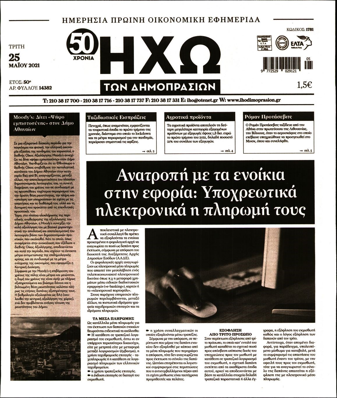Οι οικονομικές εφημερίδες 25/5/2021 Διονύσης Νίκκας 06:49, Τρίτη 25 Μαΐου 2021 Media Διαβάστε τα πρωτοσέλιδα των οικονομικών εφημερίδων… ΟΙΚΟΝΟΜΙΚΕΣ ΕΦΗΜΕΡΙΔΕΣ Μοιράσου το: σχολίασε κι εσύ (0 σχόλια) Ακολουθήστε το enikos.gr στο Google News και μάθετε πρώτοι όλες τις ειδήσεις Δείτε όλες τις τελευταίες ειδήσεις από την Ελλάδα και τον Κόσμο στο enikos.gr Ειδήσεις Ροή Ειδήσεων 3 ώρες πριν ΑΑΔΕ: Στον Εισαγγελέα οι πρώτες 50 μαζικές διαγραφές αγρών στο Ε9 – Εξετάζονται συνολικά 3.000 περιπτώσεις 60 λεπτά πριν Τουρκία: Σε ουδέτερη χώρα θα αναλυθεί το μαύρο κουτί του αεροσκάφους που συνετρίβη 22 λεπτά πριν Αττική: Προβλήματα σε κεντρικούς δρόμους από την ισχυρή βροχόπτωση και το χαλάζι – ΒΙΝΤΕΟ 2 ώρες πριν Αττική: Έπεσε από πατίνι η 14χρονη που εντοπίστηκε τραυματισμένη – Νοσηλεύεται στη νευροχειρουργική κλινική 3 ώρες πριν Ζελένσκι: Πέρασε στην αντεπίθεση με το σχέδιο ειρήνης – Ζητεί συνάντηση με Τραμπ για το εδαφικό 2 ώρες πριν Τα 5 ζώδια που έχουν μεγάλες πιθανότητες να πλουτίσουν το 2026 – «Οι οικονομικές δυσκολίες ανήκουν στο παρελθόν» 3 ώρες πριν Επιστήμονες ανακάλυψαν κάτι συγκλονιστικό – Η μάζα μπορεί να προέρχεται από αόρατες διαστάσεις 7 ώρες πριν Γυναίκα που έχασε 30 κιλά αποκαλύπτει τα μυστικά της επιτυχίας της – «Οι υδατάνθρακες είναι καύσιμο του οργανισμού, όχι εχθρός» 6 ώρες πριν Οι άνθρωποι που αποφεύγουν να γιορτάσουν τα Χριστούγεννα με την οικογένειά τους, συνήθως είχαν αυτές τις 8 εμπειρίες στην παιδική ηλικία 58 δευτερόλεπτα πριν Ηλεία: 16χρονος έπεσε θύμα ξυλοδαρμού από συνομήλικό του – Μεταφέρθηκε στο νοσοκομείο 8 λεπτά πριν Ρωσία: Οι μυστικές υπηρεσίες ανακοίνωσαν ότι απέτρεψαν «τρομοκρατική επίθεση» σε εγκατάσταση αγωγού πετρελαίου 14 λεπτά πριν Ομοβροντία πυρών από τους Ευρωπαίους για τις αμερικανικές κυρώσεις – «Θα συνεχίσουμε να προστατεύουμε την ελευθερία της έκφρασης» 19 λεπτά πριν Χριστούγεννα σημαίνουν… Ευχοστολίδια! Μαζί με τον ΟΠΑΠ διπλασιάζουμε την προφορά στα παιδιά και κάνουμε τις ευχές τους πραγματικότητα 22 λεπτά πριν Αττική: Προβλήματα σε κεντρικούς δρόμους από την ισχυρή βροχόπτωση και το χαλάζι – ΒΙΝΤΕΟ ENIKOS NETWORK ΕΟΔΥ: Οι «χρυσές» συμβουλές για να απολαύσουμε το Χριστουγεννιάτικο τραπέζι χωρίς υπερβολές New Year’s Resolutions: Μικρές αποφάσεις για μια καλή χρονιά «Κινούμαι Ηλεκτρικά ΙΙΙ»: Έρχεται νέα ΚΥΑ για το πρόγραμμα – Τι θα αναφέρει ΕΒΕA: Ποιοι μπορούν να υποβάλουν αίτηση για τη Θερμοκοιτίδα Νεοφυών Επιχειρήσεων Αθήνας και μέχρι πότε Ο Google Assistant θα παραμείνει λίγο περισσότερο για ορισμένους χρήστες Android Τεστ προσωπικότητας: Το βάζο που θα επιλέξετε αποκαλύπτει πώς λύνετε προβλήματα στη ζωή σας περισσότερα 16:12 , Τετάρτη 24 Δεκεμβρίου 2025 ALPHA: Παραμονή Χριστουγέννων με τον Κωνσταντίνο Αργυρό Ο Alpha παρουσιάζει απόψε σε πρώτη τηλεοπτική μετάδοση τη συναρπαστική και sold out εμφάνιση ... 15:51 , Τετάρτη 24 Δεκεμβρίου 2025 ‘Αγιος Έρωτας: Ο σεισμός που έκοψε την ανάσα – Δείτε τις συγκλονιστικές σκηνές Με έναν συγκλονιστικό τρόπο έκλεισε χθες βράδυ το τελευταίο επεισόδιο του 2025 της σειράς R... 13:27 , Τετάρτη 24 Δεκεμβρίου 2025 Ο Χριστουγεννιάτικος Τηλεμαραθώνιος του ΑΝΤ1 ένωσε τους πολιτικούς αρχηγούς – Τα εγκωμιαστικά σχόλια για τον Θοδωρή Κυριακού Σπάνια ομοφωνία: Όλοι οι πολιτικοί αρχηγοί αποθεώνουν τον Θοδωρή Κυριακού Ο Χριστουγεννιάτικος... 12:05 , Τετάρτη 24 Δεκεμβρίου 2025 Έξοδος εκδρομέων για τα Χριστούγεννα: Στείλε βίντεο ή φωτογραφίες στο enikos.gr –