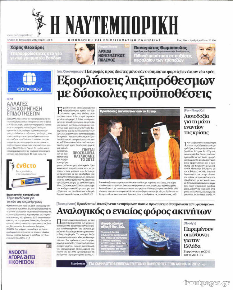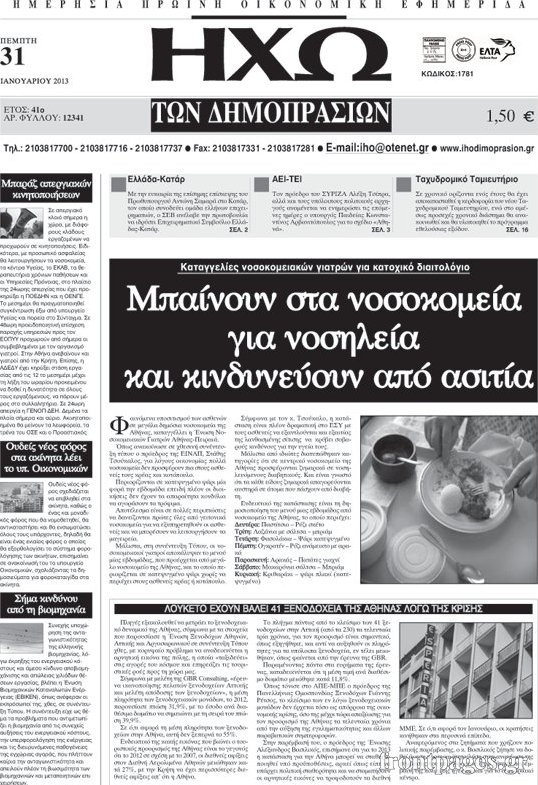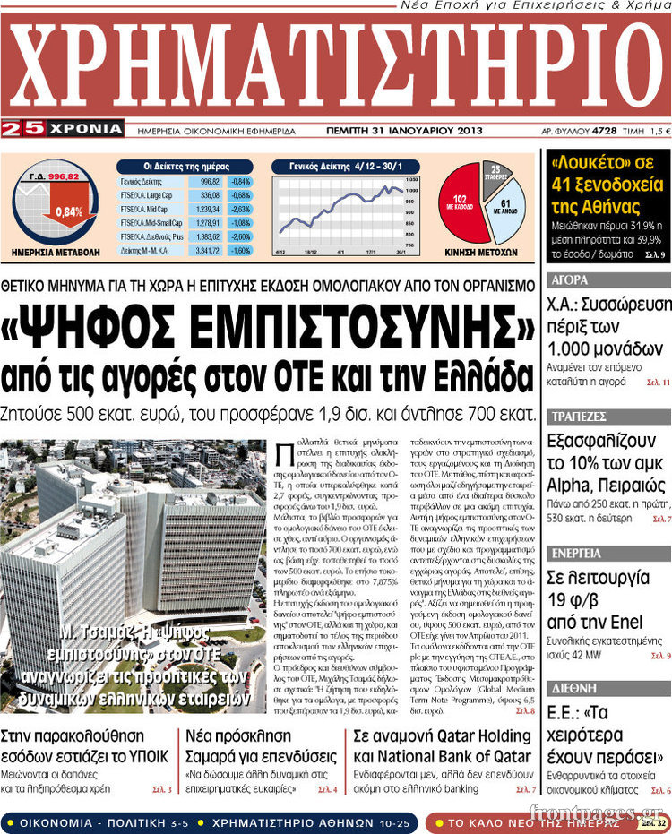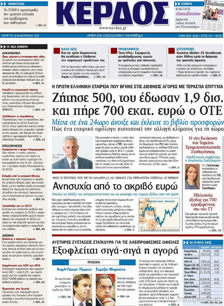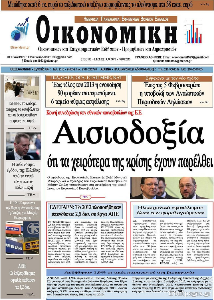 Οι οικονομικές εφημερίδες Enikos Newsroom 08:27, Πέμπτη 31 Ιανουαρίου 2013 Media Οι οικονομικές εφημερίδες ΕΦΗΜΕΡΙΔΕΣ ΕΦΗΜΕΡΙΔΕΣ ΠΡΩΤΟΣΕΛΙΔΑ ΟΙΚΟΝΟΜΙΚΕΣ ΕΦΗΜΕΡΙΔΕΣ Μοιράσου το: σχολίασε κι εσύ (0 σχόλια) Ακολουθήστε το enikos.gr στο Google News και μάθετε πρώτοι όλες τις ειδήσεις Δείτε όλες τις τελευταίες ειδήσεις από την Ελλάδα και τον Κόσμο στο enikos.gr Ειδήσεις Ροή Ειδήσεων 2 ώρες πριν ΟΠΕΚΕΠΕ – Κρήτη: Στην Ευρωπαϊκή Εισαγγελία οι 15 από τους 16 συλληφθέντες για τις παράνομες επιδοτήσεις 1 ώρα πριν Μακελειό στο Πανεπιστήμιο Μπράουν: Ένοπλος σκότωσε 2 άτομα και τραυμάτισε 9 – Το χρονικό των «ματωμένων» εξετάσεων και το βίντεο με τον ύποπτο δράστη 10 ώρες πριν Ανυποχώρητοι οι αγρότες: Δεν πάνε στο Μαξίμου, κλιμακώνουν τις κινητοποιήσεις – Ποια είναι τα αιτήματά τους 1 ώρα πριν Κυριακή με ανοιχτά καταστήματα σήμερα: Το ωράριο λειτουργίας – Τι ισχύει για τα σούπερ μάρκετ 2 ώρες πριν Εθνικό Μητρώο Παροχών και Ενισχύσεων: Ποιες αλλαγές έρχονται και πώς θα λειτουργεί 1 ώρα πριν Στο φως απομεινάρια μιας ξεχασμένης πόλης που «σημαδεύτηκε από συγκρούσεις» – Είναι θαμμένη κάτω από σύγχρονη μεγαλούπολη 3 ώρες πριν Οπτική ψευδαίσθηση: Μόνο αν έχετε παρατηρητικότητα ντετέκτιβ, θα βρείτε τον αριθμό «6» σε 5 δευτερόλεπτα 3 ώρες πριν Σπλαχνικό λίπος: Γιατρός του Χάρβαρντ αποκαλύπτει 7 τροφές που βοηθούν στη μείωσή του με φυσικό τρόπο 4 ώρες πριν Τα ζώδια σήμερα, Κυριακή 14 Δεκεμβρίου: Παρθένοι, αφιερώστε χρόνο για να καταλάβετε καλύτερα τα συναισθήματα 6 λεπτά πριν Μετρό: Προτεραιότητα η επέκταση προς Γλυφάδα λόγω της ανάπλασης του Ελληνικού – Το σχέδιο για τα Βόρεια Προάστια 13 λεπτά πριν Γιάννης Τσιμιτσέλης: Η φωτογραφία με ξανθά μαλλιά – «Να κρατήσω το χρώμα;» 13 λεπτά πριν ΑΠΕΥΘΕΙΑΣ – Η συζήτηση στη Βουλή για την ψήφιση του Κρατικού Προϋπολογισμού 2026 20 λεπτά πριν Ξέσπασε σε κλάματα με το χριστουγεννιάτικο δώρο του άνδρα της – «Μου είπε ότι είμαι το πιο αχάριστο άτομο που έχει γνωρίσει» 29 λεπτά πριν Ένοπλες Δυνάμεις: Σημαντικές οι αυξήσεις για όλα τα στελέχη με το νέο μισθολόγιο – Τι λένε πηγές του υπουργείου Εθνικής Άμυνας ENIKOS NETWORK Η Samantha του Sex & The City αποκαλύπτει την εμπειρία της με την εμμηνόπαυση: «Έμαθα καλύτερα τον εαυτό μου» Γιατί ξυπνάμε λίγα λεπτά πριν χτυπήσει το ξυπνητήρι; Οι επιστήμονες έδωσαν απάντηση Εθνικό Μητρώο Παροχών και Ενισχύσεων: Ποιες αλλαγές έρχονται και πώς θα λειτουργεί Νέα εποχή για την Εγνατία Οδό – Τι αλλάζει με επενδύσεις 1,8 δισ. ευρώ Σύγχρονος Νοστράδαμος: Προειδοποιεί για «μεγάλο γεγονός» τους επόμενους μήνες που θα συγκλονίσει τη Βρετανία και τον κόσμο Τεστ παρατηρητικότητας: Μπορείτε να βρείτε τις 3 διαφορές στις εικόνες με έναν πιγκουίνο σε 14 δευτερόλεπτα περισσότερα 08:46 , Κυριακή 14 Δεκεμβρίου 2025 Η Realnews στο www.pressreader.com Διαβάστε την ψηφιακή έκδοση της εφημερίδας στην οθόνη του κινητού, του tablet και του υπολογισ... 08:15 , Κυριακή 14 Δεκεμβρίου 2025 Σήμερα με τη Realnews: Food & Travel μαζί Beaute και Μαστορέματα Σήμερα με τη Realnews: Food & Travel μαζί Beaute και Μαστορέματα Food & Travel Ετοιμάζ... 07:46 , Κυριακή 14 Δεκεμβρίου 2025 Σήμερα με τη Realnews: Σκάναρε & κέρδισε με το PaduApp Τo κορυφαίο app επιβράβευσης στην Ελλάδα που σε ανταμείβει για κάθε αγορά! Κέρδισε με 3 μόνο β... 06:05 , Κυριακή 14 Δεκεμβρίου 2025 Σήμερα με τη Realnews: Δωροεπιταγή 10€ Δωροεπιταγή αξίας 10€ για αγορές άνω των 60€ από τα πολυκαταστήματα Factory Outlet. H προσφορά... ΤΕΛΕΥΤΑΙΕΣ ΕΙΔΗΣΕΙΣ 6 λεπτά πριν Μετρό: Προτεραιότητα η επέκταση προς Γλυ