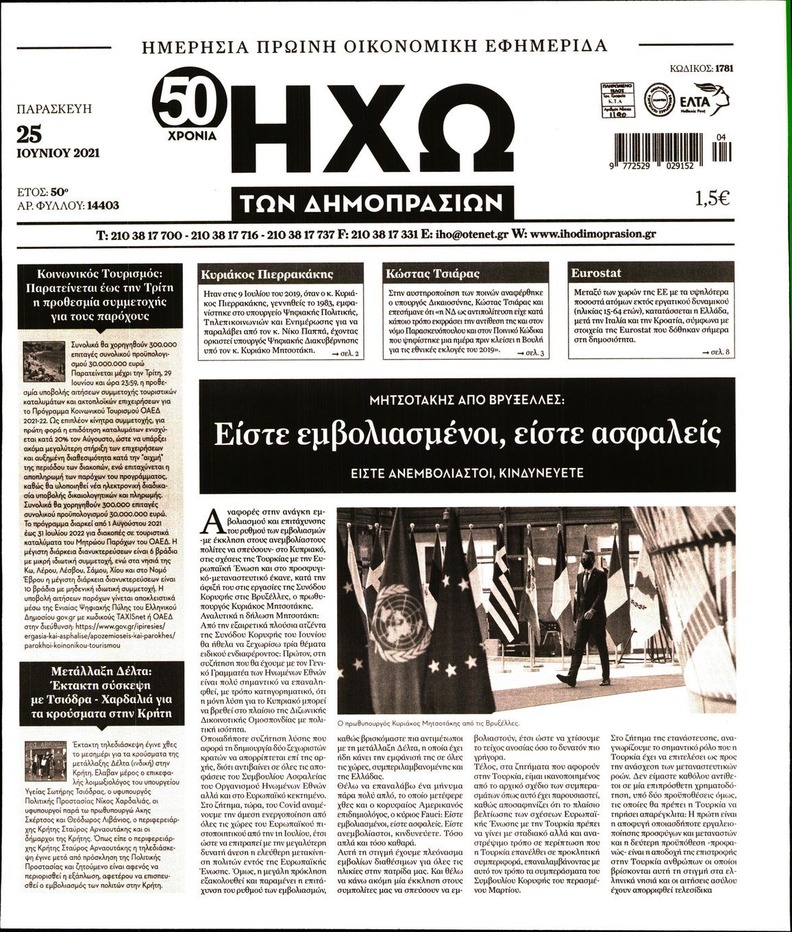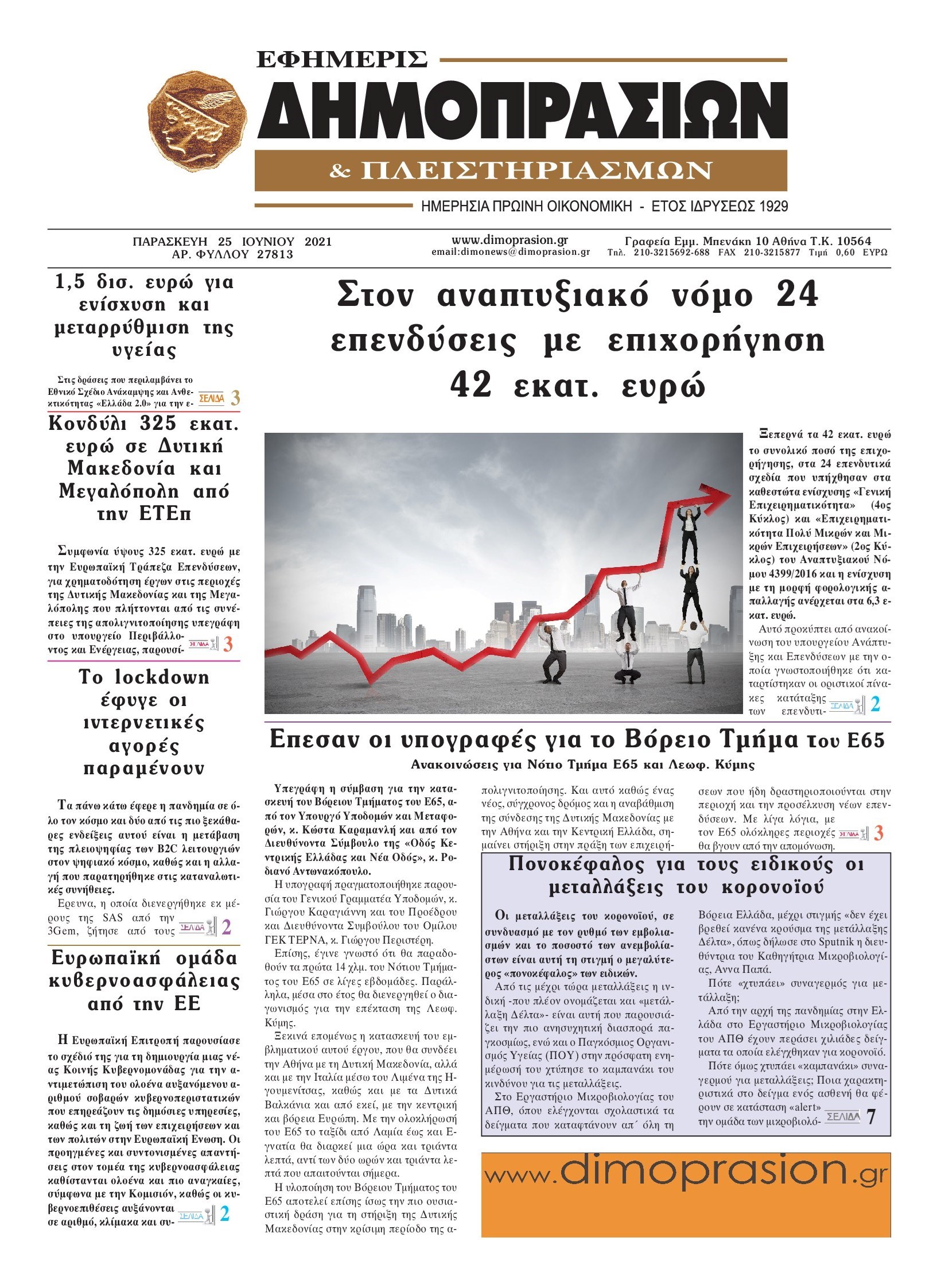 Οι οικονομικές εφημερίδες 25/6/2021 Διονύσης Νίκκας 06:31, Παρασκευή 25 Ιουνίου 2021 Media Διαβάστε τα πρωτοσέλιδα των οικονομικών εφημερίδων… ΟΙΚΟΝΟΜΙΚΕΣ ΕΦΗΜΕΡΙΔΕΣ Μοιράσου το: σχολίασε κι εσύ (0 σχόλια) Ακολουθήστε το enikos.gr στο Google News και μάθετε πρώτοι όλες τις ειδήσεις Δείτε όλες τις τελευταίες ειδήσεις από την Ελλάδα και τον Κόσμο στο enikos.gr Ειδήσεις Ροή Ειδήσεων 12 λεπτά πριν Αγρότες: «Όχι στον διάλογο, μας εμπαίζει η κυβέρνηση» – Αποφάσισαν κλιμάκωση των κινητοποιήσεων 40 λεπτά πριν Την πρώτη Belharra παρέλαβε η χώρα μας, υψώθηκε η ελληνική σημαία στη φρεγάτα «Κίμων» – Δένδιας: «Το ισχυρότερο Πολεμικό Ναυτικό που είχε ποτέ ο ελληνισμός» 3 ώρες πριν Γιώργος Μαζωνάκης: «Δεν ζήτησα χρήματα, παρά μόνο ηθική δικαίωση» – Οι πρώτες δηλώσεις του 21χρονου μετά την κατάθεση της μήνυσης 2 ώρες πριν Δίκη Βαλυράκη: Καταθέτει ο βασικός αυτόπτης μάρτυρας – «Δέχτηκα πιέσεις να μη μιλήσω, πήγα να ψωνίσω και αυτοκίνητο με χτύπησε στο πόδι» 6 ώρες πριν Συναγερμός και στην Ελλάδα για τη «σούπερ γρίπη»: Πόσο σοβαρή είναι και ποιοι θεωρούνται πιο ευάλωτοι – 3 ειδικοί μιλούν στο enikos.gr 1 ώρα πριν Τα 5 ζώδια που θα ευνοηθούν στα οικονομικά τους το 2026 – «Τραβούν το χρήμα σαν μαγνήτες» 6 ώρες πριν Αν κάνετε συνεχώς αυτά τα 8 πράγματα με τα κατοικίδιά σας, σας λείπει η ανθρώπινη επαφή 2 ώρες πριν Αυτό που κρύβεται κάτω από τη Γροιλανδία θα μπορούσε να ανατρέψει όσα γνωρίζουμε για την άνοδο της στάθμης των θαλασσών 1 ημέρα πριν 20 χρόνια τα Χριστούγεννα ξεκινούν στα Public με μεγάλη ποικιλία σε δώρα! 7 λεπτά πριν Λάμπρος Κωνσταντάρας για τα φετινά Χριστούγεννα: «Θα είναι πάρα πολύ δύσκολα, γιατί θα είναι τα πρώτα χωρίς τον πατέρα μου» 12 λεπτά πριν Αγρότες: «Όχι στον διάλογο, μας εμπαίζει η κυβέρνηση» – Αποφάσισαν κλιμάκωση των κινητοποιήσεων 15 λεπτά πριν Να μ’ αγαπάς: Ζωή και Φωτεινή συμφιλιώνονται ως μάνα με κόρη, απόψε στις 20:00 21 λεπτά πριν Εξώδικο Γεωργιάδη στην Κωνσταντοπούλου – «Με κατηγόρησε ότι έχω καταδικαστεί για παιδεραστία» 26 λεπτά πριν Εξεταστική για ΟΠΕΚΕΠΕ – Μπρατάκος: «Δεν μου τέθηκε ζήτημα για πιέσεις από τον κ. Αυγενάκη ή οποιονδήποτε» – Τι είπε για τον Σημανδράκο ENIKOS NETWORK 100 χρόνια ΠΙΣ: Ένας αιώνας προσφοράς στην Ιατρική και την κοινωνία Ένα ποτήρι την ημέρα από αυτόν τον χυμό μειώνει τη χοληστερίνη, τη φλεγμονή και την πίεση Κρατική επιχορήγηση έως 14.500 ευρώ: Ποιοι θα λάβουν από σήμερα την προκαταβολή στον τραπεζικό λογαριασμό τους Αυτόματη απόδοση ΦΠΑ: Τα δύο σενάρια που επεξεργάζεται η ΑΑΔΕ Χαρτογραφώντας το «σημείο χωρίς επιστροφή»: Για πρώτη φορά αποκαλύπτεται με λεπτομέρεια το ακανθώδες όριο της ατμόσφαιρας τ... Η Google καταργεί τη λειτουργία «dark web report» – Πώς θα μπορούν οι χρήστες να διαγράφουν τα δεδομένα τους περισσότερα 16:50 , Πέμπτη 18 Δεκεμβρίου 2025 Να μ’ αγαπάς: Ζωή και Φωτεινή συμφιλιώνονται ως μάνα με κόρη, απόψε στις 20:00 Η ταυτότητα του Άγγελου αποκαλύπτεται στο νέο επεισόδιο της σειράς “Να μ’ αγαπάς... 15:52 , Πέμπτη 18 Δεκεμβρίου 2025 Το Σπίτι Δίπλα Στο Ποτάμι: Το καθηλωτικό τελευταίο επεισόδιο για το 2025 απόψε στις 22:30 Καθηλώνει το σημερινό επεισόδιο της σειράς “Το Σπίτι Δίπλα Στο Ποτάμι” που έρχεται... 15:20 , Πέμπτη 18 Δεκεμβρίου 2025 Άγιος έρωτας – Η Ελευθερία Αρβανιτάκη τραγουδά και ο Γιάννης Τσορτέκης καθηλώνει με τον χορό του Ο Κλεάνθης χορεύει στους ήχους της Ελευθερίας Αρβανιτάκη στη σειρά “Άγιος Έρωτας“.... 08:00 , Πέμπτη 18 Δεκεμβρίου 2025 Την Κυριακή με τη Realnews