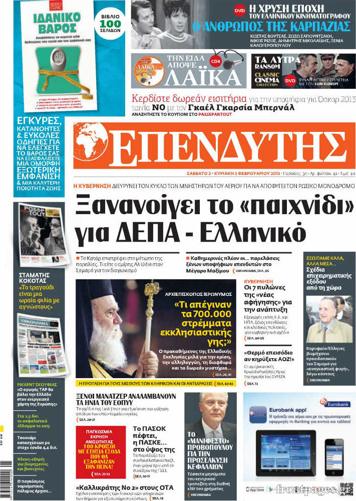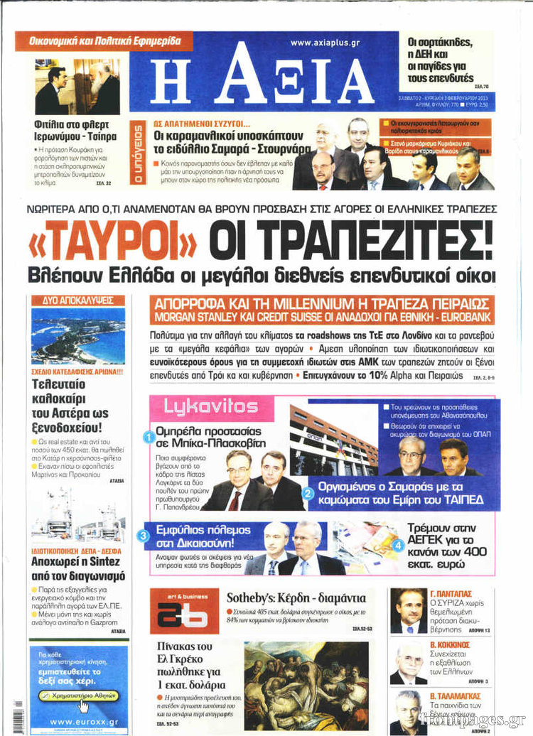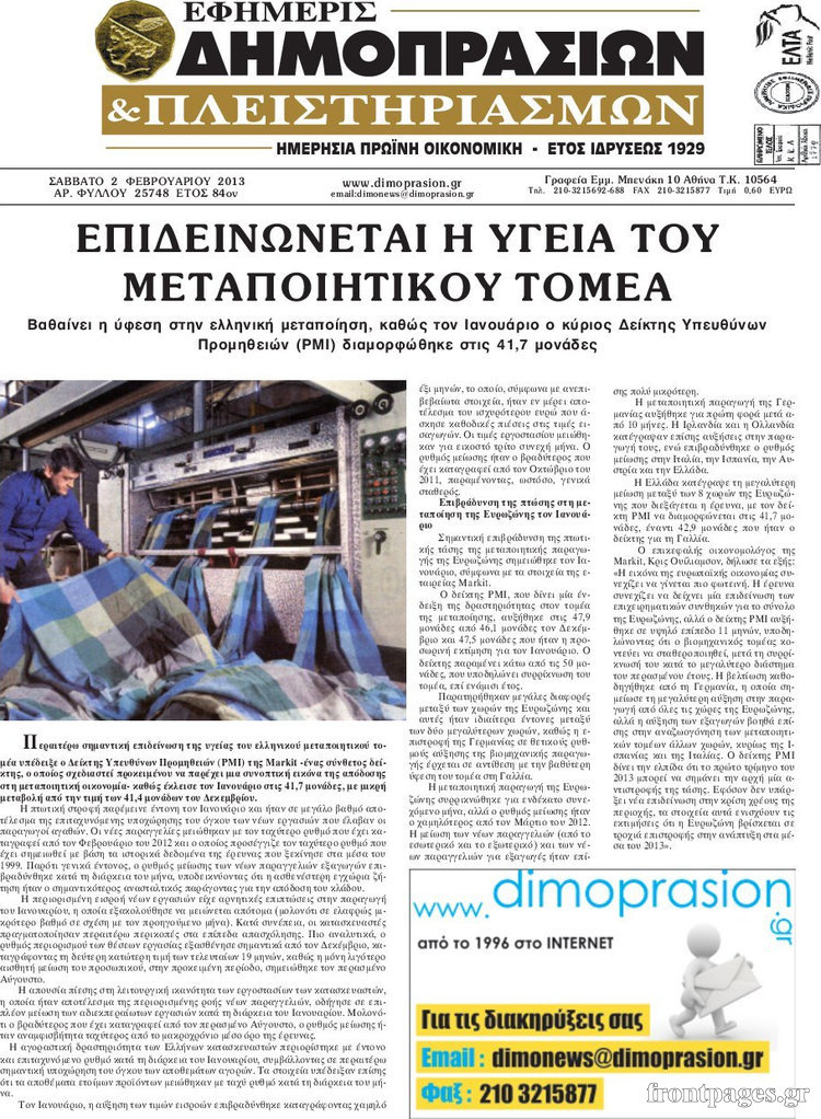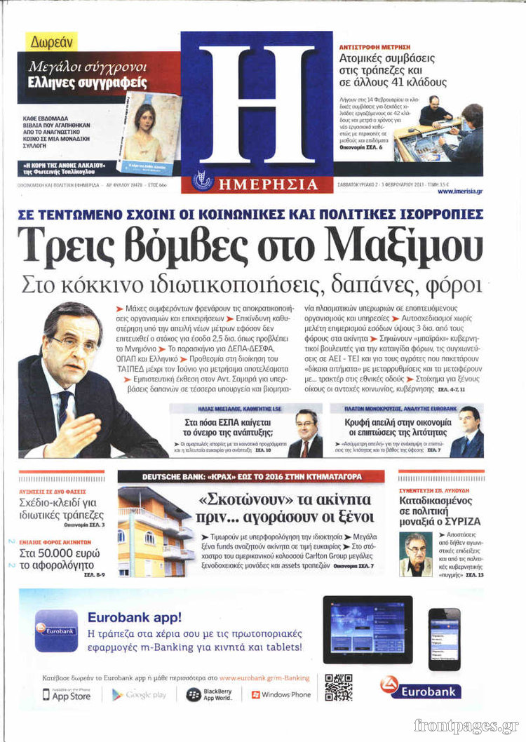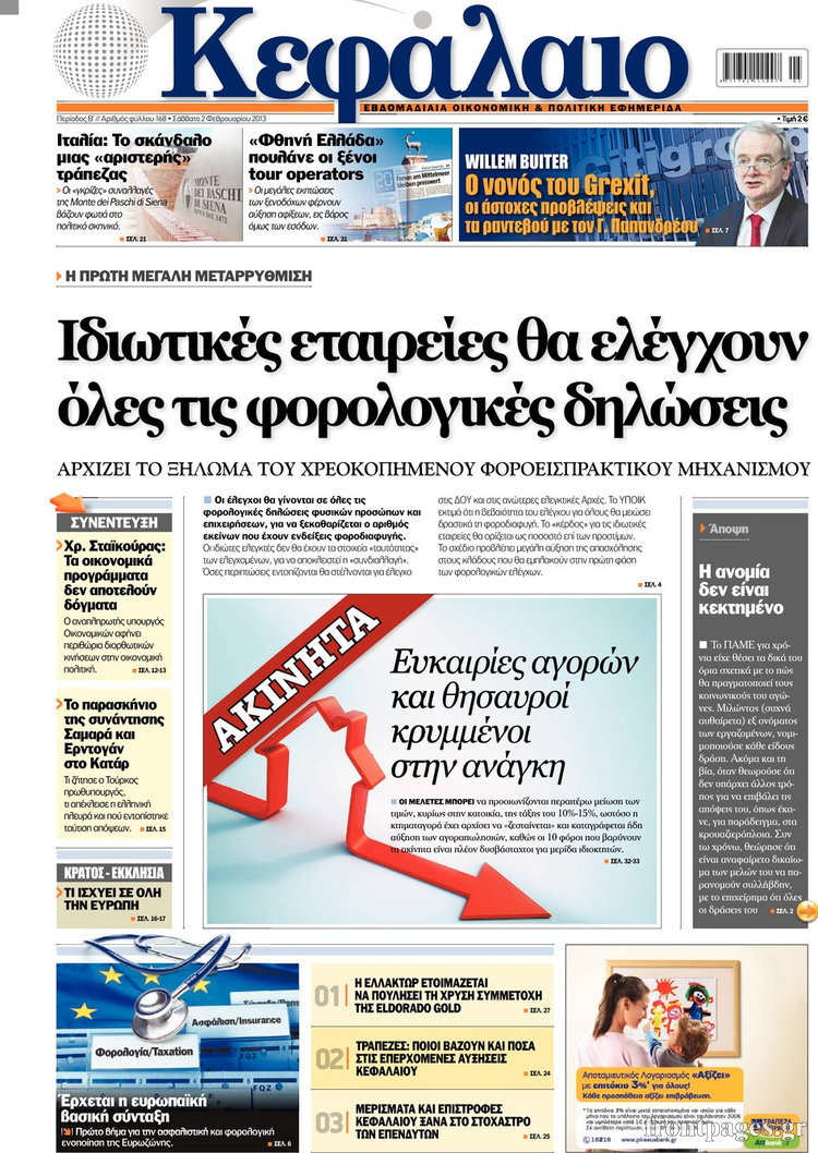 Οι οικονομικές εφημερίδες Enikos Newsroom 09:53, Σάββατο 02 Φεβρουαρίου 2013 Media Οι οικονομικές εφημερίδες ΟΙΚΟΝΟΜΙΚΕΣ ΕΦΗΜΕΡΙΔΕΣ Μοιράσου το: σχολίασε κι εσύ (0 σχόλια) Ακολουθήστε το enikos.gr στο Google News και μάθετε πρώτοι όλες τις ειδήσεις Δείτε όλες τις τελευταίες ειδήσεις από την Ελλάδα και τον Κόσμο στο enikos.gr Ειδήσεις Ροή Ειδήσεων 4 ώρες πριν Μακελειό στο Σίδνεϊ: Πατέρας και γιος οι δράστες της τρομοκρατικής επίθεσης – Γιατί η Αυστραλία βάζει στο στόχαστρο το Ιράν 5 ώρες πριν Μακελειό στην Αυστραλία: «Πέρασαν οι σφαίρες πάνω από το αυτοκίνητο» – Συγκλονίζει η μαρτυρία Έλληνα που ζει στο Σίδνεϊ 3 ώρες πριν Όλα τα αιτήματα αγροτών, κτηνοτρόφων και μελισσοκόμων προς την κυβέρνηση – Παραμένουν στα μπλόκα και προαναγγέλλουν κλιμάκωση 8 ώρες πριν Τραγική εξέλιξη στο Αίγιο: Πέθανε ο 43χρονος που γρονθοκόπησε γιατρό στο νοσοκομείο 6 ώρες πριν Λακωνία: Βίντεο ντοκουμέντο από την επιχείρηση διάσωσης της 13χρονης που έπεσε σε πηγάδι – Ποια ήταν τα πρώτα λόγια της 5 ώρες πριν Ύπνος: 5 λόγοι για τους οποίους ξυπνάτε κουρασμένοι το πρωί κατά τη διάρκεια του χειμώνα 8 ώρες πριν Οι 7 βραδινές συνήθειες που μαρτυρούν ότι κάποιος υποφέρει από βαθιά μοναξιά, σύμφωνα με την ψυχολογία 16 ώρες πριν Τα 8 πράγματα που τα ευτυχισμένα ζευγάρια δεν κάνουν ποτέ μπροστά στα παιδιά τους 7 ώρες πριν Κουζίνα: Η καθημερινή συνήθεια των ανθρώπων που την διατηρούν πάντα καθαρή 19 λεπτά πριν Νότια Κορέα: Έφοδος της αστυνομίας στα γραφεία της Ενωτικής Εκκλησίας στη Σεούλ 35 λεπτά πριν Serie A: Ήττα σοκ για την Φιορεντίνα στο ντέρμπι των ουραγών, κορυφή για την Ίντερ, στο «κόλπο» ξανά η Γιούβε – Τα αποτελέσματα και η βαθμολογία 49 λεπτά πριν Λίβανος: Οι IDF ανέφεραν ότι σκότωσαν τρία μέλη της Χεζμπολάχ 1 ώρα πριν Ρωσία: Στο στόχαστρο της Μόσχας η Deutsche Welle – «Δεν θα μας φιμώσουν», δηλώνει η Διεύθυνση 1 ώρα πριν Συγκίνησε η Ντορέττα Παπαδημητρίου: «Κλείνουν 11 χρόνια από όταν έφυγε από τη ζωή, ήταν πολύ ξαφνικό όπως έγινε και αυτό μας συσπείρωσε» ENIKOS NETWORK 8 κορυφαίες συμβουλές για άνδρες που θέλουν φλογερή σεξουαλική ζωή, σύμφωνα με ειδικό Baby botox: Ποια τα οφέλη και οι κίνδυνοι του να ξεκινήσει κάποιος τις ενέσεις πριν εμφανιστούν ρυτίδες Τέλος οι διώξεις για χρέη σε Εφορία και ΕΦΚΑ – Τι προβλέπει νέα διάταξη μετά την πτώχευση Υπουργείο Αγροτικής Ανάπτυξης: Ενισχύσεις de minimis ύψους 2,1 εκατ. ευρώ – Οι δικαιούχοι Σύγχρονος Νοστράδαμος: Προειδοποιεί για «μεγάλο γεγονός» τους επόμενους μήνες που θα συγκλονίσει τη Βρετανία και τον κόσμο Τεστ παρατηρητικότητας: Μπορείτε να βρείτε τις 3 διαφορές στις εικόνες με έναν πιγκουίνο σε 14 δευτερόλεπτα περισσότερα 21:34 , Κυριακή 14 Δεκεμβρίου 2025 Ο Δικαστής: Η Λέττα είναι αποφασισμένη να αποκαλύψει την αλήθεια για το τροχαίο, απόψε στις 21:45 στον ΑΝΤ1 Ραγδαίες οι εξελίξεις στο νέο επεισόδιο της σειράς “Ο Δικαστής” απόψε στις 21:45 σ... 17:38 , Κυριακή 14 Δεκεμβρίου 2025 Τηλεθέαση (13/12): Τα ποσοστά για το βράδυ του Σαββάτου Η «μάχη» της prime time για την τηλεθέαση, συνεχίστηκε δυναμικά το βράδυ του Σαββάτου (13/12).... 16:32 , Κυριακή 14 Δεκεμβρίου 2025 Τηλεθέαση (13/12): Πώς κινήθηκαν οι εκπομπές στην πρωινή ζώνη το Σάββατο Με αμείωτη ένταση συνεχίστηκε η μάχη για την τηλεθέαση στην πρωινή ζώνη των τηλεοπτικών καναλι... 15:07 , Κυριακή 14 Δεκεμβρίου 2025 IQ160: Η Μαρίνα στέλνει το φούτερ του Τηλέμαχου για το τεστ πατρότητας Η Πηνελόπη αποφασίζει να κάνει αμνιοπαρακέντηση, για να βεβαιωθεί για την υγεία του μωρού τ