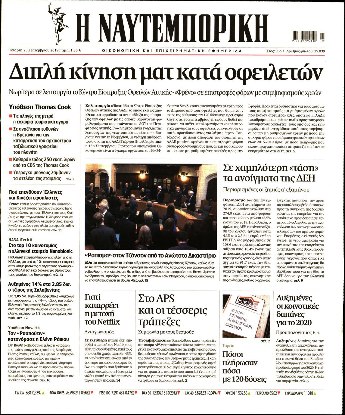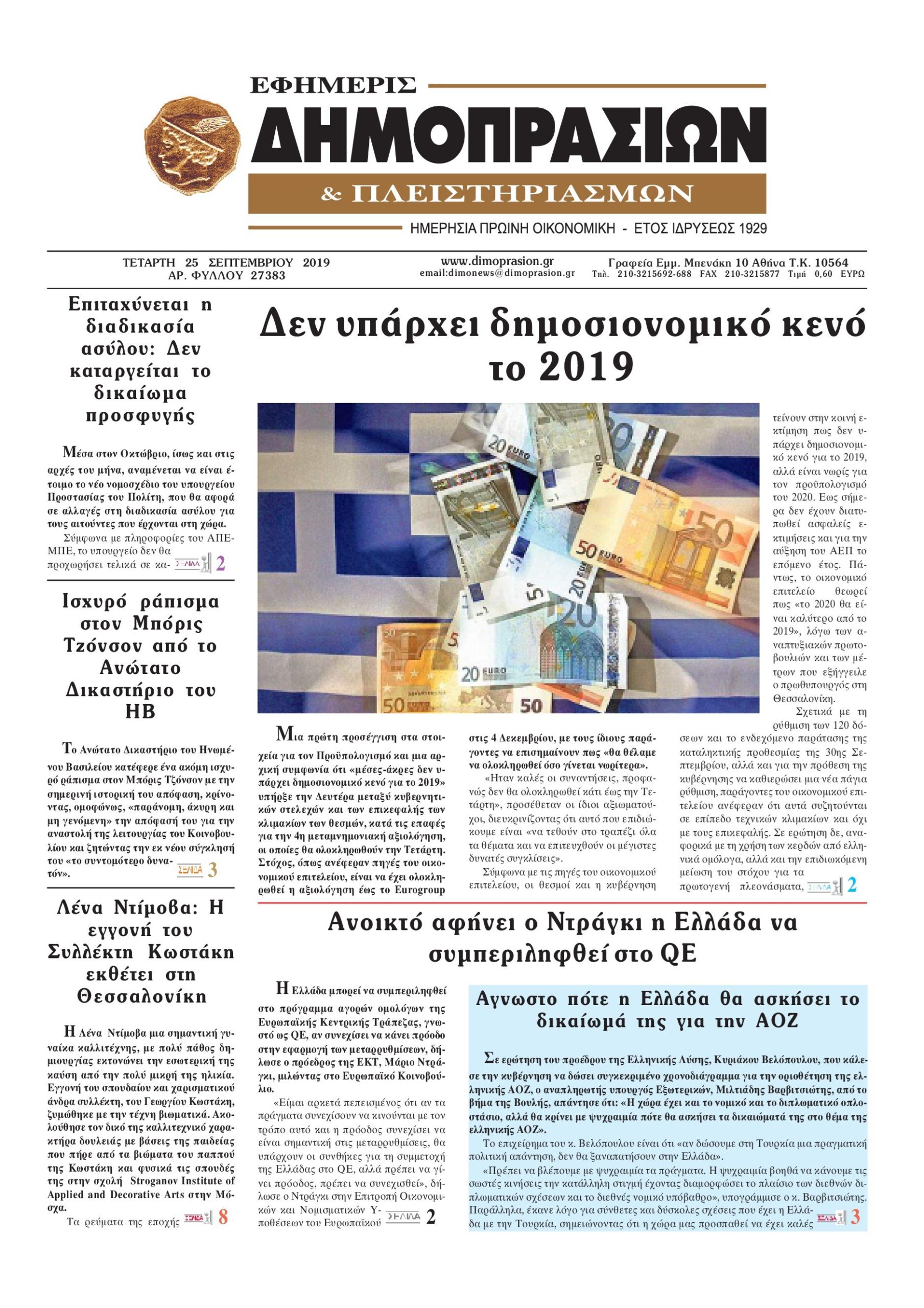 Οι οικονομικές εφημερίδες 25/9/19 Διονύσης Νίκκας 06:40, Τετάρτη 25 Σεπτεμβρίου 2019 Media Διαβάστε τα πρωτοσέλιδα των οικονομικών εφημερίδων… ΕΦΗΜΕΡΙΔΕΣ ΟΙΚΟΝΟΜΙΚΕΣ Μοιράσου το: σχολίασε κι εσύ (0 σχόλια) Ακολουθήστε το enikos.gr στο Google News και μάθετε πρώτοι όλες τις ειδήσεις Δείτε όλες τις τελευταίες ειδήσεις από την Ελλάδα και τον Κόσμο στο enikos.gr Ειδήσεις Ροή Ειδήσεων 2 ώρες πριν Μητσοτάκης για αγρότες: Ελπίζω πως θα απομακρυνθούν σύντομα από τα μπλόκα 4 ώρες πριν Έρευνα MRB: Η πρόθεση ψήφου και τα σημαντικότερα προβλήματα – Οι «λέξεις» που εκφράζουν τους πολίτες 34 λεπτά πριν Αμοργός: «Θα προσπαθήσω να το κάνω κάθε μέρα» – Ποιος είναι ο αγρότης που έστησε μόνος του το πρώτο μπλόκο στο νησί 1 ώρα πριν Μισέλ Ομπάμα: Εμφανώς αδυνατισμένη στην εκπομπή του Τζίμι Κίμελ – Οι φήμες για τη χρήση Ozempic και η «φιλία» της με τον Ρομπ Ράινερ 1 ώρα πριν Αγρότες: Επ’ αόριστον μπλόκο στον σταθμό στον Προμαχώνα για τα φορτηγά – Κλείνει το ρεύμα εισόδου στα Μάλγαρα 3 ώρες πριν Τα 4 ζώδια που ξαναβρίσκουν τον εαυτό τους – «Μπαίνετε επιτέλους στην ουσία των πραγμάτων» 4 ώρες πριν 20 χρόνια τα Χριστούγεννα ξεκινούν στα Public με μεγάλη ποικιλία σε δώρα! 3 ώρες πριν «Δεν είχα κλάψει από τότε που διαγνώστηκα με καρκίνο, ώσπου ένα τηλεφώνημα με έκανε να λυγίσω» – Η συγκλονιστική εξομολόγηση ενός άνδρα 2 ώρες πριν Τα 7 σπάνια χαρακτηριστικά που κάνουν κάποιους ανθρώπους ακαταμάχητους 6 λεπτά πριν Κρεμλίνο: «Η θέση μας είναι σαφής» για τα ευρωπαϊκά στρατεύματα στην Ουκρανία – «Είναι θέμα προς συζήτηση» 10 λεπτά πριν Μαρία Σολωμού: Έχω σκεφτεί να παντρευτώ στα 70, επειδή δεν το έχω κάνει 15 λεπτά πριν Παρίσι: Παρατείνεται η απεργία στο Λούβρο – To μουσείο παραμένει κλειστό «μέχρι νεωτέρας» 21 λεπτά πριν Λάκης Γαβαλάς, Σουζάνα Κεγγίτση και Έλενα Γαλύφα μας περιμένουν σήμερα στο πιο stylish Χριστουγεννιάτικο ραντεβού στο Athens Metro Mall – Το Madwalk Gifting Lounge by ΣΚΡΑΤΣ επιστρέφει σήμερα από τις 14:00 έως τις 18:30 26 λεπτά πριν Αγρίνιο: Συνελήφθη μαθητής που απείλησε τον διευθυντή και εκπαιδευτικούς – Χειροπέδες και στη μητέρα του ENIKOS NETWORK Ανησυχητική αύξηση της υπέρτασης στα παιδιά – Πώς θα τα προστατέψουμε; Αδενώματα Υπόφυσης: Μια πάθηση καλοήθης, αλλά όχι αθώα Διεθνής Οργανισμός Ενέργειας (ΔΟΕ, IEA): Τι δείχνουν τα νέα στοιχεία για την παγκόσμια κατανάλωση άνθρακα Διευκρινίσεις από το ΥΠΑΑΤ και τον ΟΠΕΚΕΠΕ για την εξόφληση της βασικής ενίσχυσης στους αγρότες Σύγχρονος Νοστράδαμος: Προειδοποιεί για «μεγάλο γεγονός» τους επόμενους μήνες που θα συγκλονίσει τη Βρετανία και τον κόσμο Τεστ παρατηρητικότητας: Μπορείτε να βρείτε τις 3 διαφορές στις εικόνες με έναν πιγκουίνο σε 14 δευτερόλεπτα περισσότερα 12:35 , Τετάρτη 17 Δεκεμβρίου 2025 Μίρκα Παπακωνσταντίνου: «Δεν ήμουν αισιόδοξη για τα νούμερα – Είμαι ρεαλίστρια» Στα γυρίσματα του εορταστικού επεισοδίου της αγαπημένης σειράς “Το Σόι Σου”, βρέθηκε η κάμερα ... 12:12 , Τετάρτη 17 Δεκεμβρίου 2025 Ακούστε την εκπομπή του Νίκου Χατζηνικολάου 17/12/2025 Ακούστε την εκπομπή του Νίκου Χατζηνικολάου στον ραδιοφωνικό σταθμό RealFm 97,8, την Τετάρτη 1... 11:35 , Τετάρτη 17 Δεκεμβρίου 2025 Home Alone: Το σπίτι της ταινίας θα ανακαινιστεί – Επιστροφή στην αισθητική της δεκαετίας του ’90 Οι νέοι ιδιοκτήτες του πραγματικού σπιτιού που παρουσιάζεται στην κλασική ταινία του 1990 «Hom... 11:25 , Τετάρτη 17 Δεκεμβρίου 2025 Grand Hotel: Απόψε το τελευταίο επεισόδιο της χρονιάς – Όλα τα μυστικά μένουν εδώ Το τελευταίο επεισ