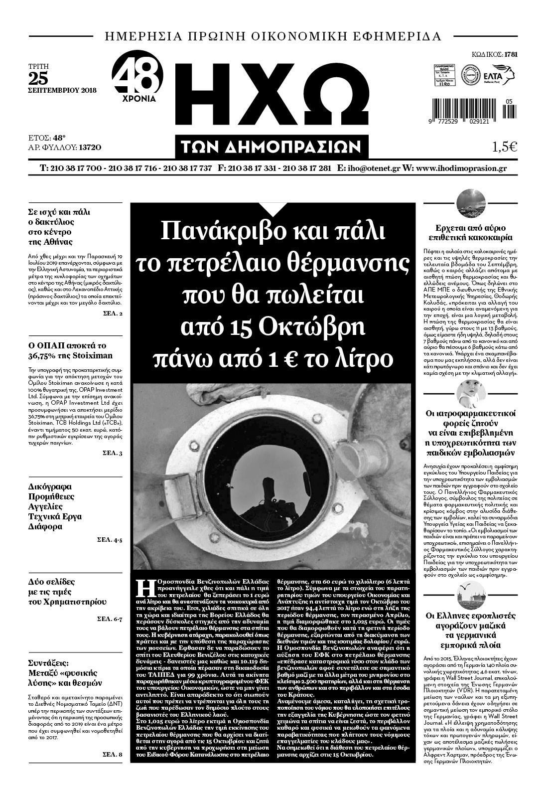 Οι οικονομικές εφημερίδες 25/9/2018 Κώστας Τεό 06:53, Τρίτη 25 Σεπτεμβρίου 2018 Media Διαβάστε τα πρωτοσέλιδα των οικονομικών εφημερίδων: ΟΙΚΟΝΟΜΙΚΕΣ ΕΦΗΜΕΡΙΔΕΣ ΠΡΩΤΟΣΕΛΙΔΑ Μοιράσου το: σχολίασε κι εσύ (0 σχόλια) Ακολουθήστε το enikos.gr στο Google News και μάθετε πρώτοι όλες τις ειδήσεις Δείτε όλες τις τελευταίες ειδήσεις από την Ελλάδα και τον Κόσμο στο enikos.gr Ειδήσεις Ροή Ειδήσεων 1 ώρα πριν Ευρωπαϊκή Ένωση: Συμφωνία για δάνειο 90 δισ. ευρώ στην Ουκρανία τη διετία 2026-2027 6 ώρες πριν ΟΠΕΚΕΠΕ: Προφυλακιστέος ο φερόμενος αρχηγός και ο λογιστής της εγκληματικής οργάνωσης 7 ώρες πριν Αυξάνουν την πίεση προς την κυβέρνηση οι αγρότες: Κλείνουν παρακαμπτήριους και ανοίγουν διόδια – Τι θα γίνει τις γιορτές 7 ώρες πριν Φοινικούντα: Το Σάββατο απολογείται ο 30χρονος γιος γνωστού επιχειρηματία της Πλάκας που παραδόθηκε – Όσα είπε στους αστυνομικούς και ο ρόλος του στο έγκλημα 5 ώρες πριν ΑΕΚ – Κραϊόβα 3-2: Επική ανατροπή και πρόκριση στους «16» του Conference League η Ένωση 6 ώρες πριν Αρχαιολόγοι ανακάλυψαν ρωμαϊκά τεχνουργήματα από μια πόλη που δεν υπήρξε ποτέ – Τα τρία εντυπωσιακά κτίρια και ο αμφορέας με τις… σαρδέλες 7 ώρες πριν Ύπνος: Η απλή βραδινή ρουτίνα για να προστατεύσετε τα μαλλιά σας από το κρύο κατά τη διάρκεια του χειμώνα 8 ώρες πριν Manifesting: Πώς να συναντήσετε τον σύντροφο της ζωής σας, ανάλογα με τον μήνα γέννησής σας 2 ημέρες πριν 20 χρόνια τα Χριστούγεννα ξεκινούν στα Public με μεγάλη ποικιλία σε δώρα! 5 λεπτά πριν Η TikTok στις ΗΠΑ πωλείται σε Oracle, Silver Lake και MGX – Οι λεπτομέρειες του «deal» 14 λεπτά πριν Αλεξάντερ Λουκασένκο: Η Λευκορωσία βρίσκεται κοντά στην αποκατάσταση των σχέσεών της με τις ΗΠΑ 29 λεπτά πριν Αυστραλία: Κήρυξε την Κυριακή (21/12) ημέρα εθνικού πένθους για τη φονική επίθεση στην παραλία Μπόνταϊ 39 λεπτά πριν Ρόδος: Δάσκαλος καράτε καταδικάστηκε για ασέλγεια σε ανήλικες αθλήτριες – Μαρτυρίες για αγγίγματα σε ευαίσθητα σημεία 53 λεπτά πριν Γουατεμάλα: Εξαρθρώθηκε κύκλωμα διακίνησης μεταναστών προς τις ΗΠΑ – Συνελήφθησαν 14 άτομα ENIKOS NETWORK Σε περίοδο αυξημένης δραστηριότητας η γρίπη στην Ελλάδα-Μέτρα προστασίας από τον ΕΟΔΥ Σκέφτεστε συνέχεια συζητήσεις που έχετε κάνει; Τι σημαίνει αυτό, σύμφωνα με ειδικό Στεγαστικό: Τι λέει η ΠΟΜΙΔΑ για τα νέα μέτρα που ανακοίνωσε ο Κυριάκος Μητσοτάκης Λαγκάρντ: Αισιόδοξη για την ανάπτυξη της Ευρωζώνης, αβέβαιη για τον πληθωρισμό Χαρτογραφώντας το «σημείο χωρίς επιστροφή»: Για πρώτη φορά αποκαλύπτεται με λεπτομέρεια το ακανθώδες όριο της ατμόσφαιρας τ... Η Google καταργεί τη λειτουργία «dark web report» – Πώς θα μπορούν οι χρήστες να διαγράφουν τα δεδομένα τους περισσότερα 02:50 , Παρασκευή 19 Δεκεμβρίου 2025 GNTM: «Κλείδωσαν» οι τέσσερις φιναλίστ – Μεγάλη ανατροπή στις τελευταίες αποχωρήσεις Για προτελευταία φορά εμφανίστηκαν στο πλατό του GNTM οι φιναλίστ του φετινού κύκλου, το βράδυ... 17:45 , Πέμπτη 18 Δεκεμβρίου 2025 ROUK ZOUK: Εορταστικό επεισόδιο με καλεσμένους τους πρωταγωνιστές του «Γιατί ρε πατέρα» Το Σάββατο 20 Δεκεμβρίου στις 21:00, η Ζέτα Μακρυπούλια υποδέχεται εκλεκτούς ηθοποιούς που όλο... 17:20 , Πέμπτη 18 Δεκεμβρίου 2025 Άγιος έρωτας: Η Χριστίνα εξομολογείται στον πατέρα Νικόλαο, απόψε στις 21:00 στον Alpha Η Νότα αποφασίζει να εκδικηθεί τον Πέτρο και τον Στέφανο, για χάρη του Λούη, όμως τα πράγματα ... 16:50 , Πέμπτη 18 Δεκεμβρίου 2025 Να μ’ αγαπάς: Ζωή και Φωτεινή συμφιλιώνονται ως μάνα με κόρη, απόψε στις 20:00 Η ταυτότητα του Άγγελου αποκαλύπτεται στο νέο επει
