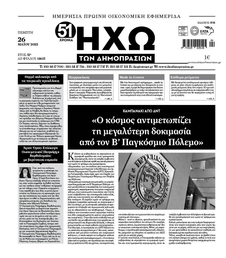 Οι οικονομικές εφημερίδες 26/5/2022 Σταύρος Ιωακείμ 06:45, Πέμπτη 26 Μαΐου 2022 Media Διαβάστε τα πρωτοσέλιδα από τις οικονομικές εφημερίδες… ΕΦΗΜΕΡΙΔΕΣ ΟΙΚΟΝΟΜΙΚΕΣ ΕΦΗΜΕΡΙΔΕΣ ΠΡΩΤΟΣΕΛΙΔΑ Μοιράσου το: Οι αθλητικές εφημερίδες 26/5/2022 Οι πολιτικές εφημερίδες 26/5/2022 Το Ποντίκι σήμερα Πέμπτη 26/5/2022 σχολίασε κι εσύ (0 σχόλια) Ακολουθήστε το enikos.gr στο Google News και μάθετε πρώτοι όλες τις ειδήσεις Δείτε όλες τις τελευταίες ειδήσεις από την Ελλάδα και τον Κόσμο στο enikos.gr Ειδήσεις Ροή Ειδήσεων 1 ώρα πριν Νίκος Παππάς: Άφαντος παραμένει ο ευρωβουλευτής μετά την επίθεση στον Νίκο Γιαννόπουλο 45 λεπτά πριν Μητσοτάκης: Η Ελλάδα στηρίζει την Ουκρανία και θα υποστηρίξει οποιαδήποτε λύση της παρέχει χρηματοδοτική σταθερότητα 1 ώρα πριν Συναγερμός και στην Ελλάδα για τη «σούπερ γρίπη»: Πόσο σοβαρή είναι και ποιοι θεωρούνται πιο ευάλωτοι – 3 ειδικοί μιλούν στο enikos.gr 1 ώρα πριν Με το βλέμμα στραμμένο στις Σέρρες οι αγρότες – Ο χάρτης των μπλόκων στη Βόρεια Ελλάδα 3 ώρες πριν Ντόναλντ Τραμπ: Το διάγγελμα, η πτώση στις δημοσκοπήσεις και το… χάος που κληρονόμησε από τον Μπάιντεν 2 ώρες πριν Τα 4 ζώδια που λαμβάνουν ένα ισχυρό σημάδι από το σύμπαν – «Αποκαλύπτεται κάτι που μπορεί να αλλάξει τη ζωή μας» 3 ώρες πριν Η σύζυγός του παραπονιέται για τα χρήματα που της δίνει για ψώνια κάθε μήνα – «Λέει ότι νιώθει φτωχή και της είπα να βρει δουλειά» 1 ώρα πριν Αν κάνετε συνεχώς αυτά τα 8 πράγματα με τα κατοικίδιά σας, σας λείπει η ανθρώπινη επαφή 1 ημέρα πριν 20 χρόνια τα Χριστούγεννα ξεκινούν στα Public με μεγάλη ποικιλία σε δώρα! 5 δευτερόλεπτα πριν Καμμένος σε Καρυστιανού: Σας πολεμάνε, γιατί σας φοβούνται – Η ανάγκη για Οξυγόνο θα επικρατήσει 4 λεπτά πριν Σύνοδος Κορυφής: Δεν θα φύγουμε χωρίς απόφαση, λένε Κόστα και Φον Ντερ Λάιεν – «Καμπανάκι» Ζελένσκι για τη χρηματοδότηση της Ουκρανίας 10 λεπτά πριν Άνδρας 30 ετών αποκαλύπτει πώς έχασε 45 κιλά σε 1 χρόνο: «Ήμουν νωθρός και ανασφαλής – Πλέον νιώθω ικανός για οτιδήποτε» 16 λεπτά πριν Ανατροπή για τα ενοίκια: Παράταση 3 μηνών για την υποχρεωτική πληρωμή μέσω τράπεζας 22 λεπτά πριν Φωκίδα: «Τώρα θα πάω στους αγγέλους»: Τα τελευταία λόγια του άνδρα που βρέθηκε απανθρακωμένος στο αυτοκίνητό του ENIKOS NETWORK Τι περιλαμβάνει το σχέδιο της ΕΕ για την καρδιαγγειακή υγεία-Οι προτάσεις της Ελληνικής Καρδιολογικής Εταιρείας Σύγχρονες τεχνικές αποκατάστασης χόνδρινων βλαβών & διατήρησης της άρθρωσης Ειδικό επιδοτούμενο πρόγραμμα κατάρτισης από ΔΥΠΑ και ΕΛΓΟ – ΔΗΜΗΤΡΑ: Έως αύριο οι ενστάσεις – Όσα πρέπει να γνωρίζετε Συντάξεις Ιανουαρίου 2026: Ποια ταμεία πιστώνουν σήμερα τα ποσά Χαρτογραφώντας το «σημείο χωρίς επιστροφή»: Για πρώτη φορά αποκαλύπτεται με λεπτομέρεια το ακανθώδες όριο της ατμόσφαιρας τ... Η Google καταργεί τη λειτουργία «dark web report» – Πώς θα μπορούν οι χρήστες να διαγράφουν τα δεδομένα τους περισσότερα 08:00 , Πέμπτη 18 Δεκεμβρίου 2025 Την Κυριακή με τη Realnews: Δωροεπιταγή 10€ Δωροεπιταγή αξίας 10€ για αγορές άνω των 60€ από τα πολυκαταστήματα FactoryOutlet H προσφορά ι... 07:50 , Πέμπτη 18 Δεκεμβρίου 2025 «Το σόι σου»: Backstage στα γυρίσματα για το εορταστικό επεισόδιο «Το σόι σου» φορά τα γιορτινά του για τα Χριστούγεννα και η Όλγα Λαφαζάνη, με την κάμερα του «... 07:36 , Πέμπτη 18 Δεκεμβρίου 2025 Οι αθλητικές μεταδόσεις 18/12/2025 – Πού θα δείτε τον αγώνα της ΑΕΚ με την Κραϊόβα για το Conference League Τα ματς ΑΕΚ – Ουνιβερσιτάτεα Κραϊόβα για το Conference League και Παναθηναϊκός – Χάποελ Τελ Αβ... 0
