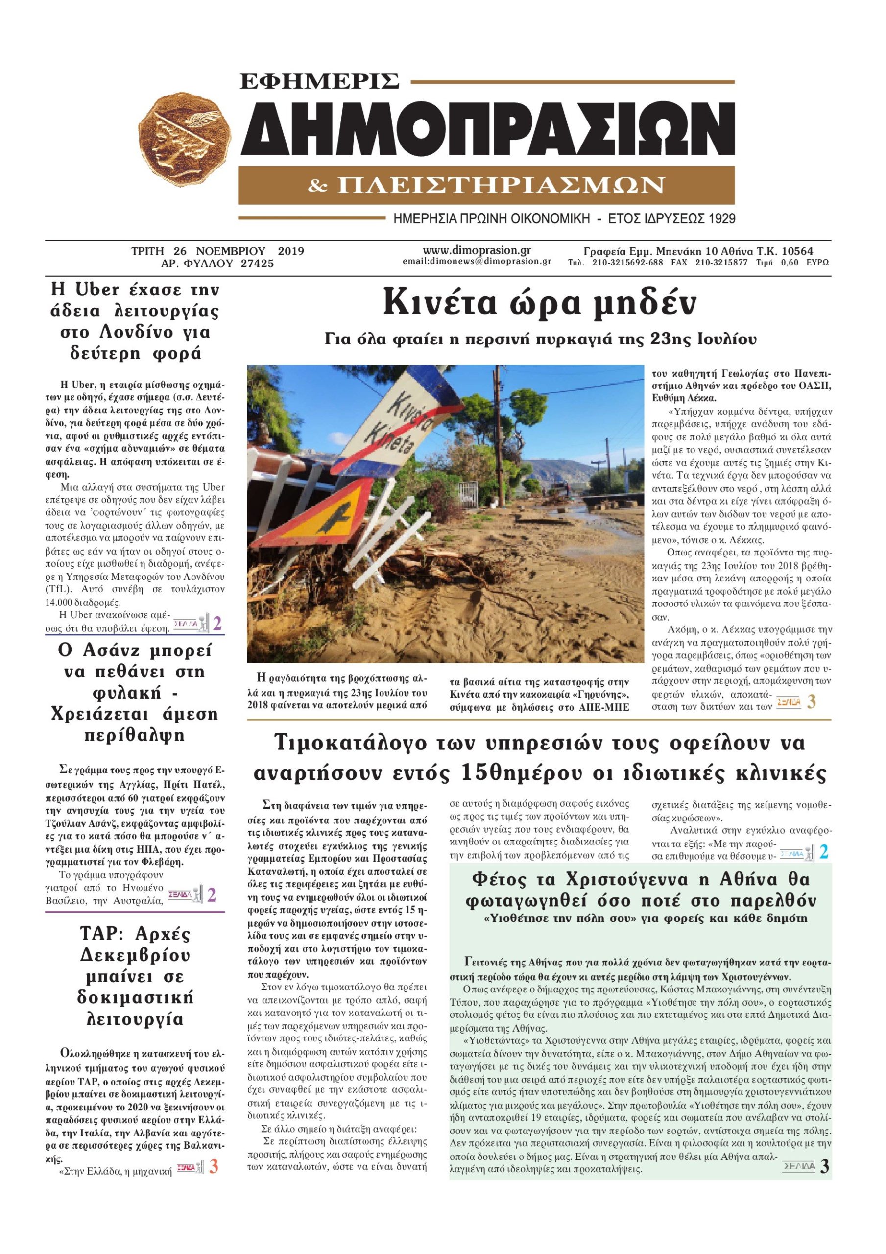 Οι οικονομικές εφημερίδες 26/11/19 Διονύσης Νίκκας 06:53, Τρίτη 26 Νοεμβρίου 2019 Media Διαβάστε τα πρωτοσέλιδα των οικονομικών εφημερίδων… ΕΦΗΜΕΡΙΔΕΣ ΟΙΚΟΝΟΜΙΚΕΣ Μοιράσου το: σχολίασε κι εσύ (0 σχόλια) Ακολουθήστε το enikos.gr στο Google News και μάθετε πρώτοι όλες τις ειδήσεις Δείτε όλες τις τελευταίες ειδήσεις από την Ελλάδα και τον Κόσμο στο enikos.gr Ειδήσεις Ροή Ειδήσεων 6 ώρες πριν Μητσοτάκης: Αναγκαία η μεταρρύθμιση του πρωτογενούς τομέα – Τα 6 νέα μέτρα για το στεγαστικό και οι αναφορές σε «Ιθάκη» και «πολιτικούς του καναπέ» 5 ώρες πριν Δάνεια σε ελβετικό φράγκο: Τα βασικά σημεία της ρύθμισης – ανάσας για 40.000 δανειολήπτες – Αναλυτικός οδηγός με ερωτήσεις και απαντήσεις 5 ώρες πριν Κυψέλη: Εξιτήριο πήρε η 14χρονη μαθήτρια που μαχαιρώθηκε από την 16χρονη σε σχολείο – «Θέλω να βοηθήσω το παιδί, έχει μπλέξει με κακές παρέες» 5 ώρες πριν Τραμπ: Γιατί κατέθεσε τώρα την αγωγή κατά του BBC – Πώς η κίνησή του εξυπηρετεί το νέο δόγμα του για «αντίσταση» στην Ευρώπη, υπέρ των συντηρητικών 6 ώρες πριν ΟΠΕΚΕΠΕ – Παράνομες επιδοτήσεις: Ελεύθεροι με περιοριστικούς όρους και οι 7 κατηγορούμενοι που απολογήθηκαν σήμερα 5 ώρες πριν Ανακαλύφθηκε βυθισμένη πέτρινη κατασκευή ανοιχτά της Κριμαίας – Αποτελεί μέρος αρχαίας ελληνικής αποικίας 6 ώρες πριν Ύπνος: Αυτό μπορεί να είναι το χειρότερο λάθος για το βιολογικό ρολόι σας, σύμφωνα με ειδικό 7 ώρες πριν Αριθμολογία: Οι άνθρωποι που έχουν γεννηθεί αυτές τις 3 ημερομηνίες, προσελκύουν μεγάλη τύχη πριν από το τέλος του 2025 9 ώρες πριν Οι 7 συμπεριφορές που μαρτυρούν ότι ένας άνδρας επενδύει μακροπρόθεσμα σε μια σχέση 7 λεπτά πριν Ντόναλντ Τραμπ: Ξένη τρομοκρατική οργάνωση η Βενεζουέλα – Πλήρης αποκλεισμός των δεξαμενόπλοιων από και προς το Καράκας 21 λεπτά πριν Παναγιώτης Μπουγιούρης: «Έχω μια αφέλεια σε σχέση με τη δουλειά μου» 37 λεπτά πριν Παναθηναϊκός: Η έντονη επιθυμία του Ματίας Λεσόρ να επιστρέψει στα γήπεδα – «Μου λείπει πολύ το γ@@@@». 51 λεπτά πριν Νίκος Πλακιάς: Η Μαρία Καρυστιανού πλέον θα κρίνεται ως πολιτικός και όχι ως συγγενής 1 ώρα πριν Ντόναλντ Τραμπ: Κάλυψε απόλυτα την προσωπάρχη του Λευκού Οίκου: «Ναι, έχω προσωπικότητα αλκοολικού» ENIKOS NETWORK Αίτημα ΙΣΑ για την εξαίρεση των προσωπικών γιατρών από τις κατ’ οίκον επισκέψεις Η σκανδιναβική μέθοδος στον ύπνο που μπορεί να σώσει έναν γάμο Πιερρακάκης: Ο προϋπολογισμός συμβάλλει ουσιαστικά στην ενίσχυση της αγοραστικής δύναμης της πλειονότητας των εργαζομένων e-ΕΦΚΑ: Παρατείνεται η προθεσμία για την υποβολή ΑΠΔ – Ποιους αφορά Σύγχρονος Νοστράδαμος: Προειδοποιεί για «μεγάλο γεγονός» τους επόμενους μήνες που θα συγκλονίσει τη Βρετανία και τον κόσμο Τεστ παρατηρητικότητας: Μπορείτε να βρείτε τις 3 διαφορές στις εικόνες με έναν πιγκουίνο σε 14 δευτερόλεπτα περισσότερα 20:06 , Τρίτη 16 Δεκεμβρίου 2025 Ο ΣΚΑΙ καταγγέλλει τον ΕΚΚΟΜΕΔ Επιστολή με την οποία καταγράφει την έντονη διαμαρτυρία του προς τον διευθύνοντα σύμβουλο του... 17:40 , Τρίτη 16 Δεκεμβρίου 2025 Eurovision: Στις 4 Ιανουαρίου αποκαλύπτονται τα 28 τραγούδια του ελληνικού τελικού Η αγωνία τελειώνει, η γιορτή της Eurovision αρχίζει στην ΕΡΤ από τις πρώτες ημέρες της νέας χρ... 17:09 , Τρίτη 16 Δεκεμβρίου 2025 Alter Ego Media: Βαθύτατη θλίψη και ειλικρινή συλλυπητήρια για την απώλεια της Ειρήνης Μαρινάκη Τη βαθύτατη θλίψη και τα ειλικρινή συλλυπητήριά της εκφράζει η Alter Ego Media για τον θάνατο ... 13:00 , Τρίτη 16 Δεκεμβρίου 2025 «Στο Παρά Πέντε – 20 Χρόνια Με