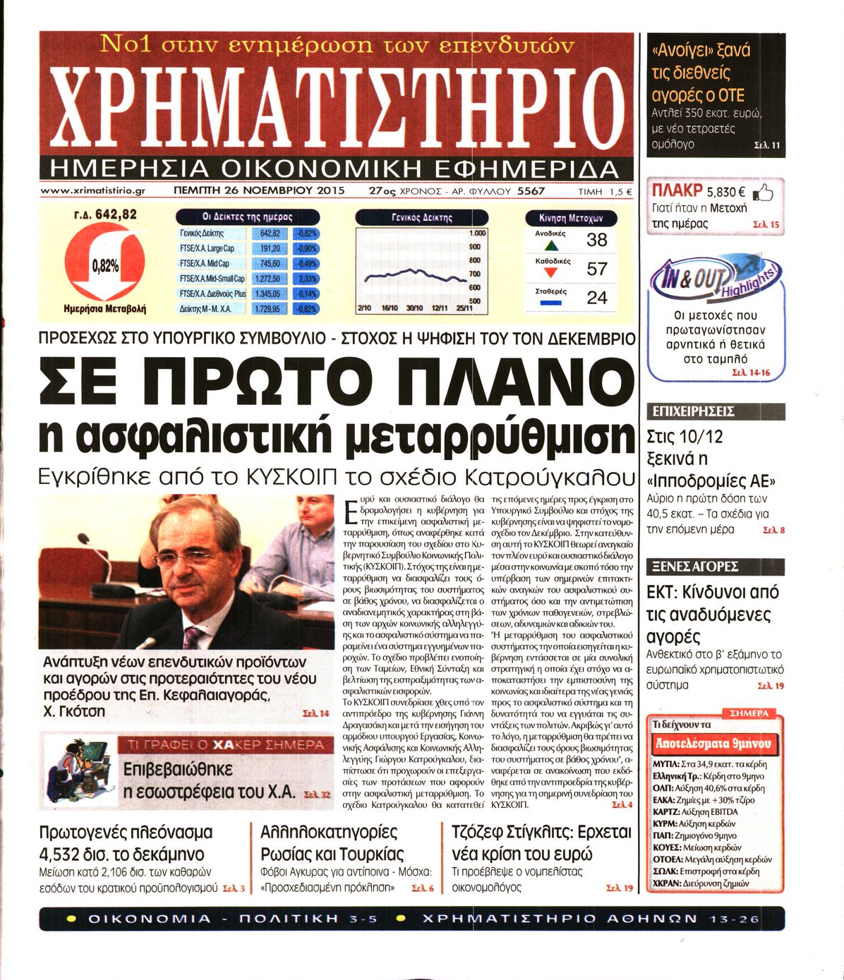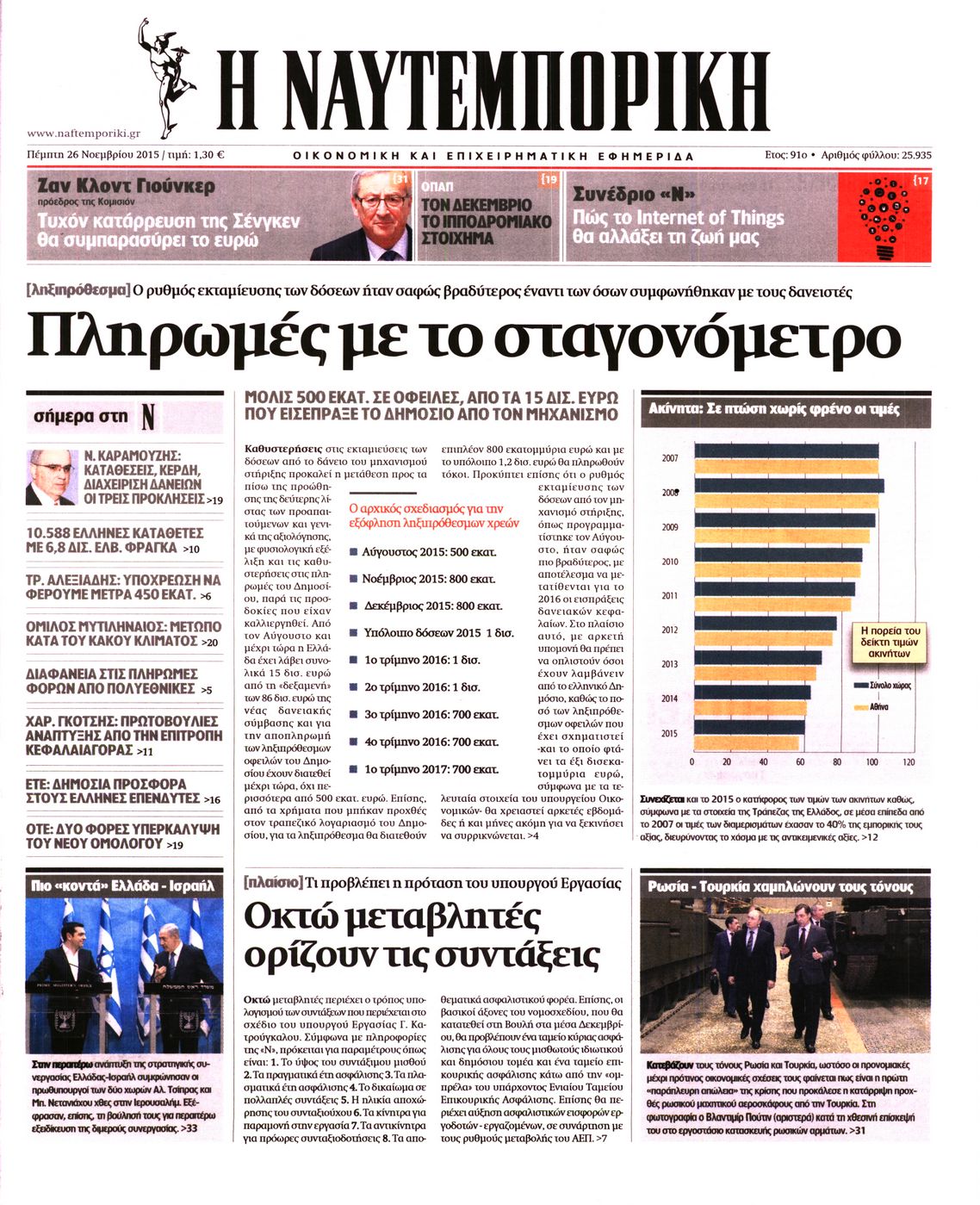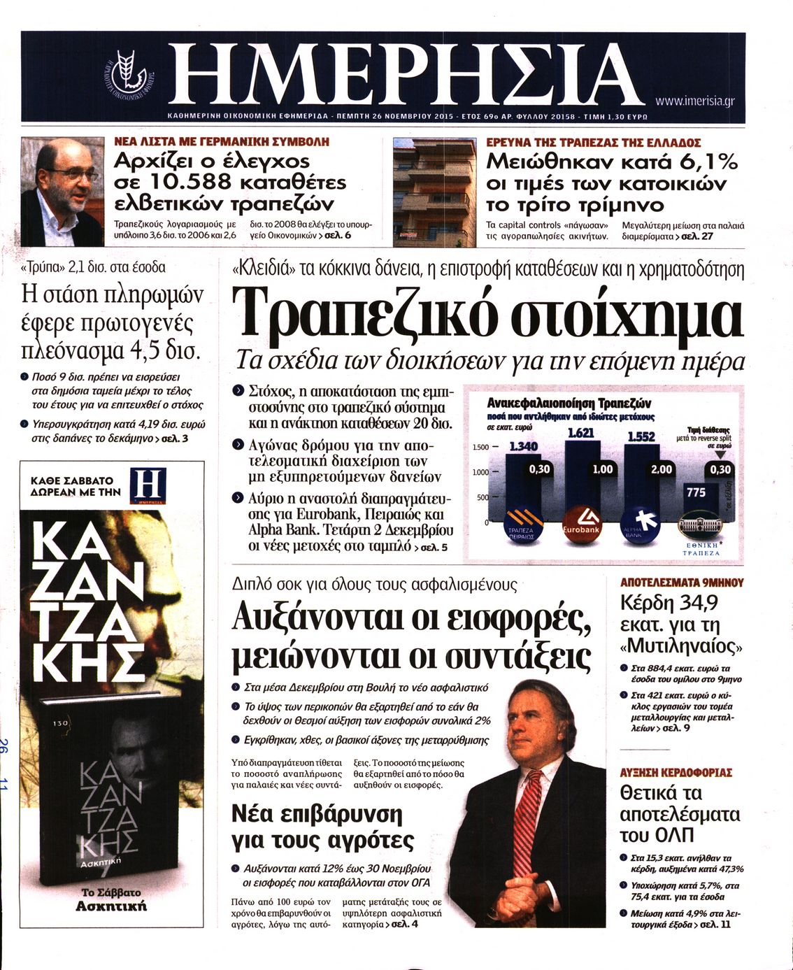 Οι οικονομικές εφημερίδες 26/11/2015 Enikos Newsroom 05:33, Πέμπτη 26 Νοεμβρίου 2015 Media Διαβάστε τα σημερινά πρωτοσέλιδα των οικονομικών εφημερίδων: ΟΙΚΟΝΟΜΙΚΕΣ ΕΦΗΜΕΡΙΔΕΣ ΠΡΩΤΟΣΕΛΙΔΑ Μοιράσου το: σχολίασε κι εσύ (0 σχόλια) Ακολουθήστε το enikos.gr στο Google News και μάθετε πρώτοι όλες τις ειδήσεις Δείτε όλες τις τελευταίες ειδήσεις από την Ελλάδα και τον Κόσμο στο enikos.gr Ειδήσεις Ροή Ειδήσεων 7 ώρες πριν Χριστούγεννα στα μπλόκα: Επιμένουν στις κινητοποιήσεις τους οι αγρότες – Ανοίγουν τα διόδια το Σαββατοκύριακο 7 ώρες πριν Ουκρανία: Η άνευ προηγουμένου επίθεση σε ρωσικό τάνκερ στη Μεσόγειο και το μήνυμα προς στον Πούτιν – Το «μακρύ χέρι» του Κιέβου 7 ώρες πριν Πούτιν: Τα μηνύματα σε Ευρώπη και ΝΑΤΟ από το μαραθώνιο «σόου» του – Η απαίτηση για «σεβασμό» και η ειρήνη «με τους όρους» της Μόσχας 7 ώρες πριν Τραμπ: Δεν αποκλείει την πιθανότητα ενός πολέμου στη Βενεζουέλα – «Ο Μαδούρο ξέρει καλύτερα από τον καθένα τι ακριβώς θέλω» 8 ώρες πριν Συνεχίζει να προκαλεί ο Μίτσκοσκι: «Για μένα το όνομα Μακεδονία είναι ιερό» 8 λεπτά πριν Τα ζώδια σήμερα, Σάββατο 20 Δεκεμβρίου: Παρθένοι, το σύμπαν σας δίνει το κλειδί 7 ώρες πριν Ανακαλύφθηκαν αρχαία χρυσά νομίσματα 2.200 ετών που απεικονίζουν τον θεό Απόλλωνα – Η άγνωστη σύνδεση με τον Φίλιππο Β΄ της Μακεδονίας 8 ώρες πριν Ύπνος: Μια κρυφή κατάσταση του εγκεφάλου πριν από τον ύπνο μπορεί να είναι το “κλειδί” για υψηλή ευφυΐα και δημιουργικότητα 9 ώρες πριν Αριθμολογία: Οι άνθρωποι που έχουν γεννηθεί αυτές τις 4 ημερομηνίες, συχνά παρεξηγούνται – «Η καλοσύνη τους κρύβει τεράστια δύναμη» 10 δευτερόλεπτα πριν Οι πολιτικές εφημερίδες 20/12/2025 8 λεπτά πριν Τα ζώδια σήμερα, Σάββατο 20 Δεκεμβρίου: Παρθένοι, το σύμπαν σας δίνει το κλειδί 13 λεπτά πριν Παιανία: Δυο αυτοκίνητα τυλίχτηκαν στις φλόγες – Συναγερμός στην Πυροσβεστική 17 λεπτά πριν Εφημερεύοντα φαρμακεία σε Αθήνα και Θεσσαλονίκη (20/12) 23 λεπτά πριν Γιώργος Μπαρτζώκας: «Για εμένα σημαίνει πάρα πολλά να ακούω το όνομά μου από τον κόσμο του Ολυμπιακού» ENIKOS NETWORK Το ΕΚΑΒ τιμήθηκε από την Ακαδημία Αθηνών για τα 40 χρόνια προσφοράς του Έχετε πραγματικά μεγάλη καρδιά; 10 χαρακτηριστικά όσων έχουν καλοσύνη Αναστολή μέτρων αναγκαστικής εκτέλεσης για κτηνοτρόφους που πλήττονται από την ευλογιά των αιγοπροβάτων Πλήρης επάρκεια προϊόντων στις λαϊκές της Αττικής, παρά τις αγροτικές κινητοποιήσεις – Τι απαντούν οι πωλητές Χαρτογραφώντας το «σημείο χωρίς επιστροφή»: Για πρώτη φορά αποκαλύπτεται με λεπτομέρεια το ακανθώδες όριο της ατμόσφαιρας τ... Η Google καταργεί τη λειτουργία «dark web report» – Πώς θα μπορούν οι χρήστες να διαγράφουν τα δεδομένα τους περισσότερα 05:38 , Σάββατο 20 Δεκεμβρίου 2025 Οι πολιτικές εφημερίδες 20/12/2025 Διαβάστε τα πρωτοσέλιδα από τις πολιτικές εφημερίδες, σήμερα 20/12/2025. 04:20 , Σάββατο 20 Δεκεμβρίου 2025 Αγγελική Νικολούλη: Τα συλλυπητήρια για την απώλεια της Ειρήνης Μαρινάκη Τα συλληπητήρια στον πρόεδρο του Mega, τον Βαγγέλη Μαρινάκη, για την απώλεια της μητέρας του Ε... 02:50 , Σάββατο 20 Δεκεμβρίου 2025 GNTM: Η Ξένια Τσίρκοβα αναδείχθηκε μεγάλη νικήτρια και πήρε τις 50.000 ευρώ – Ποιος βρέθηκε σε απόσταση αναπνοής; Με φαντασμαγορικό τρόπο ολοκληρώθηκε το βράδυ της Παρασκευής ο μεγάλος τελικός του GNTM, μέσα ... 22:42 , Παρασκευή 19 Δεκεμβρίου 2025 Γιώργος Γιαννόπουλος για “Το σόι σου”: “Είναι ευτυχία και ευλογία αυτή η σειρά” «Είναι ευτυχία και ευλογία η συγκυρία αυτής της σειράς», θα πει ο Γιώργος Γιαννό