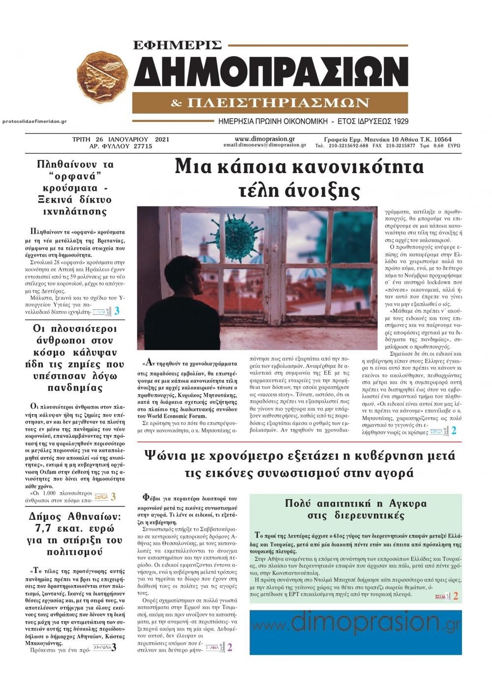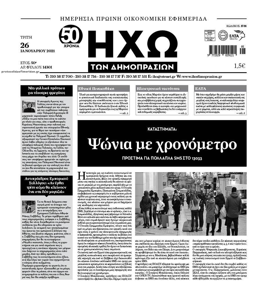Οι οικονομικές εφημερίδες 26/1/2021 Σήφης Γαρυφαλάκης 06:09, Τρίτη 26 Ιανουαρίου 2021 Media Διαβάστε τα πρωτοσέλιδα των οικονομικών εφημερίδων… ΕΦΗΜΕΡΙΔΕΣ ΟΙΚΟΝΟΜΙΚΕΣ ΕΦΗΜΕΡΙΔΕΣ ΠΡΩΤΟΣΕΛΙΔΑ ΠΡΩΤΟΣΕΛΙΔΑ ΕΦΗΜΕΡΙΔΩΝ Μοιράσου το: σχολίασε κι εσύ (0 σχόλια) Ακολουθήστε το enikos.gr στο Google News και μάθετε πρώτοι όλες τις ειδήσεις Δείτε όλες τις τελευταίες ειδήσεις από την Ελλάδα και τον Κόσμο στο enikos.gr Ειδήσεις Ροή Ειδήσεων 5 ώρες πριν Χίος: 15 νεκροί και πολλοί τραυματίες μετά το σοβαρό επεισόδιο Λιμενικού και σκάφους διακινητών 6 ώρες πριν Δολοφονία στη Νέα Πέραμο: Στο «μικροσκόπιο» των Αρχών η τεράστια περιουσία του 27χρονου – Η κατάθεση της συντρόφου του και όσα λένε συγγενικά του πρόσωπα 6 ώρες πριν Υπόθεση Επστάιν: Η σαπίλα που αναδύεται έχει βαθιές ρίζες – Η Αμερική πρέπει τώρα να αναρωτηθεί αν μπορεί να ξεπεράσει μια κουλτούρα ντροπής 6 ώρες πριν Πέπλο μυστηρίου γύρω από την εξαφάνιση της 16χρονης Λόρας – Ο άνδρας που βρέθηκε μαζί της στην πτήση, ο «αυταρχικός» πατέρας και η αντίδραση του αδελφού της 8 ώρες πριν Κλειστό για τρεις ημέρες το Ειδικό Σχολείο Σάμου: «Κάθε έλλειψη είναι κίνδυνος», λένε οι γονείς – Τι υποστηρίζει ο Δήμος 2 ώρες πριν Τα ζώδια σήμερα, Τετάρτη 4 Φεβρουαρίου 2026: Ζυγοί, τιμήστε την ανάγκη σας για αναζωογόνηση 6 ώρες πριν «Χρυσή» αρχαιολογική ανακάλυψη σε χωριό – Βρέθηκε αριστοκρατικός οικισμός σε κτήματα θρυλικού βασιλιά 8 ώρες πριν Πώς να προσελκύσετε πλούτο, ανάλογα με τον μήνα γέννησής σας 9 ώρες πριν Οι άνδρες που δεν σταματούν ποτέ να κάνουν τις γυναίκες τους να νιώθουν ξεχωριστές, έχουν συνήθως αυτά τα 4 ιδιαίτερα χαρακτηριστικά 2 λεπτά πριν Εφημερεύοντα φαρμακεία σε Αθήνα και Θεσσαλονίκη (4/2) 7 λεπτά πριν Συνομιλίες ΗΠΑ – Ιράν αύριο στο Ομάν κι όχι στην Τουρκία, αναφέρουν αραβικές πηγές 23 λεπτά πριν Ιωάννινα: Αρχίζει σήμερα ο προσυνεδριακός διάλογος για το 16ο Τακτικό Συνέδριο της ΝΔ 47 λεπτά πριν Χιός: Νεότερη ενημέρωση από τους τραυματίες – Ελαφρά οι δύο του λιμενικού – Με το πρώτο φως της μέρας συνεχίζονται οι έρευνες για αγνοούμενους 59 λεπτά πριν Θετικό το κλίμα στη συνάντηση Τραμπ με τον πρόεδρο της Κολομβίας Γουστάβο Πέτρο για την καταπολέμηση της εμπορίας ναρκωτικών ENIKOS NETWORK Κρίση άγχους: Το πρώτο πράγμα που προτείνει ένας ψυχοθεραπευτής να κάνετε για να ηρεμήσετε Άδωνις Γεωργιάδης: Σε app για το κινητό τηλέφωνο το Εθνικό Μητρώο Νεοπλασιών ΕΑΕΕ: Άνοδος στην παραγωγή ασφαλίστρων το ενδεκάμηνο του 2025 – Τι δείχνουν τα στοιχεία Κενές περισσότερες από 70.000 θέσεις εργασίας στον γεωργικό τομέα – «Περίπου το 10% του καρπού της ελιάς έχει μείνει στα δέ... Ευπάθεια στο moltbook ai αποκαλύπτει email, tokens σύνδεσης και api keys Αυτός είναι ο ρόλος της μικρής τρύπας στους νυχοκόπτες – «Είμαι ο μόνος που δεν το ήξερε;»» περισσότερα 02:33 , Τετάρτη 04 Φεβρουαρίου 2026 MasterChef: Λύγισε ο Γιώργος Αχλαδιώτης – «Κερδίζω, συγκινούμαι… Τώρα θα τους δείξω τι αξίζω» Το πρώτο Τεστ Δημιουργικότητας του MasterChef ολοκληρώθηκε με έναν ξεκάθαρο πρωταγωνιστή. Ο Γι... 21:33 , Τρίτη 03 Φεβρουαρίου 2026 Porto Leone: Στη γειτονιά με τα κόκκινα φανάρια – Η Ασημίνα αποκαλύπτει στην Αλεξάνδρα την εγκυμοσύνη της Λένας Η μεγάλη δραματική σειρά του Apha «Porto Leone: Στη γειτονιά με τα κόκκινα φανάρια» επιστρέφει... 19:52 , Τρίτη 03 Φεβρουαρίου 2026 Να μ’ αγαπάς: Ο Θεόφιλος ζητά από την Σοφία να φύγει από το σπίτι Στο σπίτι των Καλλιγά, τα αληθινά αποτελέσματα DNA επιβεβαιώνουν ότι η Εβίτα είναι κόρη του Θε... 10: