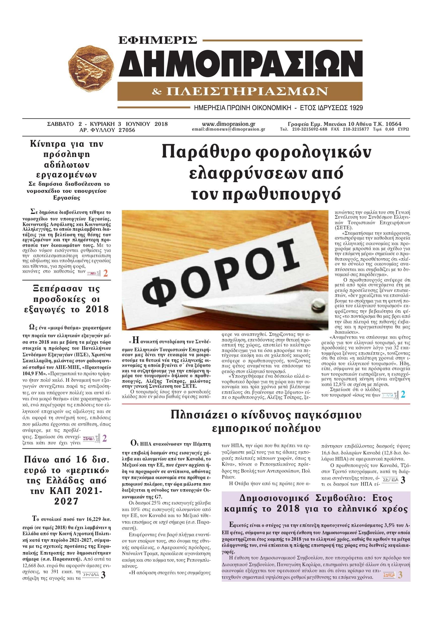 Οι οικονομικές εφημερίδες 2/6/2018 Κώστας Τεό 07:01, Σάββατο 02 Ιουνίου 2018 Media Διαβάστε τα σημερινά πρωτοσέλιδα των οικονομικών εφημερίδων: ΟΙΚΟΝΟΜΙΚΕΣ ΕΦΗΜΕΡΙΔΕΣ ΠΡΩΤΟΣΕΛΙΔΑ Μοιράσου το: σχολίασε κι εσύ (0 σχόλια) Ακολουθήστε το enikos.gr στο Google News και μάθετε πρώτοι όλες τις ειδήσεις Δείτε όλες τις τελευταίες ειδήσεις από την Ελλάδα και τον Κόσμο στο enikos.gr Ειδήσεις Ροή Ειδήσεων 3 ώρες πριν Αγρότες: «Όχι στον διάλογο, μας εμπαίζει η κυβέρνηση» – Αποφάσισαν κλιμάκωση των κινητοποιήσεων, τι θα γίνει τα Χριστούγεννα 4 ώρες πριν Την πρώτη Belharra παρέλαβε η χώρα μας, υψώθηκε η ελληνική σημαία στη φρεγάτα «Κίμων» – Δένδιας: «Το ισχυρότερο Πολεμικό Ναυτικό που είχε ποτέ ο ελληνισμός» 1 ώρα πριν Γιώργος Μαζωνάκης: «Έχει υποστεί ένα σωρό εκβιαστικές πρακτικές – Του είπαν ότι θα του βάλουν τον συγκεκριμένο άνθρωπο να τον καταγγείλει» 3 ώρες πριν Μιχάλης Χουρδάκης: «Είμαι διαθέσιμος να συμβάλω στην προσωρινή κάλυψη του ιατρείου της Ψερίμου» – Η επιστολή στον Άδωνι Γεωργιάδη 3 ώρες πριν Εξώδικο Γεωργιάδη στην Κωνσταντοπούλου – «Με κατηγόρησε ότι έχω καταδικαστεί για παιδεραστία» 58 λεπτά πριν Γάμος: 11 ψυχρές αλλά ευγενικές φράσεις, που λέει ένας άνδρας όταν σκέφτεται τον χωρισμό 4 ώρες πριν Τα 5 ζώδια που θα ευνοηθούν στα οικονομικά τους το 2026 – «Τραβούν το χρήμα σαν μαγνήτες» 5 ώρες πριν Αυτό που κρύβεται κάτω από τη Γροιλανδία θα μπορούσε να ανατρέψει όσα γνωρίζουμε για την άνοδο της στάθμης των θαλασσών 1 ημέρα πριν 20 χρόνια τα Χριστούγεννα ξεκινούν στα Public με μεγάλη ποικιλία σε δώρα! 5 λεπτά πριν Αθήνα: Εξαρθρώθηκε εγκληματική οργάνωση που διακινούσε ναρκωτικά σε μορφή σοκολάτας – Δύο τράπερ ανάμεσα στους 4 συλληφθέντες – ΒΙΝΤΕΟ 14 λεπτά πριν Στη φυλακή ο «Έλληνας Εσκομπάρ» και τρεις συνεργοί του για το φορτίο με την κοκαΐνη – Τι υποστήριξε στην απολογία του 18 λεπτά πριν ΕΕ: Καλεί τα Σκόπια να σέβονται τις δεσμεύσεις από τη διαδικασία ένταξης και το Διεθνές Δίκαιο – Η χρηματοδότηση του Διαδρόμου Χ 24 λεπτά πριν Σοκ στη Σουηδία: 12χρονος πληρωμένος δολοφόνος σκότωσε λάθος άτομο 29 λεπτά πριν FIFA: Έτοιμη να… επανεντάξει τη Ρωσία από το 2026 ENIKOS NETWORK Σκέφτεστε συνέχεια συζητήσεις που έχετε κάνει; Τι σημαίνει αυτό, σύμφωνα με ειδικό Ξεκίνησε η «επέλαση» της γρίπης στην Ελλάδα-Ποιοι κινδυνεύουν Κλιμάκωση των κινητοποιήσεων αποφάσισαν οι αγρότες, κλείνουν παρακαμπτήριους την Παρασκευή – Τι απαντά η κυβέρνηση Ευλογιά αιγοπροβάτων: Νέες αποζημιώσεις ύψους 26,02 εκατ. ευρώ σε κτηνοτρόφους – Η κατανομή ανά Περιφέρεια Χαρτογραφώντας το «σημείο χωρίς επιστροφή»: Για πρώτη φορά αποκαλύπτεται με λεπτομέρεια το ακανθώδες όριο της ατμόσφαιρας τ... Η Google καταργεί τη λειτουργία «dark web report» – Πώς θα μπορούν οι χρήστες να διαγράφουν τα δεδομένα τους περισσότερα 17:45 , Πέμπτη 18 Δεκεμβρίου 2025 ROUK ZOUK: Εορταστικό επεισόδιο με καλεσμένους τους πρωταγωνιστές του «Γιατί ρε πατέρα» Το Σάββατο 20 Δεκεμβρίου στις 21:00, η Ζέτα Μακρυπούλια υποδέχεται εκλεκτούς ηθοποιούς που όλο... 17:20 , Πέμπτη 18 Δεκεμβρίου 2025 Άγιος έρωτας: Η Χριστίνα εξομολογείται στον πατέρα Νικόλαο, απόψε στις 21:00 στον Alpha Η Νότα αποφασίζει να εκδικηθεί τον Πέτρο και τον Στέφανο, για χάρη του Λούη, όμως τα πράγματα ... 16:50 , Πέμπτη 18 Δεκεμβρίου 2025 Να μ’ αγαπάς: Ζωή και Φωτεινή συμφιλιώνονται ως μάνα με κόρη, απόψε στις 20:00 Η ταυτότητα του Άγγελου αποκαλύπτεται στο νέο επεισόδιο της σειράς “Να μ’ αγαπάς... 15:52 , Πέμπτη 18 Δεκεμβρίου 202