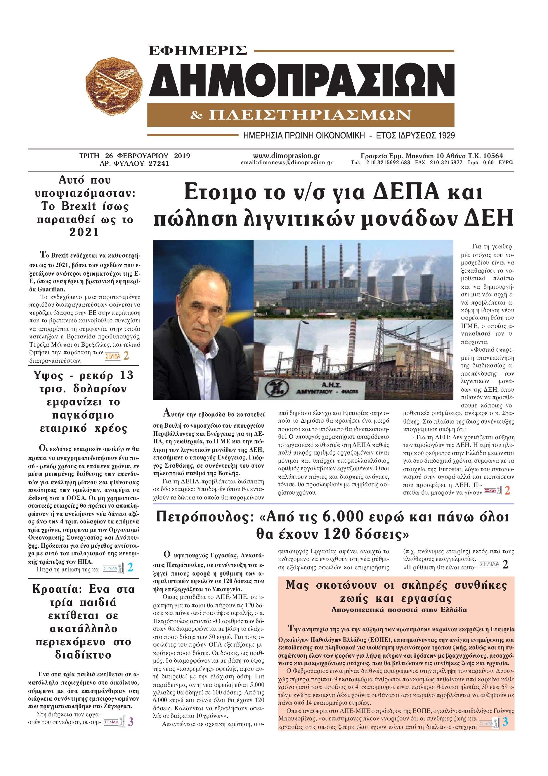 Οι οικονομικές εφημερίδες 26/2/19 Enikos Newsroom 06:28, Τρίτη 26 Φεβρουαρίου 2019 Media Δείτε τα πρωτοσέλιδα: ΟΙΚΟΝΟΜΙΚΕΣ ΕΦΗΜΕΡΙΔΕΣ ΠΡΩΤΟΣΕΛΙΔΑ Μοιράσου το: σχολίασε κι εσύ (0 σχόλια) Ακολουθήστε το enikos.gr στο Google News και μάθετε πρώτοι όλες τις ειδήσεις Δείτε όλες τις τελευταίες ειδήσεις από την Ελλάδα και τον Κόσμο στο enikos.gr Ειδήσεις Ροή Ειδήσεων 49 λεπτά πριν Αγρότες: Πολύωροι αποκλεισμοί στα τελωνεία Προμαχώνα, Εξοχής, Ευζώνων και Νίκης – Κλείνουν τον κόμβο Φιλώτα οι παραγωγοί στη Δυτική Μακεδονία 20 λεπτά πριν Νίκος Παππάς: Ζητώ συγγνώμη για αυτό το επεισόδιο – Δεν τον γρονθοκόπησα 2 ώρες πριν Ευρωπαϊκό Συμβούλιο: Όλες οι λεπτομέρειες για το δάνειο των 90 δισ. ευρώ στην Ουκρανία – Τα συμπεράσματα της Συνόδου Κορυφής 2 ώρες πριν Αίγιο: 22χρονη κατήγγειλε ότι έπεσε θύμα βιασμού και ληστείας από συγγενικά της πρόσωπα 2 ώρες πριν Σφοδρές βροχές και καταιγίδες πλήττουν τα Ηνωμένα Αραβικά Εμιράτα: Ακυρώσεις πτήσεων, προβλήματα στην κυκλοφορία 1 ώρα πριν Αλλαγή σελίδας για 3 ζώδια – «Μία δύσκολη περίοδος φτάνει στο τέλος της» 3 ώρες πριν Πώς το αρχαίο DNA του κυνηγού – συλλέκτη ξεκλείδωσε τα μυστικά της μακροζωίας 2 ημέρες πριν 20 χρόνια τα Χριστούγεννα ξεκινούν στα Public με μεγάλη ποικιλία σε δώρα! 2 ώρες πριν Ο σύζυγός της συμπεριφέρεται όπως το παιδί τους – «Χρησιμοποιεί αστείες δικαιολογίες για να μην κάνει δουλειές και να ξοδεύει λεφτά» 2 λεπτά πριν Τομ Κρουζ: Χορεύει με ένα φτυάρι στη νέα ταινία του Αλεχάντρο Γκονζάλες Ινιάριτου, «Digger» 8 λεπτά πριν Γεμάτος νεροχύτης; 5 σοβαρές ευθύνες που «φοβίζουν» όσους αφήνουν άπλυτα πιάτα 12 λεπτά πριν Ρόδος: Επεισόδιο μεταξύ ανηλίκων έξω από σχολείο – Απείλησαν με σουγιά 12χρονο 17 λεπτά πριν Γιώργος Μαζωνάκης: Η πρώτη αντίδραση της οικογένειάς του μετά τη μήνυση του Στέφανου Παπαδόπουλου 20 λεπτά πριν Νίκος Παππάς: Ζητώ συγγνώμη για αυτό το επεισόδιο – Δεν τον γρονθοκόπησα ENIKOS NETWORK Καρκίνος του πνεύμονα: Έως 8.000 ζωές μπορούν να σωθούν με την έγκαιρη διάγνωση Καρδιοπαθείς: Οι νέες συστάσεις για τα εμβόλια που πρέπει να κάνουν τον χειμώνα Απειλή για τον Προϋπολογισμό τα ληξιπρόθεσμα χρέη των ιδιωτών προς την εφορία – Τι δείχνουν τα στοιχεία Συντάξεις: Οι κερδισμένοι και οι χαμένοι από τις αυξήσεις – Αναλυτικός οδηγός Χαρτογραφώντας το «σημείο χωρίς επιστροφή»: Για πρώτη φορά αποκαλύπτεται με λεπτομέρεια το ακανθώδες όριο της ατμόσφαιρας τ... Η Google καταργεί τη λειτουργία «dark web report» – Πώς θα μπορούν οι χρήστες να διαγράφουν τα δεδομένα τους περισσότερα 08:00 , Παρασκευή 19 Δεκεμβρίου 2025 Την Κυριακή με τη Realnews: Δωροεπιταγή 10€ Δωροεπιταγή αξίας 10€ για αγορές άνω των 60€ από τα πολυκαταστήματα FactoryOutlet H προσφορά ι... 05:48 , Παρασκευή 19 Δεκεμβρίου 2025 Οι οικονομικές εφημερίδες 19/12/2025 Διαβάστε τα πρωτοσέλιδα από τις οικονομικές εφημερίδες, σήμερα 19/12/2025. 05:43 , Παρασκευή 19 Δεκεμβρίου 2025 Οι αθλητικές εφημερίδες 19/12/2025 Διαβάστε τα πρωτοσέλιδα από τις αθλητικές εφημερίδες, σήμερα 19/12/2025. 05:38 , Παρασκευή 19 Δεκεμβρίου 2025 Οι πολιτικές εφημερίδες 19/12/2025 Διαβάστε τα πρωτοσέλιδα από τις πολιτικές εφημερίδες, σήμερα 19/12/2025. ΤΕΛΕΥΤΑΙΕΣ ΕΙΔΗΣΕΙΣ 8 λεπτά πριν Γεμάτος νεροχύτης; 5 σοβαρές ευθύνες που «φοβίζουν»... 12 λεπτά πριν Ρόδος: Επεισόδιο μεταξύ ανηλίκων έξω από σχολείο –... 17 λεπτά πριν Γιώργος Μαζωνάκης: Η πρώτη αντίδραση της οικογένειάς... 20 λεπτά πριν Νίκος Παππάς: Ζητώ συγγνώμη για αυτό το επεισόδιο –... 21 λεπτά πριν Κολομβία: Δεκάδες τραυματίες σε ε