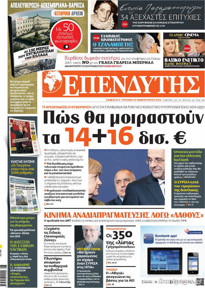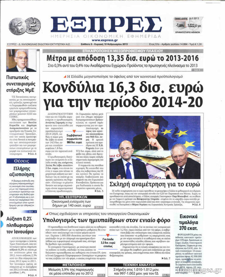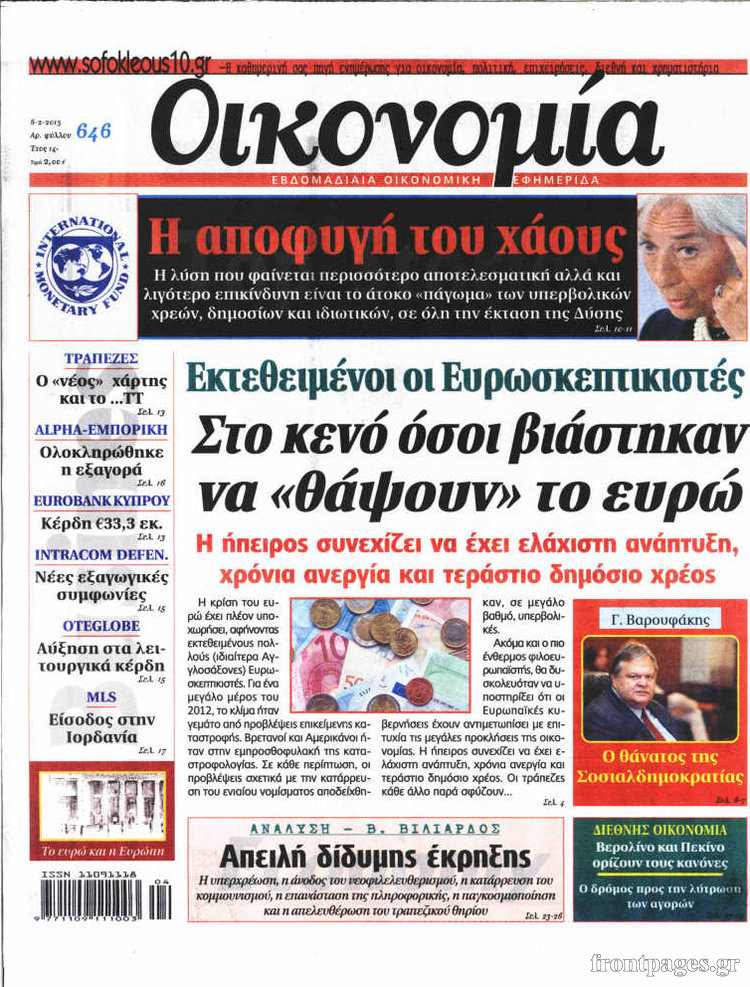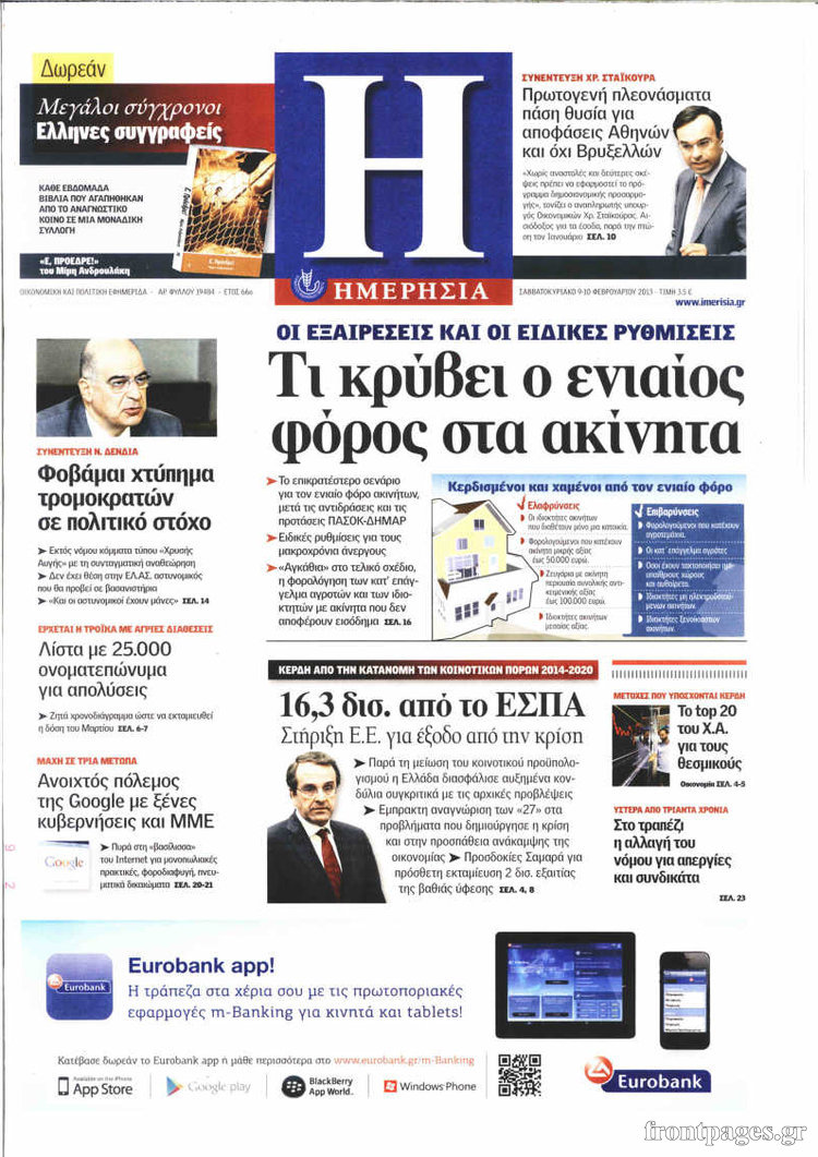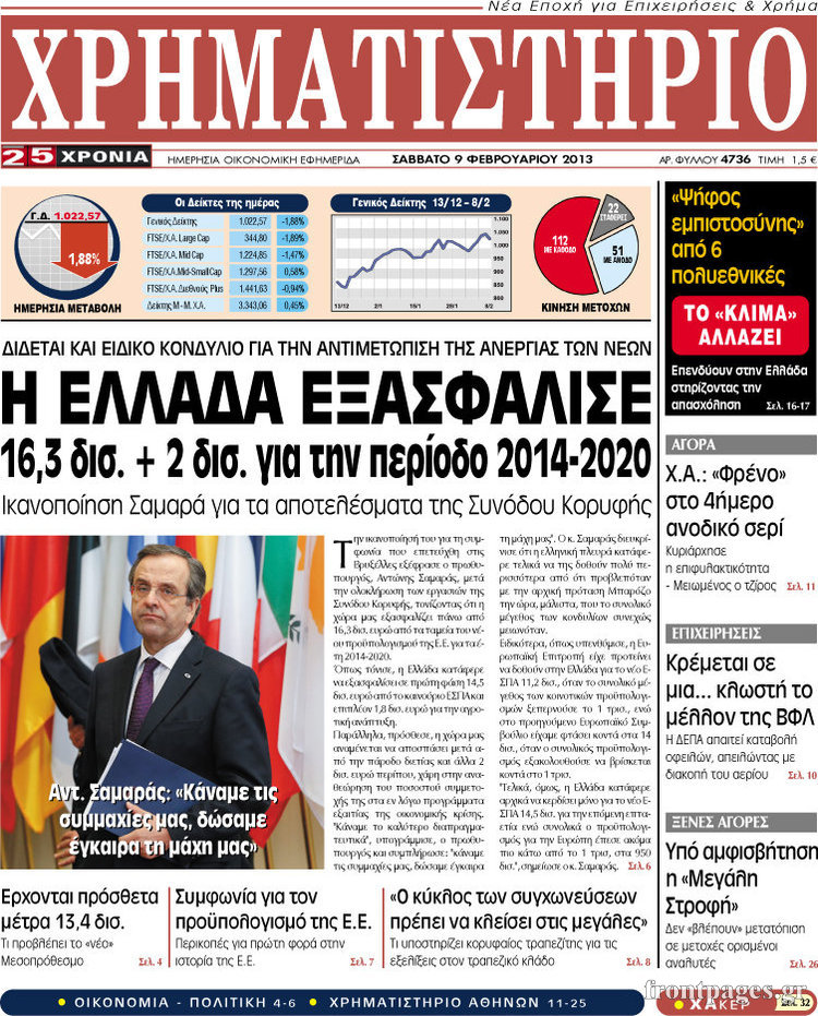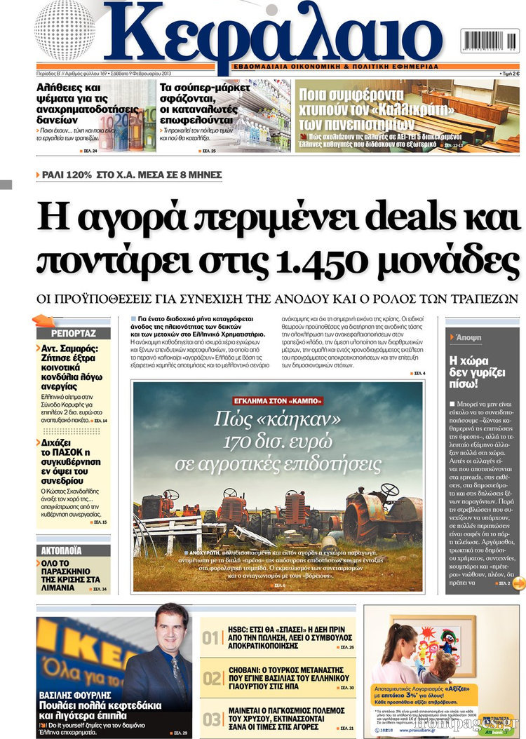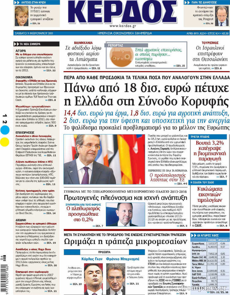 Οι οικονομικές εφημερίδες Enikos Newsroom 09:28, Σάββατο 09 Φεβρουαρίου 2013 Media Οι οικονομικές εφημερίδες Τα πρωτοσέλιδα των οικονομικών εφημερίδων. ΕΦΗΜΕΡΙΔΕΣ ΟΙΚΟΝΟΜΙΚΕΣ ΕΦΗΜΕΡΙΔΕΣ ΠΡΩΤΟΣΕΛΙΔΑ Μοιράσου το: σχολίασε κι εσύ (0 σχόλια) Ακολουθήστε το enikos.gr στο Google News και μάθετε πρώτοι όλες τις ειδήσεις Δείτε όλες τις τελευταίες ειδήσεις από την Ελλάδα και τον Κόσμο στο enikos.gr Ειδήσεις Ροή Ειδήσεων 4 ώρες πριν Μακελειό στο Σίδνεϊ: Πατέρας και γιος οι δράστες της τρομοκρατικής επίθεσης – Γιατί η Αυστραλία βάζει στο στόχαστρο το Ιράν 5 ώρες πριν Μακελειό στην Αυστραλία: «Πέρασαν οι σφαίρες πάνω από το αυτοκίνητο» – Συγκλονίζει η μαρτυρία Έλληνα που ζει στο Σίδνεϊ 3 ώρες πριν Όλα τα αιτήματα αγροτών, κτηνοτρόφων και μελισσοκόμων προς την κυβέρνηση – Παραμένουν στα μπλόκα και προαναγγέλλουν κλιμάκωση 8 ώρες πριν Τραγική εξέλιξη στο Αίγιο: Πέθανε ο 43χρονος που γρονθοκόπησε γιατρό στο νοσοκομείο 6 ώρες πριν Λακωνία: Βίντεο ντοκουμέντο από την επιχείρηση διάσωσης της 13χρονης που έπεσε σε πηγάδι – Ποια ήταν τα πρώτα λόγια της 5 ώρες πριν Ύπνος: 5 λόγοι για τους οποίους ξυπνάτε κουρασμένοι το πρωί κατά τη διάρκεια του χειμώνα 8 ώρες πριν Οι 7 βραδινές συνήθειες που μαρτυρούν ότι κάποιος υποφέρει από βαθιά μοναξιά, σύμφωνα με την ψυχολογία 16 ώρες πριν Τα 8 πράγματα που τα ευτυχισμένα ζευγάρια δεν κάνουν ποτέ μπροστά στα παιδιά τους 7 ώρες πριν Κουζίνα: Η καθημερινή συνήθεια των ανθρώπων που την διατηρούν πάντα καθαρή 19 λεπτά πριν Νότια Κορέα: Έφοδος της αστυνομίας στα γραφεία της Ενωτικής Εκκλησίας στη Σεούλ 34 λεπτά πριν Serie A: Ήττα σοκ για την Φιορεντίνα στο ντέρμπι των ουραγών, κορυφή για την Ίντερ, στο «κόλπο» ξανά η Γιούβε – Τα αποτελέσματα και η βαθμολογία 49 λεπτά πριν Λίβανος: Οι IDF ανέφεραν ότι σκότωσαν τρία μέλη της Χεζμπολάχ 1 ώρα πριν Ρωσία: Στο στόχαστρο της Μόσχας η Deutsche Welle – «Δεν θα μας φιμώσουν», δηλώνει η Διεύθυνση 1 ώρα πριν Συγκίνησε η Ντορέττα Παπαδημητρίου: «Κλείνουν 11 χρόνια από όταν έφυγε από τη ζωή, ήταν πολύ ξαφνικό όπως έγινε και αυτό μας συσπείρωσε» ENIKOS NETWORK 8 κορυφαίες συμβουλές για άνδρες που θέλουν φλογερή σεξουαλική ζωή, σύμφωνα με ειδικό Baby botox: Ποια τα οφέλη και οι κίνδυνοι του να ξεκινήσει κάποιος τις ενέσεις πριν εμφανιστούν ρυτίδες Τέλος οι διώξεις για χρέη σε Εφορία και ΕΦΚΑ – Τι προβλέπει νέα διάταξη μετά την πτώχευση Υπουργείο Αγροτικής Ανάπτυξης: Ενισχύσεις de minimis ύψους 2,1 εκατ. ευρώ – Οι δικαιούχοι Σύγχρονος Νοστράδαμος: Προειδοποιεί για «μεγάλο γεγονός» τους επόμενους μήνες που θα συγκλονίσει τη Βρετανία και τον κόσμο Τεστ παρατηρητικότητας: Μπορείτε να βρείτε τις 3 διαφορές στις εικόνες με έναν πιγκουίνο σε 14 δευτερόλεπτα περισσότερα 21:34 , Κυριακή 14 Δεκεμβρίου 2025 Ο Δικαστής: Η Λέττα είναι αποφασισμένη να αποκαλύψει την αλήθεια για το τροχαίο, απόψε στις 21:45 στον ΑΝΤ1 Ραγδαίες οι εξελίξεις στο νέο επεισόδιο της σειράς “Ο Δικαστής” απόψε στις 21:45 σ... 17:38 , Κυριακή 14 Δεκεμβρίου 2025 Τηλεθέαση (13/12): Τα ποσοστά για το βράδυ του Σαββάτου Η «μάχη» της prime time για την τηλεθέαση, συνεχίστηκε δυναμικά το βράδυ του Σαββάτου (13/12).... 16:32 , Κυριακή 14 Δεκεμβρίου 2025 Τηλεθέαση (13/12): Πώς κινήθηκαν οι εκπομπές στην πρωινή ζώνη το Σάββατο Με αμείωτη ένταση συνεχίστηκε η μάχη για την τηλεθέαση στην πρωινή ζώνη των τηλεοπτικών καναλι... 15:07 , Κυριακή 14 Δεκεμβρίου 2025 IQ160: Η Μαρίνα στέλνει το φούτερ του Τηλέμαχου για το τεστ πατρότητας Η Πηνελόπη αποφασίζει ν