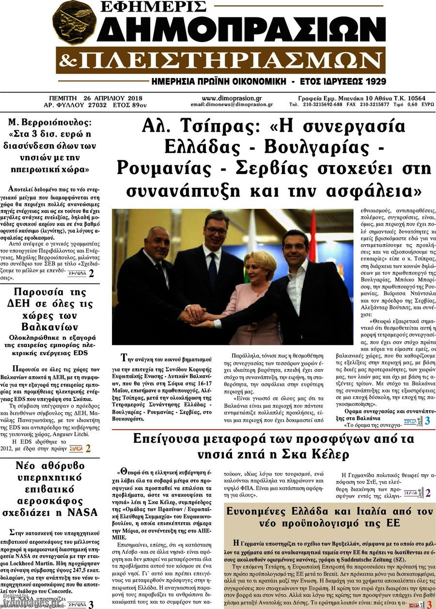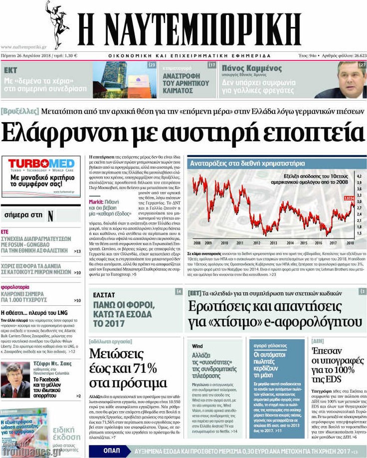 Οι οικονομικές εφημερίδες 26/4/2018 Enikos Newsroom 07:07, Πέμπτη 26 Απριλίου 2018 Media Διαβάστε τα σημερινά πρωτοσέλιδα των οικονομικών εφημερίδων: ΟΙΚΟΝΟΜΙΚΕΣ ΕΦΗΜΕΡΙΔΕΣ ΠΡΩΤΟΣΕΛΙΔΑ Μοιράσου το: σχολίασε κι εσύ (0 σχόλια) Ακολουθήστε το enikos.gr στο Google News και μάθετε πρώτοι όλες τις ειδήσεις Δείτε όλες τις τελευταίες ειδήσεις από την Ελλάδα και τον Κόσμο στο enikos.gr Ειδήσεις Ροή Ειδήσεων 4 ώρες πριν Αυξάνουν την πίεση προς την κυβέρνηση οι αγρότες: Κλείνουν παρακαμπτήριους και ανοίγουν διόδια – Τι θα γίνει τις γιορτές 3 ώρες πριν ΟΠΕΚΕΠΕ: Προφυλακιστέος ο φερόμενος αρχηγός και ο λογιστής της εγκληματικής οργάνωσης 4 ώρες πριν Φοινικούντα: Το Σάββατο απολογείται ο 30χρονος γιος γνωστού επιχειρηματία της Πλάκας που παραδόθηκε – Όσα είπε στους αστυνομικούς και ο ρόλος του στο έγκλημα 3 ώρες πριν Μπορεί ο Μαδούρο να αντέξει τον αποκλεισμό του Τραμπ; Τι θα χρειαστεί η Ουάσινγκτον για να τον ανατρέψει 2 ώρες πριν ΑΕΚ – Κραϊόβα 3-2: Επική ανατροπή και πρόκριση στους «16» του Conference League η Ένωση 3 ώρες πριν Αρχαιολόγοι ανακάλυψαν ρωμαϊκά τεχνουργήματα από μια πόλη που δεν υπήρξε ποτέ – Τα τρία εντυπωσιακά κτίρια και ο αμφορέας με τις… σαρδέλες 4 ώρες πριν Ύπνος: Η απλή βραδινή ρουτίνα για να προστατεύσετε τα μαλλιά σας από το κρύο κατά τη διάρκεια του χειμώνα 5 ώρες πριν Manifesting: Πώς να συναντήσετε τον σύντροφο της ζωής σας, ανάλογα με τον μήνα γέννησής σας 2 ημέρες πριν 20 χρόνια τα Χριστούγεννα ξεκινούν στα Public με μεγάλη ποικιλία σε δώρα! 9 λεπτά πριν Πόλεμος στην Ουκρανία: Ρωσικά drones έπληξαν την Οδησσό – Μία νεκρή και ζημιές σε ενεργειακές υποδομές 16 λεπτά πριν ΑΕΚ-Κραϊόβα: Τα highlights της μυθικής ανατροπής της «Ένωσης» 32 λεπτά πριν Μιχάλης Χρυσοχοΐδης από την Κωνσταντινούπολη: Κοινές επιχειρήσεις Ελλάδας – Τουρκίας ενάντια στο οργανωμένο έγκλημα 54 λεπτά πριν Μάρκο Νίκολιτς: «Είμαι περήφανος για τους παίκτες μου, όποιος αντίπαλος και να έρθει θα προετοιμαστούμε» 1 ώρα πριν ΟΗΕ: Την εκλογή του νέου ύπατου αρμοστή για τους Πρόσφυγες Μπαρχάμ Άχμεντ Σαλίχ χαιρέτησε ο Αντόνιο Γκουτέρες ENIKOS NETWORK Σε περίοδο αυξημένης δραστηριότητας η γρίπη στην Ελλάδα-Μέτρα προστασίας από τον ΕΟΔΥ Σκέφτεστε συνέχεια συζητήσεις που έχετε κάνει; Τι σημαίνει αυτό, σύμφωνα με ειδικό Στεγαστικό: Τι λέει η ΠΟΜΙΔΑ για τα νέα μέτρα που ανακοίνωσε ο Κυριάκος Μητσοτάκης Λαγκάρντ: Αισιόδοξη για την ανάπτυξη της Ευρωζώνης, αβέβαιη για τον πληθωρισμό Χαρτογραφώντας το «σημείο χωρίς επιστροφή»: Για πρώτη φορά αποκαλύπτεται με λεπτομέρεια το ακανθώδες όριο της ατμόσφαιρας τ... Η Google καταργεί τη λειτουργία «dark web report» – Πώς θα μπορούν οι χρήστες να διαγράφουν τα δεδομένα τους περισσότερα 17:45 , Πέμπτη 18 Δεκεμβρίου 2025 ROUK ZOUK: Εορταστικό επεισόδιο με καλεσμένους τους πρωταγωνιστές του «Γιατί ρε πατέρα» Το Σάββατο 20 Δεκεμβρίου στις 21:00, η Ζέτα Μακρυπούλια υποδέχεται εκλεκτούς ηθοποιούς που όλο... 17:20 , Πέμπτη 18 Δεκεμβρίου 2025 Άγιος έρωτας: Η Χριστίνα εξομολογείται στον πατέρα Νικόλαο, απόψε στις 21:00 στον Alpha Η Νότα αποφασίζει να εκδικηθεί τον Πέτρο και τον Στέφανο, για χάρη του Λούη, όμως τα πράγματα ... 16:50 , Πέμπτη 18 Δεκεμβρίου 2025 Να μ’ αγαπάς: Ζωή και Φωτεινή συμφιλιώνονται ως μάνα με κόρη, απόψε στις 20:00 Η ταυτότητα του Άγγελου αποκαλύπτεται στο νέο επεισόδιο της σειράς “Να μ’ αγαπάς... 15:52 , Πέμπτη 18 Δεκεμβρίου 2025 Το Σπίτι Δίπλα Στο Ποτάμι: Το καθηλωτικό τελευταίο επεισόδιο για το 2025 απόψε στις 22:30 Καθηλώνει το σημεριν