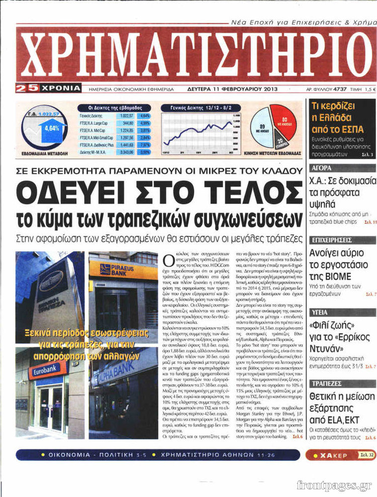 Οι οικονομικές εφημερίδες Enikos Newsroom 09:26, Δευτέρα 11 Φεβρουαρίου 2013 Media Οι οικονομικές εφημερίδες Τα πρωτοσέλιδα των οικονομικών εφημερίδων. ΕΦΗΜΕΡΙΔΕΣ ΟΙΚΟΝΟΜΙΚΕΣ ΕΦΗΜΕΡΙΔΕΣ ΠΡΩΤΟΣΕΛΙΔΑ Μοιράσου το: σχολίασε κι εσύ (0 σχόλια) Ακολουθήστε το enikos.gr στο Google News και μάθετε πρώτοι όλες τις ειδήσεις Δείτε όλες τις τελευταίες ειδήσεις από την Ελλάδα και τον Κόσμο στο enikos.gr Ειδήσεις Ροή Ειδήσεων 8 ώρες πριν Μακελειό στο Σίδνεϊ: Πατέρας και γιος οι δράστες της τρομοκρατικής επίθεσης – Γιατί η Αυστραλία βάζει στο στόχαστρο το Ιράν 8 ώρες πριν Μακελειό στην Αυστραλία: «Πέρασαν οι σφαίρες πάνω από το αυτοκίνητο» – Συγκλονίζει η μαρτυρία Έλληνα που ζει στο Σίδνεϊ 7 ώρες πριν Τρομοκρατική επίθεση στο Σίδνεϊ: «Το αναπόφευκτο συνέβη πλέον» – Πώς οι δράστες είχαν χάσει τον ανθρωπισμό τους πριν πατήσουν την σκανδάλη 7 ώρες πριν Όλα τα αιτήματα αγροτών, κτηνοτρόφων και μελισσοκόμων προς την κυβέρνηση – Παραμένουν στα μπλόκα και προαναγγέλλουν κλιμάκωση 10 ώρες πριν Λακωνία: Βίντεο ντοκουμέντο από την επιχείρηση διάσωσης της 13χρονης που έπεσε σε πηγάδι – Ποια ήταν τα πρώτα λόγια της 22 λεπτά πριν Οπτική ψευδαίσθηση: Μόνο το 1% των ανθρώπων θα βρει το ψάρι σε 12 δευτερόλεπτα 37 λεπτά πριν Διατροφή: Γιατρός προειδοποιεί για 2 απλά λάθη που αυξάνουν τον κίνδυνο χρόνιων παθήσεων 1 ώρα πριν Τα ζώδια σήμερα, Δευτέρα 15 Δεκεμβρίου: Ιχθύες, ξεκινήστε από εκεί που η παρουσία σας έχει σημασία 9 ώρες πριν Ύπνος: 5 λόγοι για τους οποίους ξυπνάτε κουρασμένοι το πρωί κατά τη διάρκεια του χειμώνα 6 λεπτά πριν Δημόσιο χρέος: Η Ελλάδα αποπληρώνει σήμερα πρόωρα 5,287 δισ. ευρώ από το πρώτο μνημόνιο – Στα 1,6 δισ. ευρώ η ελάφρυνση 14 λεπτά πριν Τραγωδία στην Κολομβία: Δεκαεπτά νεκροί, ανάμεσά τους 16 μαθητές λυκείου, από πτώση λεωφορείου σε χαράδρα 22 λεπτά πριν Οπτική ψευδαίσθηση: Μόνο το 1% των ανθρώπων θα βρει το ψάρι σε 12 δευτερόλεπτα 29 λεπτά πριν Δώρο Χριστουγέννων 2025: Πότε ξεκινά η πληρωμή του και πως να το υπολογίσετε – Ποιοι θα πάρουν περισσότερα φέτος 37 λεπτά πριν Διατροφή: Γιατρός προειδοποιεί για 2 απλά λάθη που αυξάνουν τον κίνδυνο χρόνιων παθήσεων ENIKOS NETWORK 8 κορυφαίες συμβουλές για άνδρες που θέλουν φλογερή σεξουαλική ζωή, σύμφωνα με ειδικό Baby botox: Ποια τα οφέλη και οι κίνδυνοι του να ξεκινήσει κάποιος τις ενέσεις πριν εμφανιστούν ρυτίδες Τέλος οι διώξεις για χρέη σε Εφορία και ΕΦΚΑ – Τι προβλέπει νέα διάταξη μετά την πτώχευση Υπουργείο Αγροτικής Ανάπτυξης: Ενισχύσεις de minimis ύψους 2,1 εκατ. ευρώ – Οι δικαιούχοι Σύγχρονος Νοστράδαμος: Προειδοποιεί για «μεγάλο γεγονός» τους επόμενους μήνες που θα συγκλονίσει τη Βρετανία και τον κόσμο Τεστ παρατηρητικότητας: Μπορείτε να βρείτε τις 3 διαφορές στις εικόνες με έναν πιγκουίνο σε 14 δευτερόλεπτα περισσότερα 05:49 , Δευτέρα 15 Δεκεμβρίου 2025 Οι οικονομικές εφημερίδες 15/12/2025 Διαβάστε τα πρωτοσέλιδα από τις οικονομικές εφημερίδες, σήμερα 15/12/2025. 05:43 , Δευτέρα 15 Δεκεμβρίου 2025 Οι αθλητικές εφημερίδες 15/12/2025 Διαβάστε τα πρωτοσέλιδα από τις αθλητικές εφημερίδες, σήμερα 15/12/2025. 05:38 , Δευτέρα 15 Δεκεμβρίου 2025 Οι πολιτικές εφημερίδες 15/12/2025 Διαβάστε τα πρωτοσέλιδα από τις πολιτικές εφημερίδες, σήμερα 15/12/2025. 21:34 , Κυριακή 14 Δεκεμβρίου 2025 Ο Δικαστής: Η Λέττα είναι αποφασισμένη να αποκαλύψει την αλήθεια για το τροχαίο, απόψε στις 21:45 στον ΑΝΤ1 Ραγδαίες οι εξελίξεις στο νέο επεισόδιο της σειράς “Ο Δικαστής” απόψε στις 21:45 σ... ΤΕΛΕΥΤΑΙΕΣ ΕΙΔΗΣΕΙΣ 6 λεπτά πριν Δημό