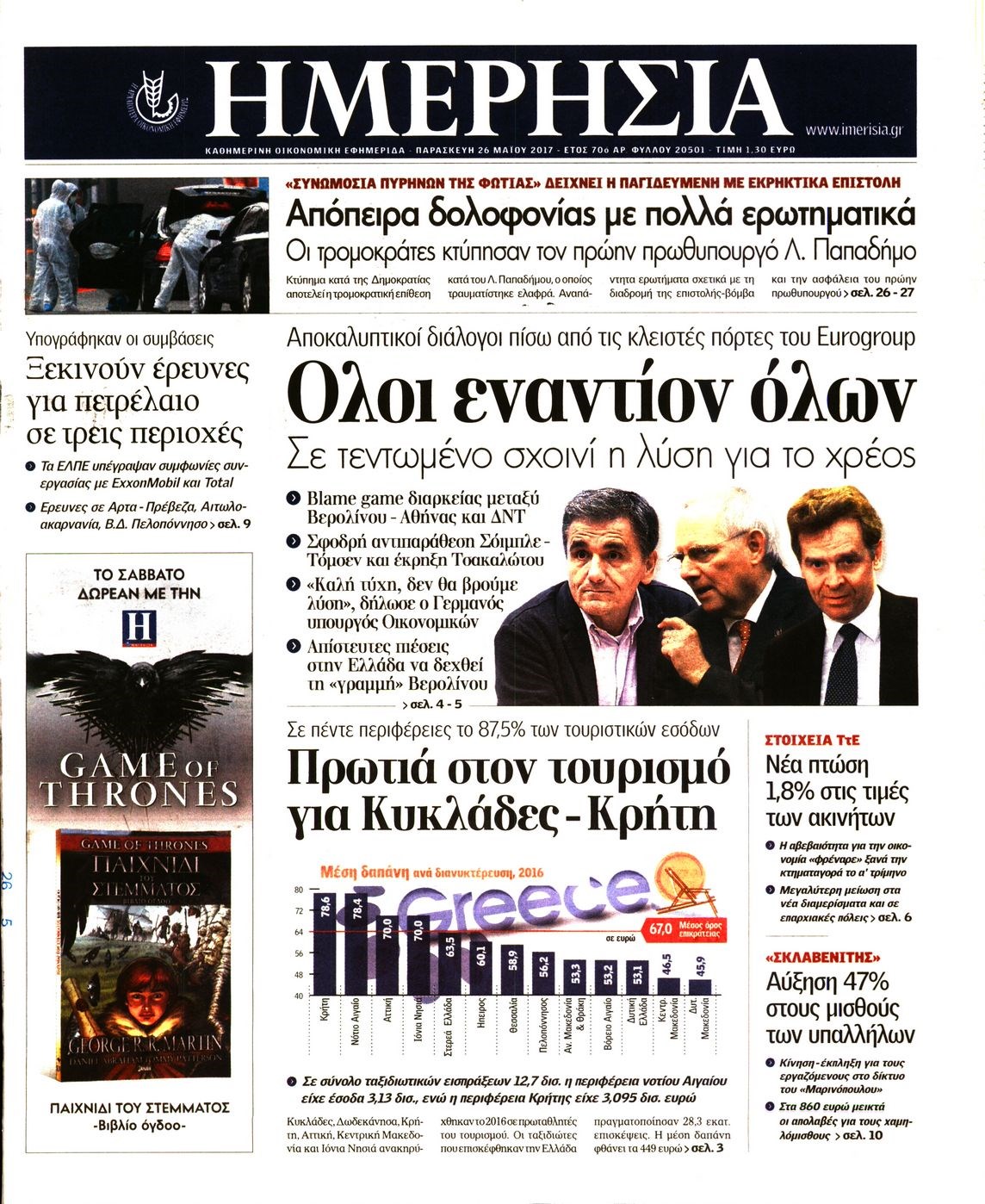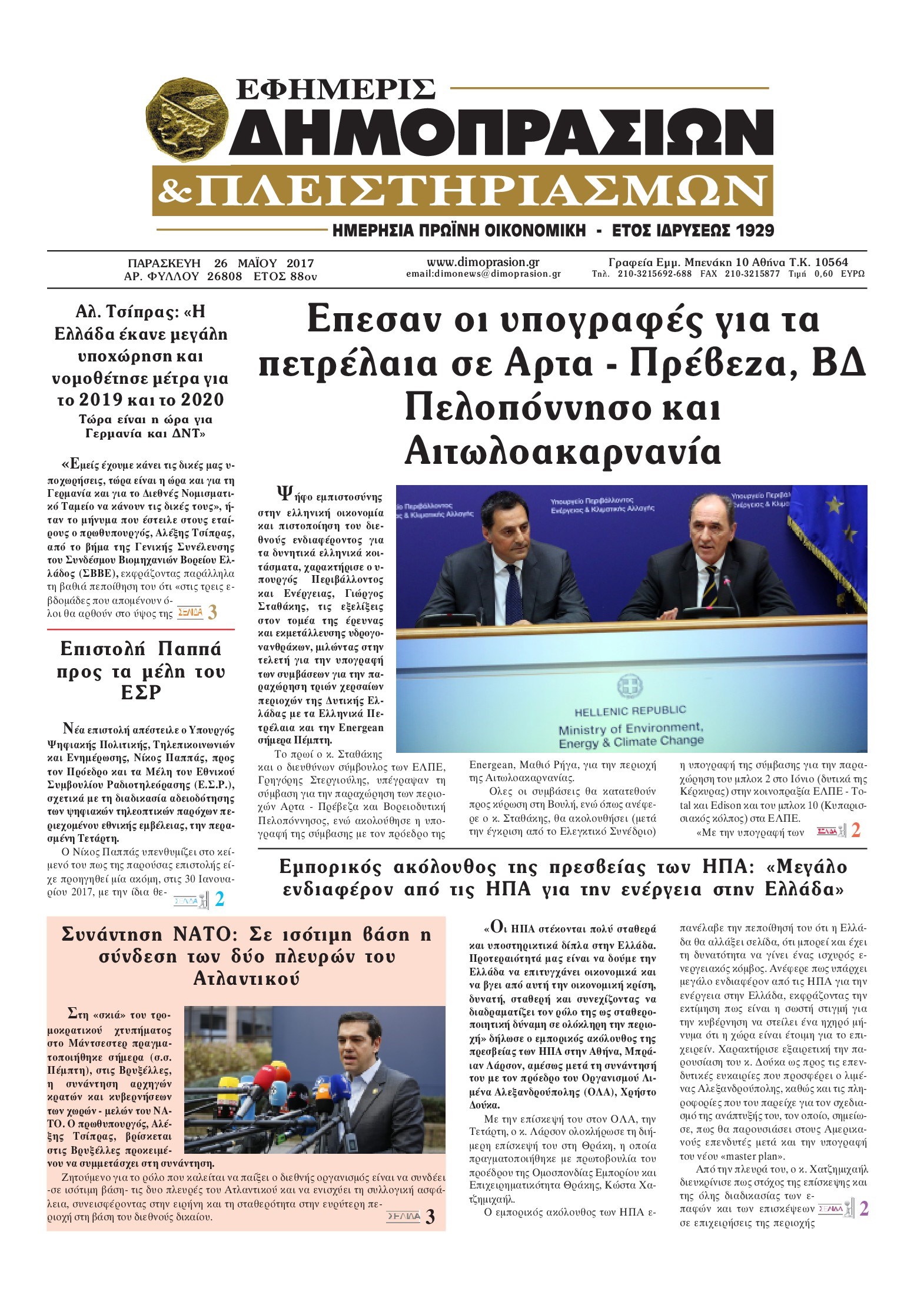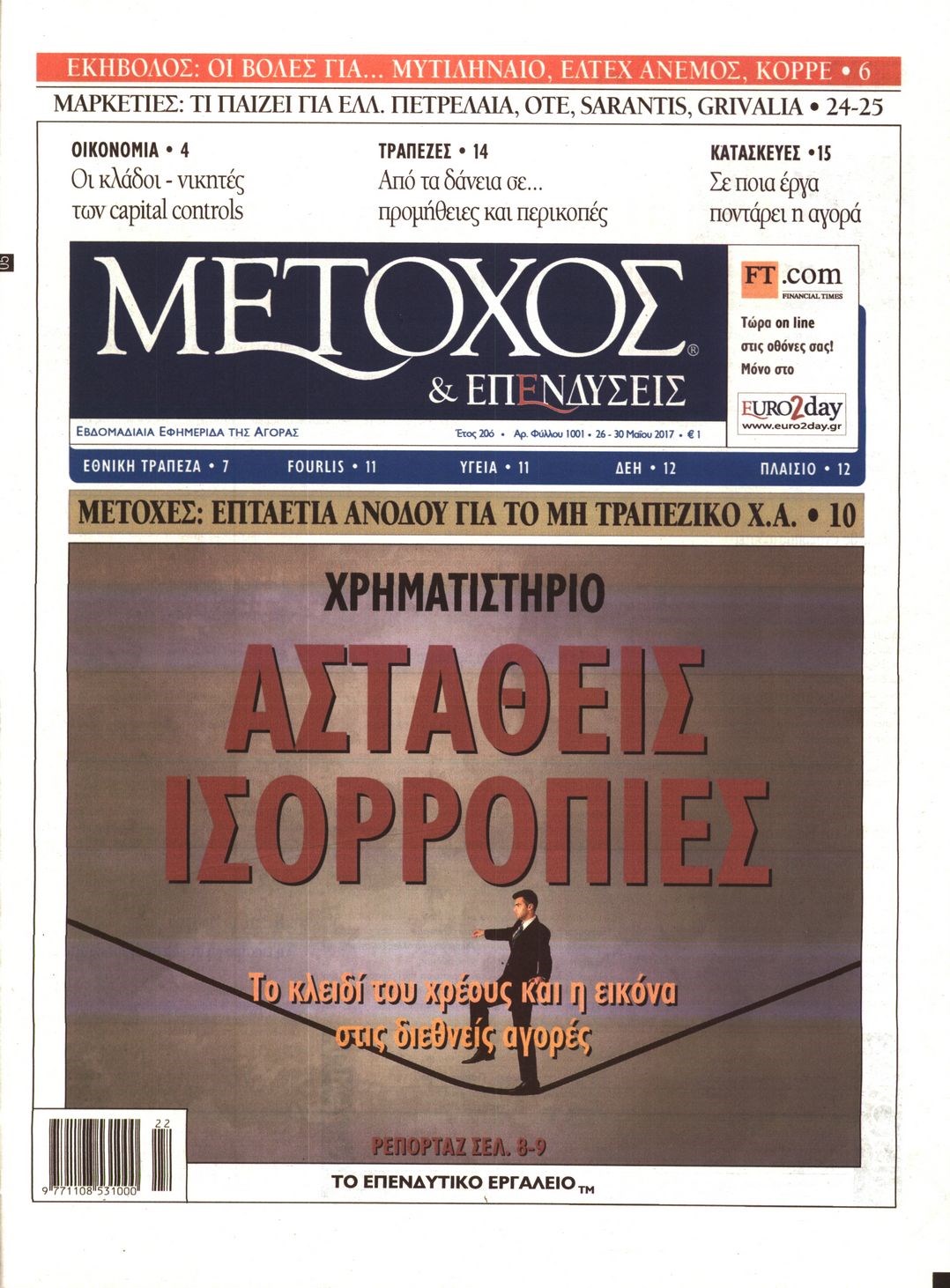 Οι οικονομικές εφημερίδες 26/5/2017 Enikos Newsroom 06:35, Παρασκευή 26 Μαΐου 2017 Media Διαβάστε τα σημερινά πρωτοσέλιδα των οικονομικών εφημερίδων: ΟΙΚΟΝΟΜΙΚΕΣ ΕΦΗΜΕΡΙΔΕΣ ΠΡΩΤΟΣΕΛΙΔΑ Μοιράσου το: σχολίασε κι εσύ (0 σχόλια) Ακολουθήστε το enikos.gr στο Google News και μάθετε πρώτοι όλες τις ειδήσεις Δείτε όλες τις τελευταίες ειδήσεις από την Ελλάδα και τον Κόσμο στο enikos.gr Ειδήσεις Ροή Ειδήσεων 48 λεπτά πριν Αυξάνουν την πίεση προς την κυβέρνηση οι αγρότες: Κλείνουν παρακαμπτήριους και ανοίγουν διόδια – Τι θα γίνει τις γιορτές 38 λεπτά πριν Φοινικούντα: Το Σάββατο απολογείται ο 30χρονος γιος γνωστού επιχειρηματία της Πλάκας που παραδόθηκε – Όσα είπε στους αστυνομικούς και ο ρόλος του στο έγκλημα 21 λεπτά πριν Μπορεί ο Μαδούρο να αντέξει τον αποκλεισμό του Τραμπ; Τι θα χρειαστεί η Ουάσινγκτον για να τον ανατρέψει 2 ώρες πριν Δημοσκόπηση Metron Analysis: Στις 10 μονάδες η διαφορά ΝΔ-ΠΑΣΟΚ, στην 3η θέση η Πλεύση Ελευθερίας – 8 στους 10 στηρίζουν τον αγώνα των αγροτών 2 ώρες πριν Πρίγκιπας Ουίλιαμ – Κέιτ: Η νέα οικογενειακή φωτογραφία για τις Χριστουγεννιάτικες κάρτες του 2025 1 ώρα πριν Ύπνος: Η απλή βραδινή ρουτίνα για να προστατεύσετε τα μαλλιά σας από το κρύο κατά τη διάρκεια του χειμώνα 2 ώρες πριν Manifesting: Πώς να συναντήσετε τον σύντροφο της ζωής σας, ανάλογα με τον μήνα γέννησής σας 2 ημέρες πριν 20 χρόνια τα Χριστούγεννα ξεκινούν στα Public με μεγάλη ποικιλία σε δώρα! 24 λεπτά πριν Αρχαιολόγοι ανακάλυψαν ρωμαϊκά τεχνουργήματα από μια πόλη που δεν υπήρξε ποτέ – Τα τρία εντυπωσιακά κτίρια και ο αμφορέας με τις… σαρδέλες 5 λεπτά πριν Παναθηναϊκός – Χάποελ Τελ Αβίβ 93-82: Με… φόρα από την Κωνσταντινούπολη 21 λεπτά πριν Μπορεί ο Μαδούρο να αντέξει τον αποκλεισμό του Τραμπ; Τι θα χρειαστεί η Ουάσινγκτον για να τον ανατρέψει 24 λεπτά πριν Αρχαιολόγοι ανακάλυψαν ρωμαϊκά τεχνουργήματα από μια πόλη που δεν υπήρξε ποτέ – Τα τρία εντυπωσιακά κτίρια και ο αμφορέας με τις… σαρδέλες 26 λεπτά πριν Στο ΟΑΚΑ για το «Παναθηναϊκός – Χάποελ» η Κίμπερλι Γκίλφοϊλ – ΦΩΤΟ 33 λεπτά πριν Ούρσουλα φον ντερ Λάιεν: Μετατίθεται για τον Ιανουάριο η υπογραφή της εμπορικής συμφωνίας «ΕΕ-MERCOSUR» ENIKOS NETWORK Σε περίοδο αυξημένης δραστηριότητας η γρίπη στην Ελλάδα-Μέτρα προστασίας από τον ΕΟΔΥ Σκέφτεστε συνέχεια συζητήσεις που έχετε κάνει; Τι σημαίνει αυτό, σύμφωνα με ειδικό Στεγαστικό: Τι λέει η ΠΟΜΙΔΑ για τα νέα μέτρα που ανακοίνωσε ο Κυριάκος Μητσοτάκης Λαγκάρντ: Αισιόδοξη για την ανάπτυξη της Ευρωζώνης, αβέβαιη για τον πληθωρισμό Χαρτογραφώντας το «σημείο χωρίς επιστροφή»: Για πρώτη φορά αποκαλύπτεται με λεπτομέρεια το ακανθώδες όριο της ατμόσφαιρας τ... Η Google καταργεί τη λειτουργία «dark web report» – Πώς θα μπορούν οι χρήστες να διαγράφουν τα δεδομένα τους περισσότερα 17:45 , Πέμπτη 18 Δεκεμβρίου 2025 ROUK ZOUK: Εορταστικό επεισόδιο με καλεσμένους τους πρωταγωνιστές του «Γιατί ρε πατέρα» Το Σάββατο 20 Δεκεμβρίου στις 21:00, η Ζέτα Μακρυπούλια υποδέχεται εκλεκτούς ηθοποιούς που όλο... 17:20 , Πέμπτη 18 Δεκεμβρίου 2025 Άγιος έρωτας: Η Χριστίνα εξομολογείται στον πατέρα Νικόλαο, απόψε στις 21:00 στον Alpha Η Νότα αποφασίζει να εκδικηθεί τον Πέτρο και τον Στέφανο, για χάρη του Λούη, όμως τα πράγματα ... 16:50 , Πέμπτη 18 Δεκεμβρίου 2025 Να μ’ αγαπάς: Ζωή και Φωτεινή συμφιλιώνονται ως μάνα με κόρη, απόψε στις 20:00 Η ταυτότητα του Άγγελου αποκαλύπτεται στο νέο επεισόδιο της σειράς “Να μ’ αγαπάς... 15:52 , Πέμπτη 18 Δεκεμβρίου 2025 Το Σπίτι Δίπλα Στο Ποτάμι: Το καθηλωτικό 