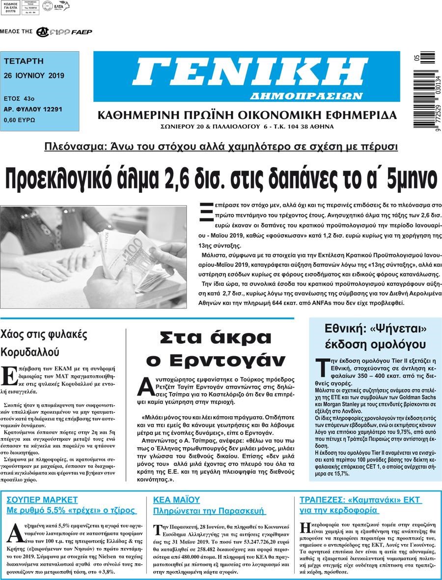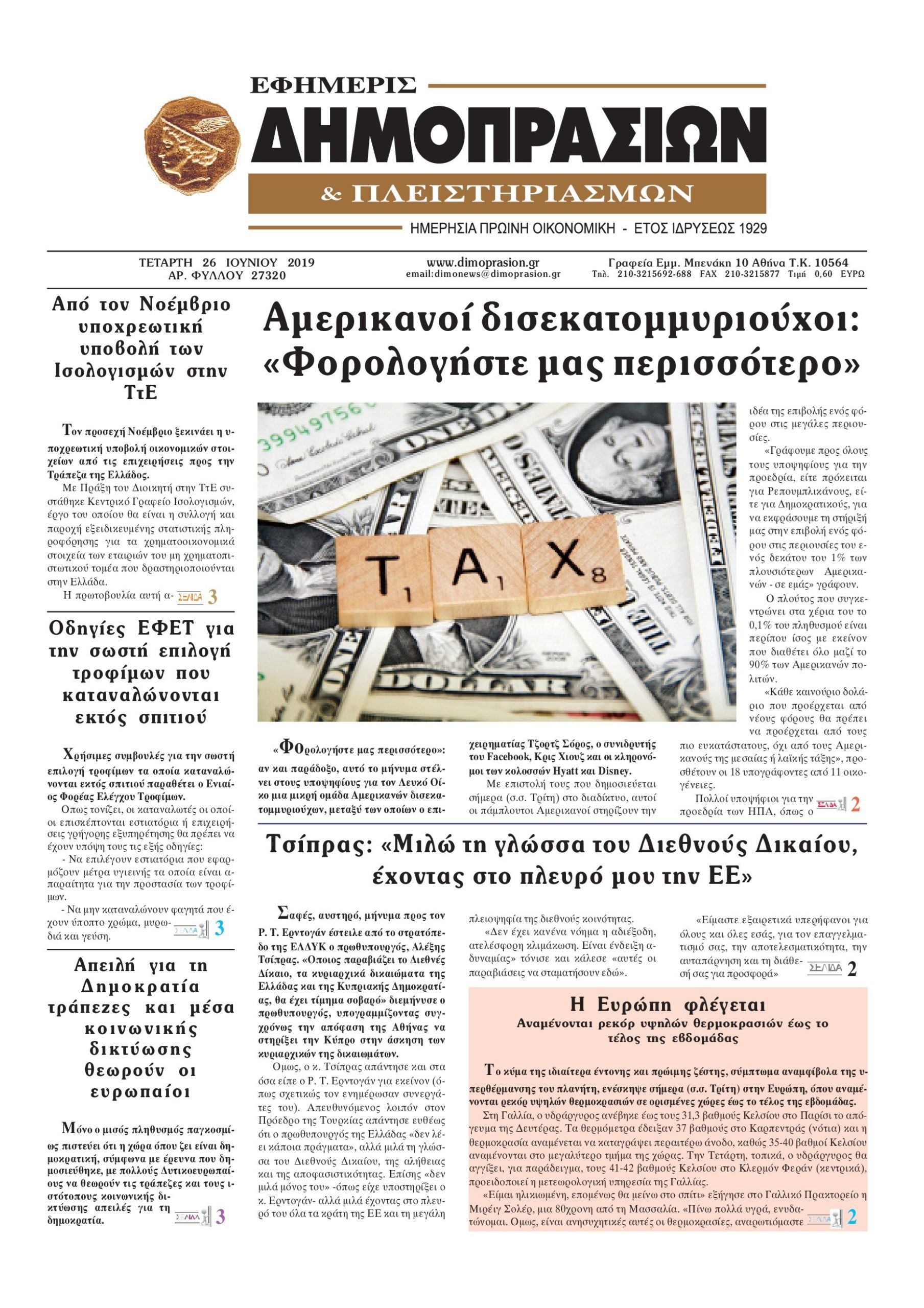 Οι οικονομικές εφημερίδες 26/6/2019 Enikos Newsroom 06:51, Τετάρτη 26 Ιουνίου 2019 Media Διαβάστε τα πρωτοσέλιδα των οικονομικών εφημερίδων: ΟΙΚΟΝΟΜΙΚΕΣ ΕΦΗΜΕΡΙΔΕΣ ΠΡΩΤΟΣΕΛΙΔΑ Μοιράσου το: σχολίασε κι εσύ (0 σχόλια) Ακολουθήστε το enikos.gr στο Google News και μάθετε πρώτοι όλες τις ειδήσεις Δείτε όλες τις τελευταίες ειδήσεις από την Ελλάδα και τον Κόσμο στο enikos.gr Ειδήσεις Ροή Ειδήσεων 8 ώρες πριν Χριστούγεννα στα μπλόκα: Επιμένουν στις κινητοποιήσεις τους οι αγρότες – Ανοίγουν τα διόδια το Σαββατοκύριακο 8 ώρες πριν Ουκρανία: Η άνευ προηγουμένου επίθεση σε ρωσικό τάνκερ στη Μεσόγειο και το μήνυμα προς στον Πούτιν – Το «μακρύ χέρι» του Κιέβου 7 ώρες πριν Πούτιν: Τα μηνύματα σε Ευρώπη και ΝΑΤΟ από το μαραθώνιο «σόου» του – Η απαίτηση για «σεβασμό» και η ειρήνη «με τους όρους» της Μόσχας 6 ώρες πριν ΗΠΑ: Η κυβέρνηση του Ντόναλντ Τραμπ άρχισε να δημοσιοποιεί τα αρχεία Έπσταϊν 7 ώρες πριν Άνω Λιόσια: Πυροβολισμοί σε επιχείρηση με χαλιά – Εντοπίστηκαν 10 κάλυκες 14 λεπτά πριν Αυγά: Πόσα μπορείτε να τρώτε την ημέρα με ασφάλεια για μέγιστη πρόσληψη πρωτεΐνης 44 λεπτά πριν Τα ζώδια σήμερα, Σάββατο 20 Δεκεμβρίου: Παρθένοι, το σύμπαν σας δίνει το κλειδί 7 ώρες πριν Ανακαλύφθηκαν αρχαία χρυσά νομίσματα 2.200 ετών που απεικονίζουν τον θεό Απόλλωνα – Η άγνωστη σύνδεση με τον Φίλιππο Β΄ της Μακεδονίας 8 ώρες πριν Ύπνος: Μια κρυφή κατάσταση του εγκεφάλου πριν από τον ύπνο μπορεί να είναι το “κλειδί” για υψηλή ευφυΐα και δημιουργικότητα 5 λεπτά πριν Σαρωτικοί οι έλεγχοι στους δρόμους ενόψει εορτών – Μπλόκα της τροχαίας σε κεντρικές αρτηρίες της Αττικής 14 λεπτά πριν Αυγά: Πόσα μπορείτε να τρώτε την ημέρα με ασφάλεια για μέγιστη πρόσληψη πρωτεΐνης 20 λεπτά πριν Σαν σήμερα 20 Δεκεμβρίου: Τα σημαντικότερα γεγονότα της ημέρας 25 λεπτά πριν Οι οικονομικές εφημερίδες 20/12/2025 30 λεπτά πριν Οι αθλητικές εφημερίδες 20/12/2025 ENIKOS NETWORK Το ΕΚΑΒ τιμήθηκε από την Ακαδημία Αθηνών για τα 40 χρόνια προσφοράς του Έχετε πραγματικά μεγάλη καρδιά; 10 χαρακτηριστικά όσων έχουν καλοσύνη Αναστολή μέτρων αναγκαστικής εκτέλεσης για κτηνοτρόφους που πλήττονται από την ευλογιά των αιγοπροβάτων Πλήρης επάρκεια προϊόντων στις λαϊκές της Αττικής, παρά τις αγροτικές κινητοποιήσεις – Τι απαντούν οι πωλητές Χαρτογραφώντας το «σημείο χωρίς επιστροφή»: Για πρώτη φορά αποκαλύπτεται με λεπτομέρεια το ακανθώδες όριο της ατμόσφαιρας τ... Η Google καταργεί τη λειτουργία «dark web report» – Πώς θα μπορούν οι χρήστες να διαγράφουν τα δεδομένα τους περισσότερα 05:48 , Σάββατο 20 Δεκεμβρίου 2025 Οι οικονομικές εφημερίδες 20/12/2025 Διαβάστε τα πρωτοσέλιδα από τις οικονομικές εφημερίδες, σήμερα 20/12/2025. 05:43 , Σάββατο 20 Δεκεμβρίου 2025 Οι αθλητικές εφημερίδες 20/12/2025 Διαβάστε τα πρωτοσέλιδα από τις αθλητικές εφημερίδες, σήμερα 20/12/2025. 05:38 , Σάββατο 20 Δεκεμβρίου 2025 Οι πολιτικές εφημερίδες 20/12/2025 Διαβάστε τα πρωτοσέλιδα από τις πολιτικές εφημερίδες, σήμερα 20/12/2025. 04:20 , Σάββατο 20 Δεκεμβρίου 2025 Αγγελική Νικολούλη: Τα συλλυπητήρια για την απώλεια της Ειρήνης Μαρινάκη Τα συλληπητήρια στον πρόεδρο του Mega, τον Βαγγέλη Μαρινάκη, για την απώλεια της μητέρας του Ε... ΤΕΛΕΥΤΑΙΕΣ ΕΙΔΗΣΕΙΣ 5 λεπτά πριν Σαρωτικοί οι έλεγχοι στους δρόμους ενόψει εορτών –... 14 λεπτά πριν Αυγά: Πόσα μπορείτε να τρώτε την ημέρα με ασφάλεια για... 20 λεπτά πριν Σαν σήμερα 20 Δεκεμβρίου: Τα σημαντικότερα γεγονότα... 25 λεπτά πριν Οι οικονομικές εφημερίδες 20/12/2025 30 λεπτά πριν Οι αθλητικές εφημερίδες 20/12/2025 35 λ