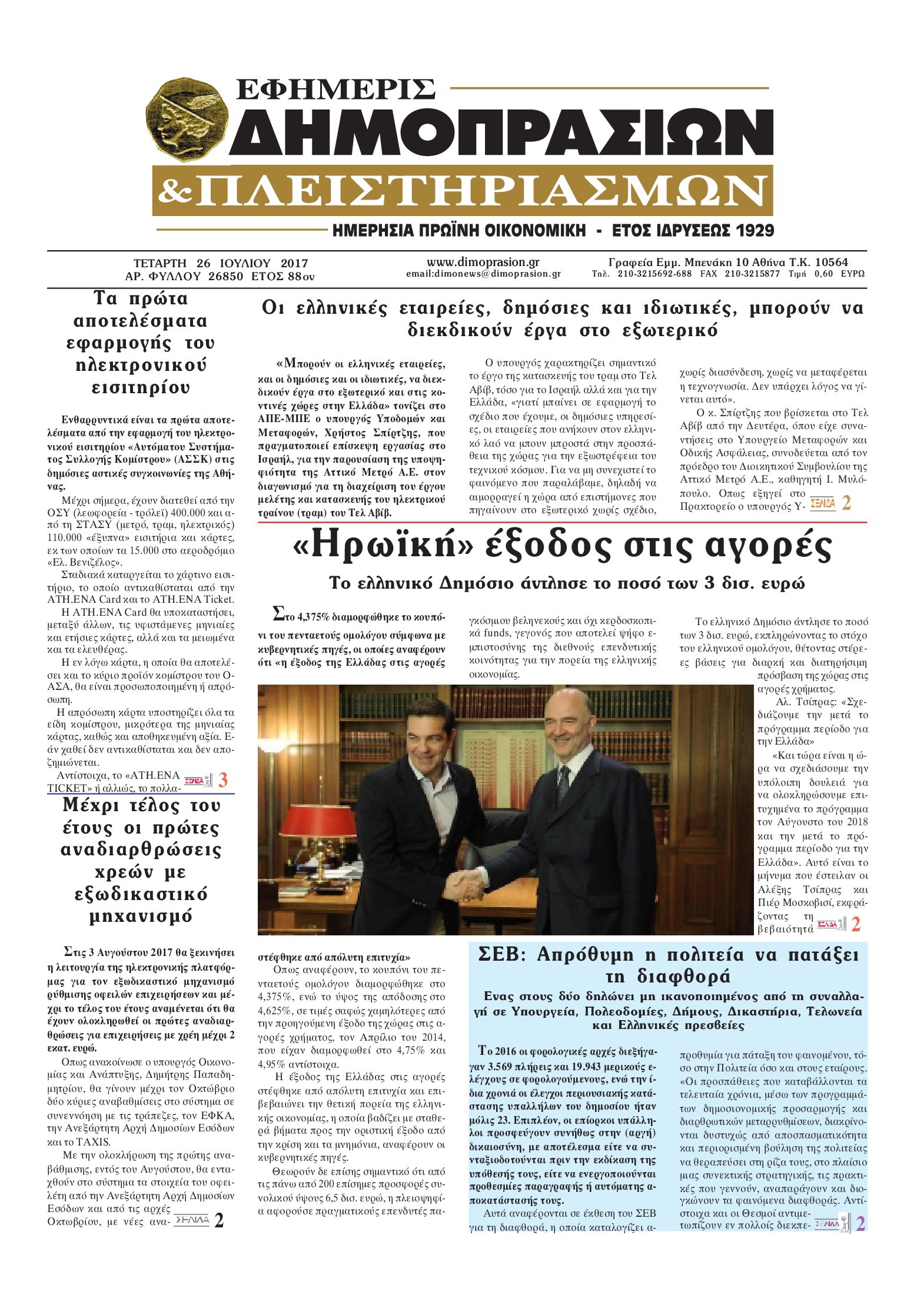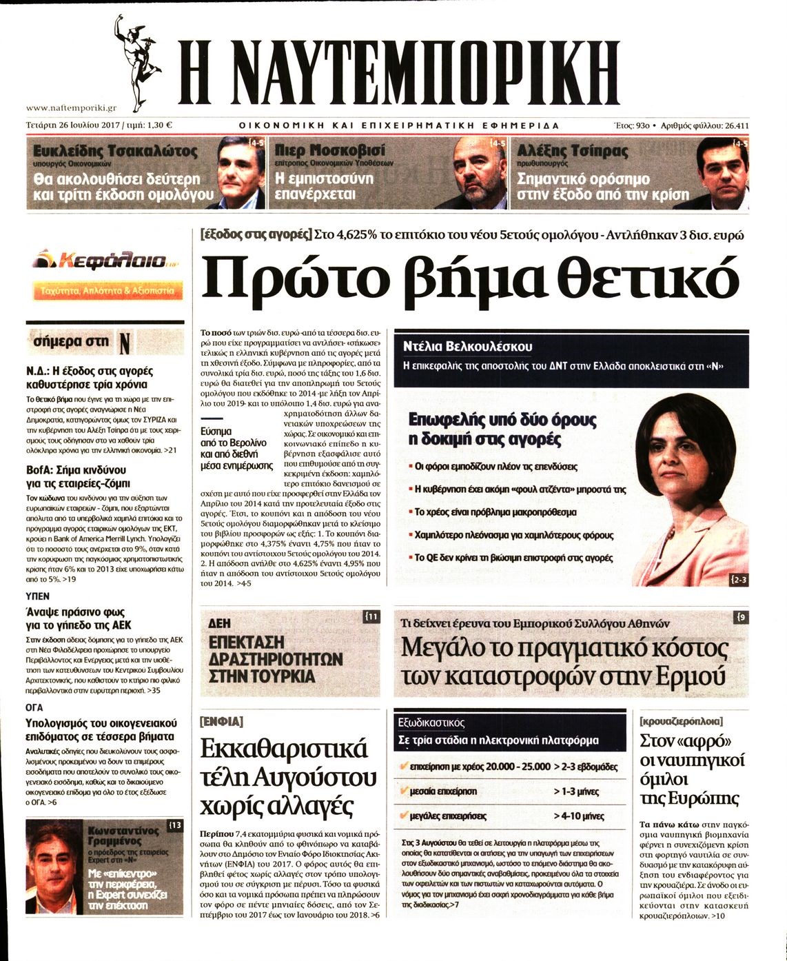 Οι οικονομικές εφημερίδες 26/7/2017 Enikos Newsroom 07:54, Τετάρτη 26 Ιουλίου 2017 Media Διαβάστε τα σημερινά πρωτοσέλιδα των οικονομικών εφημερίδων: ΟΙΚΟΝΟΜΙΚΕΣ ΕΦΗΜΕΡΙΔΕΣ ΠΡΩΤΟΣΕΛΙΔΑ Μοιράσου το: σχολίασε κι εσύ (0 σχόλια) Ακολουθήστε το enikos.gr στο Google News και μάθετε πρώτοι όλες τις ειδήσεις Δείτε όλες τις τελευταίες ειδήσεις από την Ελλάδα και τον Κόσμο στο enikos.gr Ειδήσεις Ροή Ειδήσεων 3 ώρες πριν Αυξάνουν την πίεση προς την κυβέρνηση οι αγρότες: Κλείνουν παρακαμπτήριους και ανοίγουν διόδια – Τι θα γίνει τις γιορτές 1 ώρα πριν ΟΠΕΚΕΠΕ: Προφυλακιστέος ο φερόμενος αρχηγός και ο λογιστής της εγκληματικής οργάνωσης 2 ώρες πριν Φοινικούντα: Το Σάββατο απολογείται ο 30χρονος γιος γνωστού επιχειρηματία της Πλάκας που παραδόθηκε – Όσα είπε στους αστυνομικούς και ο ρόλος του στο έγκλημα 2 ώρες πριν Μπορεί ο Μαδούρο να αντέξει τον αποκλεισμό του Τραμπ; Τι θα χρειαστεί η Ουάσινγκτον για να τον ανατρέψει 4 ώρες πριν Πρίγκιπας Ουίλιαμ – Κέιτ: Η νέα οικογενειακή φωτογραφία για τις Χριστουγεννιάτικες κάρτες του 2025 3 ώρες πριν Ύπνος: Η απλή βραδινή ρουτίνα για να προστατεύσετε τα μαλλιά σας από το κρύο κατά τη διάρκεια του χειμώνα 4 ώρες πριν Manifesting: Πώς να συναντήσετε τον σύντροφο της ζωής σας, ανάλογα με τον μήνα γέννησής σας 2 ημέρες πριν 20 χρόνια τα Χριστούγεννα ξεκινούν στα Public με μεγάλη ποικιλία σε δώρα! 2 ώρες πριν Αρχαιολόγοι ανακάλυψαν ρωμαϊκά τεχνουργήματα από μια πόλη που δεν υπήρξε ποτέ – Τα τρία εντυπωσιακά κτίρια και ο αμφορέας με τις… σαρδέλες 3 λεπτά πριν Νέος πρέσβης της Μεγάλης Βρετανίας στις ΗΠΑ ο Κρίστιαν Τέρνερ 7 λεπτά πριν Conference League: Με Νόα, Ντρίτα, Άλκμααρ ή Τσέλιε στους «16» η ΑΕΚ 15 λεπτά πριν Conference League: Απευθείας στους «16» η ΑΕΚ Λάρνακας και η Ρακόβ των Σβάρνα και Κωνσταντόπουλου – Τα αποτελέσματα και η βαθμολογία, 3η η ΑΕΚ 25 λεπτά πριν Σε ομάδες που συνδέονται με το ρωσικό κράτος αποδίδει η Δανία δύο κυβερνοεπιθέσεις που δέχθηκε 40 λεπτά πριν Βαθμολογία UEFA: Η Πολωνία προσπέρασε την Ελλάδα ENIKOS NETWORK Σε περίοδο αυξημένης δραστηριότητας η γρίπη στην Ελλάδα-Μέτρα προστασίας από τον ΕΟΔΥ Σκέφτεστε συνέχεια συζητήσεις που έχετε κάνει; Τι σημαίνει αυτό, σύμφωνα με ειδικό Στεγαστικό: Τι λέει η ΠΟΜΙΔΑ για τα νέα μέτρα που ανακοίνωσε ο Κυριάκος Μητσοτάκης Λαγκάρντ: Αισιόδοξη για την ανάπτυξη της Ευρωζώνης, αβέβαιη για τον πληθωρισμό Χαρτογραφώντας το «σημείο χωρίς επιστροφή»: Για πρώτη φορά αποκαλύπτεται με λεπτομέρεια το ακανθώδες όριο της ατμόσφαιρας τ... Η Google καταργεί τη λειτουργία «dark web report» – Πώς θα μπορούν οι χρήστες να διαγράφουν τα δεδομένα τους περισσότερα 17:45 , Πέμπτη 18 Δεκεμβρίου 2025 ROUK ZOUK: Εορταστικό επεισόδιο με καλεσμένους τους πρωταγωνιστές του «Γιατί ρε πατέρα» Το Σάββατο 20 Δεκεμβρίου στις 21:00, η Ζέτα Μακρυπούλια υποδέχεται εκλεκτούς ηθοποιούς που όλο... 17:20 , Πέμπτη 18 Δεκεμβρίου 2025 Άγιος έρωτας: Η Χριστίνα εξομολογείται στον πατέρα Νικόλαο, απόψε στις 21:00 στον Alpha Η Νότα αποφασίζει να εκδικηθεί τον Πέτρο και τον Στέφανο, για χάρη του Λούη, όμως τα πράγματα ... 16:50 , Πέμπτη 18 Δεκεμβρίου 2025 Να μ’ αγαπάς: Ζωή και Φωτεινή συμφιλιώνονται ως μάνα με κόρη, απόψε στις 20:00 Η ταυτότητα του Άγγελου αποκαλύπτεται στο νέο επεισόδιο της σειράς “Να μ’ αγαπάς... 15:52 , Πέμπτη 18 Δεκεμβρίου 2025 Το Σπίτι Δίπλα Στο Ποτάμι: Το καθηλωτικό τελευταίο επεισόδιο για το 2025 απόψε στις 22:30 Καθηλώνει το σημερινό επεισόδιο της σειράς “Το Σπίτι Δίπλα Στο Ποτάμι” που έρχεται... ΤΕΛΕΥΤΑΙΕ
