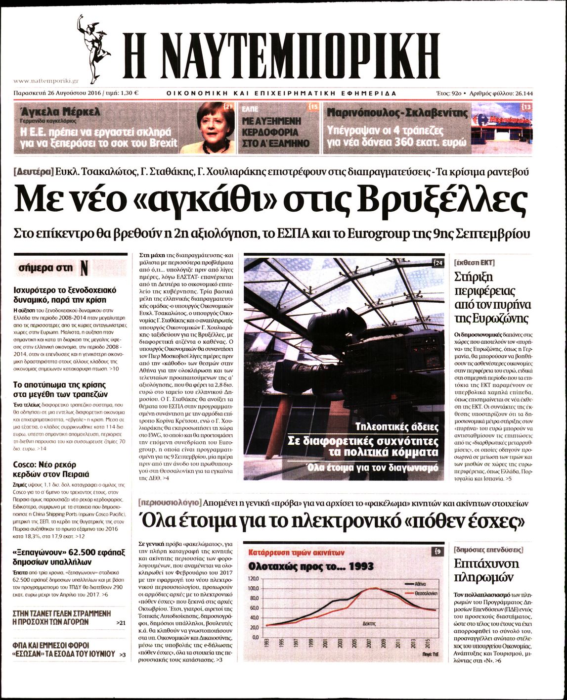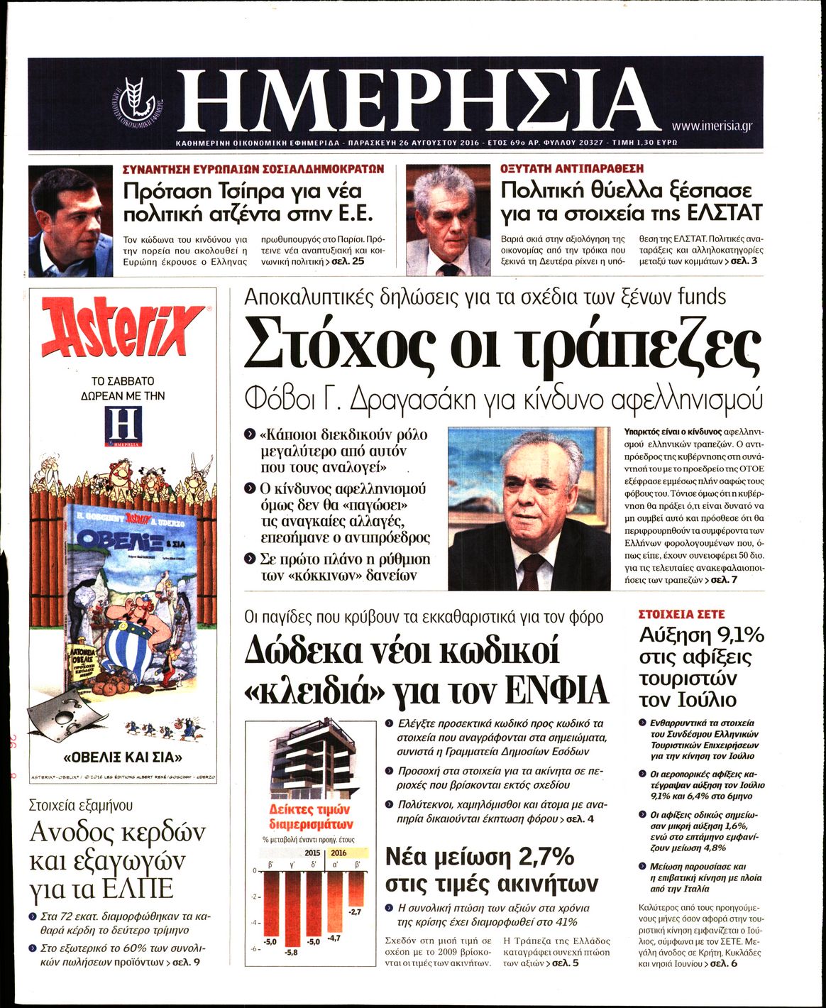 Οι οικονομικές εφημερίδες 26/8/2016 Enikos Newsroom 04:50, Παρασκευή 26 Αυγούστου 2016 Media Διαβάστε τα σημερινά πρωτοσέλιδα των οικονομικών εφημερίδων: ΟΙΚΟΝΟΜΙΚΕΣ ΕΦΗΜΕΡΙΔΕΣ ΠΡΩΤΟΣΕΛΙΔΑ Μοιράσου το: σχολίασε κι εσύ (0 σχόλια) Ακολουθήστε το enikos.gr στο Google News και μάθετε πρώτοι όλες τις ειδήσεις Δείτε όλες τις τελευταίες ειδήσεις από την Ελλάδα και τον Κόσμο στο enikos.gr Ειδήσεις Ροή Ειδήσεων 53 λεπτά πριν ΣΥΡΙΖΑ: Διαγράφεται ο ευρωβουλευτής Νίκος Παππάς μετά την μήνυση δημοσιογράφου για ξυλοδαρμό 2 ώρες πριν Πώς στήθηκε η επιχείρηση «Ίπαλλος» που οδήγησε στη σύλληψη του «Έλληνα Εσκομπάρ» – «Ο πόλεμος ενάντια στους εμπόρους ναρκωτικών θα συνεχιστεί» 2 ώρες πριν Δίκη Χρυσής Αυγής: Την ενοχή και των 42 κατηγορουμένων ζητά η εισαγγελέας 2 ώρες πριν Κυψέλη: Στη φυλακή η 16χρονη που μαχαίρωσε συμμαθήτριά της 5 ώρες πριν Αμοργός: «Θα προσπαθήσω να το κάνω κάθε μέρα» – Ποιος είναι ο αγρότης που έστησε μόνος του το πρώτο μπλόκο στο νησί 2 ώρες πριν Τα 3 ζώδια που θα δουν τη ζωή τους να αλλάζει ριζικά το 2026 – «Όλα γίνονται καλύτερα σταδιακά» 7 ώρες πριν «Δεν είχα κλάψει από τότε που διαγνώστηκα με καρκίνο, ώσπου ένα τηλεφώνημα με έκανε να λυγίσω» – Η συγκλονιστική εξομολόγηση ενός άνδρα 3 ώρες πριν Ο σπάνιος σεισμός που έλυσε τα χέρια των επιστημόνων – Αποκάλυψε ακριβώς όσα αναζητούσαν 9 ώρες πριν 20 χρόνια τα Χριστούγεννα ξεκινούν στα Public με μεγάλη ποικιλία σε δώρα! 2 λεπτά πριν Καβάλα: Βίντεο ντοκουμέντο από διάρρηξη σε καφετέρια – Έσπασαν την τζαμαρία, άρπαξαν το συρτάρι του ταμείου και έγιναν καπνός 7 λεπτά πριν ΑΣΕΠ: Οι προσωρινοί πίνακες για 4.276 θέσεις επιτυχόντων του πρώτου γραπτού διαγωνισμού – Η διαδικασία για τις ενστάσεις 12 λεπτά πριν Αίγινα: Βλάβη στον υποθαλάσσιο αγωγό του νησιού – «Προσωρινά από τις γεωτρήσεις του Δήμου η κάλυψη των αναγκών ύδρευσης» 19 λεπτά πριν Βασιλιάς Κάρολος: Η κίνηση απομόνωσης προς τον αδελφό του Άντριου, στο γεύμα των Χριστουγέννων 24 λεπτά πριν Παύλος Μαρινάκης για Νίκο Παππά: Έπρεπε να χειροδικήσει για να αναγκαστεί ο ΣΥΡΙΖΑ να τον διαγράψει ENIKOS NETWORK Γιατί αναζητούμε τα Χριστούγεννα όλο και νωρίτερα; Ποιοι οι ψυχολογικοί και οι συναισθηματικοί λόγοι Σοβαροί κίνδυνοι από τη λάθος χορήγηση φαρμάκου για τις αιμορραγίες-Συστάσεις προς τους γιατρούς «Αναταράξεις» στην εφοδιαστική αλυσίδα από τα μπλόκα: Επιστολή του Συνδέσμου Θεσσαλικών Βιομηχανιών στον πρωθυπουργό -Τι αν... Δάνεια σε ελβετικό φράγκο: Αύριο η κατάθεση της τροπολογίας στη Βουλή – Όλες οι λεπτομέρειες Χαρτογραφώντας το «σημείο χωρίς επιστροφή»: Για πρώτη φορά αποκαλύπτεται με λεπτομέρεια το ακανθώδες όριο της ατμόσφαιρας τ... Η Google καταργεί τη λειτουργία «dark web report» – Πώς θα μπορούν οι χρήστες να διαγράφουν τα δεδομένα τους περισσότερα 12:35 , Τετάρτη 17 Δεκεμβρίου 2025 Μίρκα Παπακωνσταντίνου: «Δεν ήμουν αισιόδοξη για τα νούμερα – Είμαι ρεαλίστρια» Στα γυρίσματα του εορταστικού επεισοδίου της αγαπημένης σειράς “Το Σόι Σου”, βρέθηκε η κάμερα ... 12:12 , Τετάρτη 17 Δεκεμβρίου 2025 Ακούστε την εκπομπή του Νίκου Χατζηνικολάου 17/12/2025 Ακούστε την εκπομπή του Νίκου Χατζηνικολάου στον ραδιοφωνικό σταθμό RealFm 97,8, την Τετάρτη 1... 11:35 , Τετάρτη 17 Δεκεμβρίου 2025 Home Alone: Το σπίτι της ταινίας θα ανακαινιστεί – Επιστροφή στην αισθητική της δεκαετίας του ’90 Οι νέοι ιδιοκτήτες του πραγματικού σπιτιού που παρουσιάζεται στην κλασική ταινία του 1990 «Hom... 11:25 , Τετάρτη 17 Δεκεμβρίου 2025 Grand Hotel: Απόψε το τ