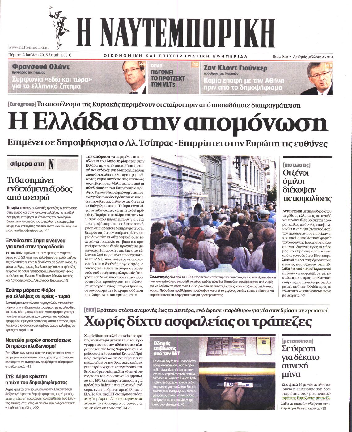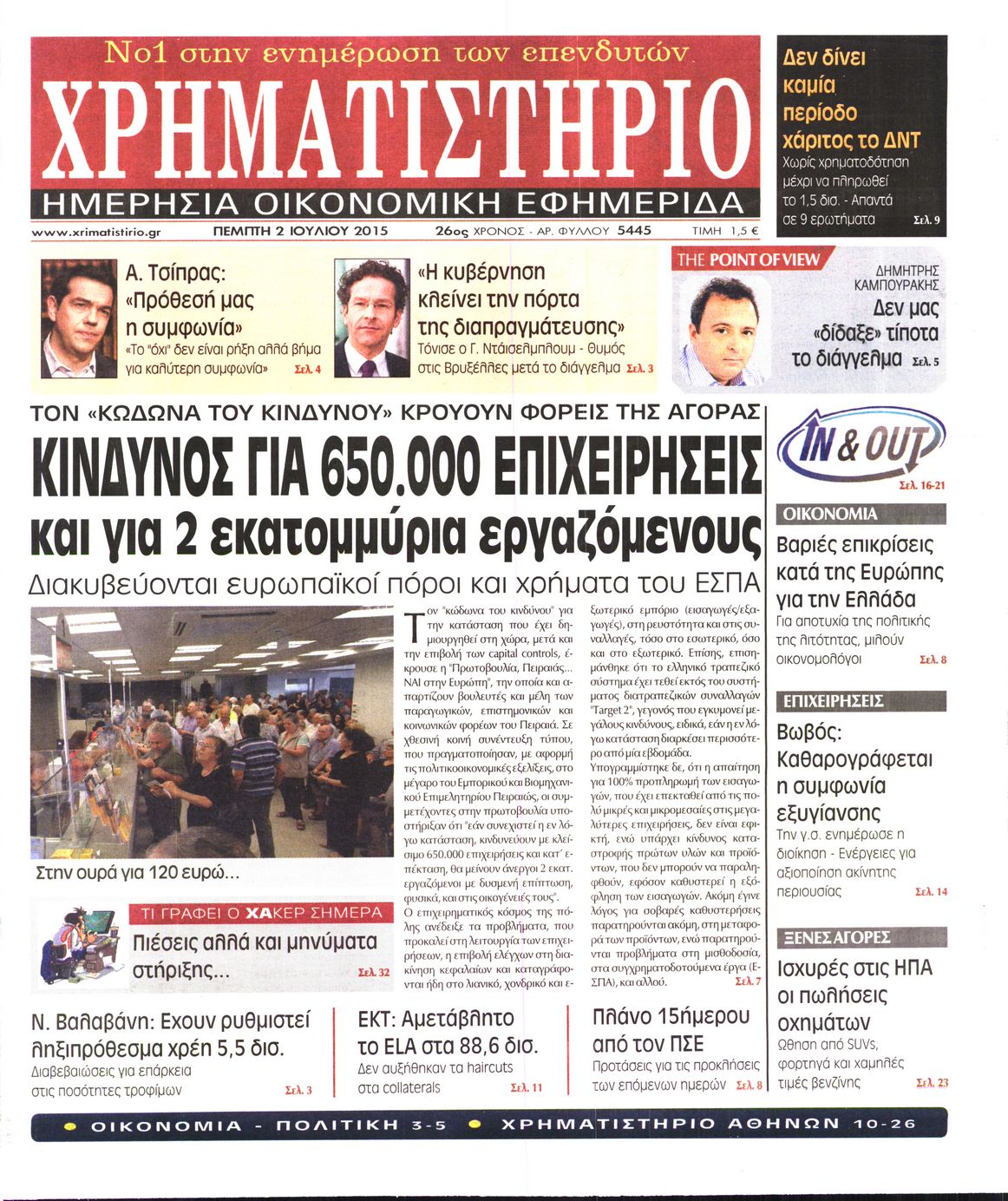 Οι οικονομικές εφημερίδες 2/7/2015 Enikos Newsroom 06:18, Πέμπτη 02 Ιουλίου 2015 Media Διαβάστε τα σημερινά πρωτοσέλιδα των οικονομικών εφημερίδων: ΟΙΚΟΝΟΜΙΚΕΣ ΕΦΗΜΕΡΙΔΕΣ ΠΡΩΤΟΣΕΛΙΔΑ Μοιράσου το: σχολίασε κι εσύ (0 σχόλια) Ακολουθήστε το enikos.gr στο Google News και μάθετε πρώτοι όλες τις ειδήσεις Δείτε όλες τις τελευταίες ειδήσεις από την Ελλάδα και τον Κόσμο στο enikos.gr Ειδήσεις Ροή Ειδήσεων 8 ώρες πριν Μητσοτάκης: Αναγκαία η μεταρρύθμιση του πρωτογενούς τομέα – Τα 6 νέα μέτρα για το στεγαστικό και οι αναφορές σε «Ιθάκη» και «πολιτικούς του καναπέ» 7 ώρες πριν Δάνεια σε ελβετικό φράγκο: Τα βασικά σημεία της ρύθμισης – ανάσας για 40.000 δανειολήπτες – Αναλυτικός οδηγός με ερωτήσεις και απαντήσεις 7 ώρες πριν Κυψέλη: Εξιτήριο πήρε η 14χρονη μαθήτρια που μαχαιρώθηκε από την 16χρονη σε σχολείο – «Θέλω να βοηθήσω το παιδί, έχει μπλέξει με κακές παρέες» 6 ώρες πριν Τραμπ: Γιατί κατέθεσε τώρα την αγωγή κατά του BBC – Πώς η κίνησή του εξυπηρετεί το νέο δόγμα του για «αντίσταση» στην Ευρώπη, υπέρ των συντηρητικών 7 ώρες πριν ΟΠΕΚΕΠΕ – Παράνομες επιδοτήσεις: Ελεύθεροι με περιοριστικούς όρους και οι 7 κατηγορούμενοι που απολογήθηκαν σήμερα 6 ώρες πριν Ανακαλύφθηκε βυθισμένη πέτρινη κατασκευή ανοιχτά της Κριμαίας – Αποτελεί μέρος αρχαίας ελληνικής αποικίας 7 ώρες πριν Ύπνος: Αυτό μπορεί να είναι το χειρότερο λάθος για το βιολογικό ρολόι σας, σύμφωνα με ειδικό 8 ώρες πριν Αριθμολογία: Οι άνθρωποι που έχουν γεννηθεί αυτές τις 3 ημερομηνίες, προσελκύουν μεγάλη τύχη πριν από το τέλος του 2025 10 ώρες πριν Οι 7 συμπεριφορές που μαρτυρούν ότι ένας άνδρας επενδύει μακροπρόθεσμα σε μια σχέση 5 λεπτά πριν Κόστα Ρίκα: Το Κογκρέσο απέρριψε το αίτημα για άρση της ασυλίας του προέδρου Τσάβες 13 λεπτά πριν Κολομβία: Νεκροί τέσσερις αστυνομικοί σε βομβιστικές επιθέσεις ανταρτών 21 λεπτά πριν Στάση εργασίας 11:00 – 17:00 σήμερα στα λεωφορεία του ΟΑΣΑ – Ποιες γραμμές θα λειτουργήσουν 36 λεπτά πριν Παλαιστινιακό: «Η λύση των δύο κρατών είναι ο μόνος βιώσιμος δρόμος», τόνισε η Ελλάδα στο Συμβούλιο Ασφαλείας του ΟΗΕ 44 λεπτά πριν Ελένη Καρακάση: «Ένιωθα πολύ αδικημένη, δεν μπορούσα να ελέγξω τον εαυτό μου σε δύσκολες στιγμές» ENIKOS NETWORK Αίτημα ΙΣΑ για την εξαίρεση των προσωπικών γιατρών από τις κατ’ οίκον επισκέψεις Η σκανδιναβική μέθοδος στον ύπνο που μπορεί να σώσει έναν γάμο Πιερρακάκης: Ο προϋπολογισμός συμβάλλει ουσιαστικά στην ενίσχυση της αγοραστικής δύναμης της πλειονότητας των εργαζομένων e-ΕΦΚΑ: Παρατείνεται η προθεσμία για την υποβολή ΑΠΔ – Ποιους αφορά Σύγχρονος Νοστράδαμος: Προειδοποιεί για «μεγάλο γεγονός» τους επόμενους μήνες που θα συγκλονίσει τη Βρετανία και τον κόσμο Τεστ παρατηρητικότητας: Μπορείτε να βρείτε τις 3 διαφορές στις εικόνες με έναν πιγκουίνο σε 14 δευτερόλεπτα περισσότερα 20:06 , Τρίτη 16 Δεκεμβρίου 2025 Ο ΣΚΑΙ καταγγέλλει τον ΕΚΚΟΜΕΔ Επιστολή με την οποία καταγράφει την έντονη διαμαρτυρία του προς τον διευθύνοντα σύμβουλο του... 17:40 , Τρίτη 16 Δεκεμβρίου 2025 Eurovision: Στις 4 Ιανουαρίου αποκαλύπτονται τα 28 τραγούδια του ελληνικού τελικού Η αγωνία τελειώνει, η γιορτή της Eurovision αρχίζει στην ΕΡΤ από τις πρώτες ημέρες της νέας χρ... 17:09 , Τρίτη 16 Δεκεμβρίου 2025 Alter Ego Media: Βαθύτατη θλίψη και ειλικρινή συλλυπητήρια για την απώλεια της Ειρήνης Μαρινάκη Τη βαθύτατη θλίψη και τα ειλικρινή συλλυπητήριά της εκφράζει η Alter Ego Media για τον θάνατο ... 13:00 , Τρίτη 16 Δεκεμβρίου 2025 «Στο Παρά Πέντε – 20 Χρόνια Μετά»