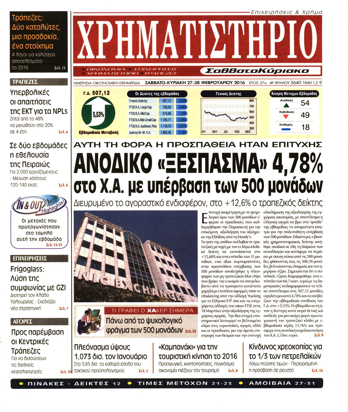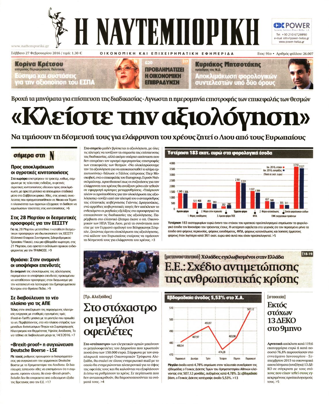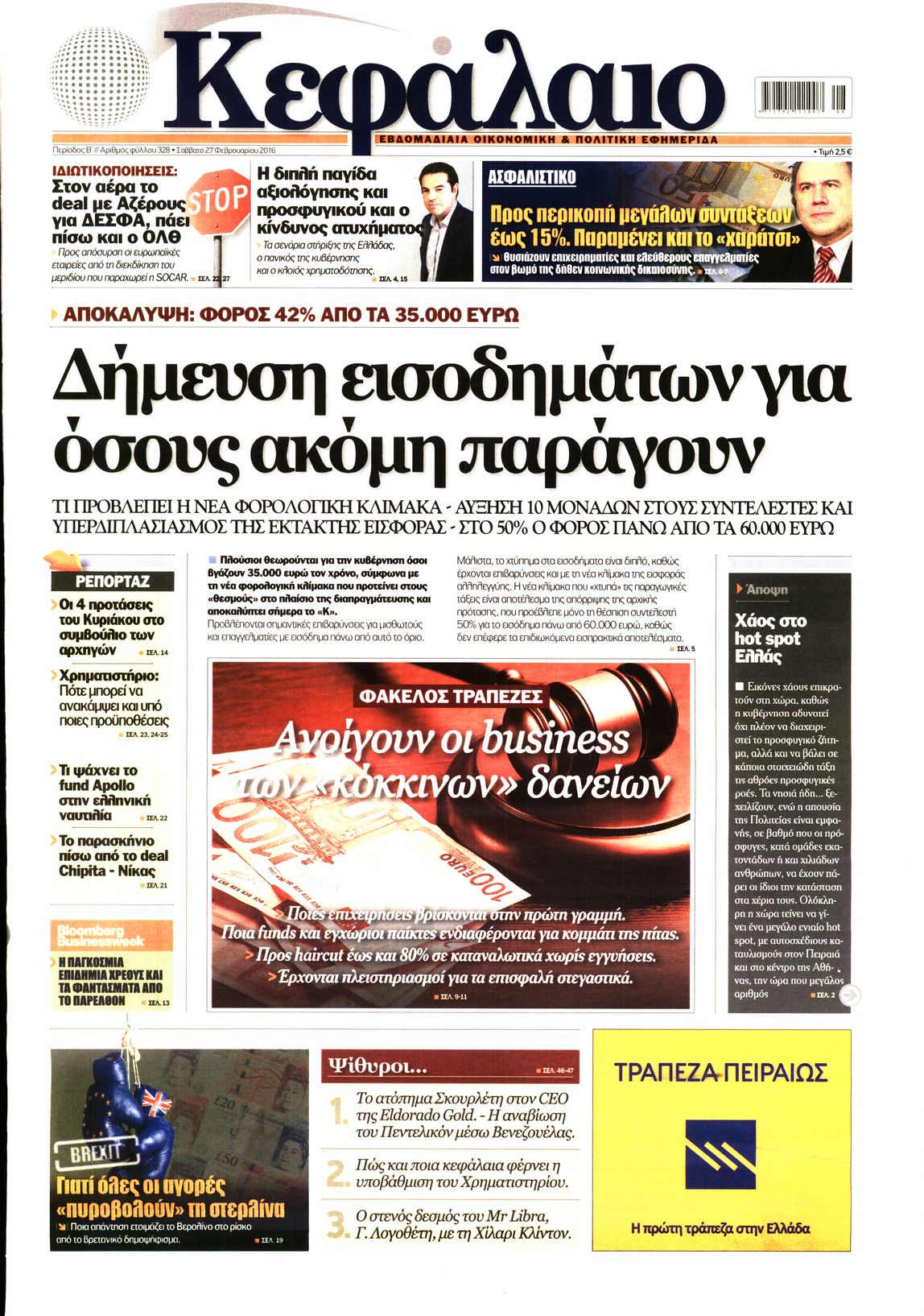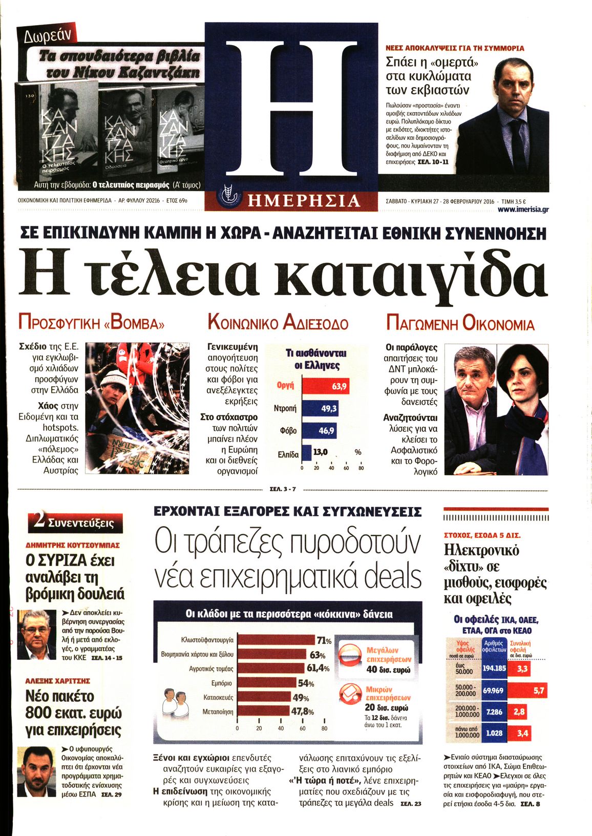 Οι οικονομικές εφημερίδες 27/2/2016 Enikos Newsroom 07:08, Σάββατο 27 Φεβρουαρίου 2016 Media Διαβάστε τα σημερινά πρωτοσέλιδα των οικονομικών εφημερίδων. ΠΡΩΤΟΣΕΛΙΔΑ Μοιράσου το: σχολίασε κι εσύ (0 σχόλια) Ακολουθήστε το enikos.gr στο Google News και μάθετε πρώτοι όλες τις ειδήσεις Δείτε όλες τις τελευταίες ειδήσεις από την Ελλάδα και τον Κόσμο στο enikos.gr Ειδήσεις Ροή Ειδήσεων 7 ώρες πριν Χριστούγεννα στα μπλόκα: Επιμένουν στις κινητοποιήσεις τους οι αγρότες – Ανοίγουν τα διόδια το Σαββατοκύριακο 7 ώρες πριν Ουκρανία: Η άνευ προηγουμένου επίθεση σε ρωσικό τάνκερ στη Μεσόγειο και το μήνυμα προς στον Πούτιν – Το «μακρύ χέρι» του Κιέβου 6 ώρες πριν Πούτιν: Τα μηνύματα σε Ευρώπη και ΝΑΤΟ από το μαραθώνιο «σόου» του – Η απαίτηση για «σεβασμό» και η ειρήνη «με τους όρους» της Μόσχας 7 ώρες πριν Τραμπ: Δεν αποκλείει την πιθανότητα ενός πολέμου στη Βενεζουέλα – «Ο Μαδούρο ξέρει καλύτερα από τον καθένα τι ακριβώς θέλω» 8 ώρες πριν Συνεχίζει να προκαλεί ο Μίτσκοσκι: «Για μένα το όνομα Μακεδονία είναι ιερό» 6 ώρες πριν Ανακαλύφθηκαν αρχαία χρυσά νομίσματα 2.200 ετών που απεικονίζουν τον θεό Απόλλωνα – Η άγνωστη σύνδεση με τον Φίλιππο Β΄ της Μακεδονίας 7 ώρες πριν Ύπνος: Μια κρυφή κατάσταση του εγκεφάλου πριν από τον ύπνο μπορεί να είναι το “κλειδί” για υψηλή ευφυΐα και δημιουργικότητα 8 ώρες πριν Αριθμολογία: Οι άνθρωποι που έχουν γεννηθεί αυτές τις 4 ημερομηνίες, συχνά παρεξηγούνται – «Η καλοσύνη τους κρύβει τεράστια δύναμη» 9 ώρες πριν Ξεχάστε το καθάρισμα το Σαββατοκύριακο: Ο «κανόνας των 20 λεπτών» που θα σας λύσει τα χέρια 7 λεπτά πριν ΟΗΕ: Το Συμβούλιο Ασφαλείας παρατείνει για έναν χρόνο την εντολή της ειρηνευτικής δύναμης στο Κονγκό 23 λεπτά πριν Μοχάμεντ Σαλάχ: Ζήτησε «συγγνώμη» από τους συμπαίκτες του στη Λίβερπουλ για το ξέσπασμά του 37 λεπτά πριν Μάρκο Ρούμπιο: Ανθρωπιστική κατάπαυση του πυρός στο Σουδάν ζητά ο Αμερικανός υπουργός Εξωτερικών 52 λεπτά πριν Αγγελική Νικολούλη: Τα συλλυπητήρια για την απώλεια της Ειρήνης Μαρινάκη 1 ώρα πριν Βολιβία: Μαζική διαδηλώσεις εναντίον της κατάργησης των επιδοτήσεων των τιμών των καυσίμων ENIKOS NETWORK Το ΕΚΑΒ τιμήθηκε από την Ακαδημία Αθηνών για τα 40 χρόνια προσφοράς του Έχετε πραγματικά μεγάλη καρδιά; 10 χαρακτηριστικά όσων έχουν καλοσύνη Αναστολή μέτρων αναγκαστικής εκτέλεσης για κτηνοτρόφους που πλήττονται από την ευλογιά των αιγοπροβάτων Πλήρης επάρκεια προϊόντων στις λαϊκές της Αττικής, παρά τις αγροτικές κινητοποιήσεις – Τι απαντούν οι πωλητές Χαρτογραφώντας το «σημείο χωρίς επιστροφή»: Για πρώτη φορά αποκαλύπτεται με λεπτομέρεια το ακανθώδες όριο της ατμόσφαιρας τ... Η Google καταργεί τη λειτουργία «dark web report» – Πώς θα μπορούν οι χρήστες να διαγράφουν τα δεδομένα τους περισσότερα 04:20 , Σάββατο 20 Δεκεμβρίου 2025 Αγγελική Νικολούλη: Τα συλλυπητήρια για την απώλεια της Ειρήνης Μαρινάκη Τα συλληπητήρια στον πρόεδρο του Mega, τον Βαγγέλη Μαρινάκη, για την απώλεια της μητέρας του Ε... 02:50 , Σάββατο 20 Δεκεμβρίου 2025 GNTM: Η Ξένια Τσίρκοβα αναδείχθηκε μεγάλη νικήτρια και πήρε τις 50.000 ευρώ – Ποιος βρέθηκε σε απόσταση αναπνοής; Με φαντασμαγορικό τρόπο ολοκληρώθηκε το βράδυ της Παρασκευής ο μεγάλος τελικός του GNTM, μέσα ... 22:42 , Παρασκευή 19 Δεκεμβρίου 2025 Γιώργος Γιαννόπουλος για “Το σόι σου”: “Είναι ευτυχία και ευλογία αυτή η σειρά” «Είναι ευτυχία και ευλογία η συγκυρία αυτής της σειράς», θα πει ο Γιώργος Γιαννόπουλος -ο αγαπ... 20:37 , Παρασκευή 19 Δ