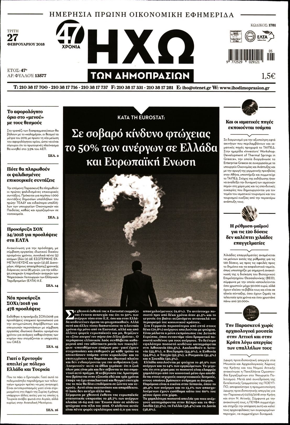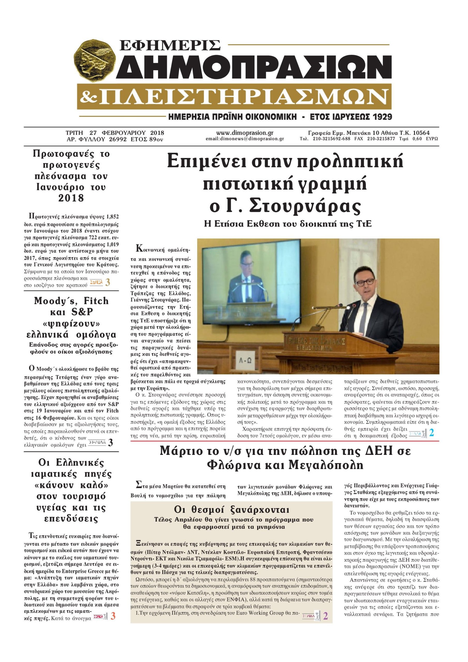 Οι οικονομικές εφημερίδες 27/2/2018 Κώστας Τεό 06:45, Τρίτη 27 Φεβρουαρίου 2018 Media Διαβάστε τα σημερινά πρωτοσέλιδα των οικονομικών εφημερίδων: ΟΙΚΟΝΟΜΙΚΕΣ ΕΦΗΜΕΡΙΔΕΣ ΠΡΩΤΟΣΕΛΙΔΑ Μοιράσου το: σχολίασε κι εσύ (0 σχόλια) Ακολουθήστε το enikos.gr στο Google News και μάθετε πρώτοι όλες τις ειδήσεις Δείτε όλες τις τελευταίες ειδήσεις από την Ελλάδα και τον Κόσμο στο enikos.gr Ειδήσεις Ροή Ειδήσεων 41 λεπτά πριν Ευρωπαϊκή Ένωση: Συμφωνία για δάνειο 90 δισ. ευρώ στην Ουκρανία τη διετία 2026-2027 5 ώρες πριν ΟΠΕΚΕΠΕ: Προφυλακιστέος ο φερόμενος αρχηγός και ο λογιστής της εγκληματικής οργάνωσης 6 ώρες πριν Αυξάνουν την πίεση προς την κυβέρνηση οι αγρότες: Κλείνουν παρακαμπτήριους και ανοίγουν διόδια – Τι θα γίνει τις γιορτές 6 ώρες πριν Φοινικούντα: Το Σάββατο απολογείται ο 30χρονος γιος γνωστού επιχειρηματία της Πλάκας που παραδόθηκε – Όσα είπε στους αστυνομικούς και ο ρόλος του στο έγκλημα 5 ώρες πριν ΑΕΚ – Κραϊόβα 3-2: Επική ανατροπή και πρόκριση στους «16» του Conference League η Ένωση 6 ώρες πριν Αρχαιολόγοι ανακάλυψαν ρωμαϊκά τεχνουργήματα από μια πόλη που δεν υπήρξε ποτέ – Τα τρία εντυπωσιακά κτίρια και ο αμφορέας με τις… σαρδέλες 7 ώρες πριν Ύπνος: Η απλή βραδινή ρουτίνα για να προστατεύσετε τα μαλλιά σας από το κρύο κατά τη διάρκεια του χειμώνα 8 ώρες πριν Manifesting: Πώς να συναντήσετε τον σύντροφο της ζωής σας, ανάλογα με τον μήνα γέννησής σας 2 ημέρες πριν 20 χρόνια τα Χριστούγεννα ξεκινούν στα Public με μεγάλη ποικιλία σε δώρα! 4 λεπτά πριν Αυστραλία: Κήρυξε την Κυριακή (21/12) ημέρα εθνικού πένθους για τη φονική επίθεση στην παραλία Μπόνταϊ 14 λεπτά πριν Ρόδος: Δάσκαλος καράτε καταδικάστηκε για ασέλγεια σε ανήλικες αθλήτριες – Μαρτυρίες για αγγίγματα σε ευαίσθητα σημεία 29 λεπτά πριν Γουατεμάλα: Εξαρθρώθηκε κύκλωμα διακίνησης μεταναστών προς τις ΗΠΑ – Συνελήφθησαν 14 άτομα 33 λεπτά πριν Βουλγαρία: Χιλιάδες πολίτες στους δρόμους κατά της απερχόμενης κυβέρνησης και της διαφθοράς 41 λεπτά πριν Ευρωπαϊκή Ένωση: Συμφωνία για δάνειο 90 δισ. ευρώ στην Ουκρανία τη διετία 2026-2027 ENIKOS NETWORK Σε περίοδο αυξημένης δραστηριότητας η γρίπη στην Ελλάδα-Μέτρα προστασίας από τον ΕΟΔΥ Σκέφτεστε συνέχεια συζητήσεις που έχετε κάνει; Τι σημαίνει αυτό, σύμφωνα με ειδικό Στεγαστικό: Τι λέει η ΠΟΜΙΔΑ για τα νέα μέτρα που ανακοίνωσε ο Κυριάκος Μητσοτάκης Λαγκάρντ: Αισιόδοξη για την ανάπτυξη της Ευρωζώνης, αβέβαιη για τον πληθωρισμό Χαρτογραφώντας το «σημείο χωρίς επιστροφή»: Για πρώτη φορά αποκαλύπτεται με λεπτομέρεια το ακανθώδες όριο της ατμόσφαιρας τ... Η Google καταργεί τη λειτουργία «dark web report» – Πώς θα μπορούν οι χρήστες να διαγράφουν τα δεδομένα τους περισσότερα 02:50 , Παρασκευή 19 Δεκεμβρίου 2025 GNTM: «Κλείδωσαν» οι τέσσερις φιναλίστ – Μεγάλη ανατροπή στις τελευταίες αποχωρήσεις Για προτελευταία φορά εμφανίστηκαν στο πλατό του GNTM οι φιναλίστ του φετινού κύκλου, το βράδυ... 17:45 , Πέμπτη 18 Δεκεμβρίου 2025 ROUK ZOUK: Εορταστικό επεισόδιο με καλεσμένους τους πρωταγωνιστές του «Γιατί ρε πατέρα» Το Σάββατο 20 Δεκεμβρίου στις 21:00, η Ζέτα Μακρυπούλια υποδέχεται εκλεκτούς ηθοποιούς που όλο... 17:20 , Πέμπτη 18 Δεκεμβρίου 2025 Άγιος έρωτας: Η Χριστίνα εξομολογείται στον πατέρα Νικόλαο, απόψε στις 21:00 στον Alpha Η Νότα αποφασίζει να εκδικηθεί τον Πέτρο και τον Στέφανο, για χάρη του Λούη, όμως τα πράγματα ... 16:50 , Πέμπτη 18 Δεκεμβρίου 2025 Να μ’ αγαπάς: Ζωή και Φωτεινή συμφιλιώνονται ως μάνα με κόρη, απόψε στις 20:00 Η ταυτότητα του Άγγελου αποκαλύπτε