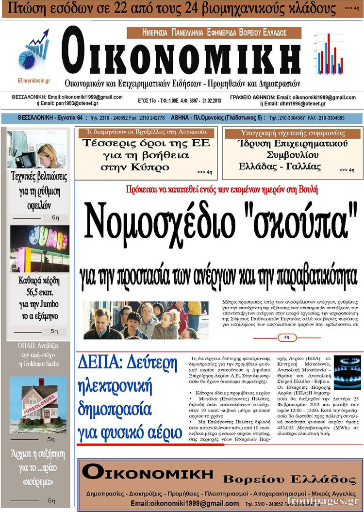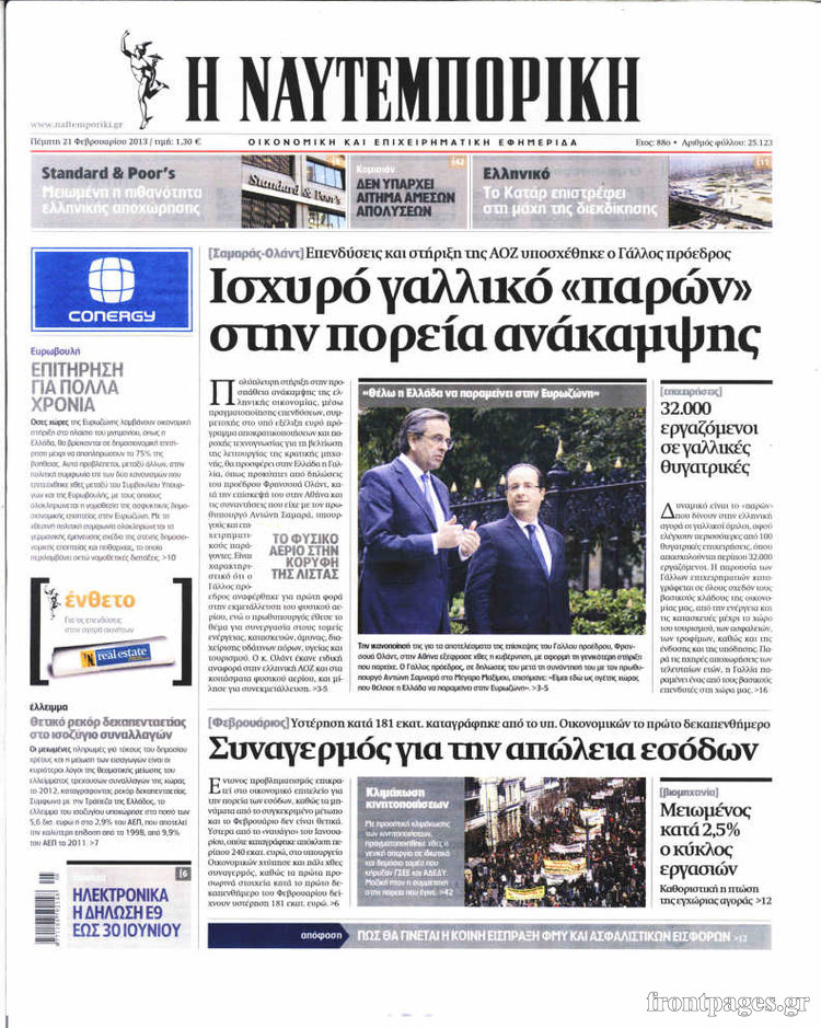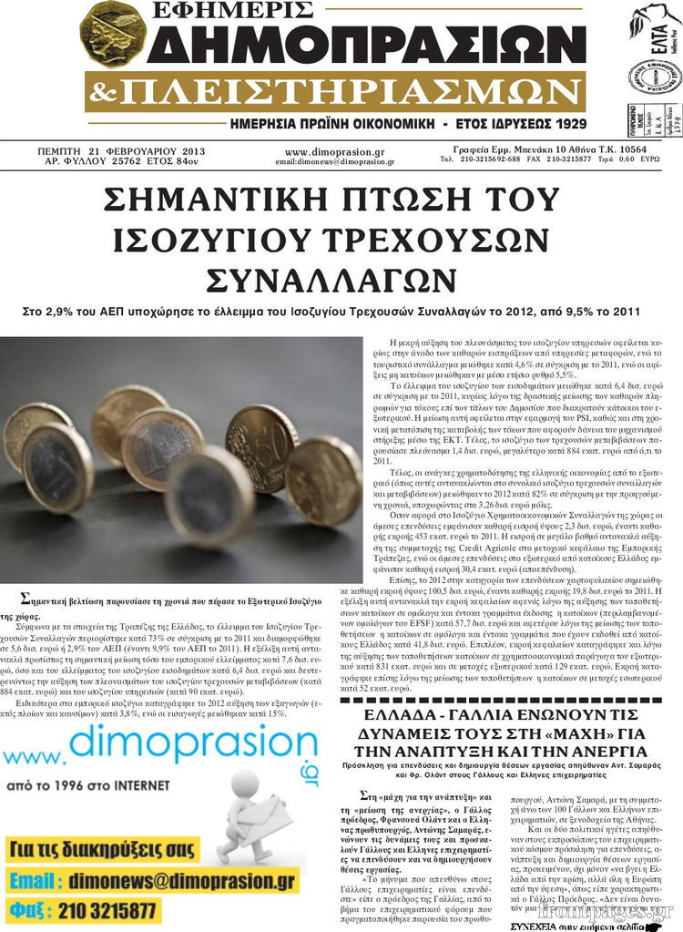 Οι οικονομικές εφημερίδες Enikos Newsroom 08:49, Πέμπτη 21 Φεβρουαρίου 2013 Media Οι οικονομικές εφημερίδες ΕΦΗΜΕΡΙΔΕΣ ΟΙΚΟΝΟΜΙΚΕΣ ΕΦΗΜΕΡΙΔΕΣ ΠΡΩΤΟΣΕΛΙΔΑ Μοιράσου το: σχολίασε κι εσύ (0 σχόλια) Ακολουθήστε το enikos.gr στο Google News και μάθετε πρώτοι όλες τις ειδήσεις Δείτε όλες τις τελευταίες ειδήσεις από την Ελλάδα και τον Κόσμο στο enikos.gr Ειδήσεις Ροή Ειδήσεων 9 ώρες πριν Μακελειό στο Σίδνεϊ: Πατέρας και γιος οι δράστες της τρομοκρατικής επίθεσης – Γιατί η Αυστραλία βάζει στο στόχαστρο το Ιράν 9 ώρες πριν Μακελειό στην Αυστραλία: «Πέρασαν οι σφαίρες πάνω από το αυτοκίνητο» – Συγκλονίζει η μαρτυρία Έλληνα που ζει στο Σίδνεϊ 7 ώρες πριν Τρομοκρατική επίθεση στο Σίδνεϊ: «Το αναπόφευκτο συνέβη πλέον» – Πώς οι δράστες είχαν χάσει τον ανθρωπισμό τους πριν πατήσουν την σκανδάλη 8 ώρες πριν Όλα τα αιτήματα αγροτών, κτηνοτρόφων και μελισσοκόμων προς την κυβέρνηση – Παραμένουν στα μπλόκα και προαναγγέλλουν κλιμάκωση 11 ώρες πριν Λακωνία: Βίντεο ντοκουμέντο από την επιχείρηση διάσωσης της 13χρονης που έπεσε σε πηγάδι – Ποια ήταν τα πρώτα λόγια της 1 ώρα πριν Οπτική ψευδαίσθηση: Μόνο το 1% των ανθρώπων θα βρει το ψάρι σε 12 δευτερόλεπτα 1 ώρα πριν Διατροφή: Γιατρός προειδοποιεί για 2 απλά λάθη που αυξάνουν τον κίνδυνο χρόνιων παθήσεων 2 ώρες πριν Τα ζώδια σήμερα, Δευτέρα 15 Δεκεμβρίου: Ιχθύες, ξεκινήστε από εκεί που η παρουσία σας έχει σημασία 9 ώρες πριν Ύπνος: 5 λόγοι για τους οποίους ξυπνάτε κουρασμένοι το πρωί κατά τη διάρκεια του χειμώνα 1 λεπτό πριν Καιρός: Αίθριος στο μεγαλύτερο μέρος της χώρας – Τι προβλέπουν οι μετεωρολόγοι για τις επόμενες ημέρες 6 λεπτά πριν SAFE: Μόλις 787 εκατ. ευρώ για την Ελλάδα, υπό προϋποθέσεις – Ποιες χώρες «τινάζουν την μπάνκα» – Δείτε τη λίστα 11 λεπτά πριν Αυτή την Κυριακή με τη Realnews: Instyle, μαζί Drive και Realnews Geopolitics 16 λεπτά πριν Δάνεια σε ελβετικό φράγκο: Ανακοινώνεται η ρύθμιση – Ποιοι και πόσο όφελος θα έχουν 23 λεπτά πριν Εορτολόγιο: Ποιοι γιορτάζουν σήμερα 15 Δεκεμβρίου ENIKOS NETWORK Την Κυριακή με τη Realnews: Δωροεπιταγή 10€ Μόνο το 5% με όραση 20/20 μπορεί να βρει το σκουλήκι ανάμεσα στα πουλιά μέσα σε 7 δευτερόλεπτα Δάνεια σε ελβετικό φράγκο: Ανακοινώνεται η ρύθμιση- Ποιοι και πόσο θα έχουν όφελος – Όλες οι λεπτομέρειες Τέλος οι διώξεις για χρέη σε Εφορία και ΕΦΚΑ – Τι προβλέπει νέα διάταξη μετά την πτώχευση Σύγχρονος Νοστράδαμος: Προειδοποιεί για «μεγάλο γεγονός» τους επόμενους μήνες που θα συγκλονίσει τη Βρετανία και τον κόσμο Τεστ παρατηρητικότητας: Μπορείτε να βρείτε τις 3 διαφορές στις εικόνες με έναν πιγκουίνο σε 14 δευτερόλεπτα περισσότερα 07:17 , Δευτέρα 15 Δεκεμβρίου 2025 Αυτή την Κυριακή με τη Realnews: Instyle, μαζί Drive και Realnews Geopolitics Αυτή την Κυριακή με τη Realnews: Instyle, μαζί Drive και Realnews Geopolitics Instyle Η Άννα Ρ... 05:49 , Δευτέρα 15 Δεκεμβρίου 2025 Οι οικονομικές εφημερίδες 15/12/2025 Διαβάστε τα πρωτοσέλιδα από τις οικονομικές εφημερίδες, σήμερα 15/12/2025. 05:43 , Δευτέρα 15 Δεκεμβρίου 2025 Οι αθλητικές εφημερίδες 15/12/2025 Διαβάστε τα πρωτοσέλιδα από τις αθλητικές εφημερίδες, σήμερα 15/12/2025. 05:38 , Δευτέρα 15 Δεκεμβρίου 2025 Οι πολιτικές εφημερίδες 15/12/2025 Διαβάστε τα πρωτοσέλιδα από τις πολιτικές εφημερίδες, σήμερα 15/12/2025. ΤΕΛΕΥΤΑΙΕΣ ΕΙΔΗΣΕΙΣ 1 λεπτό πριν Καιρός: Αίθριος στο μεγαλύτερο μέρος της χώρας – Τι... 6 λεπτά πριν SAFE: Μόλις 787 εκατ. ευρώ για την Ελλάδα, υπό προϋποθέσεις... 11 λεπτά πριν Αυτή την Κυριακή με τη Realnews: Instyle, μαζί Drive και Realnews... 16 λεπτά πριν Δάνεια σε ελβετικό φράγκο: Ανακοινώνεται η 