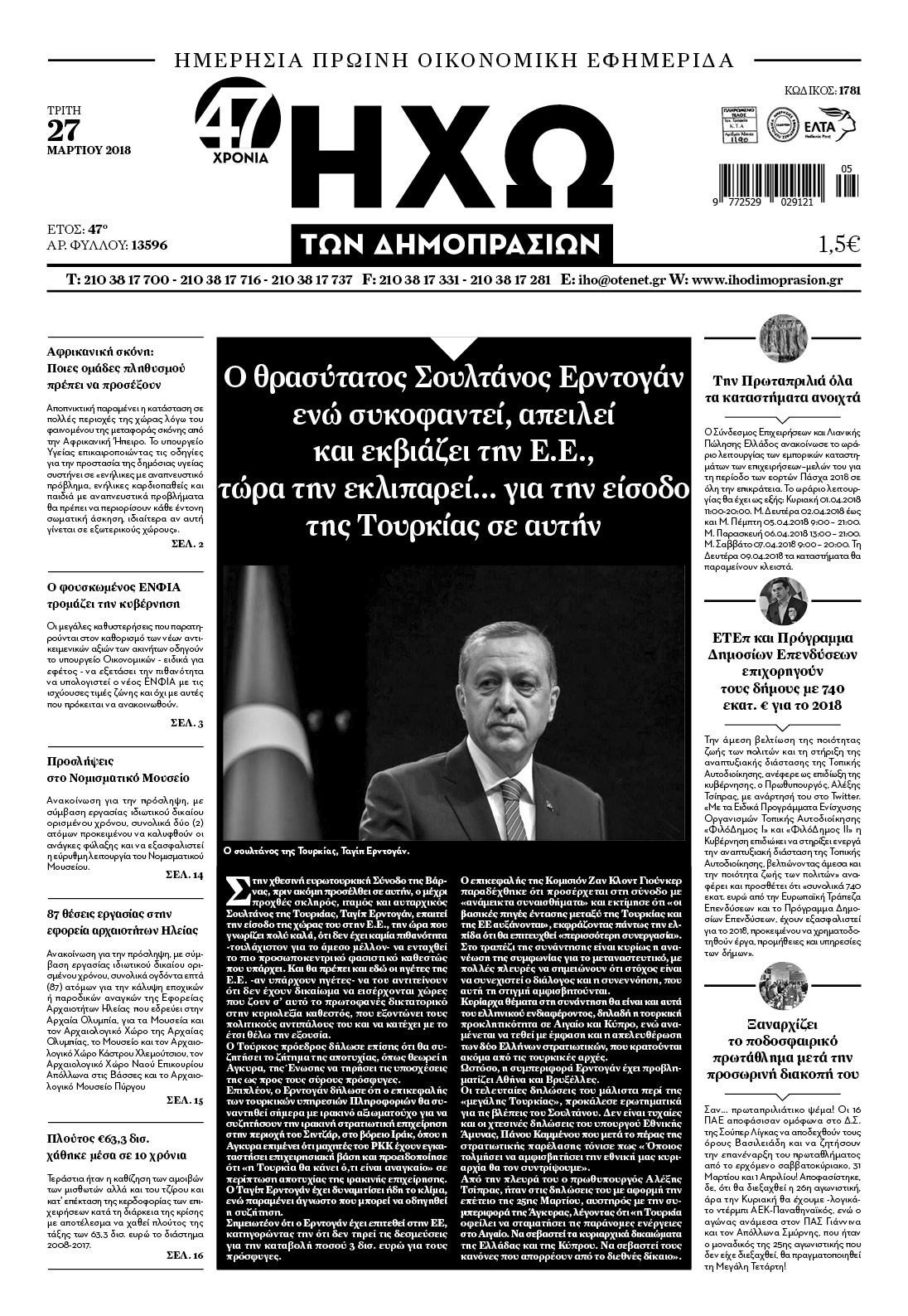 Οι οικονομικές εφημερίδες 27/3/2018 Κώστας Τεό 06:53, Τρίτη 27 Μαρτίου 2018 Media Διαβάστε τα σημερινά πρωτοσέλιδα των οικονομικών εφημερίδων: ΟΙΚΟΝΟΜΙΚΕΣ ΕΦΗΜΕΡΙΔΕΣ ΠΡΩΤΟΣΕΛΙΔΑ Μοιράσου το: σχολίασε κι εσύ (0 σχόλια) Ακολουθήστε το enikos.gr στο Google News και μάθετε πρώτοι όλες τις ειδήσεις Δείτε όλες τις τελευταίες ειδήσεις από την Ελλάδα και τον Κόσμο στο enikos.gr Ειδήσεις Ροή Ειδήσεων 48 λεπτά πριν Αυξάνουν την πίεση προς την κυβέρνηση οι αγρότες: Κλείνουν παρακαμπτήριους και ανοίγουν διόδια – Τι θα γίνει τις γιορτές 39 λεπτά πριν Φοινικούντα: Το Σάββατο απολογείται ο 30χρονος γιος γνωστού επιχειρηματία της Πλάκας που παραδόθηκε – Όσα είπε στους αστυνομικούς και ο ρόλος του στο έγκλημα 21 λεπτά πριν Μπορεί ο Μαδούρο να αντέξει τον αποκλεισμό του Τραμπ; Τι θα χρειαστεί η Ουάσινγκτον για να τον ανατρέψει 2 ώρες πριν Δημοσκόπηση Metron Analysis: Στις 10 μονάδες η διαφορά ΝΔ-ΠΑΣΟΚ, στην 3η θέση η Πλεύση Ελευθερίας – 8 στους 10 στηρίζουν τον αγώνα των αγροτών 2 ώρες πριν Πρίγκιπας Ουίλιαμ – Κέιτ: Η νέα οικογενειακή φωτογραφία για τις Χριστουγεννιάτικες κάρτες του 2025 1 ώρα πριν Ύπνος: Η απλή βραδινή ρουτίνα για να προστατεύσετε τα μαλλιά σας από το κρύο κατά τη διάρκεια του χειμώνα 2 ώρες πριν Manifesting: Πώς να συναντήσετε τον σύντροφο της ζωής σας, ανάλογα με τον μήνα γέννησής σας 2 ημέρες πριν 20 χρόνια τα Χριστούγεννα ξεκινούν στα Public με μεγάλη ποικιλία σε δώρα! 24 λεπτά πριν Αρχαιολόγοι ανακάλυψαν ρωμαϊκά τεχνουργήματα από μια πόλη που δεν υπήρξε ποτέ – Τα τρία εντυπωσιακά κτίρια και ο αμφορέας με τις… σαρδέλες 5 λεπτά πριν Παναθηναϊκός – Χάποελ Τελ Αβίβ 93-82: Με… φόρα από την Κωνσταντινούπολη 21 λεπτά πριν Μπορεί ο Μαδούρο να αντέξει τον αποκλεισμό του Τραμπ; Τι θα χρειαστεί η Ουάσινγκτον για να τον ανατρέψει 24 λεπτά πριν Αρχαιολόγοι ανακάλυψαν ρωμαϊκά τεχνουργήματα από μια πόλη που δεν υπήρξε ποτέ – Τα τρία εντυπωσιακά κτίρια και ο αμφορέας με τις… σαρδέλες 26 λεπτά πριν Στο ΟΑΚΑ για το «Παναθηναϊκός – Χάποελ» η Κίμπερλι Γκίλφοϊλ – ΦΩΤΟ 34 λεπτά πριν Ούρσουλα φον ντερ Λάιεν: Μετατίθεται για τον Ιανουάριο η υπογραφή της εμπορικής συμφωνίας «ΕΕ-MERCOSUR» ENIKOS NETWORK Σε περίοδο αυξημένης δραστηριότητας η γρίπη στην Ελλάδα-Μέτρα προστασίας από τον ΕΟΔΥ Σκέφτεστε συνέχεια συζητήσεις που έχετε κάνει; Τι σημαίνει αυτό, σύμφωνα με ειδικό Στεγαστικό: Τι λέει η ΠΟΜΙΔΑ για τα νέα μέτρα που ανακοίνωσε ο Κυριάκος Μητσοτάκης Λαγκάρντ: Αισιόδοξη για την ανάπτυξη της Ευρωζώνης, αβέβαιη για τον πληθωρισμό Χαρτογραφώντας το «σημείο χωρίς επιστροφή»: Για πρώτη φορά αποκαλύπτεται με λεπτομέρεια το ακανθώδες όριο της ατμόσφαιρας τ... Η Google καταργεί τη λειτουργία «dark web report» – Πώς θα μπορούν οι χρήστες να διαγράφουν τα δεδομένα τους περισσότερα 17:45 , Πέμπτη 18 Δεκεμβρίου 2025 ROUK ZOUK: Εορταστικό επεισόδιο με καλεσμένους τους πρωταγωνιστές του «Γιατί ρε πατέρα» Το Σάββατο 20 Δεκεμβρίου στις 21:00, η Ζέτα Μακρυπούλια υποδέχεται εκλεκτούς ηθοποιούς που όλο... 17:20 , Πέμπτη 18 Δεκεμβρίου 2025 Άγιος έρωτας: Η Χριστίνα εξομολογείται στον πατέρα Νικόλαο, απόψε στις 21:00 στον Alpha Η Νότα αποφασίζει να εκδικηθεί τον Πέτρο και τον Στέφανο, για χάρη του Λούη, όμως τα πράγματα ... 16:50 , Πέμπτη 18 Δεκεμβρίου 2025 Να μ’ αγαπάς: Ζωή και Φωτεινή συμφιλιώνονται ως μάνα με κόρη, απόψε στις 20:00 Η ταυτότητα του Άγγελου αποκαλύπτεται στο νέο επεισόδιο της σειράς “Να μ’ αγαπάς... 15:52 , Πέμπτη 18 Δεκεμβρίου 2025 Το Σπίτι Δίπλα Στο Ποτάμι: Το καθηλωτικό 