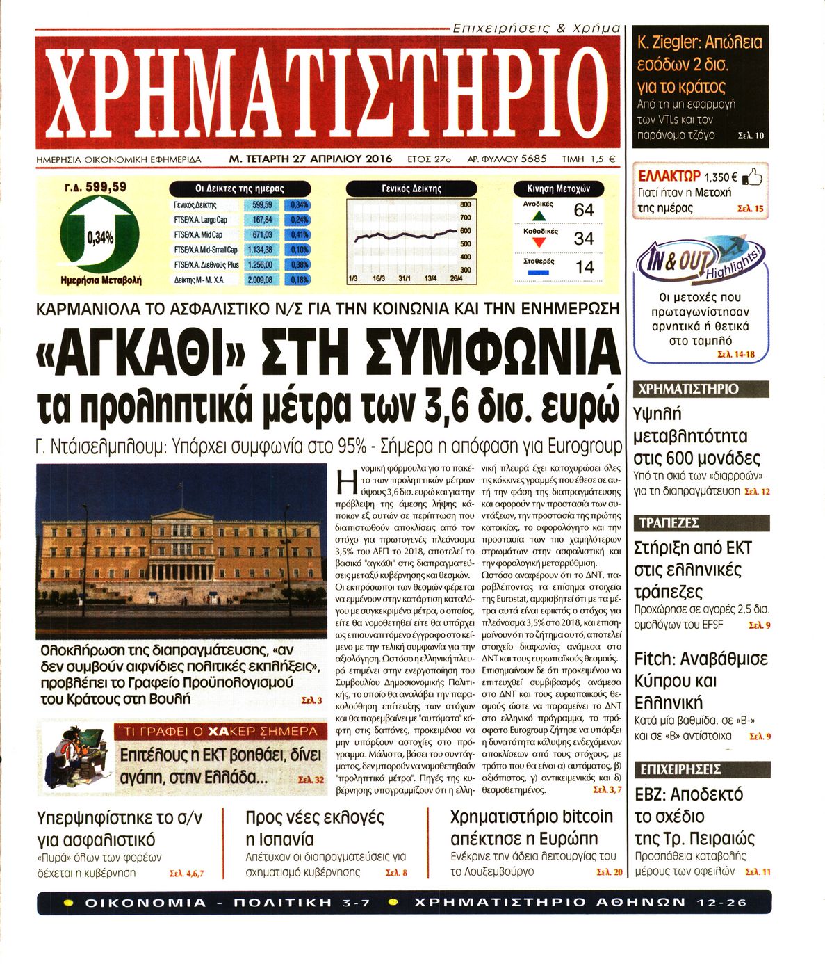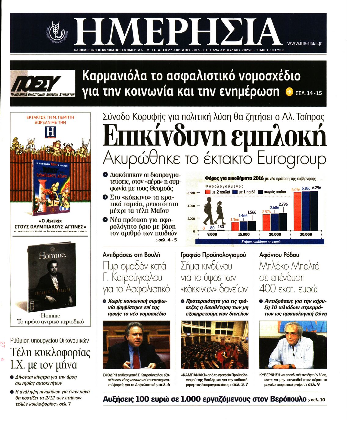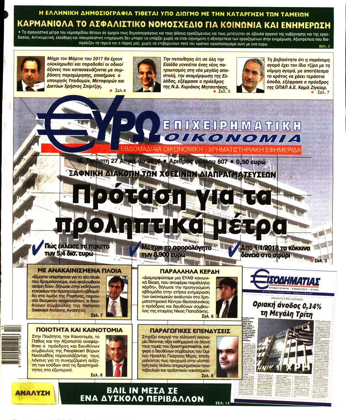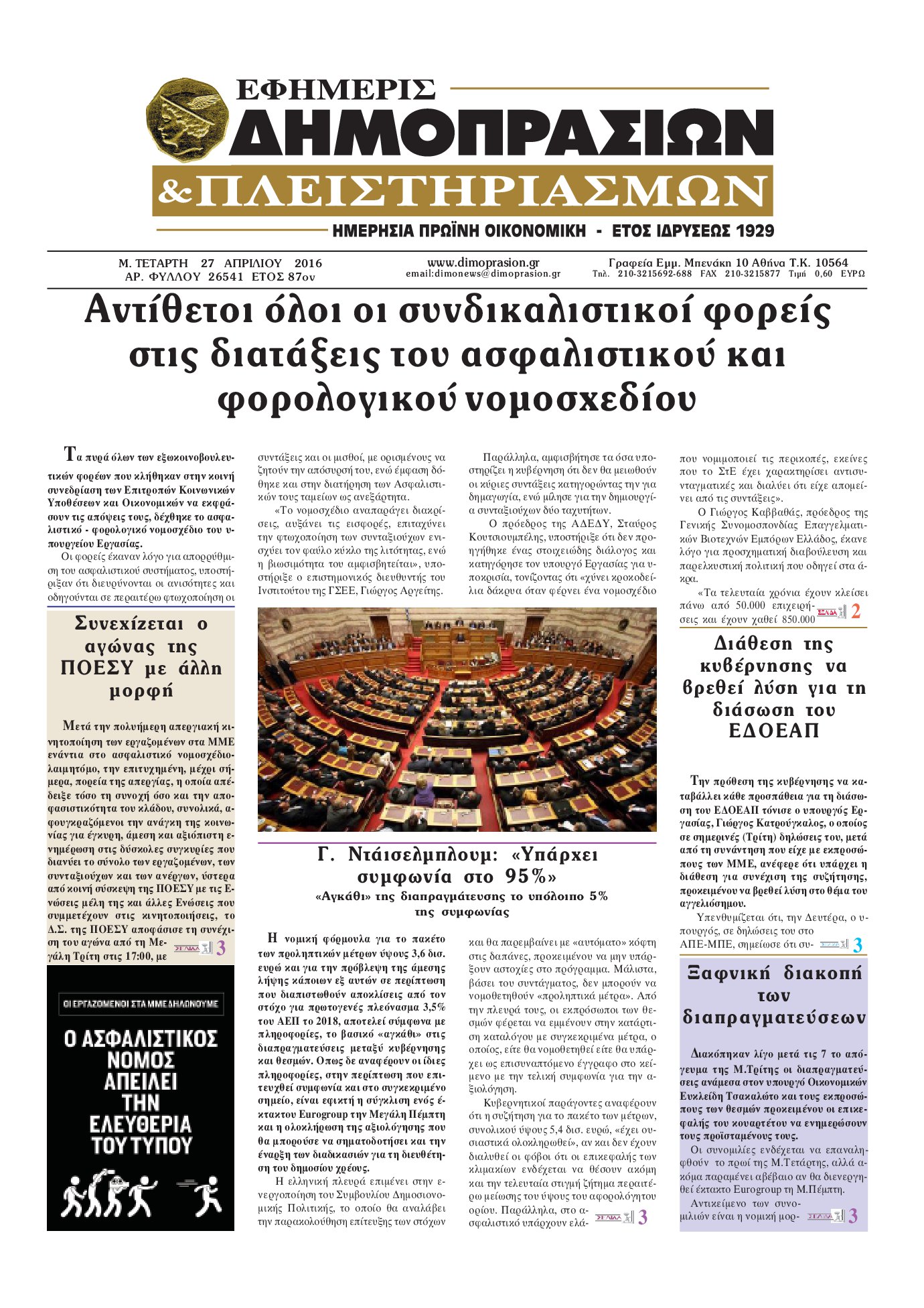 Οι οικονομικές εφημερίδες 27/4/2016 Enikos Newsroom 05:08, Τετάρτη 27 Απριλίου 2016 Media Διαβάστε τα σημερινά πρωτοσέλιδα των οικονομικών εφημερίδων: ΟΙΚΟΝΟΜΙΚΕΣ ΕΦΗΜΕΡΙΔΕΣ ΠΡΩΤΟΣΕΛΙΔΑ Μοιράσου το: σχολίασε κι εσύ (0 σχόλια) Ακολουθήστε το enikos.gr στο Google News και μάθετε πρώτοι όλες τις ειδήσεις Δείτε όλες τις τελευταίες ειδήσεις από την Ελλάδα και τον Κόσμο στο enikos.gr Ειδήσεις Ροή Ειδήσεων 2 ώρες πριν Ευρωπαϊκή Ένωση: Συμφωνία για δάνειο 90 δισ. ευρώ στην Ουκρανία τη διετία 2026-2027 7 ώρες πριν ΟΠΕΚΕΠΕ: Προφυλακιστέος ο φερόμενος αρχηγός και ο λογιστής της εγκληματικής οργάνωσης 8 ώρες πριν Αυξάνουν την πίεση προς την κυβέρνηση οι αγρότες: Κλείνουν παρακαμπτήριους και ανοίγουν διόδια – Τι θα γίνει τις γιορτές 8 ώρες πριν Φοινικούντα: Το Σάββατο απολογείται ο 30χρονος γιος γνωστού επιχειρηματία της Πλάκας που παραδόθηκε – Όσα είπε στους αστυνομικούς και ο ρόλος του στο έγκλημα 6 ώρες πριν ΑΕΚ – Κραϊόβα 3-2: Επική ανατροπή και πρόκριση στους «16» του Conference League η Ένωση 7 ώρες πριν Αρχαιολόγοι ανακάλυψαν ρωμαϊκά τεχνουργήματα από μια πόλη που δεν υπήρξε ποτέ – Τα τρία εντυπωσιακά κτίρια και ο αμφορέας με τις… σαρδέλες 8 ώρες πριν Ύπνος: Η απλή βραδινή ρουτίνα για να προστατεύσετε τα μαλλιά σας από το κρύο κατά τη διάρκεια του χειμώνα 9 ώρες πριν Manifesting: Πώς να συναντήσετε τον σύντροφο της ζωής σας, ανάλογα με τον μήνα γέννησής σας 2 ημέρες πριν 20 χρόνια τα Χριστούγεννα ξεκινούν στα Public με μεγάλη ποικιλία σε δώρα! 6 λεπτά πριν ΕΥΔΑΠ: Αλλάζουν τα τιμολόγια του νερού 13 λεπτά πριν Οπτική ψευδαίσθηση: Μόνο αν έχεις αετίσια ματιά θα βρεις τον παπαγάλο σε 12 δευτερόλεπτα 20 λεπτά πριν Αθήνα: Βρέθηκε η 16χρονη που είχε εξαφανιστεί από τις 6 Δεκεμβρίου – Η ανακοίνωση από το «Χαμόγελο του Παιδιού» 28 λεπτά πριν Κρύα χέρια και πόδια: Γιατρός εξηγεί ποια είναι η αίτια και πότε πρέπει να ανησυχήσετε 35 λεπτά πριν Σαν σήμερα 19 Δεκεμβρίου: Τα σημαντικότερα γεγονότα της ημέρας ENIKOS NETWORK Σε περίοδο αυξημένης δραστηριότητας η γρίπη στην Ελλάδα-Μέτρα προστασίας από τον ΕΟΔΥ Σκέφτεστε συνέχεια συζητήσεις που έχετε κάνει; Τι σημαίνει αυτό, σύμφωνα με ειδικό Στεγαστικό: Τι λέει η ΠΟΜΙΔΑ για τα νέα μέτρα που ανακοίνωσε ο Κυριάκος Μητσοτάκης Λαγκάρντ: Αισιόδοξη για την ανάπτυξη της Ευρωζώνης, αβέβαιη για τον πληθωρισμό Χαρτογραφώντας το «σημείο χωρίς επιστροφή»: Για πρώτη φορά αποκαλύπτεται με λεπτομέρεια το ακανθώδες όριο της ατμόσφαιρας τ... Η Google καταργεί τη λειτουργία «dark web report» – Πώς θα μπορούν οι χρήστες να διαγράφουν τα δεδομένα τους περισσότερα 05:48 , Παρασκευή 19 Δεκεμβρίου 2025 Οι οικονομικές εφημερίδες 19/12/2025 Διαβάστε τα πρωτοσέλιδα από τις οικονομικές εφημερίδες, σήμερα 19/12/2025. 05:43 , Παρασκευή 19 Δεκεμβρίου 2025 Οι αθλητικές εφημερίδες 19/12/2025 Διαβάστε τα πρωτοσέλιδα από τις αθλητικές εφημερίδες, σήμερα 19/12/2025. 05:38 , Παρασκευή 19 Δεκεμβρίου 2025 Οι πολιτικές εφημερίδες 19/12/2025 Διαβάστε τα πρωτοσέλιδα από τις πολιτικές εφημερίδες, σήμερα 19/12/2025. 02:50 , Παρασκευή 19 Δεκεμβρίου 2025 GNTM: «Κλείδωσαν» οι τέσσερις φιναλίστ – Μεγάλη ανατροπή στις τελευταίες αποχωρήσεις Για προτελευταία φορά εμφανίστηκαν στο πλατό του GNTM οι φιναλίστ του φετινού κύκλου, το βράδυ... ΤΕΛΕΥΤΑΙΕΣ ΕΙΔΗΣΕΙΣ 6 λεπτά πριν ΕΥΔΑΠ: Αλλάζουν τα τιμολόγια του νερού 13 λεπτά πριν Οπτική ψευδαίσθηση: Μόνο αν έχεις αετίσια ματιά θα... 20 λεπτά πριν Αθήνα: Βρέθηκε η 16χρονη που είχε εξαφανιστεί από τις 6... 28 λεπτά πριν Κρύα χέρια και πόδια: Γιατρός εξηγεί ποι