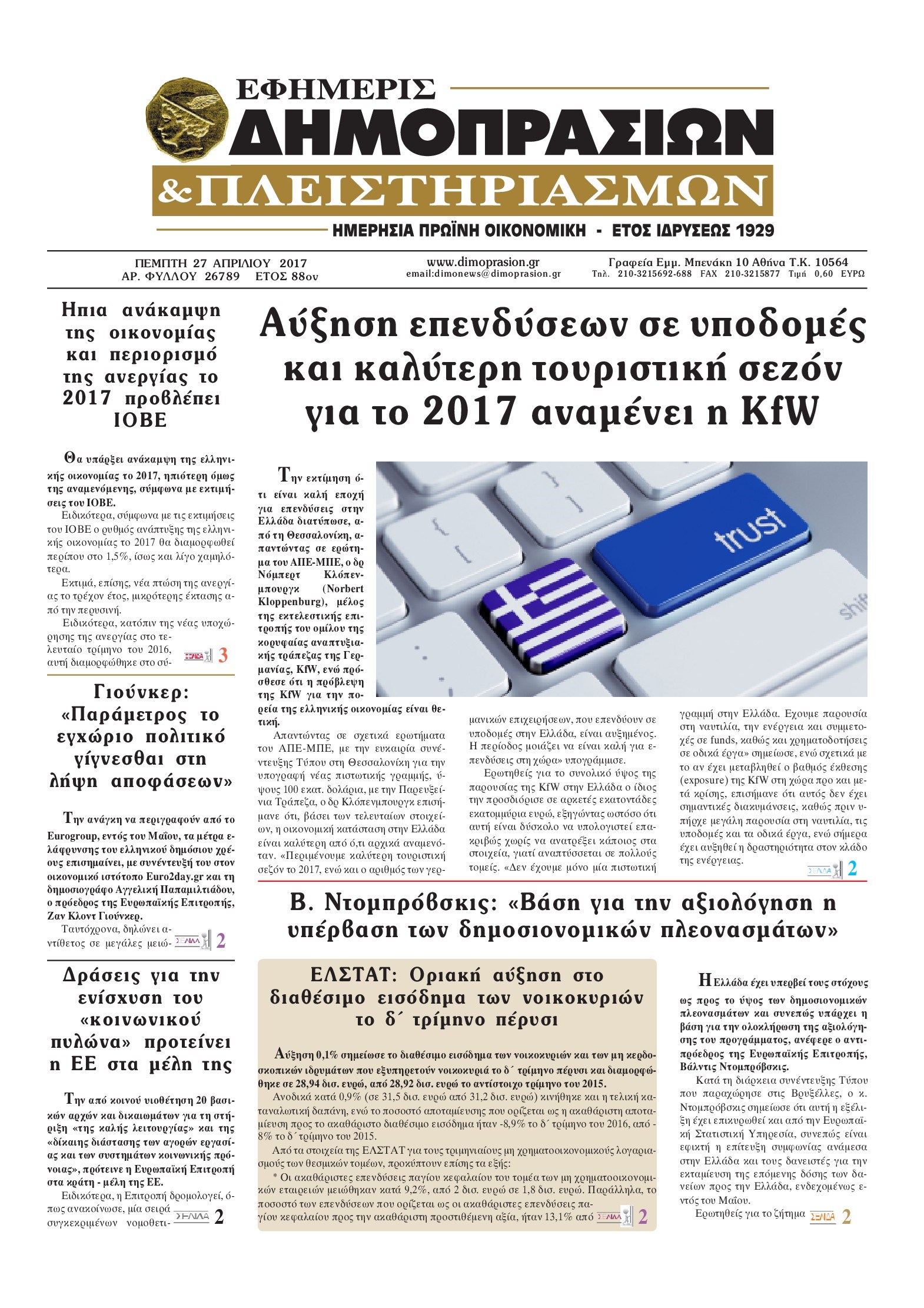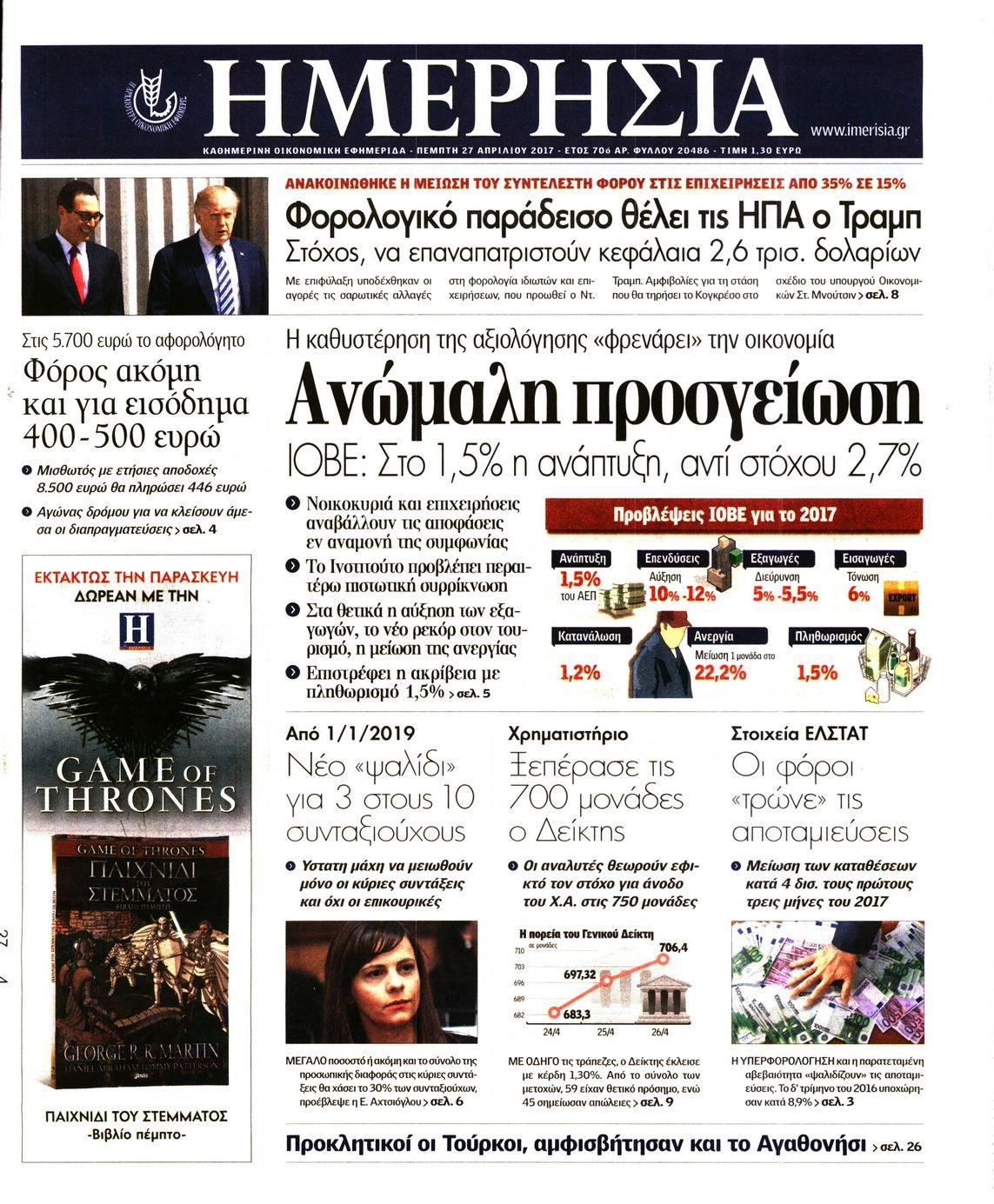 Διαβάστε τα σημερινά πρωτοσέλιδα των οικονομικών εφημερίδων: