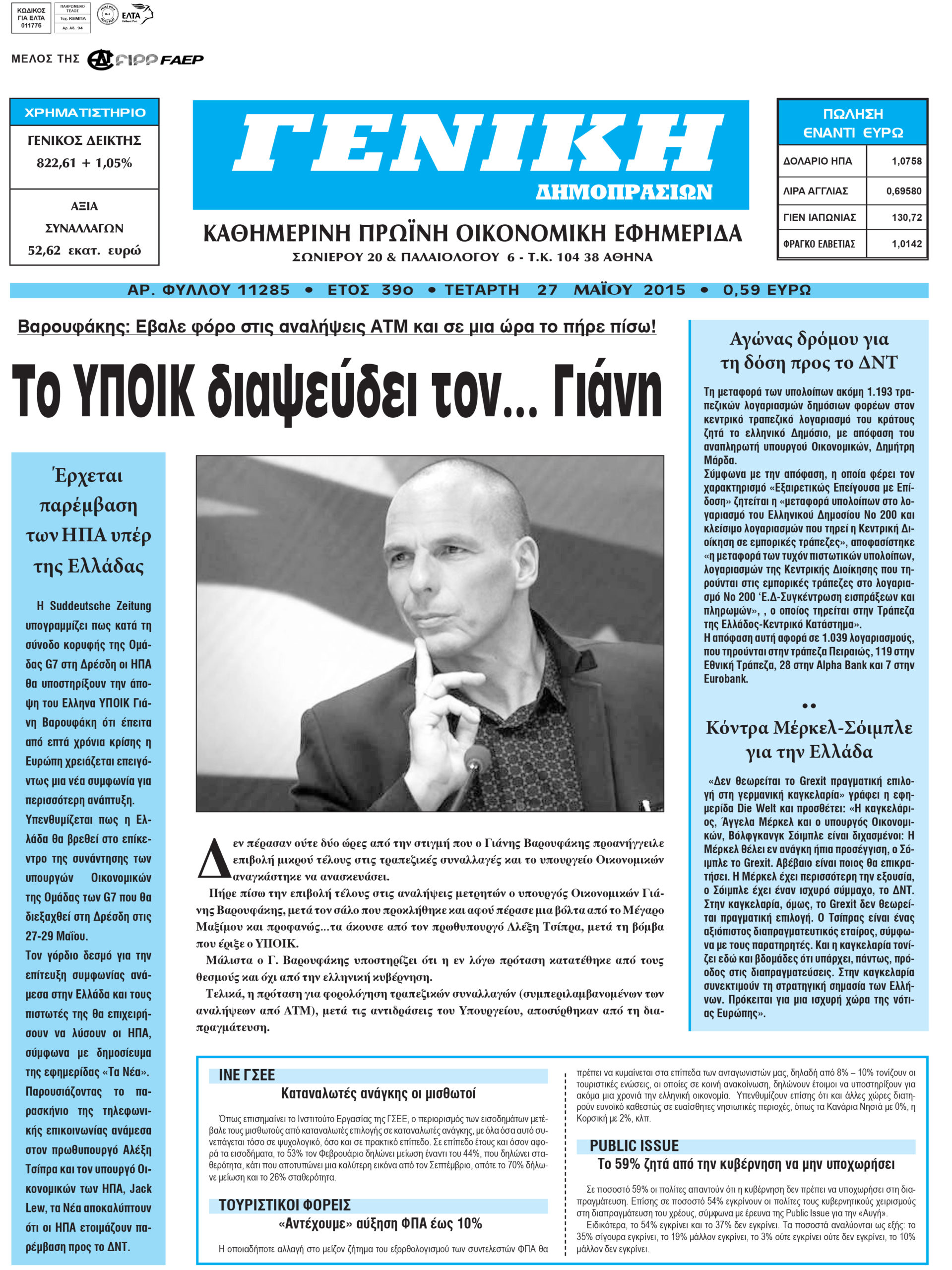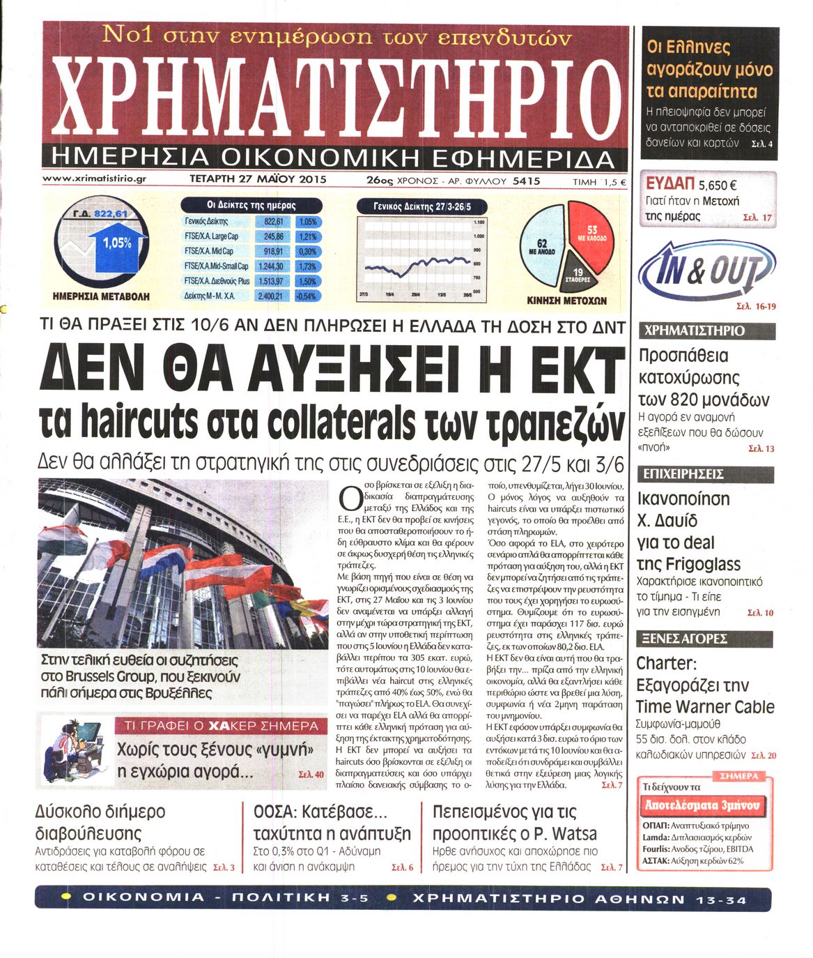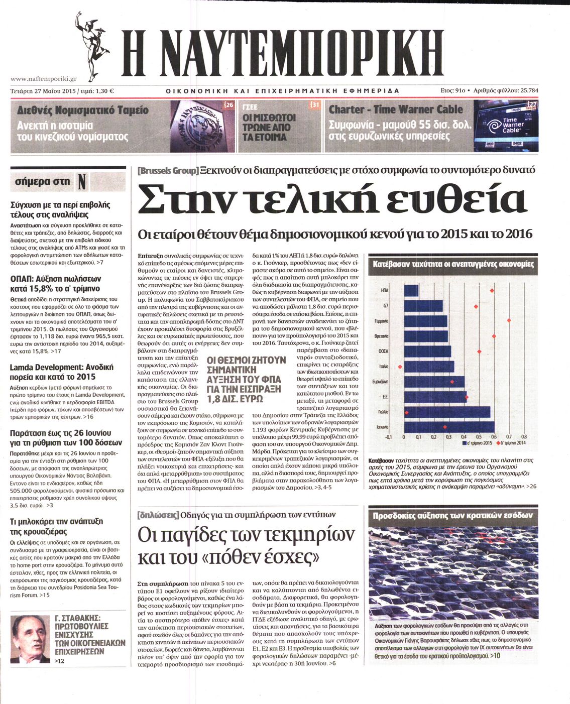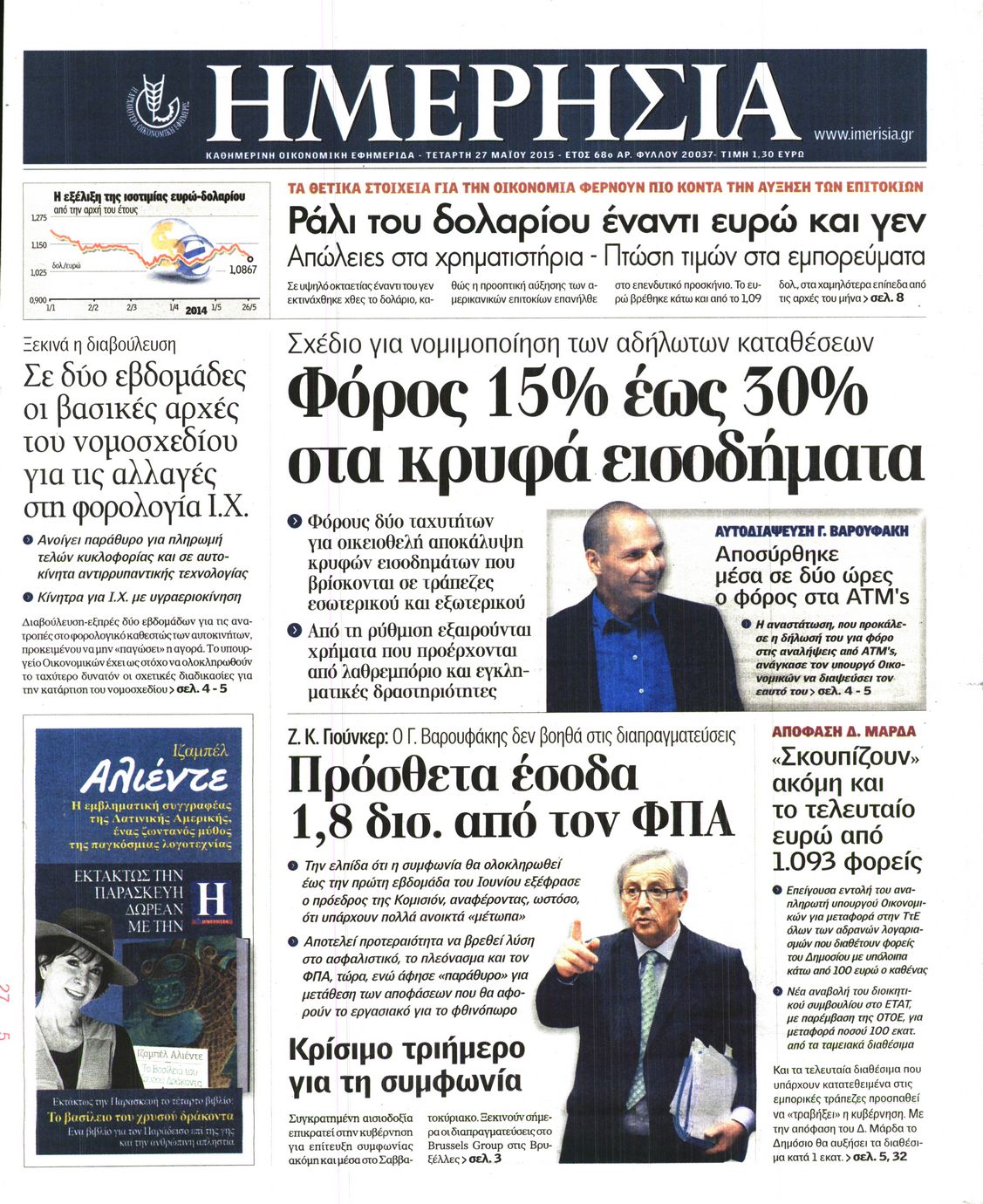 Οι οικονομικές εφημερίδες 27/5/2015 Enikos Newsroom 06:47, Τετάρτη 27 Μαΐου 2015 Media Διαβάστε τα σημερινά πρωτοσέλιδα των οικονομικών εφημερίδων: ΟΙΚΟΝΟΜΙΚΕΣ ΕΦΗΜΕΡΙΔΕΣ ΠΡΩΤΟΣΕΛΙΔΑ Μοιράσου το: σχολίασε κι εσύ (0 σχόλια) Ακολουθήστε το enikos.gr στο Google News και μάθετε πρώτοι όλες τις ειδήσεις Δείτε όλες τις τελευταίες ειδήσεις από την Ελλάδα και τον Κόσμο στο enikos.gr Ειδήσεις Ροή Ειδήσεων 2 ώρες πριν Εκτός ευρωομάδας ΣΥΡΙΖΑ ο Νίκος Παππάς μετά την επίθεση στον δημοσιογράφο Νίκο Γιαννόπουλο – Η μήνυση και οι νέες δηλώσεις 2 ώρες πριν «Αγριεύουν» οι αγρότες: «Δεν συντρέχει λόγος συνάντησης με τον πρωθυπουργό» – Ώρα αποφάσεων στη σύσκεψη της Πέμπτης 2 ώρες πριν Κυψέλη: Χωρίς την οικογένειά της δίπλα της απολογήθηκε η 16χρονη – «Της είχε επιτεθεί κάποιος για να την βιάσει, φοβήθηκε και κυκλοφορούσε με μαχαίρι» 2 ώρες πριν Politico: Το πρόβλημα της Ευρώπης δεν είναι το Βέλγιο αλλά ο Ντόναλντ Τραμπ 4 ώρες πριν Αλεξανδρούπολη: Πολυοργανική ανεπάρκεια λόγω υποσιτισμού η αιτία θανάτου του 3χρονου αγοριού 2 ώρες πριν Μυστήριο με τεράστιες κυκλικές πέτρες 200 κιλών – Ανακαλύφθηκαν τυχαία κατά τη διάρκεια οδικών έργων και κανείς δεν ξέρει από πού προέρχονται 3 ώρες πριν Ύπνος: Ειδικός εξηγεί τον πραγματικό λόγο που ξυπνάτε στις 4 τα ξημερώματα – Ο ρόλος των ορμονών και του κιρκάδιου ρυθμού 4 ώρες πριν Αριθμολογία: Οι άνθρωποι που έχουν γεννηθεί αυτές τις 4 ημερομηνίες, είναι τρυφεροί και αγαπούν ανιδιοτελώς 16 ώρες πριν 20 χρόνια τα Χριστούγεννα ξεκινούν στα Public με μεγάλη ποικιλία σε δώρα! 14 λεπτά πριν Παρί Σεν Ζερμέν – Φλαμένγκο 2-1 πεν. (1-1 κ.δ.): Οι Γάλλοι σήκωσαν και το Διηπειρωτικό με ήρωα τον Σαφόνοφ που έπιασε 4 πέναλτι 30 λεπτά πριν Βέλγους πολιτικούς και επικεφαλής χρηματοπιστωτικών ιδρυμάτων στοχοποιεί η Μόσχα για τα κατασχεθέντα περιουσιακά στοιχεία 44 λεπτά πριν ΗΠΑ: Αναζητείται δεύτερος ύποπτος για την επίθεση στο πανεπιστήμιο Μπράουν 60 λεπτά πριν Λεωφόρος Αλεξάνδρας: Δεν εντοπίστηκε βόμβα έξω από το κολλέγιο – Προσήχθη άνδρας για το προειδοποιητικό σημείωμα 1 ώρα πριν Ελένη Κρίτα για το reunion του «Παρά Πέντε»: «Ήταν πραγματικά σαν να μην είχαμε χαθεί ποτέ» ENIKOS NETWORK Αϋπνία: Το κόλπο που θα σας βοηθήσει να κοιμηθείτε απόψε – Είναι απλό και έχει αποτέλεσμα 2,6 εκατομμύρια πολίτες έχουν ήδη εμβολιαστεί κατά της γρίπης ΕΛΣΤΑΤ: Τι δείχνουν τα νέα στοιχεία για τις ηλεκτρονικές παραγγελίες των επιχειρήσεων ΚΕΠΕ: Οι 3 διακριτές συμβολές των ΜμΕ και της μεταποίησης στην ελληνική οικονομία Χαρτογραφώντας το «σημείο χωρίς επιστροφή»: Για πρώτη φορά αποκαλύπτεται με λεπτομέρεια το ακανθώδες όριο της ατμόσφαιρας τ... Η Google καταργεί τη λειτουργία «dark web report» – Πώς θα μπορούν οι χρήστες να διαγράφουν τα δεδομένα τους περισσότερα 22:24 , Τετάρτη 17 Δεκεμβρίου 2025 Το Σπίτι Δίπλα Στο Ποτάμι: Σε κίνδυνο η υγεία του Απόστολου – Τι θα δούμε απόψε “Το Σπίτι Δίπλα στο Ποτάμι” ξετυλίγει το νήμα της ζωής των πέντε αδελφών με καταισ... 21:14 , Τετάρτη 17 Δεκεμβρίου 2025 Παιχνίδια Εκδίκησης: Θα καταφέρει ο Χρήστος να κλονίσει την εμπιστοσύνη της Μάγιας απέναντι στον Άγη; Τα «Παιχνίδια Εκδίκησης» έρχονται απόψε στις 22:30, στον Αντ1, με το τελευταίο επεισόδιο της χ... 20:57 , Τετάρτη 17 Δεκεμβρίου 2025 Άγιος Έρωτας: Η Χλόη καταθέτει εναντίον του πατέρα της και ο Χάρης αποκαλύπτει στον Κλεάνθη ότι δεν είναι ο βιολογικός του πατέρας. Γεμάτο αποκαλύψεις είναι το νέο επεισόδιο της σειράς “Άγιος Έρωτας” απόψε στις 21:... 20:15 , 