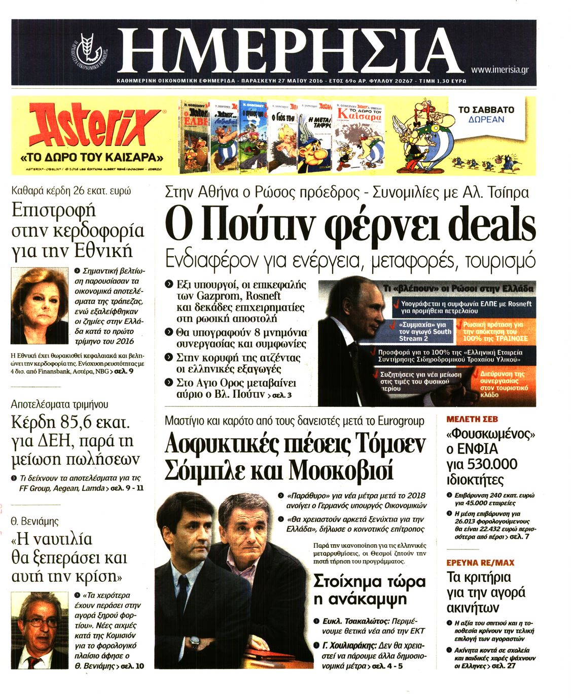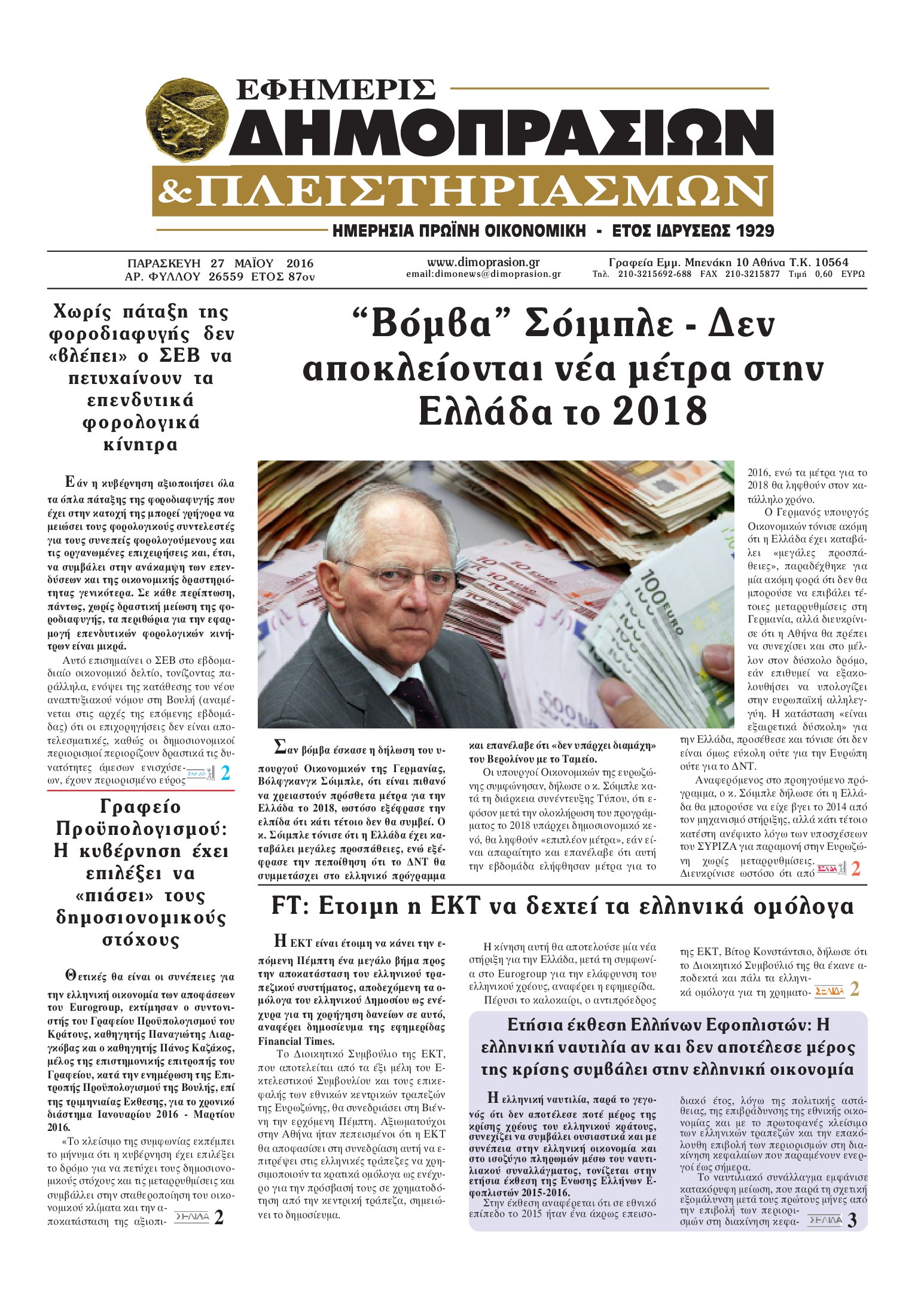 Οι οικονομικές εφημερίδες 27/5/2016 Enikos Newsroom 05:20, Παρασκευή 27 Μαΐου 2016 Media Διαβάστε τα σημερινά πρωτοσέλιδα των οικονομικών εφημερίδων: ΟΙΚΟΝΟΜΙΚΕΣ ΕΦΗΜΕΡΙΔΕΣ ΠΡΩΤΟΣΕΛΙΔΑ Μοιράσου το: σχολίασε κι εσύ (0 σχόλια) Ακολουθήστε το enikos.gr στο Google News και μάθετε πρώτοι όλες τις ειδήσεις Δείτε όλες τις τελευταίες ειδήσεις από την Ελλάδα και τον Κόσμο στο enikos.gr Ειδήσεις Ροή Ειδήσεων 3 ώρες πριν Αγρότες: «Όχι στον διάλογο, μας εμπαίζει η κυβέρνηση» – Αποφάσισαν κλιμάκωση των κινητοποιήσεων, τι θα γίνει τα Χριστούγεννα 4 ώρες πριν Την πρώτη Belharra παρέλαβε η χώρα μας, υψώθηκε η ελληνική σημαία στη φρεγάτα «Κίμων» – Δένδιας: «Το ισχυρότερο Πολεμικό Ναυτικό που είχε ποτέ ο ελληνισμός» 2 ώρες πριν Γιώργος Μαζωνάκης: «Έχει υποστεί ένα σωρό εκβιαστικές πρακτικές – Του είπαν ότι θα του βάλουν τον συγκεκριμένο άνθρωπο να τον καταγγείλει» 3 ώρες πριν Μιχάλης Χουρδάκης: «Είμαι διαθέσιμος να συμβάλω στην προσωρινή κάλυψη του ιατρείου της Ψερίμου» – Η επιστολή στον Άδωνι Γεωργιάδη 3 ώρες πριν Εξώδικο Γεωργιάδη στην Κωνσταντοπούλου – «Με κατηγόρησε ότι έχω καταδικαστεί για παιδεραστία» 1 ώρα πριν Γάμος: 11 ψυχρές αλλά ευγενικές φράσεις, που λέει ένας άνδρας όταν σκέφτεται τον χωρισμό 4 ώρες πριν Τα 5 ζώδια που θα ευνοηθούν στα οικονομικά τους το 2026 – «Τραβούν το χρήμα σαν μαγνήτες» 5 ώρες πριν Αυτό που κρύβεται κάτω από τη Γροιλανδία θα μπορούσε να ανατρέψει όσα γνωρίζουμε για την άνοδο της στάθμης των θαλασσών 1 ημέρα πριν 20 χρόνια τα Χριστούγεννα ξεκινούν στα Public με μεγάλη ποικιλία σε δώρα! 8 λεπτά πριν Σφουγγάρισμα: Η συνήθεια που θα σας βοηθήσει να διατηρήσετε το σπίτι σας καθαρό και τακτοποιημένο 14 λεπτά πριν Αθήνα: Εξαρθρώθηκε εγκληματική οργάνωση που διακινούσε ναρκωτικά σε μορφή σοκολάτας – Δύο τράπερ ανάμεσα στους 4 συλληφθέντες – ΒΙΝΤΕΟ 23 λεπτά πριν Στη φυλακή ο «Έλληνας Εσκομπάρ» και τρεις συνεργοί του για το φορτίο με την κοκαΐνη – Τι υποστήριξε στην απολογία του 27 λεπτά πριν ΕΕ: Καλεί τα Σκόπια να σέβονται τις δεσμεύσεις από τη διαδικασία ένταξης και το Διεθνές Δίκαιο – Η χρηματοδότηση του Διαδρόμου Χ 33 λεπτά πριν Σοκ στη Σουηδία: 12χρονος πληρωμένος δολοφόνος σκότωσε λάθος άτομο ENIKOS NETWORK Σκέφτεστε συνέχεια συζητήσεις που έχετε κάνει; Τι σημαίνει αυτό, σύμφωνα με ειδικό Ξεκίνησε η «επέλαση» της γρίπης στην Ελλάδα-Ποιοι κινδυνεύουν Κλιμάκωση των κινητοποιήσεων αποφάσισαν οι αγρότες, κλείνουν παρακαμπτήριους την Παρασκευή – Τι απαντά η κυβέρνηση Ευλογιά αιγοπροβάτων: Νέες αποζημιώσεις ύψους 26,02 εκατ. ευρώ σε κτηνοτρόφους – Η κατανομή ανά Περιφέρεια Χαρτογραφώντας το «σημείο χωρίς επιστροφή»: Για πρώτη φορά αποκαλύπτεται με λεπτομέρεια το ακανθώδες όριο της ατμόσφαιρας τ... Η Google καταργεί τη λειτουργία «dark web report» – Πώς θα μπορούν οι χρήστες να διαγράφουν τα δεδομένα τους περισσότερα 17:45 , Πέμπτη 18 Δεκεμβρίου 2025 ROUK ZOUK: Εορταστικό επεισόδιο με καλεσμένους τους πρωταγωνιστές του «Γιατί ρε πατέρα» Το Σάββατο 20 Δεκεμβρίου στις 21:00, η Ζέτα Μακρυπούλια υποδέχεται εκλεκτούς ηθοποιούς που όλο... 17:20 , Πέμπτη 18 Δεκεμβρίου 2025 Άγιος έρωτας: Η Χριστίνα εξομολογείται στον πατέρα Νικόλαο, απόψε στις 21:00 στον Alpha Η Νότα αποφασίζει να εκδικηθεί τον Πέτρο και τον Στέφανο, για χάρη του Λούη, όμως τα πράγματα ... 16:50 , Πέμπτη 18 Δεκεμβρίου 2025 Να μ’ αγαπάς: Ζωή και Φωτεινή συμφιλιώνονται ως μάνα με κόρη, απόψε στις 20:00 Η ταυτότητα του Άγγελου αποκαλύπτεται στο νέο επεισόδιο της 
