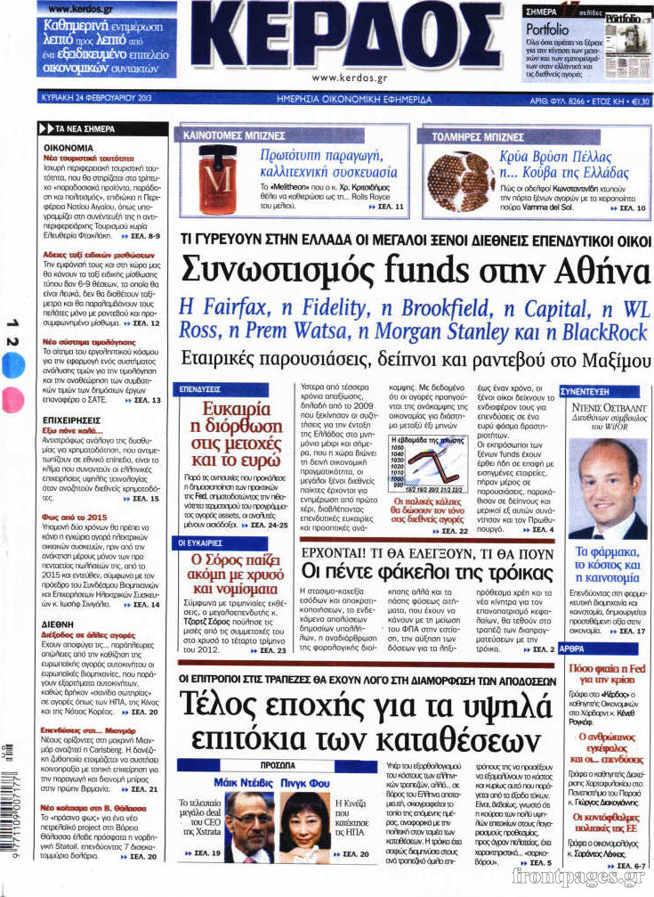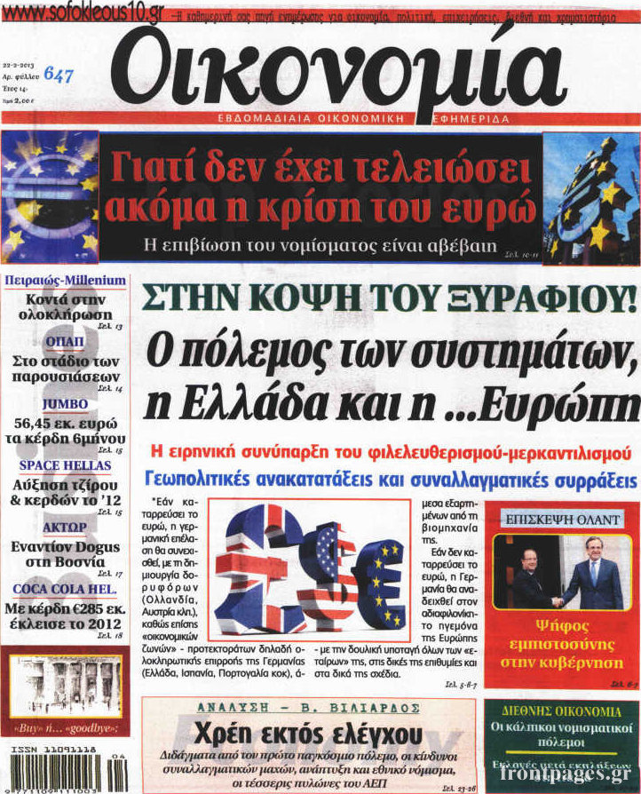 Οι οικονομικές εφημερίδες Enikos Newsroom 09:33, Κυριακή 24 Φεβρουαρίου 2013 Media Οι οικονομικές εφημερίδες Τα πρωτοσέλιδα των οικονομικών εφημερίδων. ΕΦΗΜΕΡΙΔΕΣ ΟΙΚΟΝΟΜΙΚΕΣ ΕΦΗΜΕΡΙΔΕΣ ΠΡΩΤΟΣΕΛΙΔΑ Μοιράσου το: σχολίασε κι εσύ (0 σχόλια) Ακολουθήστε το enikos.gr στο Google News και μάθετε πρώτοι όλες τις ειδήσεις Δείτε όλες τις τελευταίες ειδήσεις από την Ελλάδα και τον Κόσμο στο enikos.gr Ειδήσεις Ροή Ειδήσεων 2 ώρες πριν Κυψέλη: Επεισόδιο με μαχαίρωμα μέσα σε σχολείο – Τραυματίστηκε 14χρονη 3 ώρες πριν Βουλή: Κατατέθηκε το νομοσχέδιο για την αναδιάρθρωση των Ενόπλων Δυνάμεων – Όλα όσα προβλέπει 14 λεπτά πριν Λάρισα: Αναβλήθηκε για τον Οκτώβριο του 2026 η δίκη δύο αγροτών του μπλόκου της Νίκαιας 4 ώρες πριν Σίδνεϊ: Τα ονόματα των θυμάτων από την τρομοκρατική επίθεση – Η 10χρονη Ματίλντα και ο επιζών του Ολοκαυτώματος που έσωσε τη γυναίκα του 5 ώρες πριν Δείτε LIVE το συνέδριο «Ελληνικός Τουρισμός, Μια Εθνική Υπόθεση!» 4 ώρες πριν Μακροζωία: 55χρονος που ισχυρίζεται ότι βιολογικά είναι 20 ετών μοιράζεται μια απλή συμβουλή για υγιή εγκέφαλο 6 ώρες πριν Τα 3 ζώδια που μπαίνουν σε μια νέα δυναμική εποχή – «Είστε έτοιμοι για όλα» 5 ώρες πριν Οι 8 φράσεις που δίνουν αμέσως την εντύπωση πως είστε δύσκολος άνθρωπος 7 ώρες πριν Κληρονόμησε 2,8 εκατ. ευρώ και φοβάται ότι οι άνδρες θα την πλησιάζουν για τα λεφτά – «Μήπως καλύτερα να το κρατήσω μυστικό;» 4 λεπτά πριν Μπαρτζώκας: «Δύσκολο παιχνίδι με τη Βαλένθια, καθοριστική η Τετάρτη για τον Μόρις» 9 λεπτά πριν Συνέδριο «Ελληνικός Τουρισμός 2025, Μια εθνική υπόθεση!» – Το στοίχημα του ανθρώπινου δυναμικού στον τουρισμό 12 λεπτά πριν Ο «Ευρωπαίος Σεφ 2025» Καθηγητής της Ανώτερης Σχολής ΑΚΜΗ στη Χαλκίδα 14 λεπτά πριν Λάρισα: Αναβλήθηκε για τον Οκτώβριο του 2026 η δίκη δύο αγροτών του μπλόκου της Νίκαιας 20 λεπτά πριν Ρωσία: Η κεντρική τράπεζα ζητεί αποζημίωση 230 δισ. δολαρίων από τη Euroclear – «Νομικός εφιάλτης για την ΕΕ» ENIKOS NETWORK ΠΟΕΔΗΝ: Ανανέωση των συμβάσεων του ειδικού προγράμματος ΔΥΠΑ 55 ετών και άνω σε δομές Υγείας Γιατί τρώμε χωρίς να πεινάμε; Τα τρόφιμα που ανοίγουν την όρεξη ειδικά στους πιο νέους Ακτοπλοϊκά και αεροπορικά εισιτήρια: Έκπτωση έως 50% για τα Χριστούγεννα για τους αναπληρωτές εκπαιδευτικούς Πανελλαδικές Εξετάσεις 2026: Αυτό είναι το νέο ηλικιακό όριο εισαγωγής στις Σχολές της Αστυνομίας Σύγχρονος Νοστράδαμος: Προειδοποιεί για «μεγάλο γεγονός» τους επόμενους μήνες που θα συγκλονίσει τη Βρετανία και τον κόσμο Τεστ παρατηρητικότητας: Μπορείτε να βρείτε τις 3 διαφορές στις εικόνες με έναν πιγκουίνο σε 14 δευτερόλεπτα περισσότερα 15:31 , Δευτέρα 15 Δεκεμβρίου 2025 Συνέδριο «Ελληνικός Τουρισμός 2025, Μια εθνική υπόθεση!» – Το στοίχημα του ανθρώπινου δυναμικού στον τουρισμό Τον κρίσιμο ρόλο της εκπαίδευσης, της κατάρτισης και της επάρκειας ανθρώπινου δυναμικού για τη... 14:57 , Δευτέρα 15 Δεκεμβρίου 2025 Συνέδριο «Ελληνικός Τουρισμός 2025, Μια εθνική υπόθεση!» – Σταύρος Αρναουτάκης: Βασικό θέμα για την ανάπτυξη κάθε Περιφέρειας είναι οι υποδομές Το ετήσιο συνέδριο «Ελληνικός Τουρισμός 2025, Μια εθνική υπόθεση!» συνδιοργανώνουν η Next is N... 14:27 , Δευτέρα 15 Δεκεμβρίου 2025 Να μ’ αγαπάς: Η Φωτεινή αποφασίζει να δώσει τέλος στη ζωή της Η Φωτεινή βεβαιώνεται πως είναι έγκυος στο νέο επεισόδιο της σειράς “Να μ’ αγαπάς&... 14:08 , Δευτέρα 15 Δεκεμβρίου 2025 Grand Hotel: Η Μελίνα προσπαθεί να παρασύρει τον Χαραλάμπη και να τον μπλέξει στο σχέδιό της Ανατρεπτικό νέο επεισόδι