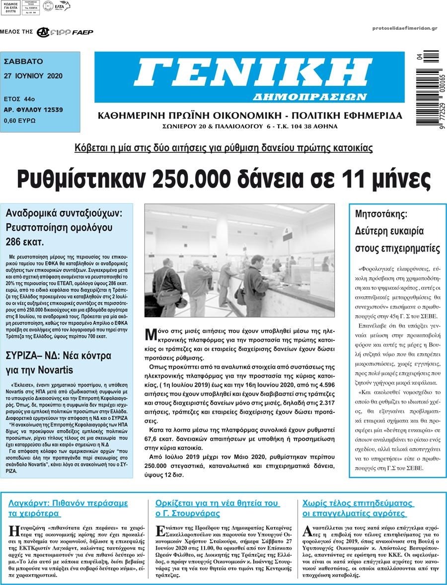 Οι οικονομικές εφημερίδες 27/6/2020 Διονύσης Νίκκας 07:50, Σάββατο 27 Ιουνίου 2020 Media Διαβάστε τα πρωτοσέλιδα των οικονομικών εφημερίδων… ΟΙΚΟΝΟΜΙΚΕΣ ΕΦΗΜΕΡΙΔΕΣ Μοιράσου το: σχολίασε κι εσύ (0 σχόλια) Ακολουθήστε το enikos.gr στο Google News και μάθετε πρώτοι όλες τις ειδήσεις Δείτε όλες τις τελευταίες ειδήσεις από την Ελλάδα και τον Κόσμο στο enikos.gr Ειδήσεις Ροή Ειδήσεων 5 ώρες πριν Χριστούγεννα στα μπλόκα: Επιμένουν στις κινητοποιήσεις τους οι αγρότες – Ανοίγουν τα διόδια το Σαββατοκύριακο 6 ώρες πριν Ουκρανία: Η άνευ προηγουμένου επίθεση σε ρωσικό τάνκερ στη Μεσόγειο και το μήνυμα προς στον Πούτιν – Το «μακρύ χέρι» του Κιέβου 5 ώρες πριν Πούτιν: Τα μηνύματα σε Ευρώπη και ΝΑΤΟ από το μαραθώνιο «σόου» του – Η απαίτηση για «σεβασμό» και η ειρήνη «με τους όρους» της Μόσχας 6 ώρες πριν Τραμπ: Δεν αποκλείει την πιθανότητα ενός πολέμου στη Βενεζουέλα – «Ο Μαδούρο ξέρει καλύτερα από τον καθένα τι ακριβώς θέλω» 7 ώρες πριν Συνεχίζει να προκαλεί ο Μίτσκοσκι: «Για μένα το όνομα Μακεδονία είναι ιερό» 5 ώρες πριν Ανακαλύφθηκαν αρχαία χρυσά νομίσματα 2.200 ετών που απεικονίζουν τον θεό Απόλλωνα – Η άγνωστη σύνδεση με τον Φίλιππο Β΄ της Μακεδονίας 6 ώρες πριν Ύπνος: Μια κρυφή κατάσταση του εγκεφάλου πριν από τον ύπνο μπορεί να είναι το “κλειδί” για υψηλή ευφυΐα και δημιουργικότητα 7 ώρες πριν Αριθμολογία: Οι άνθρωποι που έχουν γεννηθεί αυτές τις 4 ημερομηνίες, συχνά παρεξηγούνται – «Η καλοσύνη τους κρύβει τεράστια δύναμη» 8 ώρες πριν Ξεχάστε το καθάρισμα το Σαββατοκύριακο: Ο «κανόνας των 20 λεπτών» που θα σας λύσει τα χέρια 1 λεπτό πριν Βολιβία: Μαζική διαδηλώσεις εναντίον της κατάργησης των επιδοτήσεων των τιμών των καυσίμων 17 λεπτά πριν Φως στο Τούνελ: Έφτασε η ώρα της αλήθειας για την δολοφονία της χήρας του πρώην υπουργού στο Κολωνάκι 32 λεπτά πριν Ντόναλντ Τραμπ: Προστέθηκε το όνομά του στην πρόσοψη του Κέντρου Κένεντι – Οργισμένη αντίδραση των συγγενών του JFK 47 λεπτά πριν Ταμίλα Κουλίεβα: «Δεν θέλω να είμαι κάποια που πορεύεται συνεχώς με τις ίδιες αναφορές» 1 ώρα πριν Η Ελλάδα προσχωρεί στη Διεθνή Επιτροπή Αποζημιώσεων για την Ουκρανία ENIKOS NETWORK Το ΕΚΑΒ τιμήθηκε από την Ακαδημία Αθηνών για τα 40 χρόνια προσφοράς του Έχετε πραγματικά μεγάλη καρδιά; 10 χαρακτηριστικά όσων έχουν καλοσύνη Αναστολή μέτρων αναγκαστικής εκτέλεσης για κτηνοτρόφους που πλήττονται από την ευλογιά των αιγοπροβάτων Πλήρης επάρκεια προϊόντων στις λαϊκές της Αττικής, παρά τις αγροτικές κινητοποιήσεις – Τι απαντούν οι πωλητές Χαρτογραφώντας το «σημείο χωρίς επιστροφή»: Για πρώτη φορά αποκαλύπτεται με λεπτομέρεια το ακανθώδες όριο της ατμόσφαιρας τ... Η Google καταργεί τη λειτουργία «dark web report» – Πώς θα μπορούν οι χρήστες να διαγράφουν τα δεδομένα τους περισσότερα 02:50 , Σάββατο 20 Δεκεμβρίου 2025 GNTM: Η Ξένια Τσίρκοβα αναδείχθηκε μεγάλη νικήτρια και πήρε τις 50.000 ευρώ – Ποιος βρέθηκε σε απόσταση αναπνοής; Με φαντασμαγορικό τρόπο ολοκληρώθηκε το βράδυ της Παρασκευής ο μεγάλος τελικός του GNTM, μέσα ... 22:42 , Παρασκευή 19 Δεκεμβρίου 2025 Γιώργος Γιαννόπουλος για “Το σόι σου”: “Είναι ευτυχία και ευλογία αυτή η σειρά” «Είναι ευτυχία και ευλογία η συγκυρία αυτής της σειράς», θα πει ο Γιώργος Γιαννόπουλος -ο αγαπ... 20:37 , Παρασκευή 19 Δεκεμβρίου 2025 Don’t Forget The Lyrics: Η Έλλη Κοκκίνου υποδέχεται 4 παίκτες που θα κάνουν τα πάντα για να μη χάσουν ούτε… μισή λέξη από τους στίχους Το «Don’t Forget The Lyrics» επιστρέφει απόψε, Παρασκ