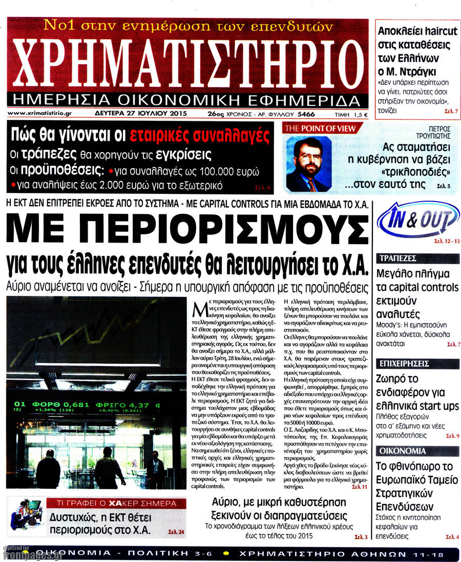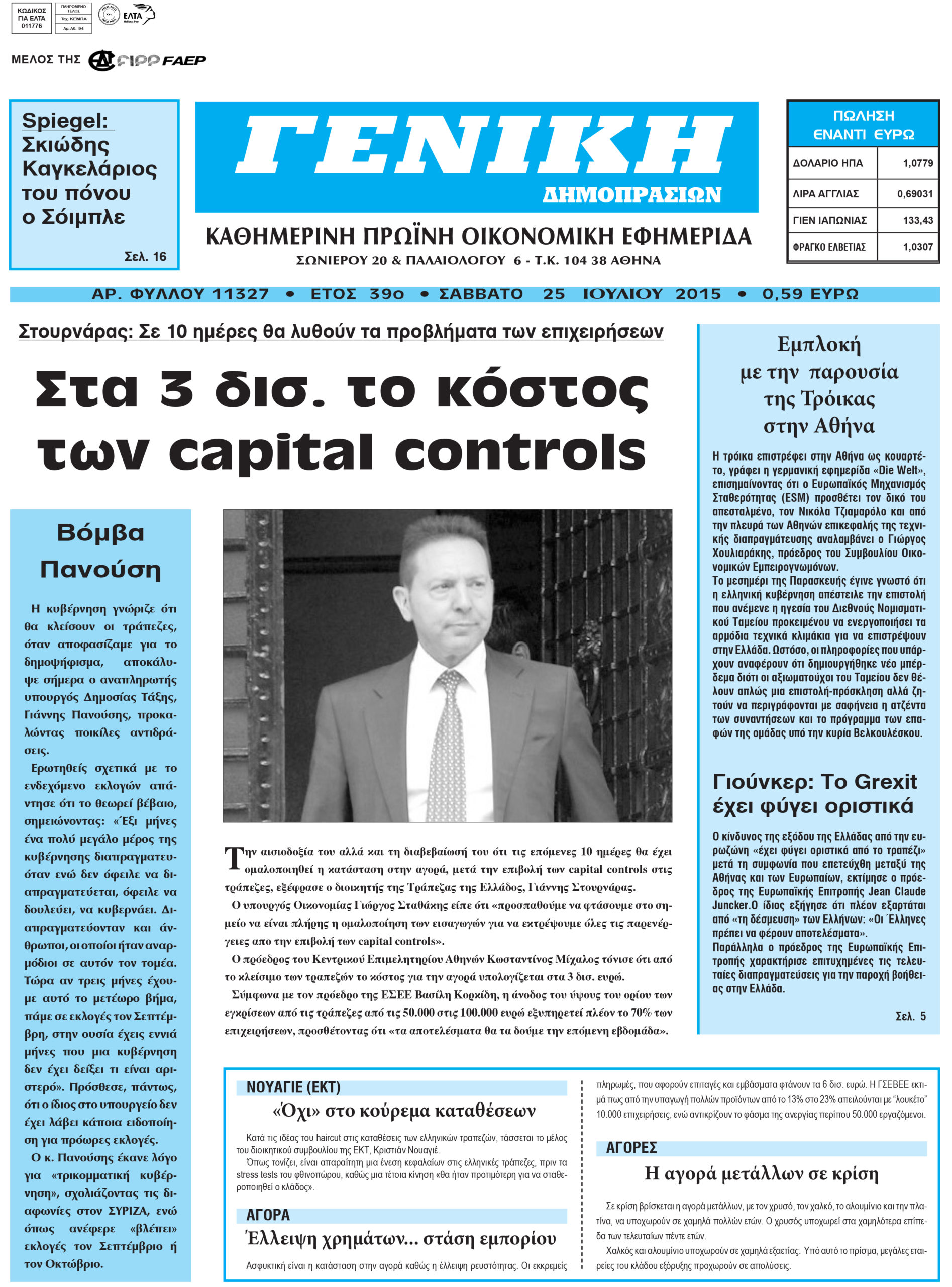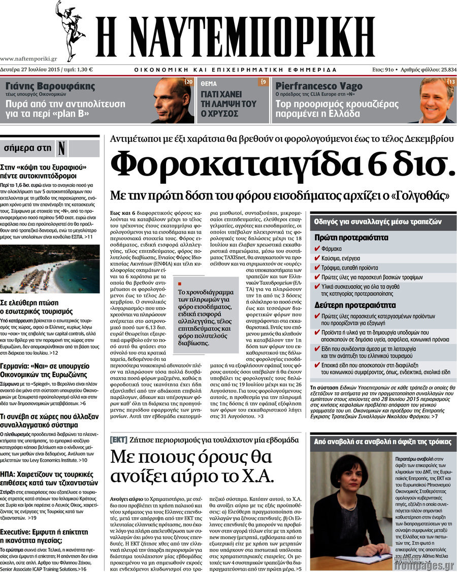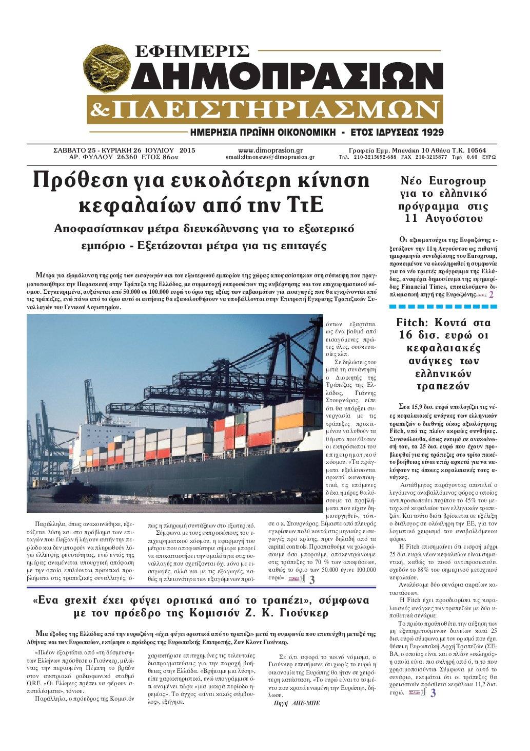 Οι οικονομικές εφημερίδες 27/7/2015 Enikos Newsroom 08:22, Δευτέρα 27 Ιουλίου 2015 Media Διαβάστε τα σημερινά πρωτοσέλιδα των Οικονομικών εφημερίδων. ΕΦΗΜΕΡΙΔΕΣ ΟΙΚΟΝΟΜΙΚΕΣ ΕΦΗΜΕΡΙΔΕΣ ΠΡΩΤΟΣΕΛΙΔΑ Μοιράσου το: σχολίασε κι εσύ (0 σχόλια) Ακολουθήστε το enikos.gr στο Google News και μάθετε πρώτοι όλες τις ειδήσεις Δείτε όλες τις τελευταίες ειδήσεις από την Ελλάδα και τον Κόσμο στο enikos.gr Ειδήσεις Ροή Ειδήσεων 21 λεπτά πριν Στεγαστικό: Όλο το σχέδιο για περισσότερα και φθηνότερα ενοικιαζόμενα σπίτια 9 ώρες πριν Δάνεια σε ελβετικό φράγκο: Τα βασικά σημεία της ρύθμισης – ανάσας για 40.000 δανειολήπτες – Αναλυτικός οδηγός με ερωτήσεις και απαντήσεις 9 ώρες πριν Κυψέλη: Εξιτήριο πήρε η 14χρονη μαθήτρια που μαχαιρώθηκε από την 16χρονη σε σχολείο – «Θέλω να βοηθήσω το παιδί, έχει μπλέξει με κακές παρέες» 8 ώρες πριν Τραμπ: Γιατί κατέθεσε τώρα την αγωγή κατά του BBC – Πώς η κίνησή του εξυπηρετεί το νέο δόγμα του για «αντίσταση» στην Ευρώπη, υπέρ των συντηρητικών 9 ώρες πριν ΟΠΕΚΕΠΕ – Παράνομες επιδοτήσεις: Ελεύθεροι με περιοριστικούς όρους και οι 7 κατηγορούμενοι που απολογήθηκαν σήμερα 1 ώρα πριν Οπτική ψευδαίσθηση: Μόνο αν είσαι ο Σέρλοκ Χολμς θα βρεις τον σκύλο σε 15 δευτερόλεπτα 2 ώρες πριν Υγεία του εντέρου: Προσθέστε 1 superfood στα scrambled eggs για καλύτερη πέψη και ευεξία 2 ώρες πριν Τα ζώδια σήμερα, Τετάρτη 17 Δεκεμβρίου: Κριοί, η αυτοπεποίθησή σας ενισχύεται 9 ώρες πριν Ανακαλύφθηκε βυθισμένη πέτρινη κατασκευή ανοιχτά της Κριμαίας – Αποτελεί μέρος αρχαίας ελληνικής αποικίας 29 λεπτά πριν Την Κυριακή με τη Realnews: Δωροεπιταγή 10€ 2 λεπτά πριν Οι αθλητικές μεταδόσεις 17/12/2025 10 λεπτά πριν Κανόνια λέιζερ σε φρεγάτες – Το επόμενο άλμα στις ναυτικές επιχειρήσεις – Δείτε βίντεο 17 λεπτά πριν Καιρός: Αραιές νεφώσεις και τοπικές βροχές σήμερα – Οι προβλέψεις για τα Χριστούγεννα 21 λεπτά πριν Στεγαστικό: Όλο το σχέδιο για περισσότερα και φθηνότερα ενοικιαζόμενα σπίτια ENIKOS NETWORK Δείτε αν έχετε άριστη στερεοσκοπική όραση – Εντοπίστε τον κρυμμένο αριθμό στην εικόνα σε 15 δεύτερα Το δημητριακό της Ισπανικής κατάκτησης που μπορεί να ενισχύσει την καρδιά και να αποκαταστήσει τους μύες Στεγαστικό: Όλο το σχέδιο για περισσότερα και φθηνότερα ενοικιαζόμενα σπίτια Πιερρακάκης: Ο προϋπολογισμός συμβάλλει ουσιαστικά στην ενίσχυση της αγοραστικής δύναμης της πλειονότητας των εργαζομένων Σύγχρονος Νοστράδαμος: Προειδοποιεί για «μεγάλο γεγονός» τους επόμενους μήνες που θα συγκλονίσει τη Βρετανία και τον κόσμο Τεστ παρατηρητικότητας: Μπορείτε να βρείτε τις 3 διαφορές στις εικόνες με έναν πιγκουίνο σε 14 δευτερόλεπτα περισσότερα 07:00 , Τετάρτη 17 Δεκεμβρίου 2025 Την Κυριακή με τη Realnews: Ό,τι και αν αγοράσεις, σκανάρεις και κερδίζεις! Την Κυριακή με τη Realnews: Ό,τι και αν αγοράσεις, σκανάρεις και κερδίζεις! Με το PADU app, το... 05:48 , Τετάρτη 17 Δεκεμβρίου 2025 Οι οικονομικές εφημερίδες 17/12/2025 Διαβάστε τα πρωτοσέλιδα από τις οικονομικές εφημερίδες, σήμερα 17/12/2025. 05:43 , Τετάρτη 17 Δεκεμβρίου 2025 Οι αθλητικές εφημερίδες 17/12/2025 Διαβάστε τα πρωτοσέλιδα από τις αθλητικές εφημερίδες, σήμερα 17/12/2025. 05:38 , Τετάρτη 17 Δεκεμβρίου 2025 Οι πολιτικές εφημερίδες 17/12/2025 Διαβάστε τα πρωτοσέλιδα από τις πολιτικές εφημερίδες, σήμερα 17/12/2025. ΤΕΛΕΥΤΑΙΕΣ ΕΙΔΗΣΕΙΣ 2 λεπτά πριν Οι αθλητικές μεταδόσεις 17/12/2025 10 λεπτά πριν Κανόνια λέιζερ σε φρεγάτες – Το επόμενο άλμα στις... 17 λεπτά πριν Καιρός: Αραιές νεφώσεις και τοπικές βροχές σήμερα –... 21 λεπτά πριν Στεγαστικό