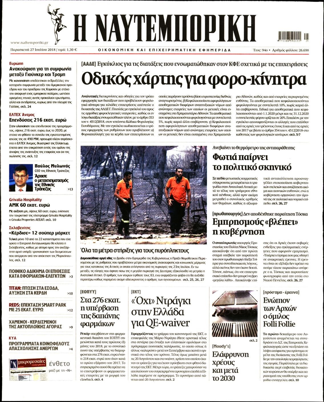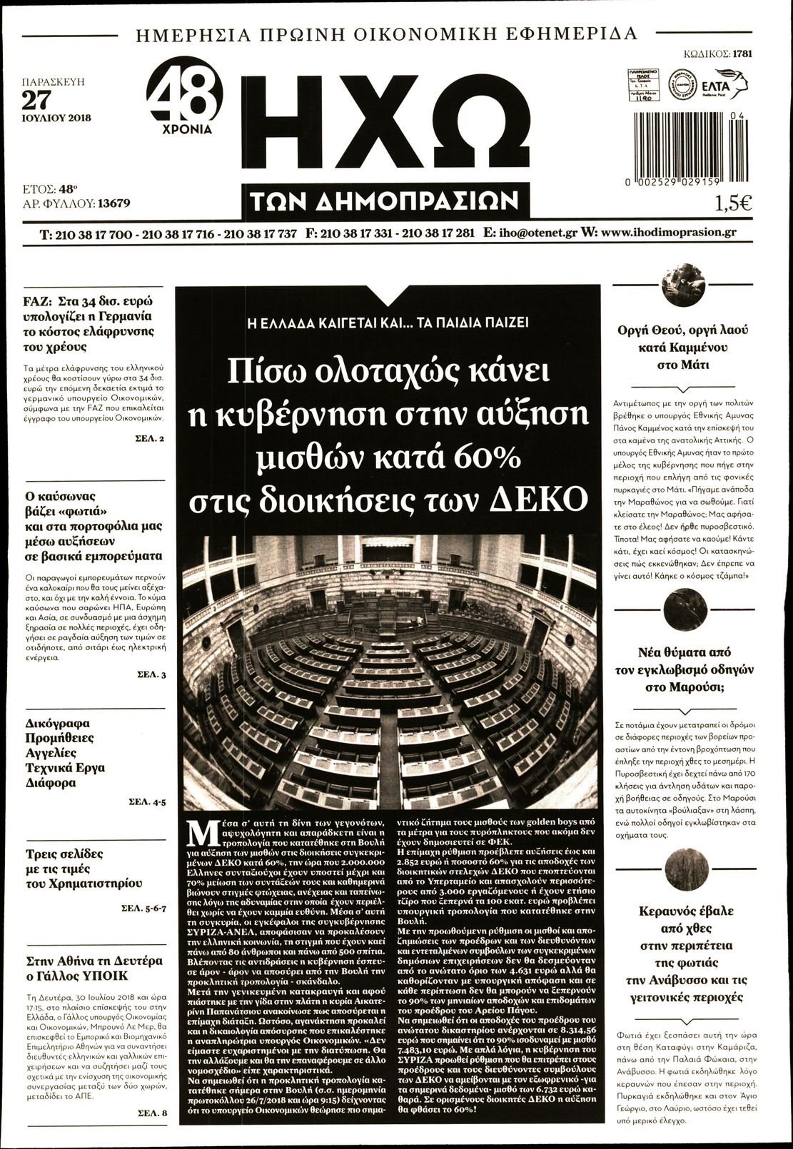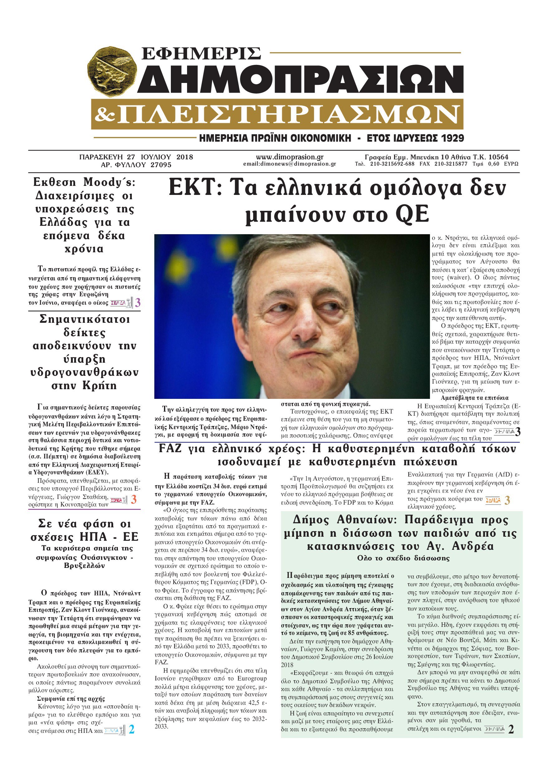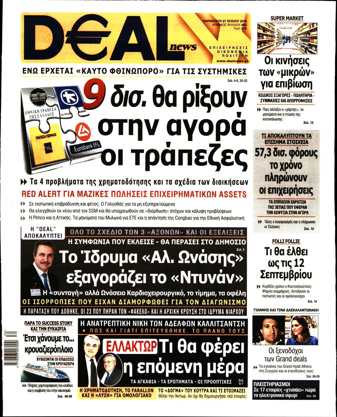 Οι οικονομικές εφημερίδες 27/7/2018 Enikos Newsroom 06:41, Παρασκευή 27 Ιουλίου 2018 Media Διαβάστε τα σημερινά πρωτοσέλιδα των οικονομικών εφημερίδων. ΟΙΚΟΝΟΜΙΚΕΣ ΕΦΗΜΕΡΙΔΕΣ ΠΡΩΤΟΣΕΛΙΔΑ Μοιράσου το: σχολίασε κι εσύ (0 σχόλια) Ακολουθήστε το enikos.gr στο Google News και μάθετε πρώτοι όλες τις ειδήσεις Δείτε όλες τις τελευταίες ειδήσεις από την Ελλάδα και τον Κόσμο στο enikos.gr Ειδήσεις Ροή Ειδήσεων 39 λεπτά πριν Ευρωπαϊκή Ένωση: Συμφωνία για δάνειο 90 δισ. ευρώ στην Ουκρανία τη διετία 2026-2027 5 ώρες πριν ΟΠΕΚΕΠΕ: Προφυλακιστέος ο φερόμενος αρχηγός και ο λογιστής της εγκληματικής οργάνωσης 6 ώρες πριν Αυξάνουν την πίεση προς την κυβέρνηση οι αγρότες: Κλείνουν παρακαμπτήριους και ανοίγουν διόδια – Τι θα γίνει τις γιορτές 6 ώρες πριν Φοινικούντα: Το Σάββατο απολογείται ο 30χρονος γιος γνωστού επιχειρηματία της Πλάκας που παραδόθηκε – Όσα είπε στους αστυνομικούς και ο ρόλος του στο έγκλημα 5 ώρες πριν ΑΕΚ – Κραϊόβα 3-2: Επική ανατροπή και πρόκριση στους «16» του Conference League η Ένωση 6 ώρες πριν Αρχαιολόγοι ανακάλυψαν ρωμαϊκά τεχνουργήματα από μια πόλη που δεν υπήρξε ποτέ – Τα τρία εντυπωσιακά κτίρια και ο αμφορέας με τις… σαρδέλες 7 ώρες πριν Ύπνος: Η απλή βραδινή ρουτίνα για να προστατεύσετε τα μαλλιά σας από το κρύο κατά τη διάρκεια του χειμώνα 8 ώρες πριν Manifesting: Πώς να συναντήσετε τον σύντροφο της ζωής σας, ανάλογα με τον μήνα γέννησής σας 2 ημέρες πριν 20 χρόνια τα Χριστούγεννα ξεκινούν στα Public με μεγάλη ποικιλία σε δώρα! 3 λεπτά πριν Αυστραλία: Κήρυξε την Κυριακή (21/12) ημέρα εθνικού πένθους για τη φονική επίθεση στην παραλία Μπόνταϊ 13 λεπτά πριν Ρόδος: Δάσκαλος καράτε καταδικάστηκε για ασέλγεια σε ανήλικες αθλήτριες – Μαρτυρίες για αγγίγματα σε ευαίσθητα σημεία 27 λεπτά πριν Γουατεμάλα: Εξαρθρώθηκε κύκλωμα διακίνησης μεταναστών προς τις ΗΠΑ – Συνελήφθησαν 14 άτομα 32 λεπτά πριν Βουλγαρία: Χιλιάδες πολίτες στους δρόμους κατά της απερχόμενης κυβέρνησης και της διαφθοράς 39 λεπτά πριν Ευρωπαϊκή Ένωση: Συμφωνία για δάνειο 90 δισ. ευρώ στην Ουκρανία τη διετία 2026-2027 ENIKOS NETWORK Σε περίοδο αυξημένης δραστηριότητας η γρίπη στην Ελλάδα-Μέτρα προστασίας από τον ΕΟΔΥ Σκέφτεστε συνέχεια συζητήσεις που έχετε κάνει; Τι σημαίνει αυτό, σύμφωνα με ειδικό Στεγαστικό: Τι λέει η ΠΟΜΙΔΑ για τα νέα μέτρα που ανακοίνωσε ο Κυριάκος Μητσοτάκης Λαγκάρντ: Αισιόδοξη για την ανάπτυξη της Ευρωζώνης, αβέβαιη για τον πληθωρισμό Χαρτογραφώντας το «σημείο χωρίς επιστροφή»: Για πρώτη φορά αποκαλύπτεται με λεπτομέρεια το ακανθώδες όριο της ατμόσφαιρας τ... Η Google καταργεί τη λειτουργία «dark web report» – Πώς θα μπορούν οι χρήστες να διαγράφουν τα δεδομένα τους περισσότερα 02:50 , Παρασκευή 19 Δεκεμβρίου 2025 GNTM: «Κλείδωσαν» οι τέσσερις φιναλίστ – Μεγάλη ανατροπή στις τελευταίες αποχωρήσεις Για προτελευταία φορά εμφανίστηκαν στο πλατό του GNTM οι φιναλίστ του φετινού κύκλου, το βράδυ... 17:45 , Πέμπτη 18 Δεκεμβρίου 2025 ROUK ZOUK: Εορταστικό επεισόδιο με καλεσμένους τους πρωταγωνιστές του «Γιατί ρε πατέρα» Το Σάββατο 20 Δεκεμβρίου στις 21:00, η Ζέτα Μακρυπούλια υποδέχεται εκλεκτούς ηθοποιούς που όλο... 17:20 , Πέμπτη 18 Δεκεμβρίου 2025 Άγιος έρωτας: Η Χριστίνα εξομολογείται στον πατέρα Νικόλαο, απόψε στις 21:00 στον Alpha Η Νότα αποφασίζει να εκδικηθεί τον Πέτρο και τον Στέφανο, για χάρη του Λούη, όμως τα πράγματα ... 16:50 , Πέμπτη 18 Δεκεμβρίου 2025 Να μ’ αγαπάς: Ζωή και Φωτεινή συμφιλιώνονται ως μάνα με κόρη, απόψε στις 20:00 Η ταυτότητα του Άγγελου αποκαλύπτετα