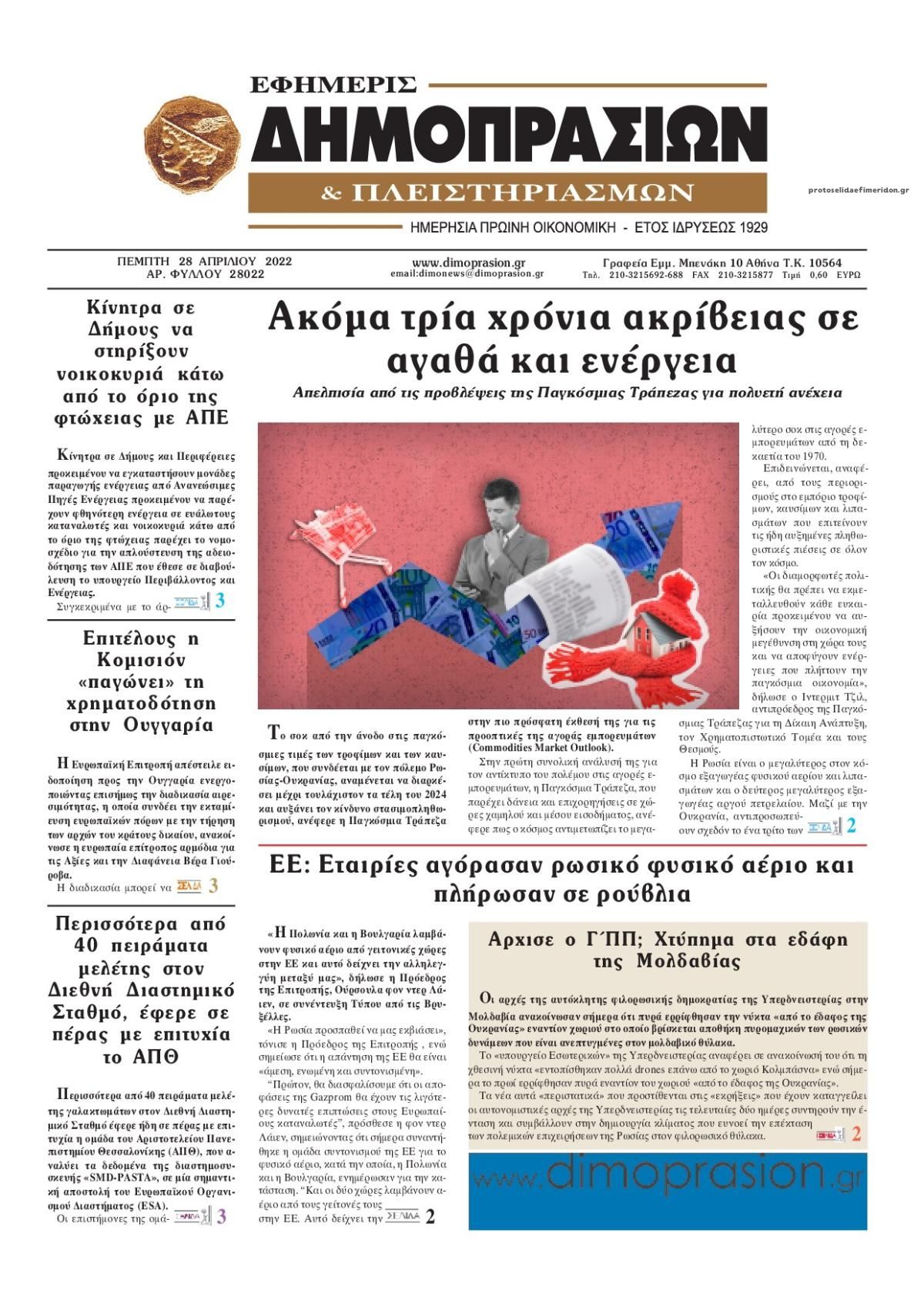 Οι οικονομικές εφημερίδες 28/4/2022 Σταύρος Ιωακείμ 06:43, Πέμπτη 28 Απριλίου 2022 Media Διαβάστε τα πρωτοσέλιδα από τις οικονομικές εφημερίδες… ΕΦΗΜΕΡΙΔΕΣ ΟΙΚΟΝΟΜΙΚΕΣ ΕΦΗΜΕΡΙΔΕΣ ΠΡΩΤΟΣΕΛΙΔΑ Μοιράσου το: Οι αθλητικές εφημερίδες 28/4/2022 Το Ποντίκι σήμερα Πέμπτη 28/4/2022 Οι πολιτικές εφημερίδες 28/4/2022 σχολίασε κι εσύ (0 σχόλια) Ακολουθήστε το enikos.gr στο Google News και μάθετε πρώτοι όλες τις ειδήσεις Δείτε όλες τις τελευταίες ειδήσεις από την Ελλάδα και τον Κόσμο στο enikos.gr Ειδήσεις Ροή Ειδήσεων 26 λεπτά πριν Νίκος Παππάς: Άφαντος παραμένει ο ευρωβουλευτής μετά την επίθεση στον Νίκο Γιαννόπουλο 1 ώρα πριν Οι αγρότες δεν φεύγουν από τα μπλόκα: Πολύωροι αποκλεισμοί στα τελωνεία Ευζώνων, Νίκης, Προμαχώνα και Εξοχής 42 λεπτά πριν Συναγερμός και στην Ελλάδα για τη «σούπερ γρίπη»: Πόσο σοβαρή είναι και ποιοι θεωρούνται πιο ευάλωτοι – 3 ειδικοί μιλούν στο enikos.gr 2 ώρες πριν Ντόναλντ Τραμπ: Το διάγγελμα, η πτώση στις δημοσκοπήσεις και το… χάος που κληρονόμησε από τον Μπάιντεν 2 ώρες πριν Μάριο Πινέιδα: Ο αμυντικός του Ισημερινού σκοτώθηκε σε ένοπλη επίθεση στη Γκουαγιακίλ 1 ώρα πριν Τα 4 ζώδια που λαμβάνουν ένα ισχυρό σημάδι από το σύμπαν – «Αποκαλύπτεται κάτι που μπορεί να αλλάξει τη ζωή μας» 5 ώρες πριν Καούρα: Το μπαχαρικό που είναι «εξίσου αποτελεσματικό» με την ομεπραζόλη, σύμφωνα με ειδικούς 2 ώρες πριν Η σύζυγός του παραπονιέται για τα χρήματα που της δίνει για ψώνια κάθε μήνα – «Λέει ότι νιώθει φτωχή και της είπα να βρει δουλειά» 1 ημέρα πριν 20 χρόνια τα Χριστούγεννα ξεκινούν στα Public με μεγάλη ποικιλία σε δώρα! 1 λεπτό πριν Ο ASAP Rocky αποκάλυψε το εξώφυλλο του άλμπουμ του που δημιούργησε ο Τιμ Μπάρτον 7 λεπτά πριν Εξεταστική ΟΠΕΚΕΠΕ – Παπασταύρου: Δώσαμε κατεύθυνση στον Σημανδράκο για τήρηση της νομιμότητας – Τι είπε για τη σχέση με τον Αυγενάκη 12 λεπτά πριν Βορίδης για ΟΠΕΚΕΠΕ: Η αντιπολίτευση υπονομεύει την Εξεταστική – Αντί να είναι σοβαρή διαδικασία, γίνεται μια επικοινωνιακή φούσκα 16 λεπτά πριν Μαρία Τζομπανάκη για τον σύζυγό της: Έχουμε να βρεθούμε 2 μήνες – Αν δεν τον βρω, ανησυχώ 22 λεπτά πριν Αν κάνετε συνεχώς αυτά τα 8 πράγματα με τα κατοικίδιά σας, σας λείπει η ανθρώπινη επαφή ENIKOS NETWORK Επαναστατική ανακάλυψη από το MIT: Νανοσωματίδια καταπολεμούν τον καρκίνο των ωοθηκών με τη βοήθεια του ανοσοποιητικού Τα παράδοξα της φαρμακευτικής δαπάνης και οι προβλέψεις για το μέλλον Δάνεια σε ελβετικό φράγκο: Οι 3 κατηγορίες ρύθμισης – Όσα προβλέπει η τροπολογία που κατατέθηκε στη Βουλή Δώρο Χριστουγέννων: Έως αύριο η καταβολή του – Τι πρέπει να κάνουν όσοι δεν το λάβουν Χαρτογραφώντας το «σημείο χωρίς επιστροφή»: Για πρώτη φορά αποκαλύπτεται με λεπτομέρεια το ακανθώδες όριο της ατμόσφαιρας τ... Η Google καταργεί τη λειτουργία «dark web report» – Πώς θα μπορούν οι χρήστες να διαγράφουν τα δεδομένα τους περισσότερα 08:00 , Πέμπτη 18 Δεκεμβρίου 2025 Την Κυριακή με τη Realnews: Δωροεπιταγή 10€ Δωροεπιταγή αξίας 10€ για αγορές άνω των 60€ από τα πολυκαταστήματα FactoryOutlet H προσφορά ι... 07:50 , Πέμπτη 18 Δεκεμβρίου 2025 «Το σόι σου»: Backstage στα γυρίσματα για το εορταστικό επεισόδιο «Το σόι σου» φορά τα γιορτινά του για τα Χριστούγεννα και η Όλγα Λαφαζάνη, με την κάμερα του «... 07:36 , Πέμπτη 18 Δεκεμβρίου 2025 Οι αθλητικές μεταδόσεις 18/12/2025 – Πού θα δείτε τον αγώνα της ΑΕΚ με την Κραϊόβα για το Conference League Τα ματς ΑΕΚ – Ουνιβερσιτάτεα Κραϊόβα για το Conference League και Παναθηναϊκός – Χάποελ Τελ Αβ... 05:48 , Πέμπτη 18 Δεκεμβρίου 2