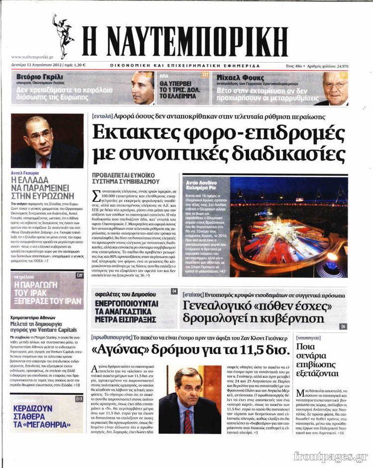 Δείτε τα πρωτοσέλιδα των οικονομικών εφημερίδων…