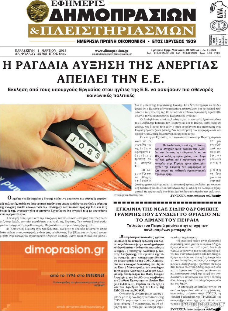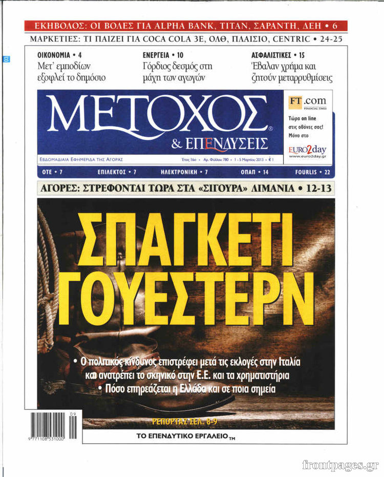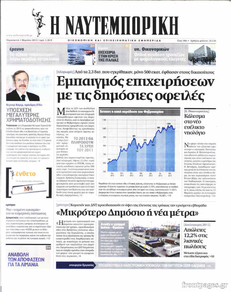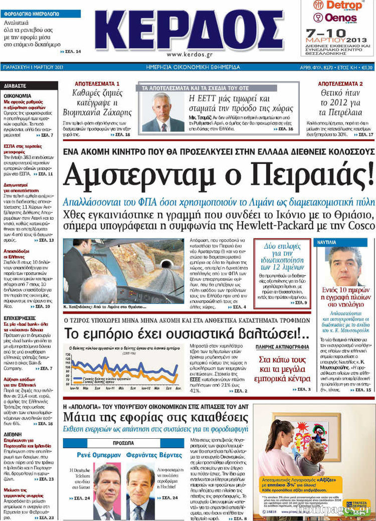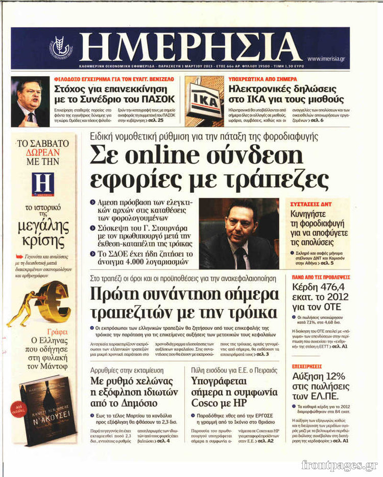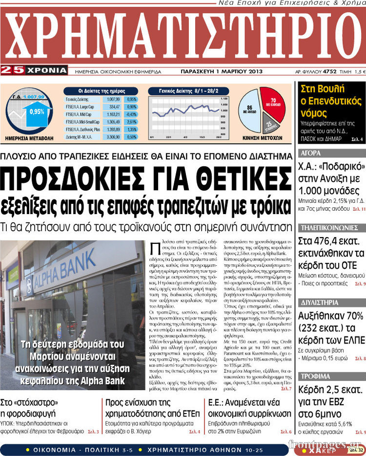Οι οικονομικές εφημερίδες Enikos Newsroom 09:18, Παρασκευή 01 Μαρτίου 2013 Media Οι οικονομικές εφημερίδες Τα πρωτοσέλιδα των οικονομικών εφημερίδων. ΕΦΗΜΕΡΙΔΕΣ ΕΦΗΜΕΡΙΔΕΣ ΠΡΩΤΟΣΕΛΙΔΑ ΟΙΚΟΝΟΜΙΚΕΣ ΕΦΗΜΕΡΙΔΕΣ ΠΡΩΤΟΣΕΛΙΔΑ Μοιράσου το: σχολίασε κι εσύ (0 σχόλια) Ακολουθήστε το enikos.gr στο Google News και μάθετε πρώτοι όλες τις ειδήσεις Δείτε όλες τις τελευταίες ειδήσεις από την Ελλάδα και τον Κόσμο στο enikos.gr Ειδήσεις Ροή Ειδήσεων 1 ώρα πριν Ενοίκια: Ποια προγράμματα θα «τρέξουν» για να ανοίξουν τα κλειστά ακίνητα – Όλες οι νέες πληροφορίες 1 ώρα πριν Ίμια 30 χρόνια μετά: «Ο βοσκός πήγαινε και στις δύο βραχονησίδες έως το 2004 – Μετά του έκοψαν τα λεφτά» 50 λεπτά πριν Τραγωδία στη Ρουμανία: Σήμερα και αύριο το τελευταίο «αντίο» στους επτά οπαδούς του ΠΑΟΚ 10 λεπτά πριν Αλέξης Τσίπρας: Συγκροτεί ομάδα και κείμενο για τη σύγκλιση των προοδευτικών δυνάμεων 28 λεπτά πριν Ουκρανικό: Τα ανοιχτά μέτωπα Κιέβου – Μόσχας πριν από τις νέες συνομιλίες στο Αμπού Ντάμπι – Η τακτική «φθοράς» της Ρωσίας 3 ώρες πριν Οπτική ψευδαίσθηση: Μόνο όσοι έχουν τέλεια όραση μπορούν να εντοπίσουν τη 2η γάτα μέσα σε 13 δευτερόλεπτα 3 ώρες πριν Άνοια: Η τροφή που συνδέεται με μειωμένο κίνδυνο και καλύτερη υγεία του εγκεφάλου 6 ώρες πριν Τα ζώδια σήμερα, Παρασκευή 30 Ιανουαρίου 2026: Καρκίνοι, ακούστε το ένστικτό σας και όχι τον φόβο σας 41 λεπτά πριν Ναός μπορεί να αναδύθηκε από το νερό όπως περιγράφει η μυθολογία – Τα στοιχεία της νέας μελέτης 13 λεπτά πριν Στο real taste & style που κυκλοφορεί με τη Realnews 5 λεπτά πριν «Βιολάντα»: Σήμερα οι κηδείες της Βασιλικής Σκαμπαρδώνη και της Ελένης Κατσαρού 10 λεπτά πριν Αλέξης Τσίπρας: Συγκροτεί ομάδα και κείμενο για τη σύγκλιση των προοδευτικών δυνάμεων 11 λεπτά πριν Βασίλειος Τζίγκος: Πέθανε ο δήμαρχος Φιλιατών 17 λεπτά πριν Συνταγή για να μαγειρεύετε εύκολα και άψογα το λευκό ρύζι ENIKOS NETWORK Ο καρκίνος μπορεί να προστατεύσει από το Αλτσχάιμερ; Το παράδοξο συμπέρασμα μελέτης Το κόλπο για να μην πιάσουν μύκητες τα φυτά σας – Είναι εύκολο και αποτελεσματικό Ενοίκια: Ποια προγράμματα θα «τρέξουν» για να ανοίξουν τα κλειστά ακίνητα – Όλες οι νέες πληροφορίες Μυτιληναίος: Προειδοποιεί για τις επιπτώσεις από την άνοδο του ευρώ Google Search: Αναβαθμίζει τις δυνατότητες AI με Gemini 3 και Follow-up ερωτήσεις Κουίζ: Πόσο καλός είσαι στην ελληνική μυθολογία; Δοκίμασε τις γνώσεις σου και κάνε το 3 στα 3 περισσότερα 07:00 , Παρασκευή 30 Ιανουαρίου 2026 Την Κυριακή με τη Realnews: Ό,τι και αν αγοράσεις, σκανάρεις και κερδίζεις! Την Κυριακή με τη Realnews: Ό,τι και αν αγοράσεις, σκανάρεις και κερδίζεις! Με το PADU app, το... 05:48 , Παρασκευή 30 Ιανουαρίου 2026 Οι οικονομικές εφημερίδες 30/1/2026 Διαβάστε τα πρωτοσέλιδα από τις οικονομικές εφημερίδες, σήμερα 30/1/2026. 22:52 , Πέμπτη 29 Ιανουαρίου 2026 Ζελένσκι: Αναμένουμε από τη Ρωσία να σταματήσει τους βομβαρδισμούς για μία εβδομάδα, όπως συμφώνησε Ο Βολοντίμιρ Ζελένσκι δήλωσε απόψε ότι αναμένει την εφαρμογή της συμφωνίας, εκ μέρους της Ρωσί... 18:58 , Πέμπτη 29 Ιανουαρίου 2026 Το σόι σου: Ο Μιχάλης ένα βήμα πριν παρατήσει τον Χαμπέα, απόψε στις 21:00 Ένα ακόμη απολαυστικό επεισόδιο της σειράς “Το σόι σου” έρχεται απόψε στις 21:00 σ... ΤΕΛΕΥΤΑΙΕΣ ΕΙΔΗΣΕΙΣ 5 λεπτά πριν «Βιολάντα»: Σήμερα οι κηδείες της Βασιλικής... 10 λεπτά πριν Αλέξης Τσίπρας: Συγκροτεί ομάδα και κείμενο για τη... 11 λεπτά πριν Βασίλειος Τζίγκος: Πέθανε ο δήμαρχος Φιλιατών 17 λεπτά πριν Συνταγή για να μαγειρεύετε εύκολα και άψογα το λευκό... 23 λ