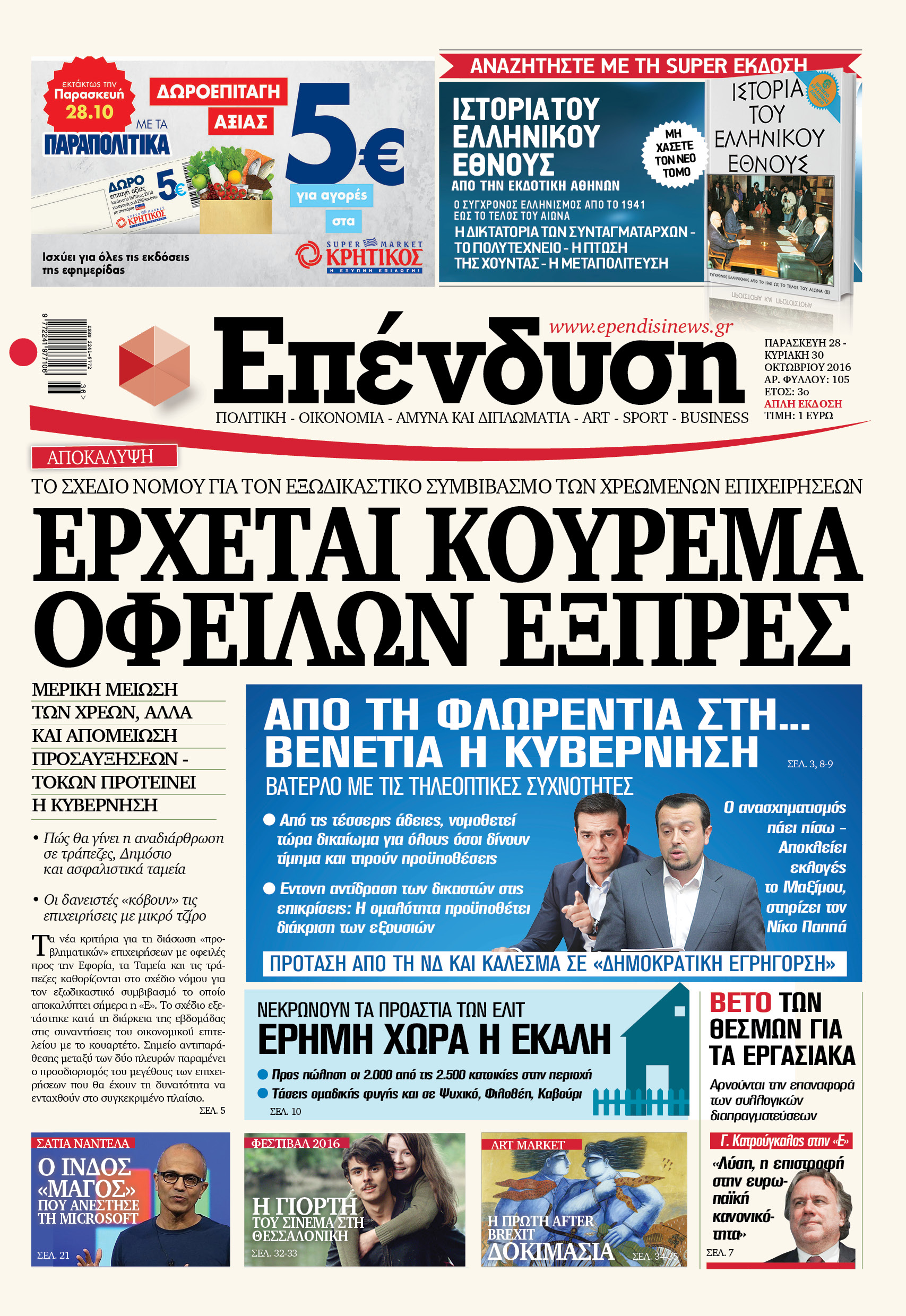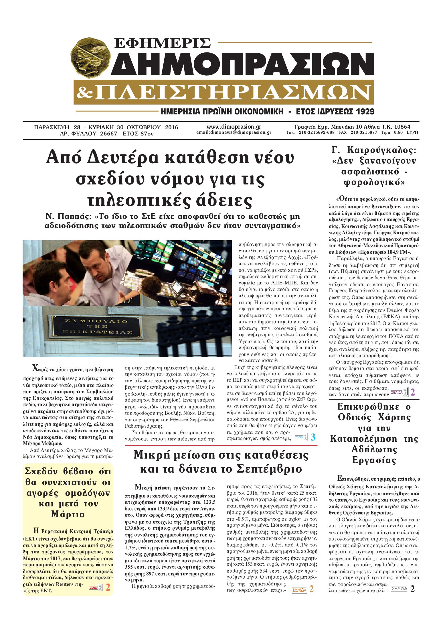 Oι οικονομικές εφημερίδες 28/10/2016 Κώστας Τεό 05:25, Παρασκευή 28 Οκτωβρίου 2016 Media Διαβάστε τα σημερινά πρωτοσέλιδα των οικονομικών εφημερίδων: Μοιράσου το: σχολίασε κι εσύ (0 σχόλια) Ακολουθήστε το enikos.gr στο Google News και μάθετε πρώτοι όλες τις ειδήσεις Δείτε όλες τις τελευταίες ειδήσεις από την Ελλάδα και τον Κόσμο στο enikos.gr Ειδήσεις Ροή Ειδήσεων 33 λεπτά πριν Εκτός ευρωομάδας ΣΥΡΙΖΑ ο Νίκος Παππάς μετά την επίθεση στον δημοσιογράφο Νίκο Γιαννόπουλο – Η μήνυση και οι νέες δηλώσεις 1 ώρα πριν «Αγριεύουν» οι αγρότες: «Δεν συντρέχει λόγος συνάντησης με τον πρωθυπουργό» – Ώρα αποφάσεων στη σύσκεψη της Πέμπτης 56 λεπτά πριν Κυψέλη: Χωρίς την οικογένειά της δίπλα της απολογήθηκε η 16χρονη – «Της είχε επιτεθεί κάποιος για να την βιάσει, φοβήθηκε και κυκλοφορούσε με μαχαίρι» 28 λεπτά πριν Politico: Το πρόβλημα της Ευρώπης δεν είναι το Βέλγιο αλλά ο Ντόναλντ Τραμπ 2 ώρες πριν Αλεξανδρούπολη: Πολυοργανική ανεπάρκεια λόγω υποσιτισμού η αιτία θανάτου του 3χρονου αγοριού 46 λεπτά πριν Μυστήριο με τεράστιες κυκλικές πέτρες 200 κιλών – Ανακαλύφθηκαν τυχαία κατά τη διάρκεια οδικών έργων και κανείς δεν ξέρει από πού προέρχονται 2 ώρες πριν Ύπνος: Ειδικός εξηγεί τον πραγματικό λόγο που ξυπνάτε στις 4 τα ξημερώματα – Ο ρόλος των ορμονών και του κιρκάδιου ρυθμού 3 ώρες πριν Αριθμολογία: Οι άνθρωποι που έχουν γεννηθεί αυτές τις 4 ημερομηνίες, είναι τρυφεροί και αγαπούν ανιδιοτελώς 14 ώρες πριν 20 χρόνια τα Χριστούγεννα ξεκινούν στα Public με μεγάλη ποικιλία σε δώρα! 28 λεπτά πριν Politico: Το πρόβλημα της Ευρώπης δεν είναι το Βέλγιο αλλά ο Ντόναλντ Τραμπ 33 λεπτά πριν Εκτός ευρωομάδας ΣΥΡΙΖΑ ο Νίκος Παππάς μετά την επίθεση στον δημοσιογράφο Νίκο Γιαννόπουλο – Η μήνυση και οι νέες δηλώσεις 33 λεπτά πριν Κύπελλο Ελλάδας: Η Μαρκό έστειλε τον ΠΑΟΚ στον Ολυμπιακό… μέσω Ατρόμητου 36 λεπτά πριν Άκης Σκέρτσος: Μήνυση και αγωγή κατά της Ζωής Κωνσταντοπούλου θα καταθέσει ο υπουργός Επικρατείας 46 λεπτά πριν Μυστήριο με τεράστιες κυκλικές πέτρες 200 κιλών – Ανακαλύφθηκαν τυχαία κατά τη διάρκεια οδικών έργων και κανείς δεν ξέρει από πού προέρχονται ENIKOS NETWORK Αϋπνία: Το κόλπο που θα σας βοηθήσει να κοιμηθείτε απόψε – Είναι απλό και έχει αποτέλεσμα 2,6 εκατομμύρια πολίτες έχουν ήδη εμβολιαστεί κατά της γρίπης ΕΛΣΤΑΤ: Τι δείχνουν τα νέα στοιχεία για τις ηλεκτρονικές παραγγελίες των επιχειρήσεων ΚΕΠΕ: Οι 3 διακριτές συμβολές των ΜμΕ και της μεταποίησης στην ελληνική οικονομία Χαρτογραφώντας το «σημείο χωρίς επιστροφή»: Για πρώτη φορά αποκαλύπτεται με λεπτομέρεια το ακανθώδες όριο της ατμόσφαιρας τ... Η Google καταργεί τη λειτουργία «dark web report» – Πώς θα μπορούν οι χρήστες να διαγράφουν τα δεδομένα τους περισσότερα 22:24 , Τετάρτη 17 Δεκεμβρίου 2025 Το Σπίτι Δίπλα Στο Ποτάμι: Σε κίνδυνο η υγεία του Απόστολου – Τι θα δούμε απόψε “Το Σπίτι Δίπλα στο Ποτάμι” ξετυλίγει το νήμα της ζωής των πέντε αδελφών με καταισ... 21:14 , Τετάρτη 17 Δεκεμβρίου 2025 Παιχνίδια Εκδίκησης: Θα καταφέρει ο Χρήστος να κλονίσει την εμπιστοσύνη της Μάγιας απέναντι στον Άγη; Τα «Παιχνίδια Εκδίκησης» έρχονται απόψε στις 22:30, στον Αντ1, με το τελευταίο επεισόδιο της χ... 20:57 , Τετάρτη 17 Δεκεμβρίου 2025 Άγιος Έρωτας: Η Χλόη καταθέτει εναντίον του πατέρα της και ο Χάρης αποκαλύπτει στον Κλεάνθη ότι δεν είναι ο βιολογικός του πατέρας. Γεμάτο αποκαλύψεις είναι το νέο επεισόδιο της σειράς “Άγιος Έρωτας” απόψε στις 21:... 20:15 , Τετάρτη 17 Δεκεμβρίου 2025 Η ανακοίνω
