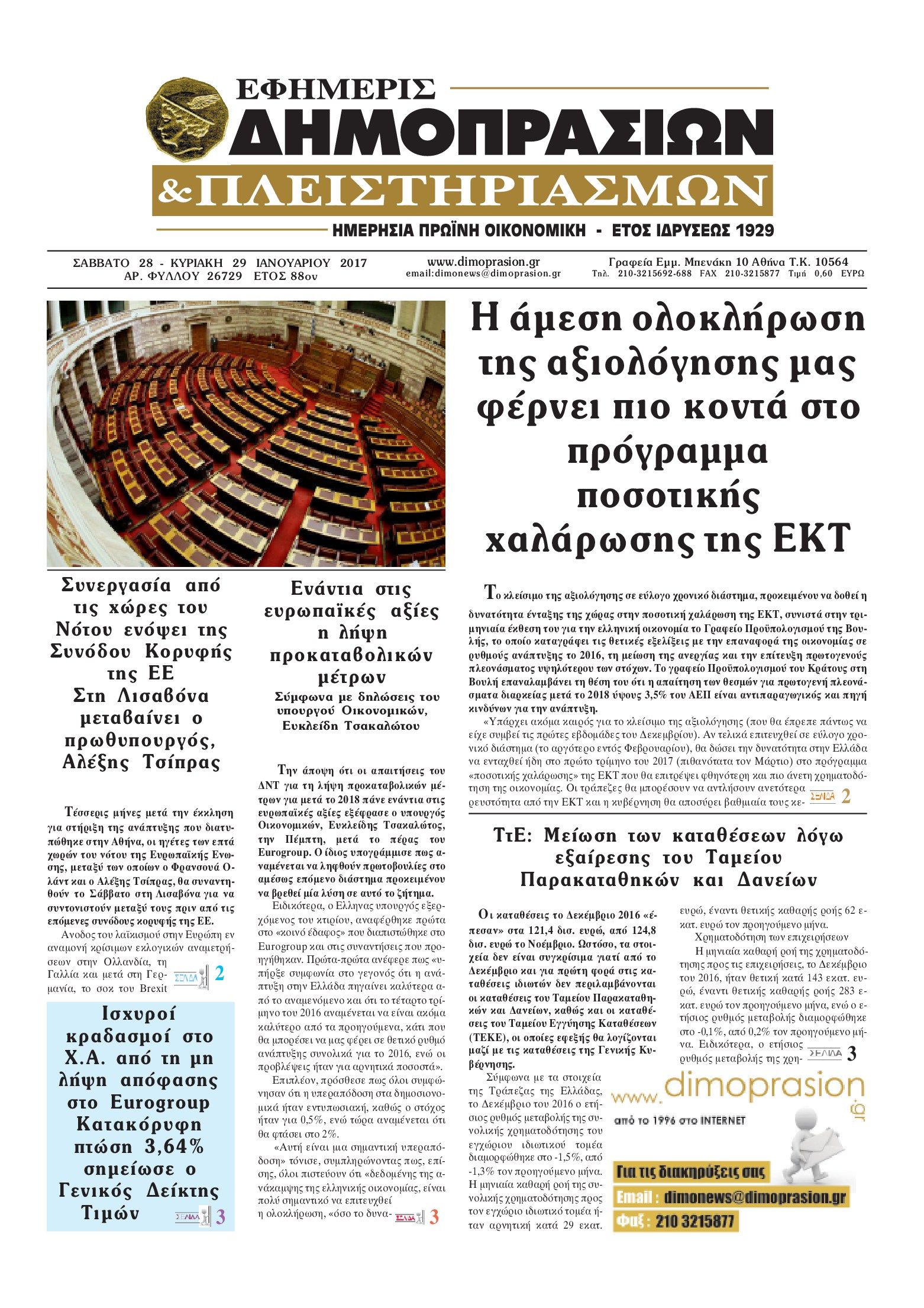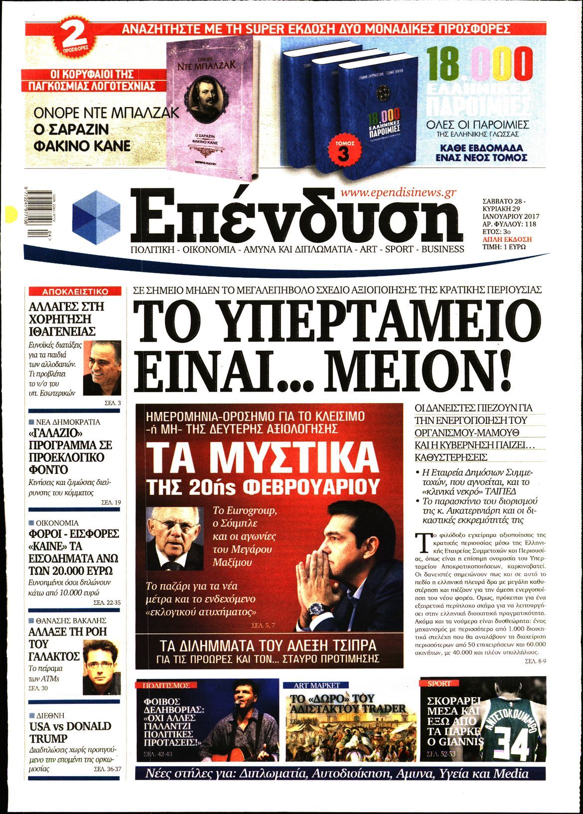 Οι οικονομικές εφημερίδες 28/1/2017 Enikos Newsroom 01:38, Σάββατο 28 Ιανουαρίου 2017 Media Διαβάστε τα σημερινά πρωτοσέλιδα των οικονομικών εφημερίδων: ΟΙΚΟΝΟΜΙΚΕΣ ΕΦΗΜΕΡΙΔΕΣ ΠΡΩΤΟΣΕΛΙΔΑ Μοιράσου το: σχολίασε κι εσύ (0 σχόλια) Ακολουθήστε το enikos.gr στο Google News και μάθετε πρώτοι όλες τις ειδήσεις Δείτε όλες τις τελευταίες ειδήσεις από την Ελλάδα και τον Κόσμο στο enikos.gr Ειδήσεις Ροή Ειδήσεων 32 λεπτά πριν Εκτός ευρωομάδας ΣΥΡΙΖΑ ο Νίκος Παππάς μετά την επίθεση στον δημοσιογράφο Νίκο Γιαννόπουλο – Η μήνυση και οι νέες δηλώσεις 1 ώρα πριν «Αγριεύουν» οι αγρότες: «Δεν συντρέχει λόγος συνάντησης με τον πρωθυπουργό» – Ώρα αποφάσεων στη σύσκεψη της Πέμπτης 55 λεπτά πριν Κυψέλη: Χωρίς την οικογένειά της δίπλα της απολογήθηκε η 16χρονη – «Της είχε επιτεθεί κάποιος για να την βιάσει, φοβήθηκε και κυκλοφορούσε με μαχαίρι» 27 λεπτά πριν Politico: Το πρόβλημα της Ευρώπης δεν είναι το Βέλγιο αλλά ο Ντόναλντ Τραμπ 2 ώρες πριν Αλεξανδρούπολη: Πολυοργανική ανεπάρκεια λόγω υποσιτισμού η αιτία θανάτου του 3χρονου αγοριού 45 λεπτά πριν Μυστήριο με τεράστιες κυκλικές πέτρες 200 κιλών – Ανακαλύφθηκαν τυχαία κατά τη διάρκεια οδικών έργων και κανείς δεν ξέρει από πού προέρχονται 2 ώρες πριν Ύπνος: Ειδικός εξηγεί τον πραγματικό λόγο που ξυπνάτε στις 4 τα ξημερώματα – Ο ρόλος των ορμονών και του κιρκάδιου ρυθμού 3 ώρες πριν Αριθμολογία: Οι άνθρωποι που έχουν γεννηθεί αυτές τις 4 ημερομηνίες, είναι τρυφεροί και αγαπούν ανιδιοτελώς 14 ώρες πριν 20 χρόνια τα Χριστούγεννα ξεκινούν στα Public με μεγάλη ποικιλία σε δώρα! 27 λεπτά πριν Politico: Το πρόβλημα της Ευρώπης δεν είναι το Βέλγιο αλλά ο Ντόναλντ Τραμπ 32 λεπτά πριν Εκτός ευρωομάδας ΣΥΡΙΖΑ ο Νίκος Παππάς μετά την επίθεση στον δημοσιογράφο Νίκο Γιαννόπουλο – Η μήνυση και οι νέες δηλώσεις 32 λεπτά πριν Κύπελλο Ελλάδας: Η Μαρκό έστειλε τον ΠΑΟΚ στον Ολυμπιακό… μέσω Ατρόμητου 35 λεπτά πριν Άκης Σκέρτσος: Μήνυση και αγωγή κατά της Ζωής Κωνσταντοπούλου θα καταθέσει ο υπουργός Επικρατείας 45 λεπτά πριν Μυστήριο με τεράστιες κυκλικές πέτρες 200 κιλών – Ανακαλύφθηκαν τυχαία κατά τη διάρκεια οδικών έργων και κανείς δεν ξέρει από πού προέρχονται ENIKOS NETWORK Αϋπνία: Το κόλπο που θα σας βοηθήσει να κοιμηθείτε απόψε – Είναι απλό και έχει αποτέλεσμα 2,6 εκατομμύρια πολίτες έχουν ήδη εμβολιαστεί κατά της γρίπης ΕΛΣΤΑΤ: Τι δείχνουν τα νέα στοιχεία για τις ηλεκτρονικές παραγγελίες των επιχειρήσεων ΚΕΠΕ: Οι 3 διακριτές συμβολές των ΜμΕ και της μεταποίησης στην ελληνική οικονομία Χαρτογραφώντας το «σημείο χωρίς επιστροφή»: Για πρώτη φορά αποκαλύπτεται με λεπτομέρεια το ακανθώδες όριο της ατμόσφαιρας τ... Η Google καταργεί τη λειτουργία «dark web report» – Πώς θα μπορούν οι χρήστες να διαγράφουν τα δεδομένα τους περισσότερα 22:24 , Τετάρτη 17 Δεκεμβρίου 2025 Το Σπίτι Δίπλα Στο Ποτάμι: Σε κίνδυνο η υγεία του Απόστολου – Τι θα δούμε απόψε “Το Σπίτι Δίπλα στο Ποτάμι” ξετυλίγει το νήμα της ζωής των πέντε αδελφών με καταισ... 21:14 , Τετάρτη 17 Δεκεμβρίου 2025 Παιχνίδια Εκδίκησης: Θα καταφέρει ο Χρήστος να κλονίσει την εμπιστοσύνη της Μάγιας απέναντι στον Άγη; Τα «Παιχνίδια Εκδίκησης» έρχονται απόψε στις 22:30, στον Αντ1, με το τελευταίο επεισόδιο της χ... 20:57 , Τετάρτη 17 Δεκεμβρίου 2025 Άγιος Έρωτας: Η Χλόη καταθέτει εναντίον του πατέρα της και ο Χάρης αποκαλύπτει στον Κλεάνθη ότι δεν είναι ο βιολογικός του πατέρας. Γεμάτο αποκαλύψεις είναι το νέο επεισόδιο της σειράς “Άγιος Έρωτας” απόψε στις 21:... 20:15 , Τ