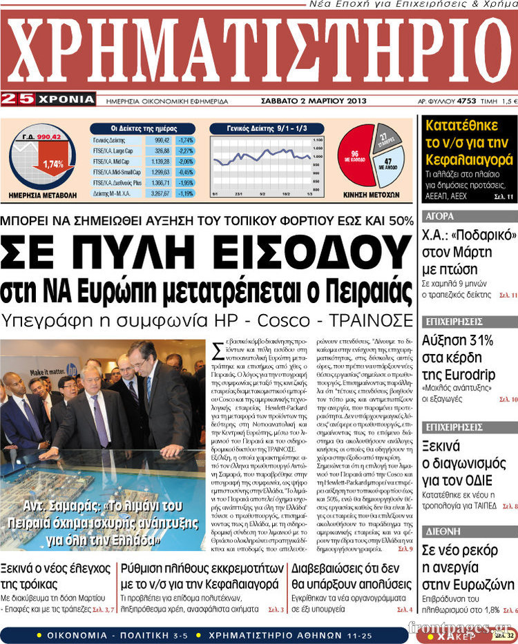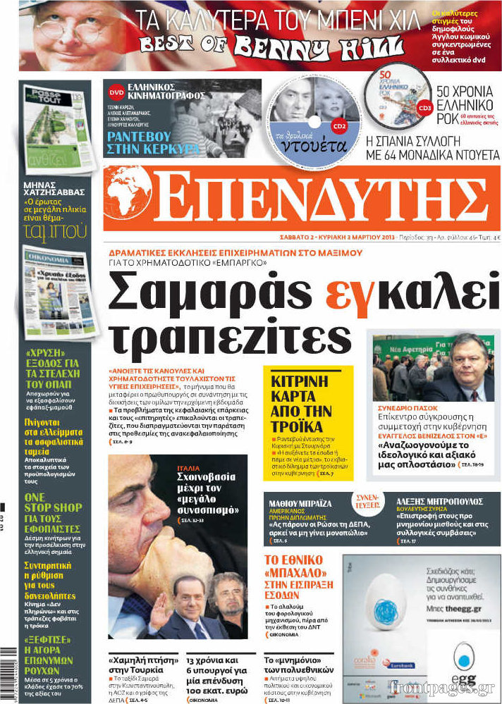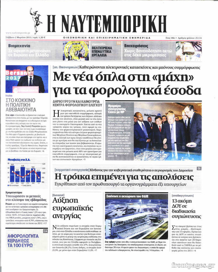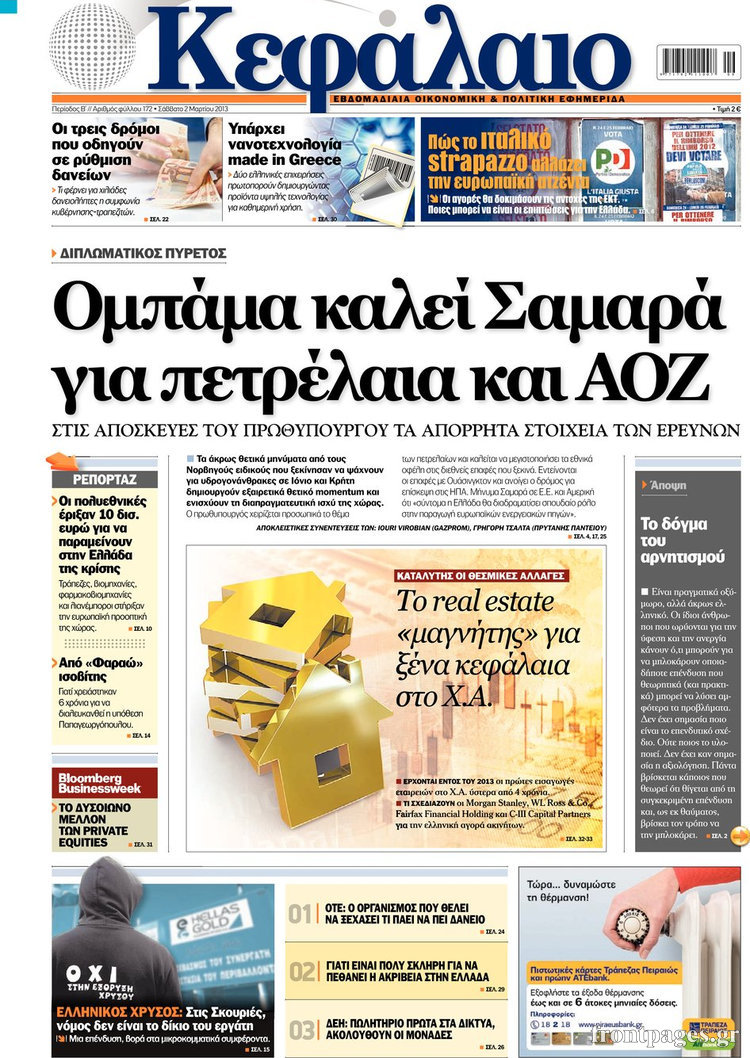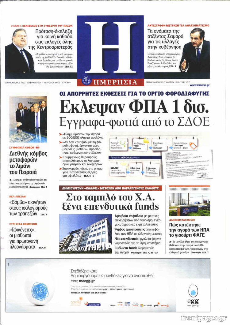 Οι οικονομικές εφημερίδες Enikos Newsroom 10:09, Σάββατο 02 Μαρτίου 2013 Media Οι οικονομικές εφημερίδες Δείτε τα πρωτοσέλιδα των οικονομικών εφημερίδων: ΟΙΚΟΝΟΜΙΚΕΣ ΕΦΗΜΕΡΙΔΕΣ Μοιράσου το: σχολίασε κι εσύ (0 σχόλια) Ακολουθήστε το enikos.gr στο Google News και μάθετε πρώτοι όλες τις ειδήσεις Δείτε όλες τις τελευταίες ειδήσεις από την Ελλάδα και τον Κόσμο στο enikos.gr Ειδήσεις Ροή Ειδήσεων 9 λεπτά πριν Χριστούγεννα: Τι περιμένουν οι έμποροι για να «ζεσταθεί» η αγορά 6 λεπτά πριν Οι Τούρκοι θέλουν να παρακολουθούν την Αθήνα από την Σμύρνη με Drones – Δείτε βίντεο 4 ώρες πριν Ακίλα Σάλεχ: «Άκυρο» το τουρκολιβυκό μνημόνιο λέει ο πρόεδρος της λιβυκής Βουλής – Ανοίγει ο διάλογος με Ελλάδα, Αίγυπτο και Τουρκία 9 ώρες πριν Κυψέλη: Η 16χρονη που μαχαίρωσε την 14χρονη είχε συλληφθεί 3 φορές στο παρελθόν – Έβριζε καθηγητές, έβαζε φωτιές σε κάδους και εκβίαζε συμμαθητές της 8 ώρες πριν Τρομοκρατική επίθεση στο Σίδνεϊ: Θλίψη για τα 15 θύματα – Οργή στην εβραϊκή κοινότητα που προειδοποιούσε επί δύο χρόνια 1 ώρα πριν Οπτική ψευδαίσθηση: Μόνο 1 στους 10 ανθρώπους θα βρει το κόκκινο αυγό σε 7 δευτερόλεπτα 1 ώρα πριν Υψηλή χοληστερίνη: Γιατρός αποκαλύπτει δύο τρόπους για να την μειώσετε χωρίς φαρμακευτική αγωγή 2 ώρες πριν Τα ζώδια σήμερα, Τρίτη 16 Δεκεμβρίου: Ιχθύες, δεν χρειάζεται να έχετε όλες τις απαντήσεις 8 ώρες πριν Επιστήμονες ίσως έλυσαν το μυστήριο γύρω από τα Χόμπιτ – Νέα έρευνα αποκαλύπτει πώς εξαφανίστηκαν 5 λεπτά πριν Καιρός: Ο «Ωμέγα εμποδιστής» κρατάει μακριά τις κακοκαιρίες και ψηλά τις θερμοκρασίες – Τι αλλάζει από το Σάββατο 6 λεπτά πριν Οι Τούρκοι θέλουν να παρακολουθούν την Αθήνα από την Σμύρνη με Drones – Δείτε βίντεο 9 λεπτά πριν Χριστούγεννα: Τι περιμένουν οι έμποροι για να «ζεσταθεί» η αγορά 13 λεπτά πριν Εορτολόγιο: Ποιοι γιορτάζουν σήμερα 16 Δεκεμβρίου 27 λεπτά πριν Αυστραλία: Οι δράστες της επίθεσης στην παραλία Μπόνταϊ είχαν ταξιδέψει στις Φιλιππίνες ENIKOS NETWORK Ποιο δώρο δεν μοιάζει με κανένα άλλο; Είστε τόσο οξυδερκείς όσο ένας νίντζα με τέλεια όραση ώστε να το βρείτε σε 35 δευτερό... Το αγαπημένο σνακ του Rudolph που μπορεί να προστατεύσει την καρδιά και να εξισορροπήσει τα επίπεδα σακχάρου στο αίμα Χριστούγεννα: Τι περιμένουν οι έμποροι για να «ζεσταθεί» η αγορά ΕΒΕΠ για αγροτικές κινητοποιήσεις: Κάθε επιπλέον εβδομάδα προσθέτει περίπου 200 εκατ. ευρώ ζημιά Σύγχρονος Νοστράδαμος: Προειδοποιεί για «μεγάλο γεγονός» τους επόμενους μήνες που θα συγκλονίσει τη Βρετανία και τον κόσμο Τεστ παρατηρητικότητας: Μπορείτε να βρείτε τις 3 διαφορές στις εικόνες με έναν πιγκουίνο σε 14 δευτερόλεπτα περισσότερα 05:48 , Τρίτη 16 Δεκεμβρίου 2025 Οι οικονομικές εφημερίδες 16/12/2025 Διαβάστε τα πρωτοσέλιδα από τις οικονομικές εφημερίδες, σήμερα 16/12/2025. 05:43 , Τρίτη 16 Δεκεμβρίου 2025 Οι αθλητικές εφημερίδες 16/12/2025 Διαβάστε τα πρωτοσέλιδα από τις αθλητικές εφημερίδες, σήμερα 16/12/2025. 05:38 , Τρίτη 16 Δεκεμβρίου 2025 Οι πολιτικές εφημερίδες 16/12/2025 Διαβάστε τα πρωτοσέλιδα από τις πολιτικές εφημερίδες, σήμερα 16/12/2025. 21:35 , Δευτέρα 15 Δεκεμβρίου 2025 Το Σπίτι Δίπλα Στο Ποτάμι: Η Ιουλία και ο Φωκάς μετακομίζουν στη Ρόδο – Δύο νέοι χαρακτήρες μπαίνουν στη σειρά Δύο νέοι, κομβικοί χαρακτήρες κάνουν την εμφάνισή τους αυτή την εβδομάδα στην αγαπημένη σειρά ... ΤΕΛΕΥΤΑΙΕΣ ΕΙΔΗΣΕΙΣ 5 λεπτά πριν Καιρός: Ο «Ωμέγα εμποδιστής» κρατάει μακριά τις... 6 λεπτά πριν Οι Τούρκοι θέλουν να παρακολουθούν την Αθήνα από την... 9 λεπτά πριν Χριστούγ