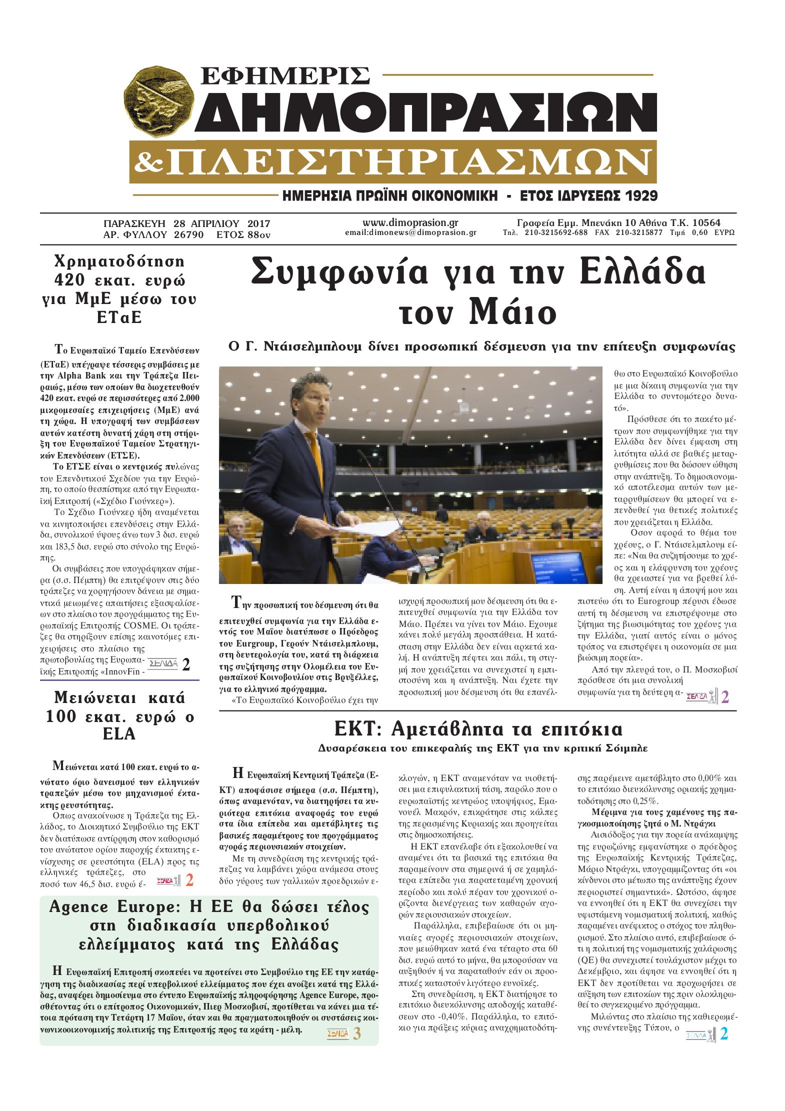Οι οικονομικές εφημερίδες 28/4/2017